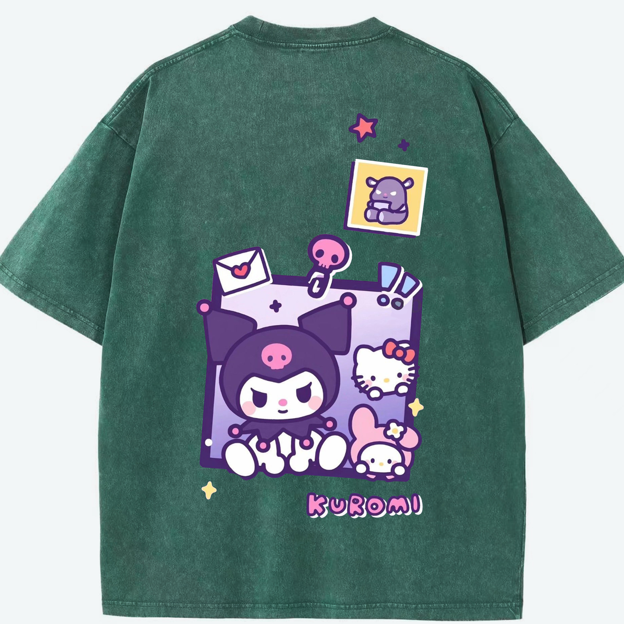 かわいいクロミ - 綿100% ヴィンテージ風 半袖Tシャツ ・ フロントプリント ・ 柔らか肌触り ・ 通気性 快適 ・ スポーツ カジュアル 外出用