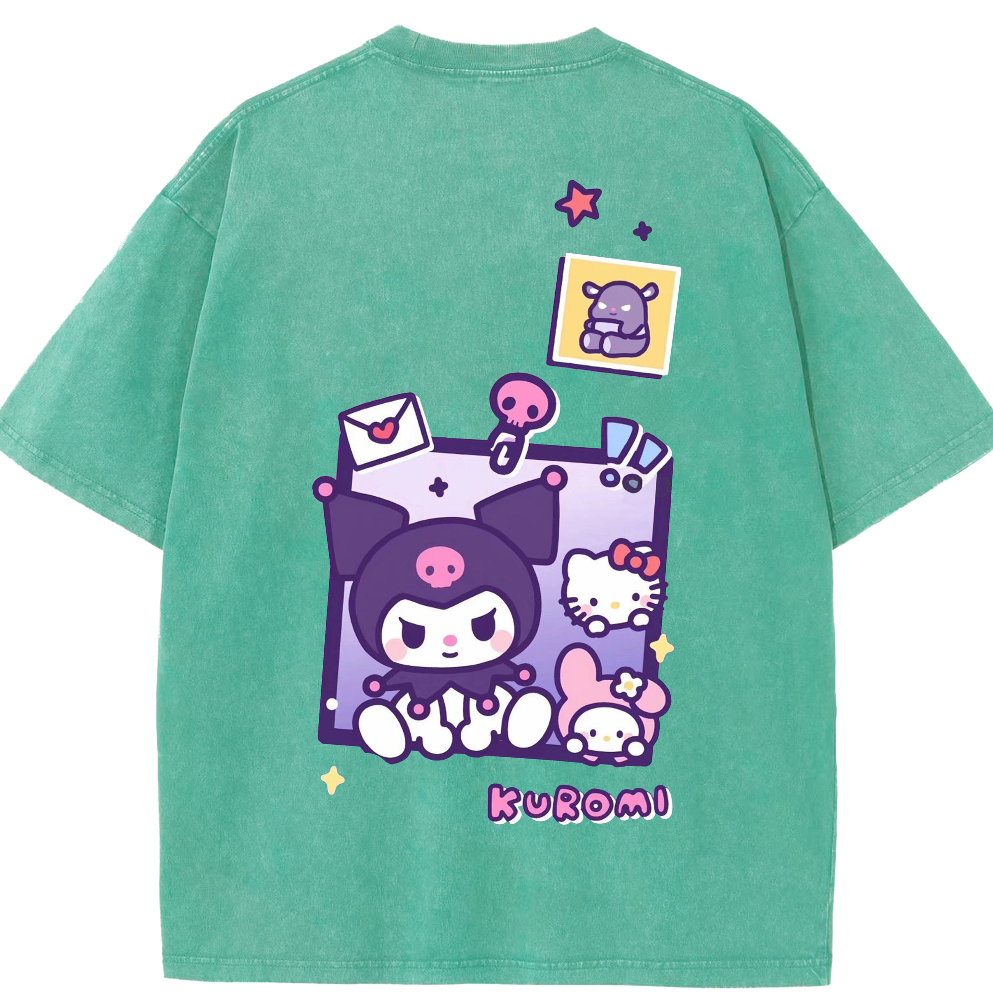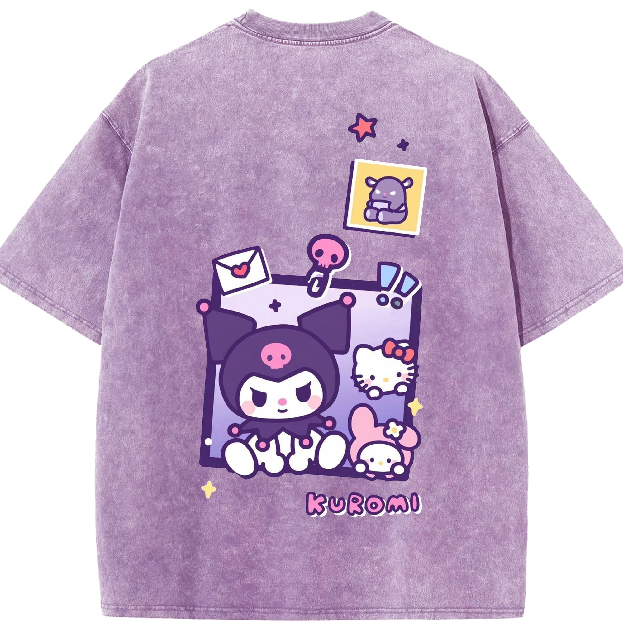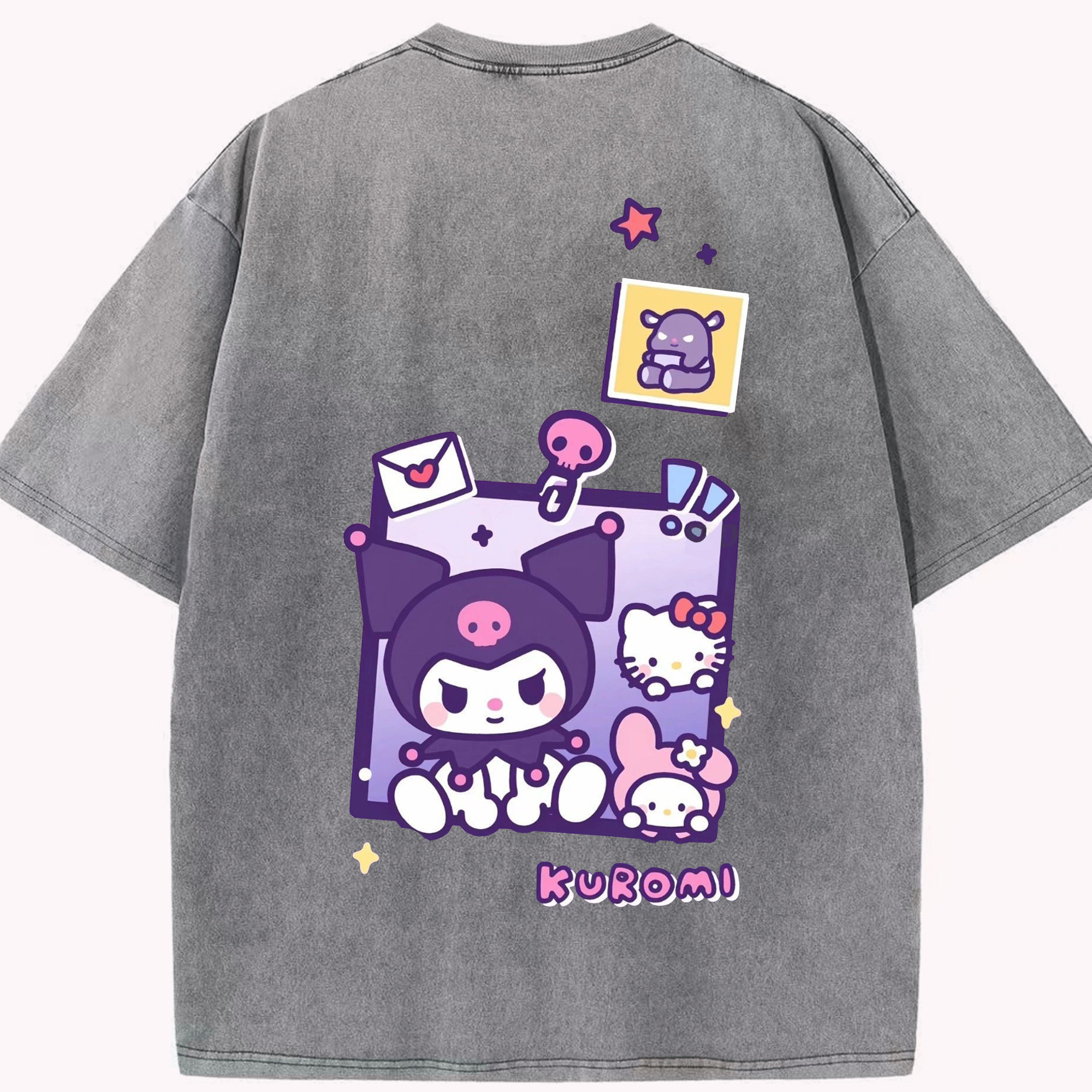 サンリオクロミ - 綿100% ヴィンテージ風 半袖Tシャツ ・ 背面プリント ・ 柔らか肌触り ・ 通気性 快適 ・ スポーツ カジュアル 外出用