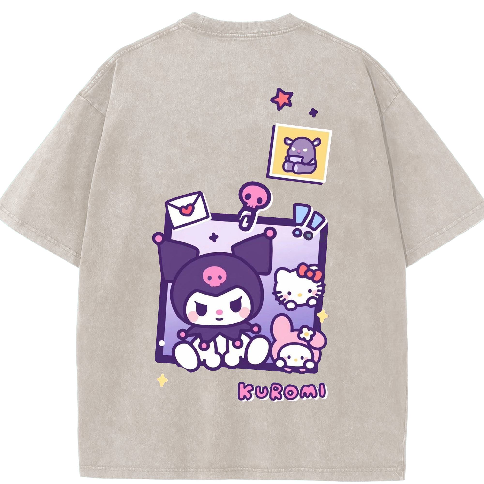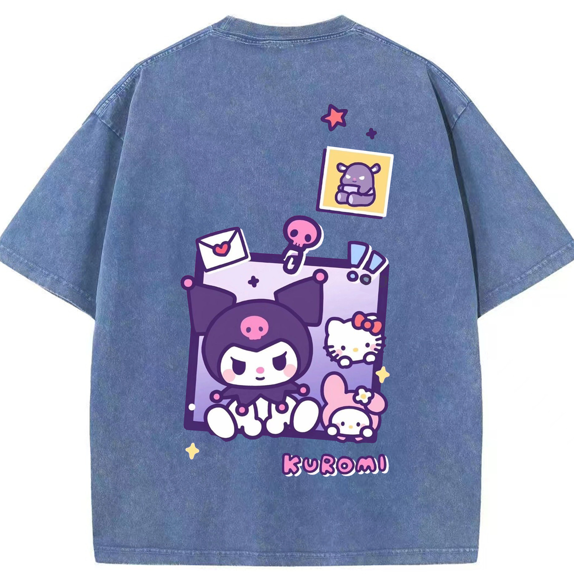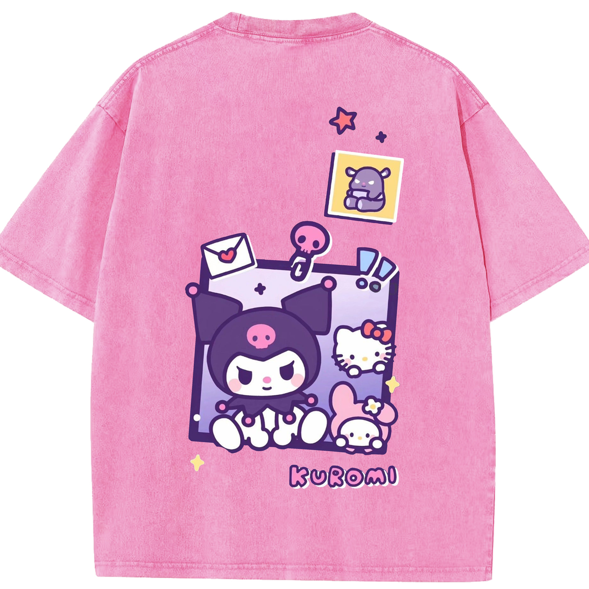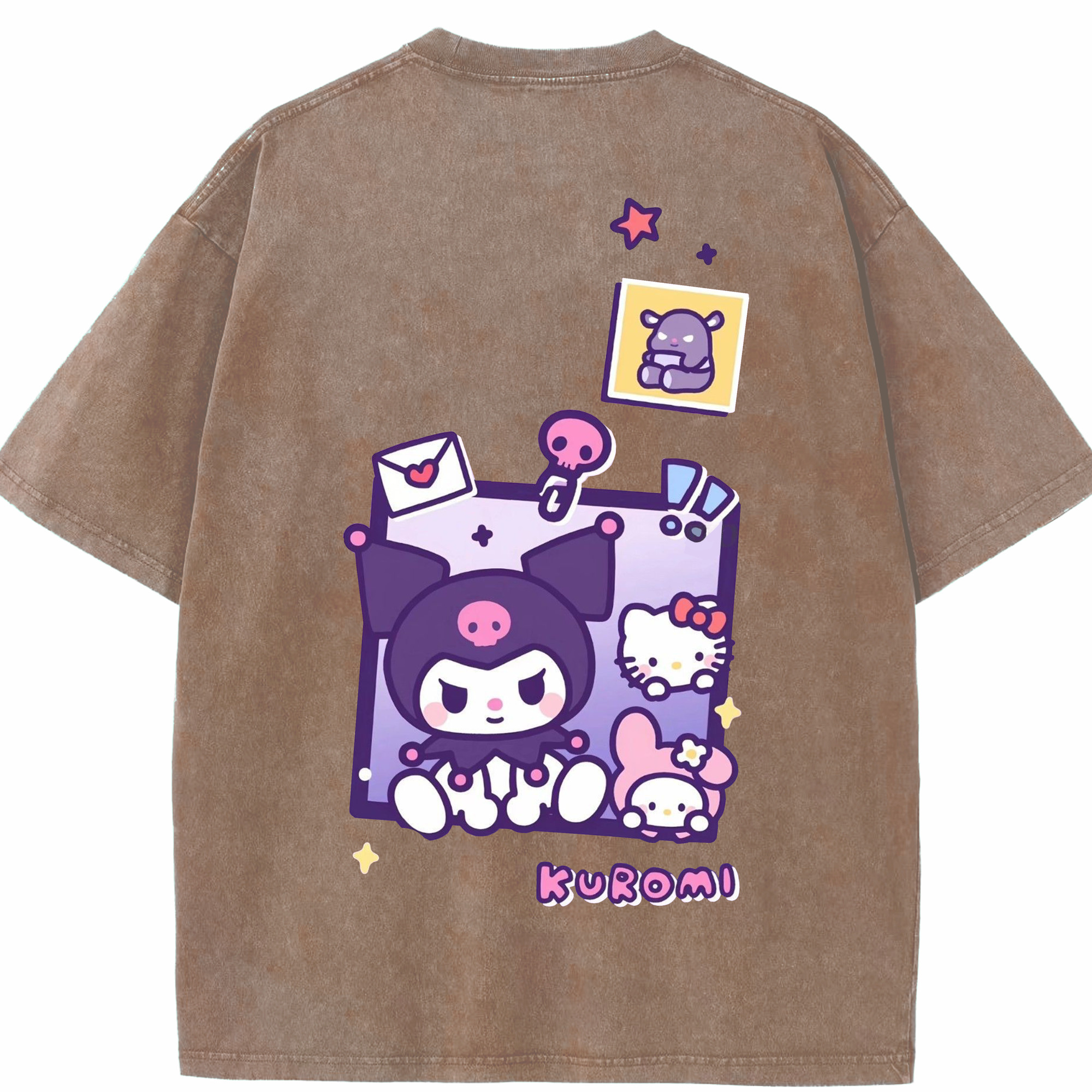 サンリオクロミ - 綿100% ヴィンテージ風 半袖Tシャツ ・ 背面プリント ・ 柔らか肌触り ・ 通気性 快適 ・ スポーツ カジュアル 外出用