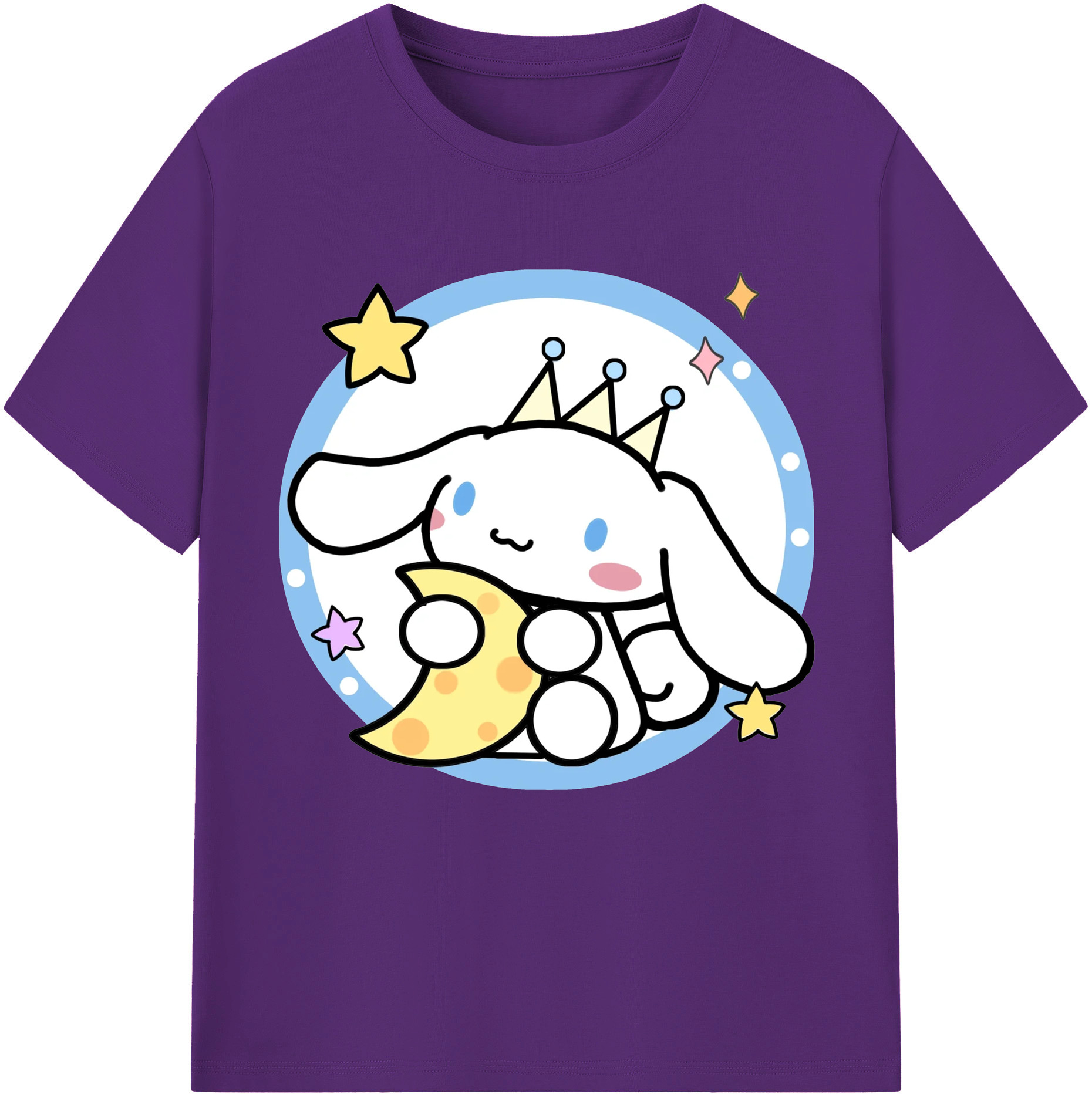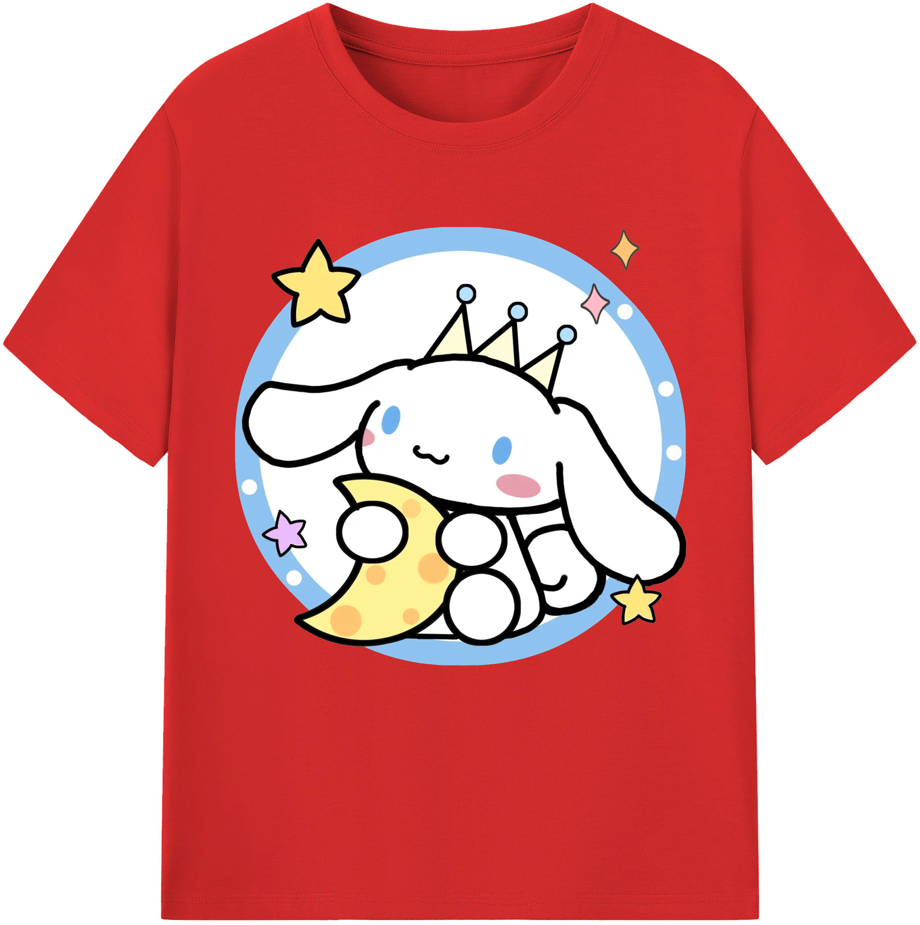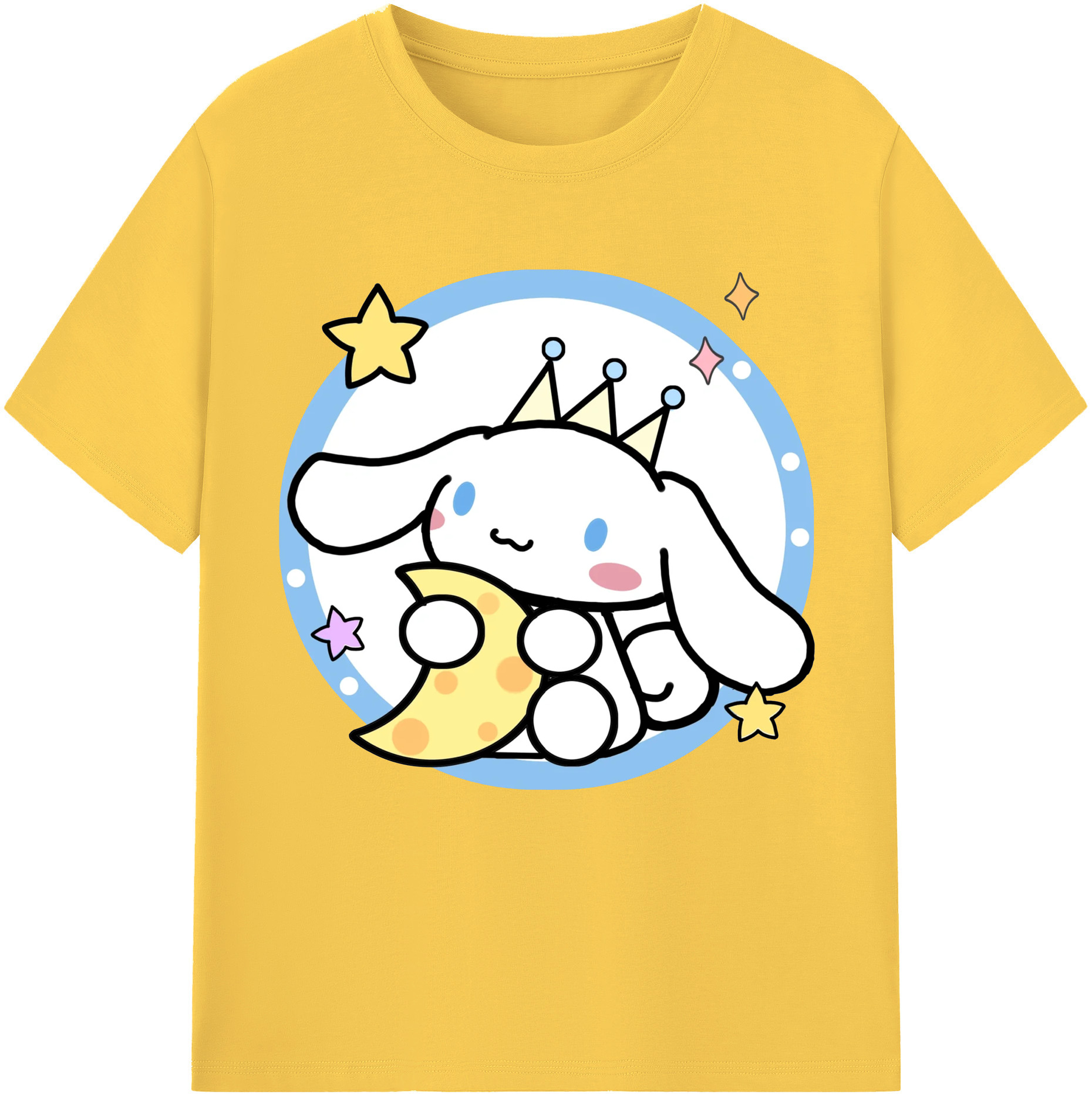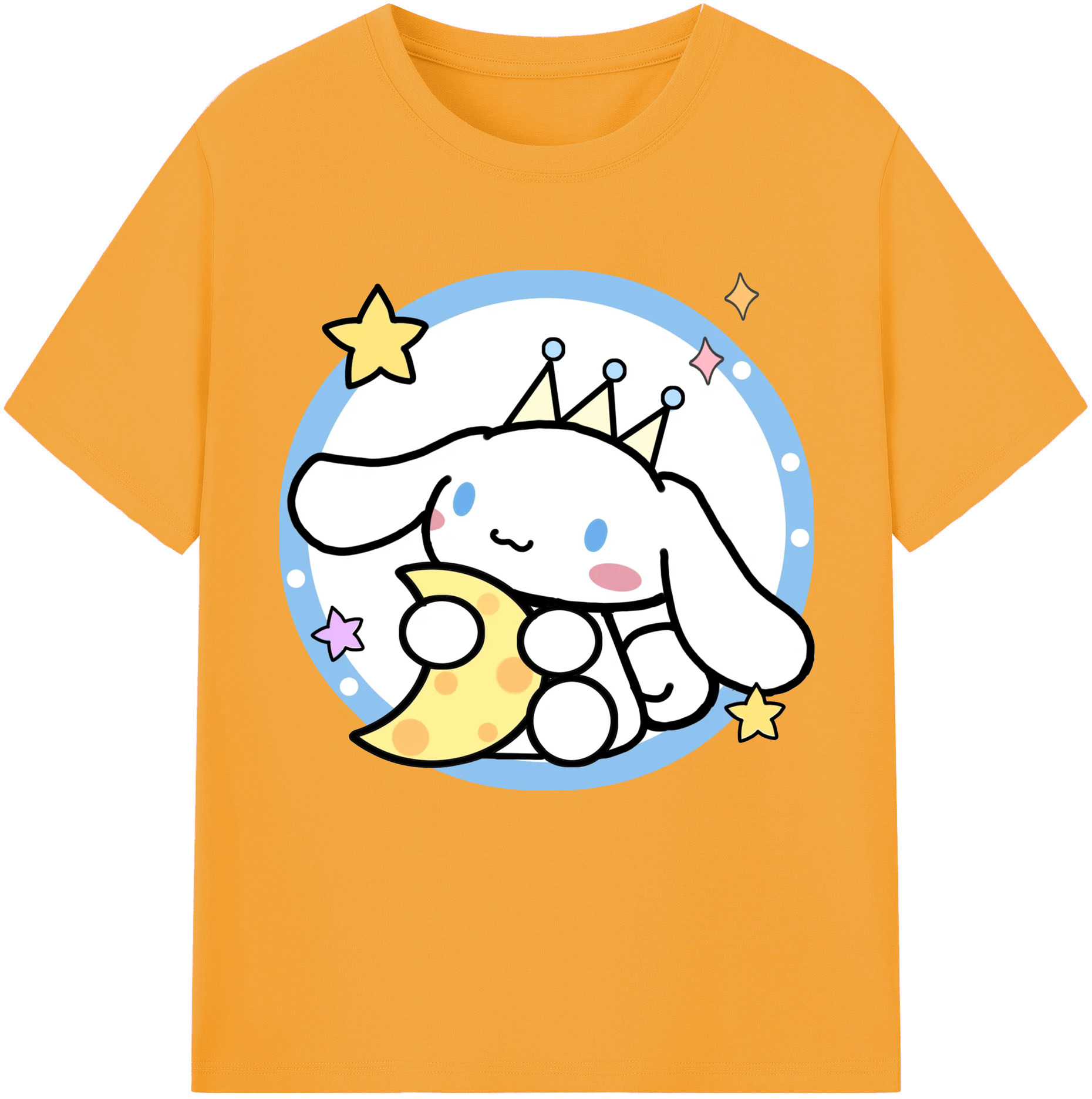 おもしろいシナモロール - 綿100% 半袖Tシャツ ・ フロントプリント ・ 快適 通気性 ・ 日常使い 散歩 スポーツ用