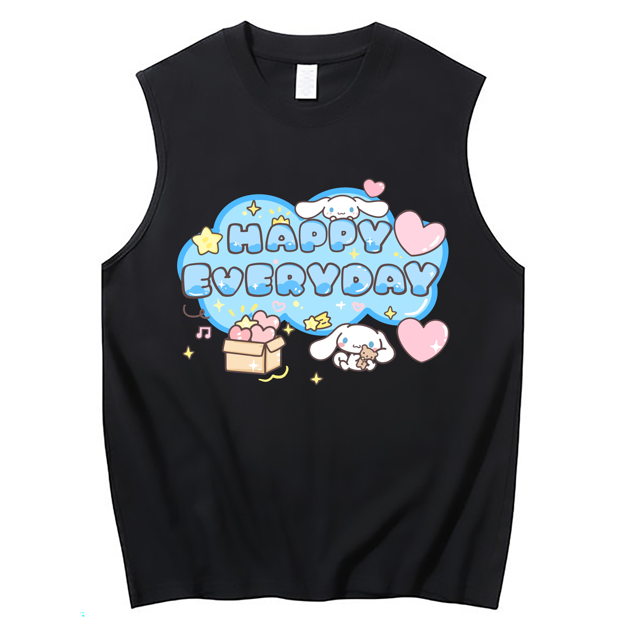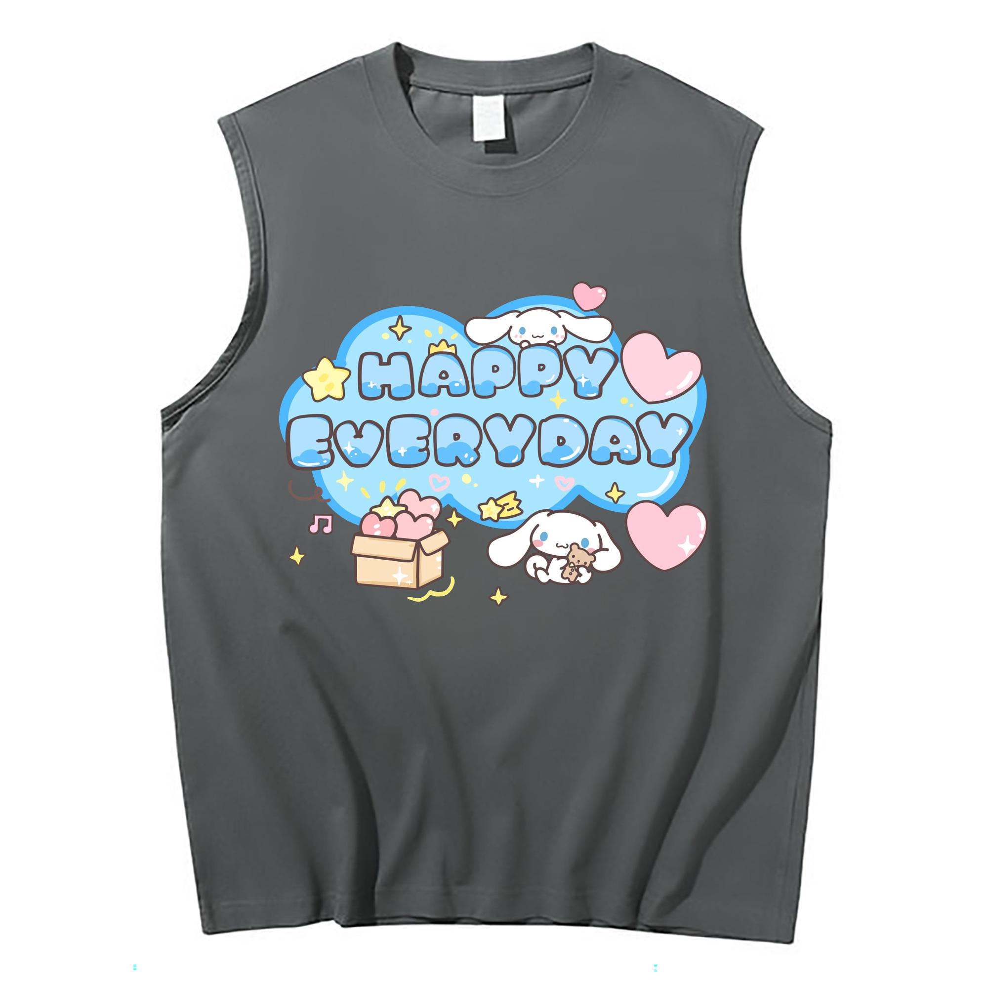 かわいいシナモロール - コットン100% タンクトップ ・ フロントプリント ・ タイトフィット ・ 快適 通気性 ・ スポーツ カジュアル 散歩用