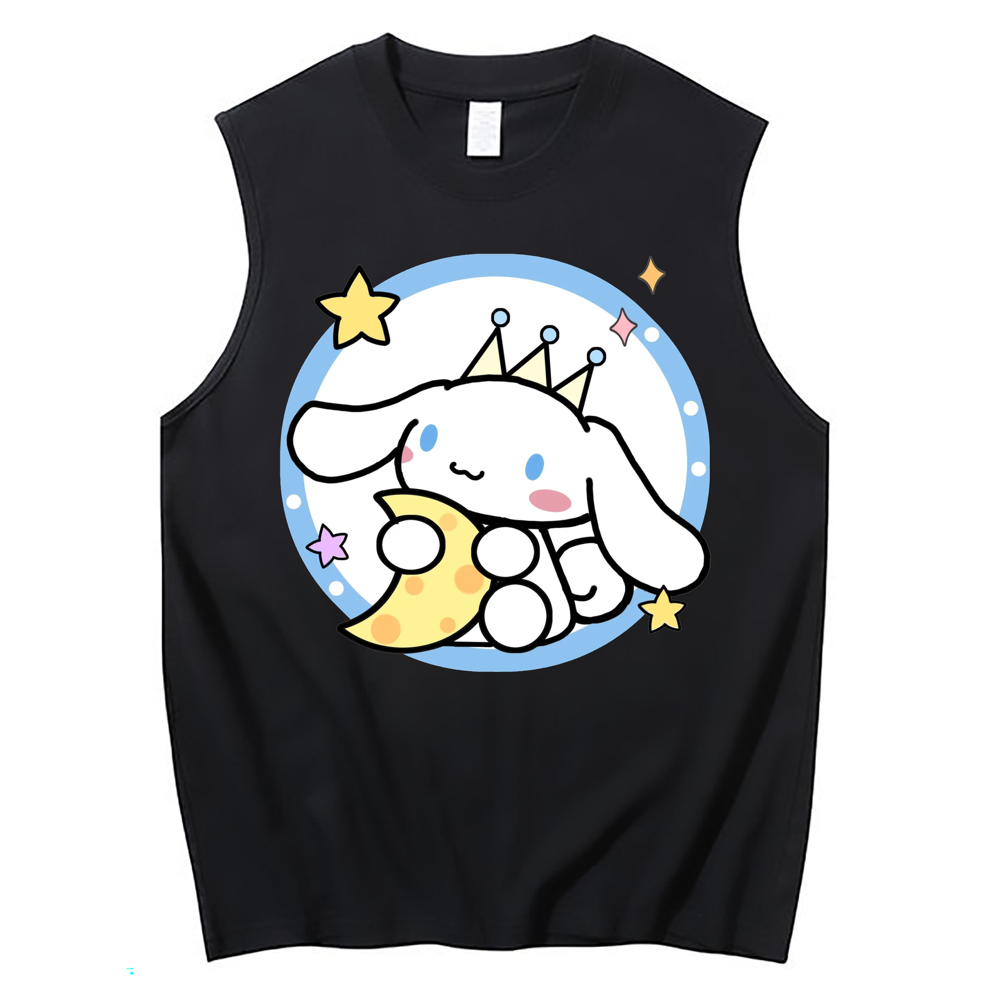 かわいいシナモロール - コットン100% タンクトップ ・ フロントプリント ・ タイトフィット ・ 快適 通気性 ・ スポーツ カジュアル 散歩用