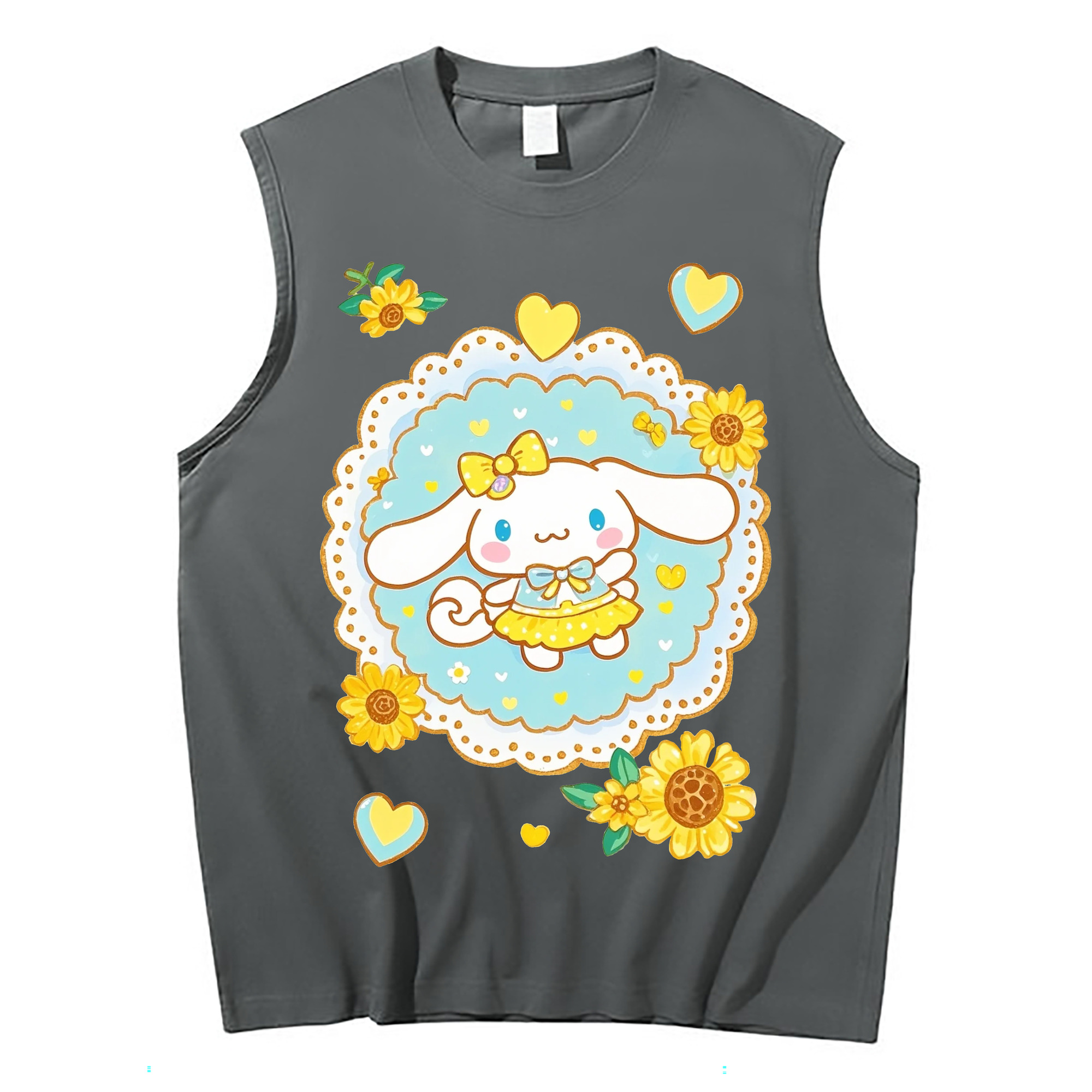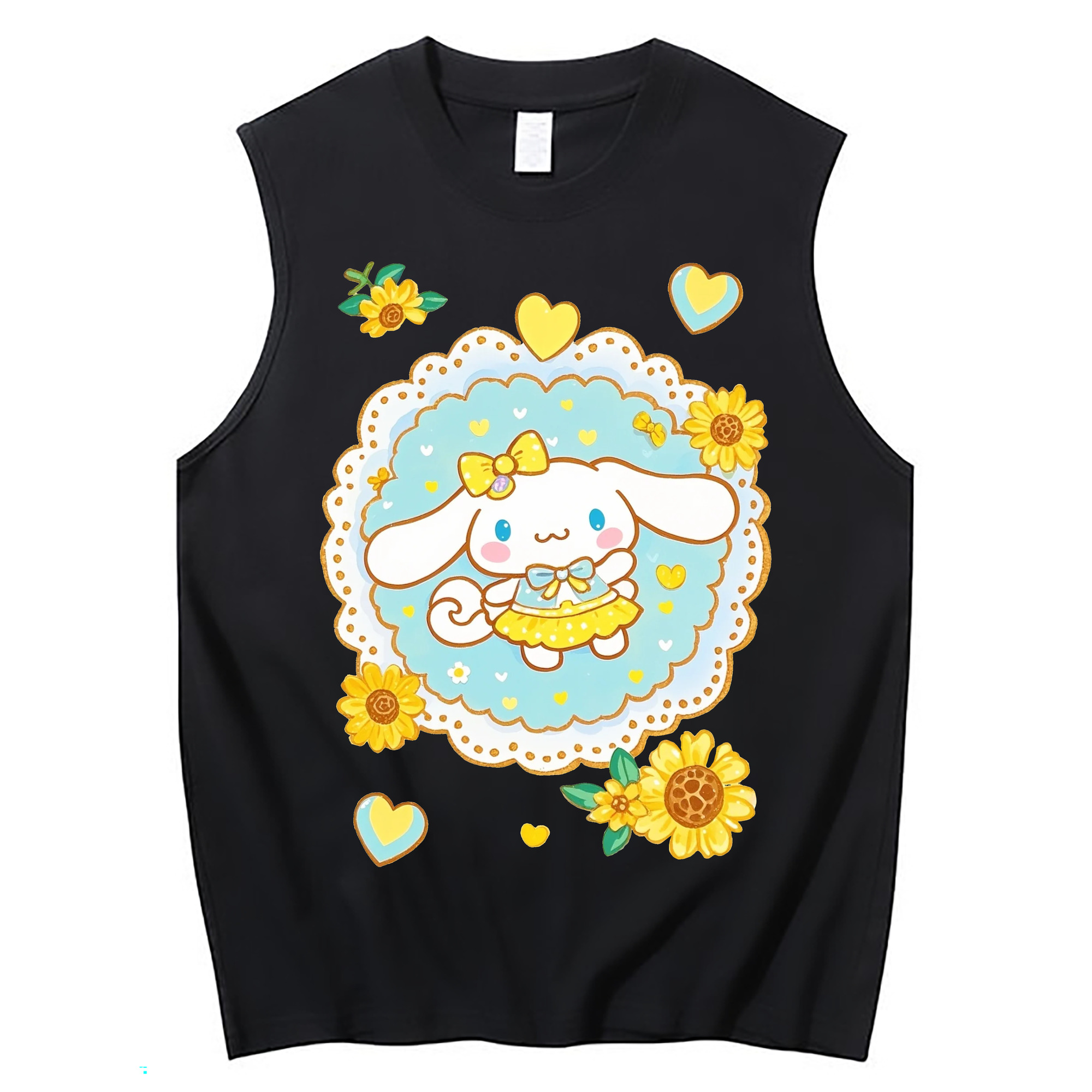 かわいいシナモロール - コットン100% タンクトップ ・ フロントプリント ・ タイトフィット ・ 快適 通気性 ・ スポーツ カジュアル 散歩用