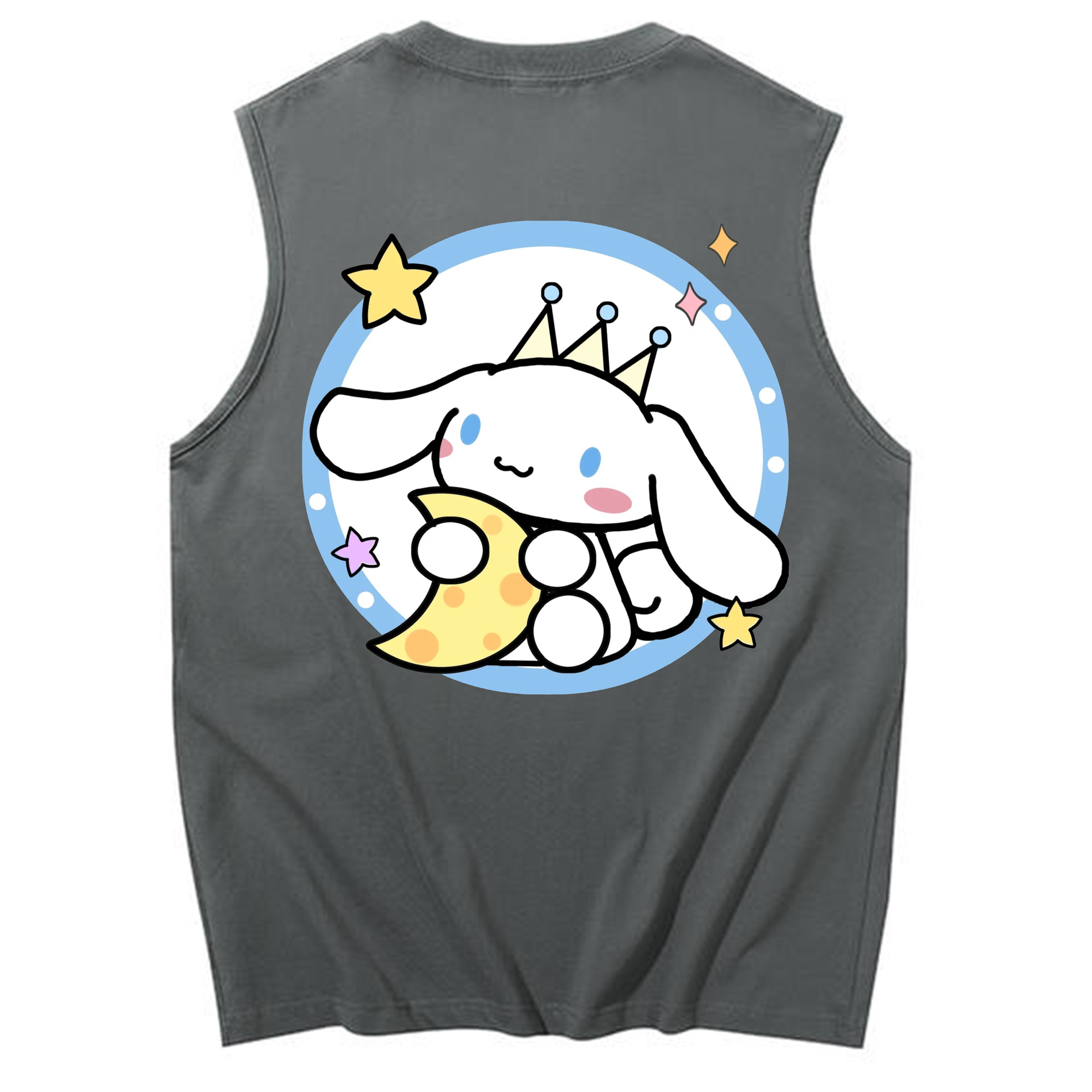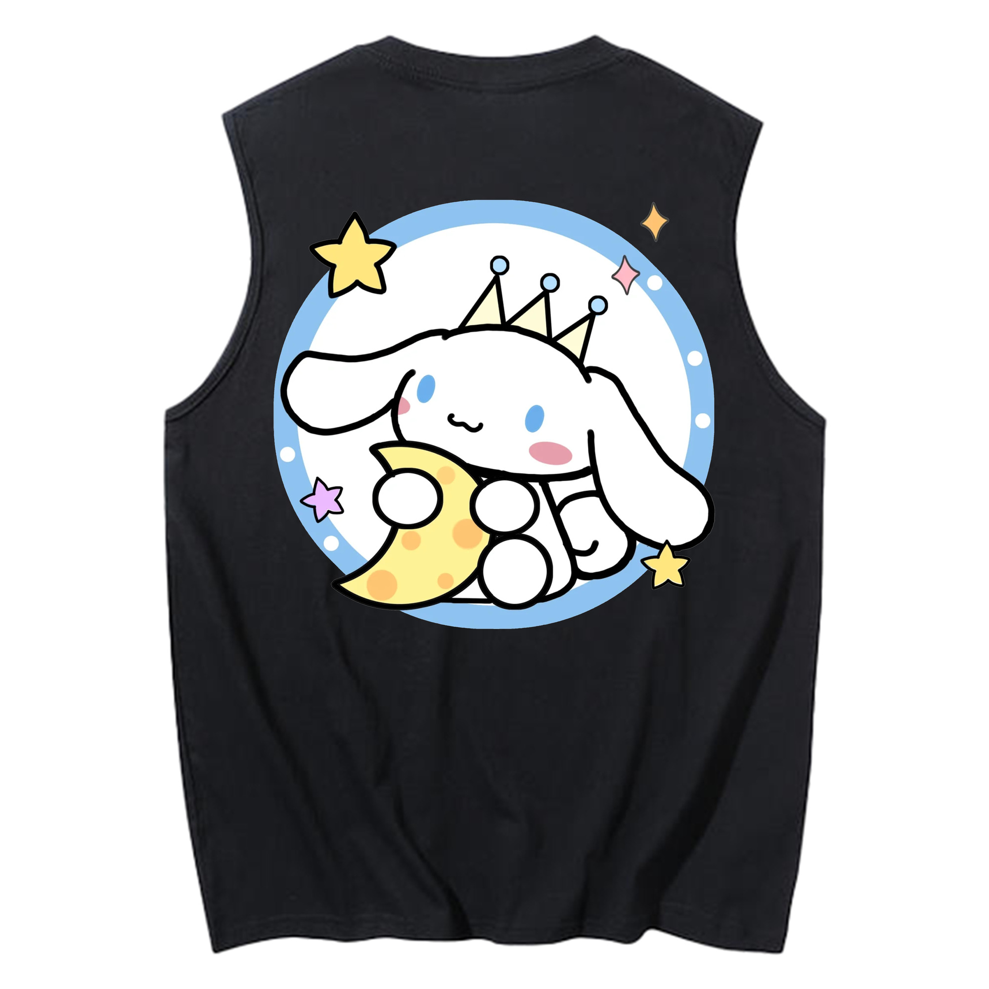 かわいいシナモロール - コットン100% タンクトップ ・ 背面プリント ・ タイトシルエット ・ 快適 通気性 ・ スポーツ カジュアル 散歩用