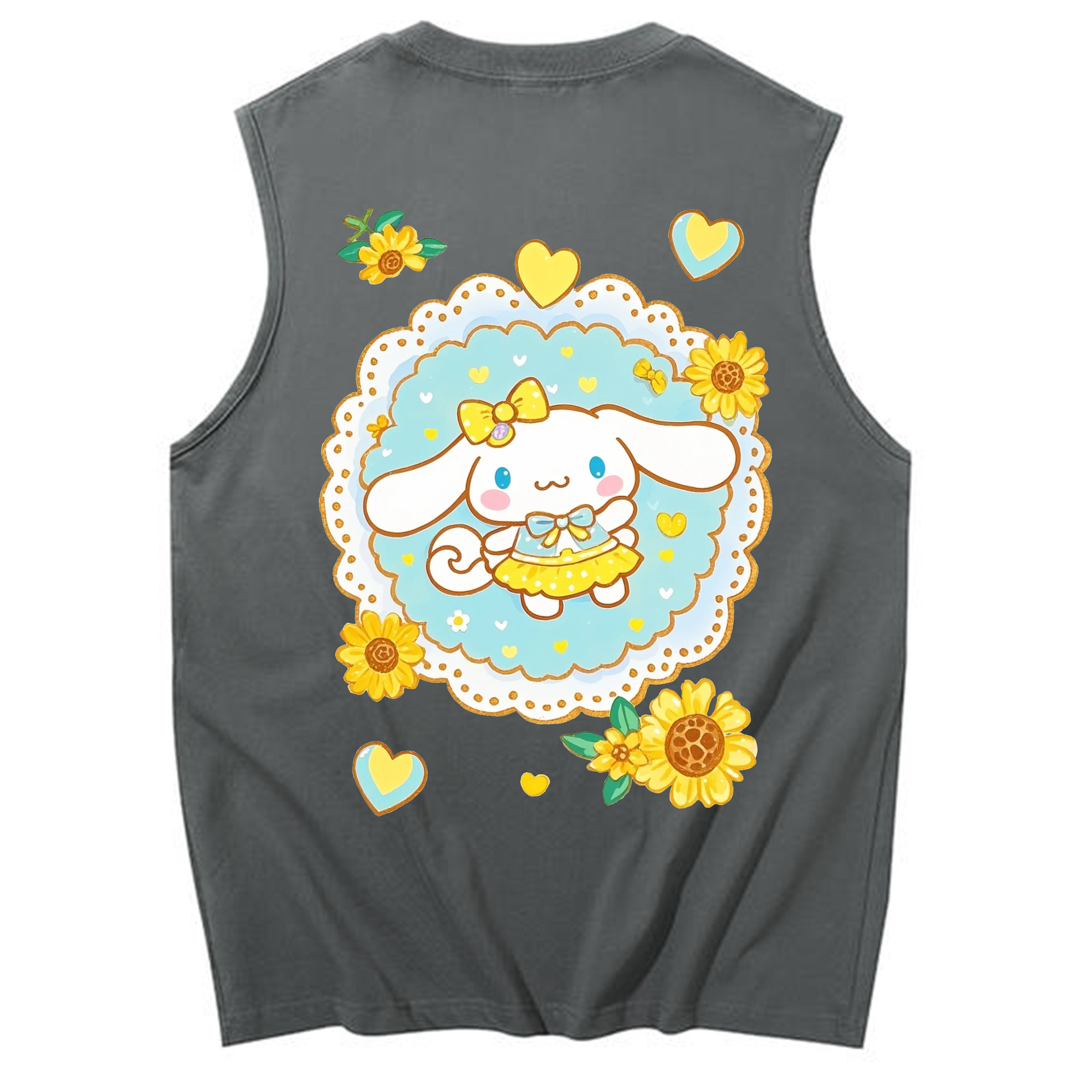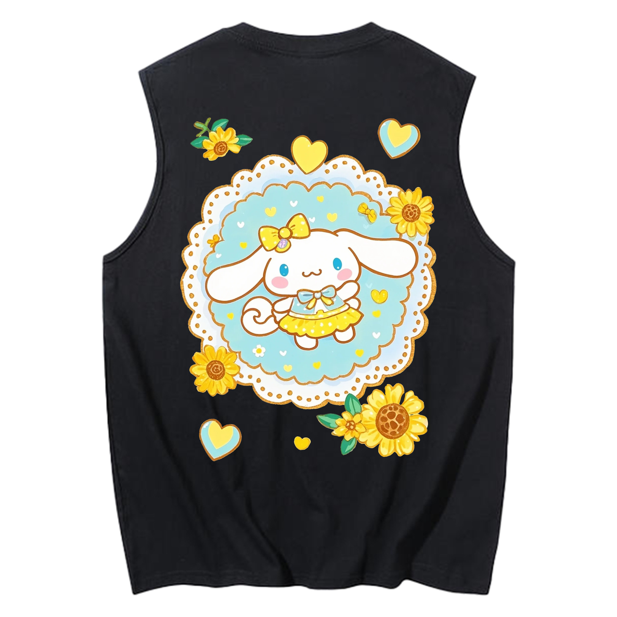 かわいいシナモロール - コットン100% タンクトップ ・ 背面プリント ・ タイトシルエット ・ 快適 通気性 ・ スポーツ カジュアル 散歩用