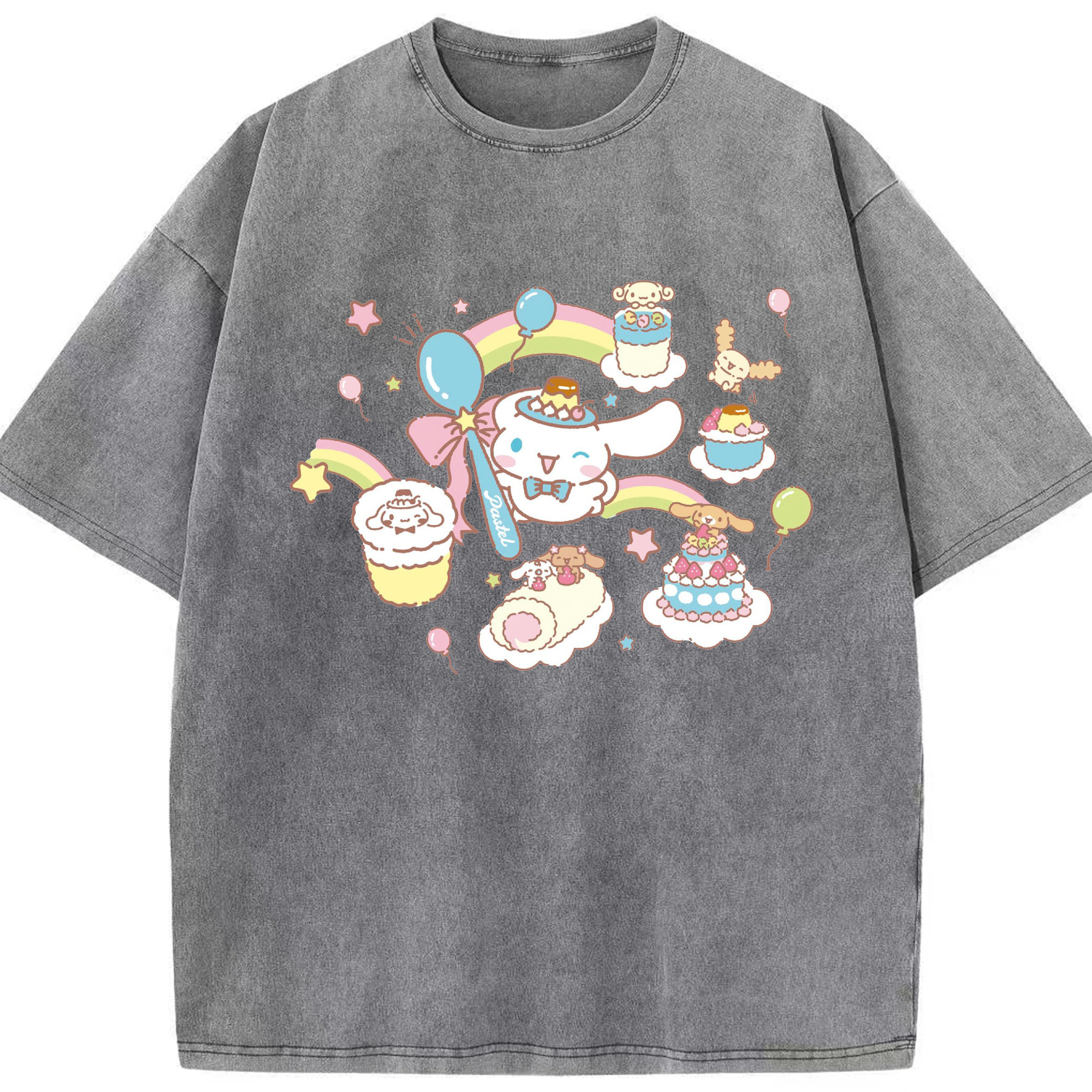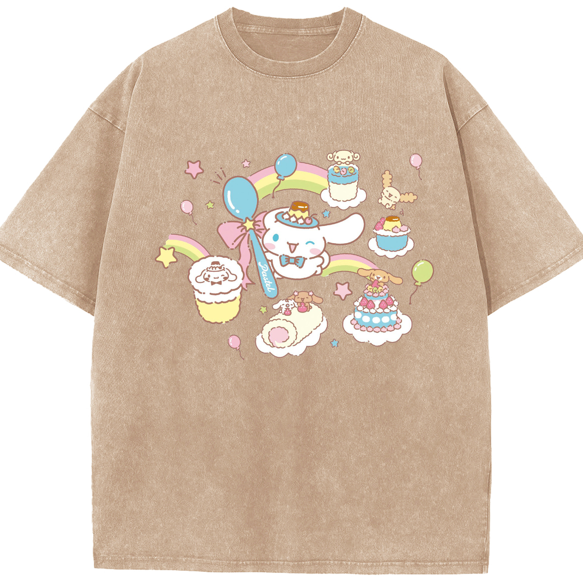 サンリオファミリー新作 - 綿100% ヴィンテージ風 半袖Tシャツ ・ フロントプリント ・ 柔らか肌触り ・ 通気性 快適 ・ スポーツ カジュアル 外出用