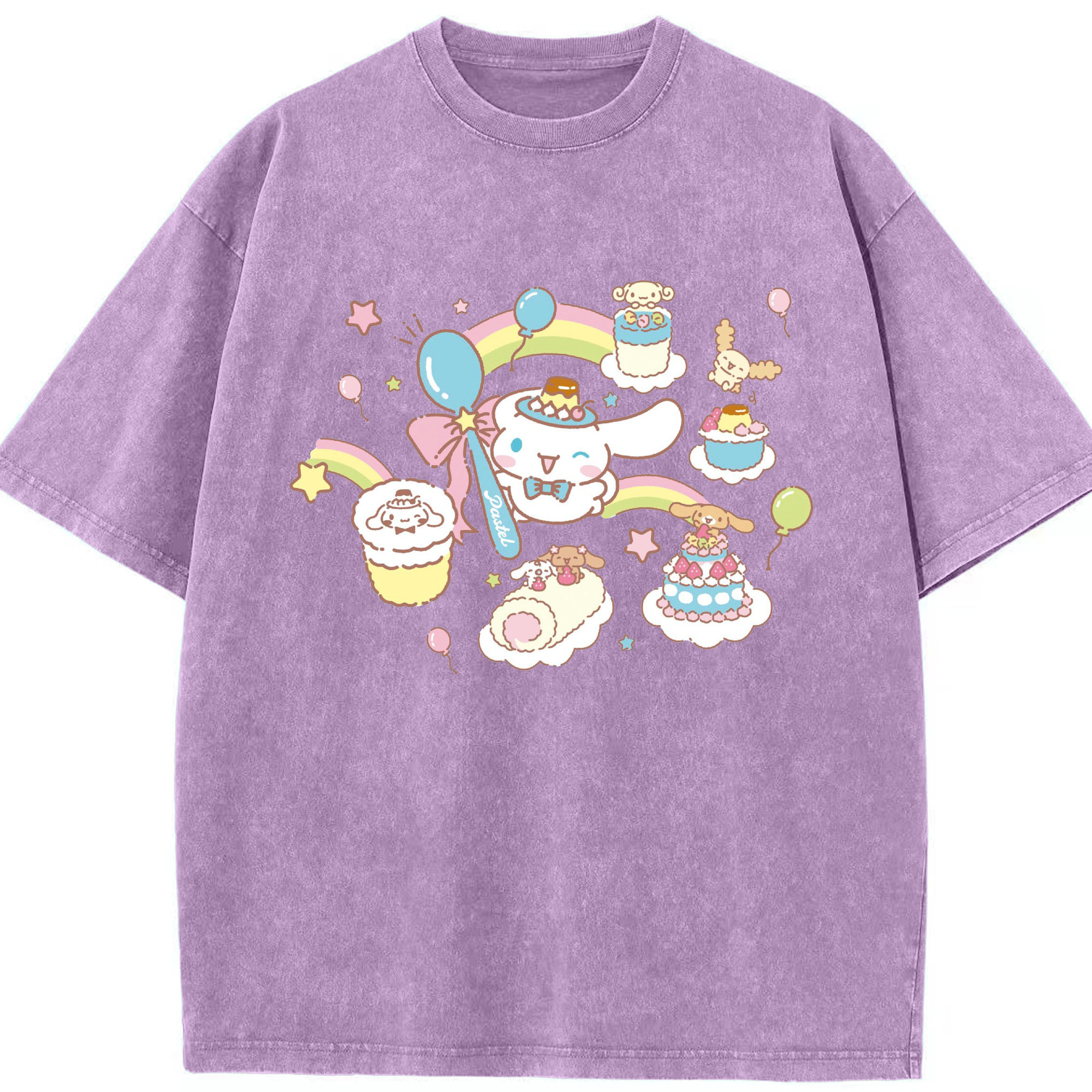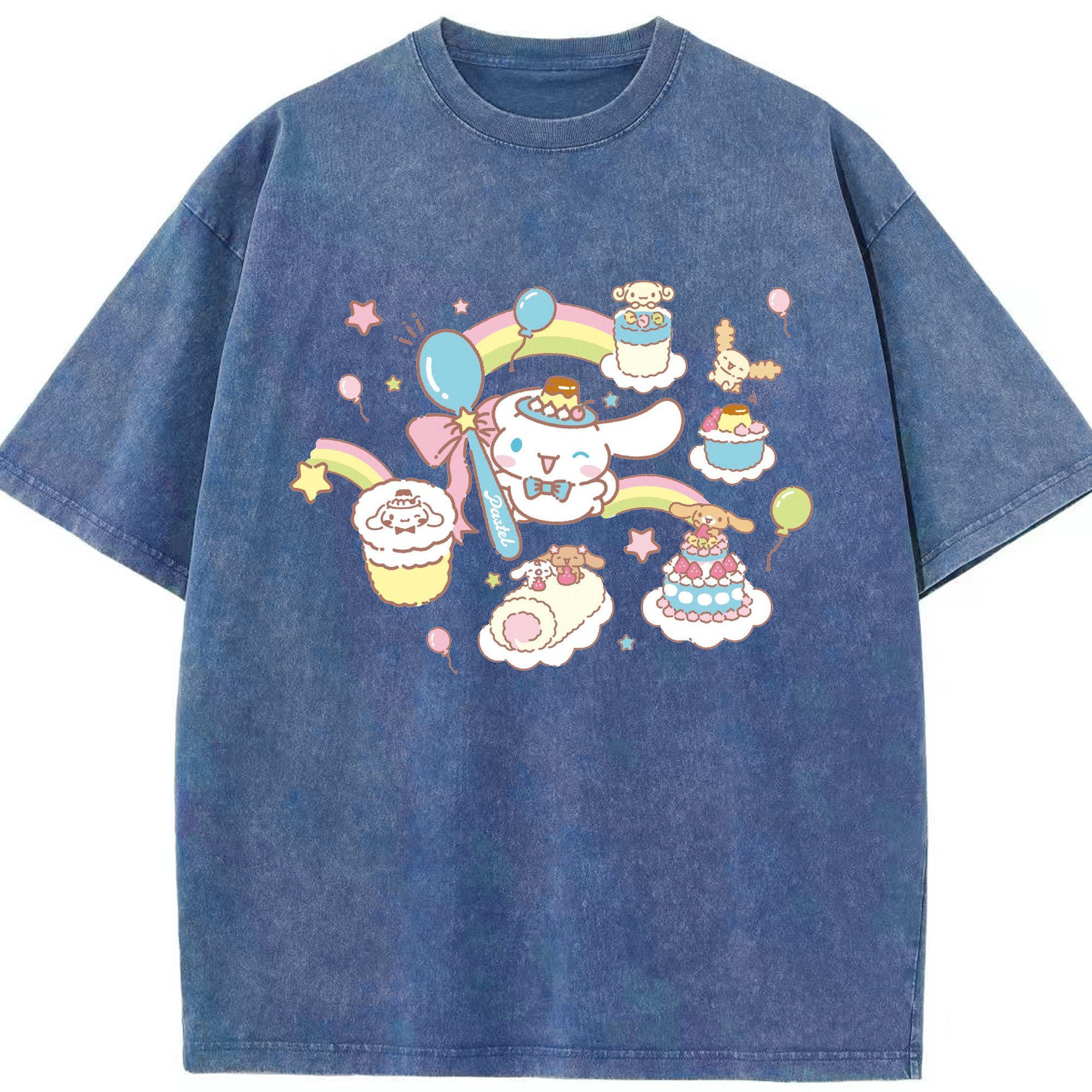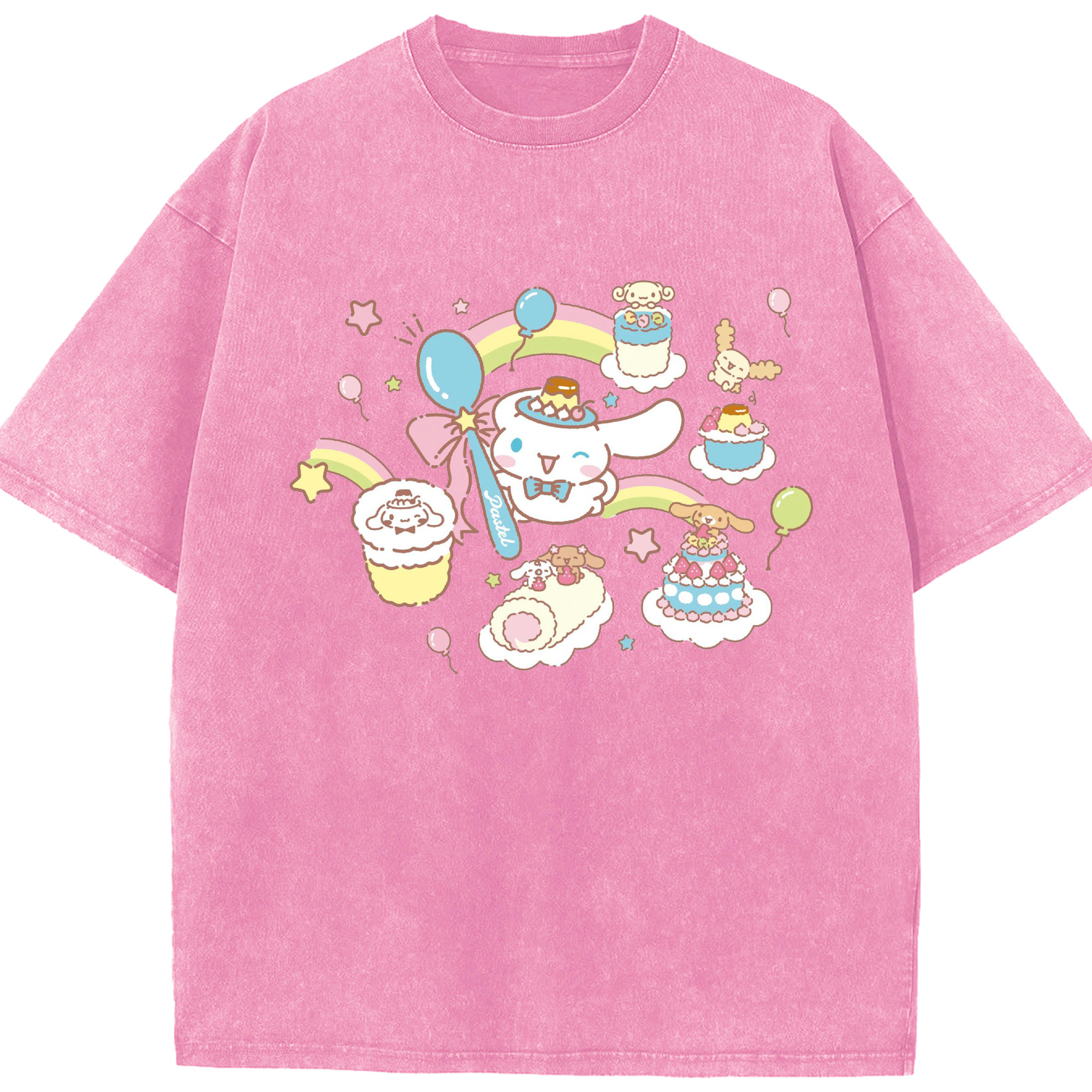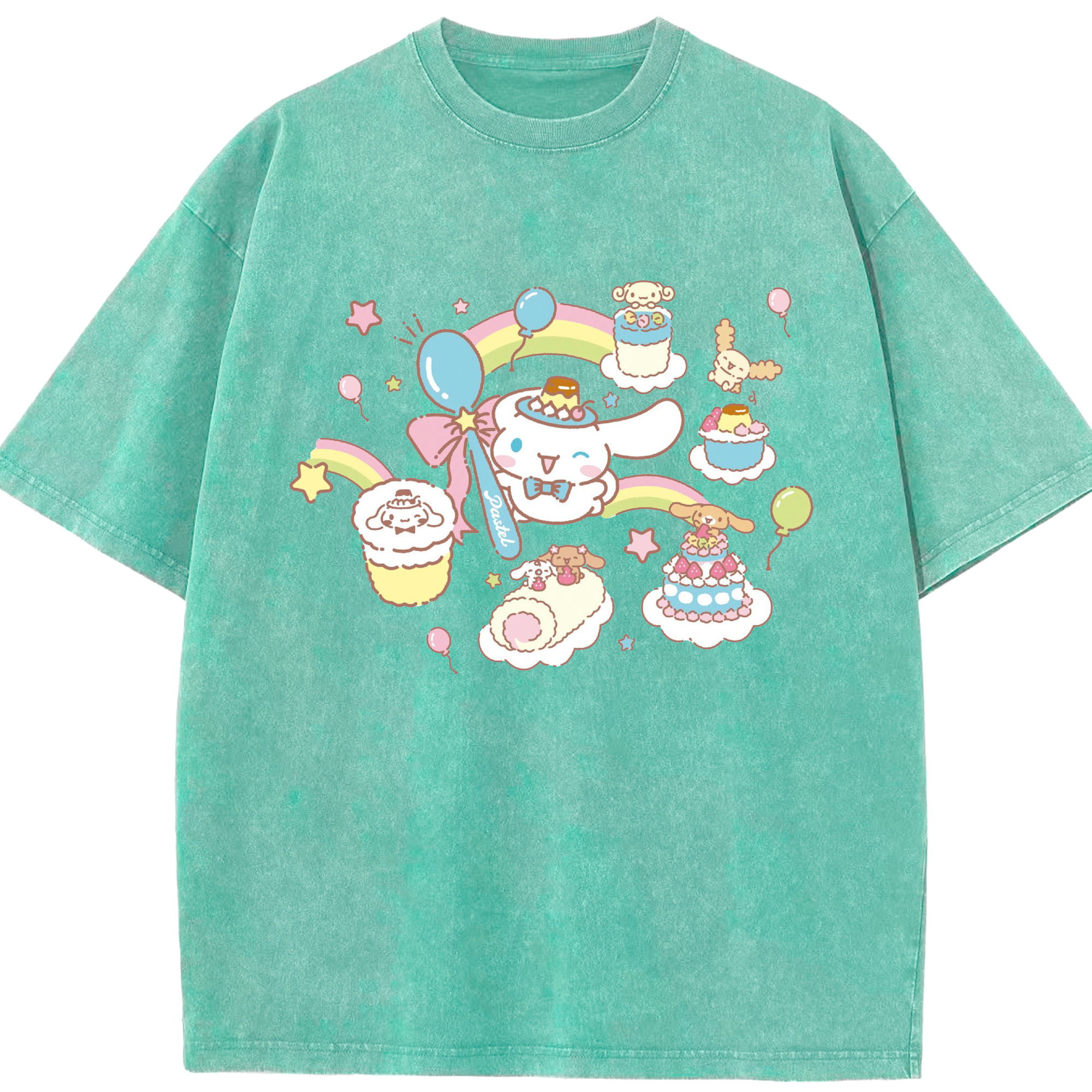 かわいいシナモロール - 綿100% 半袖Tシャツ ・ フロントプリント ・ 快適 通気性 ・ 日常使い 散歩 スポーツ用
