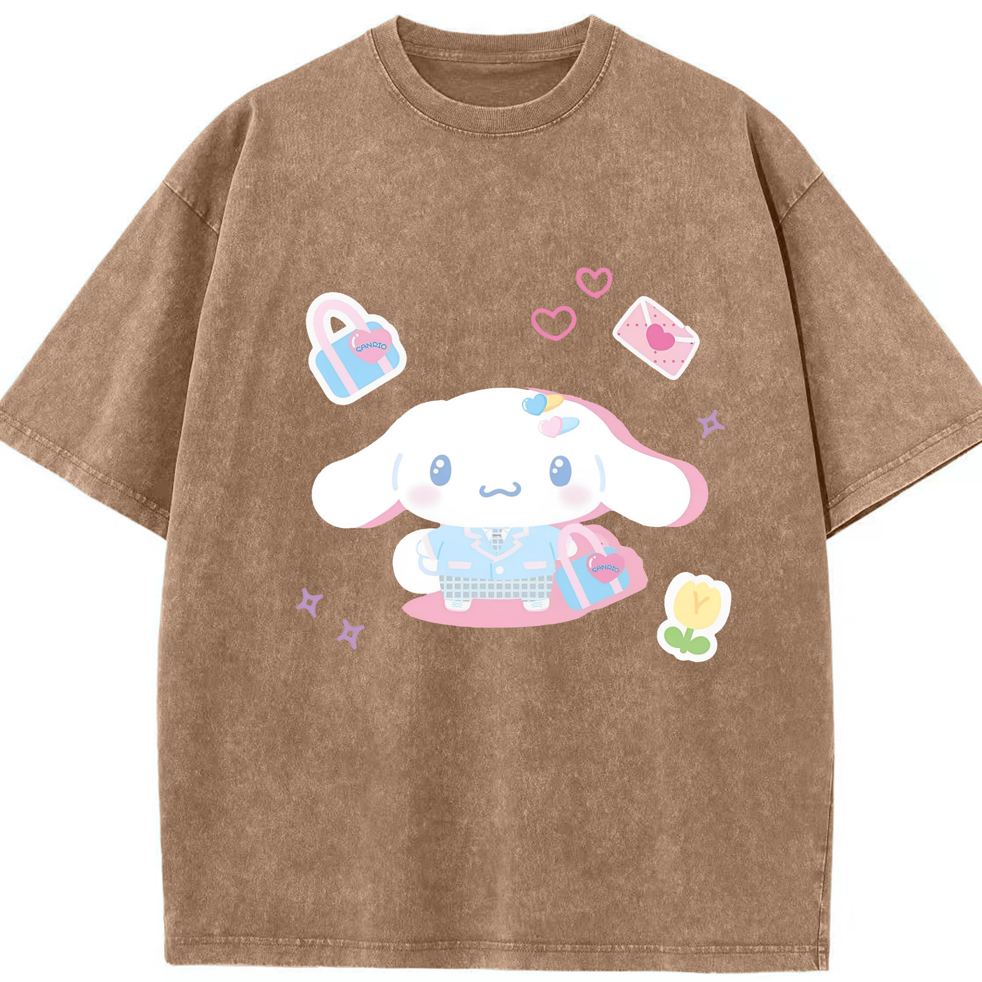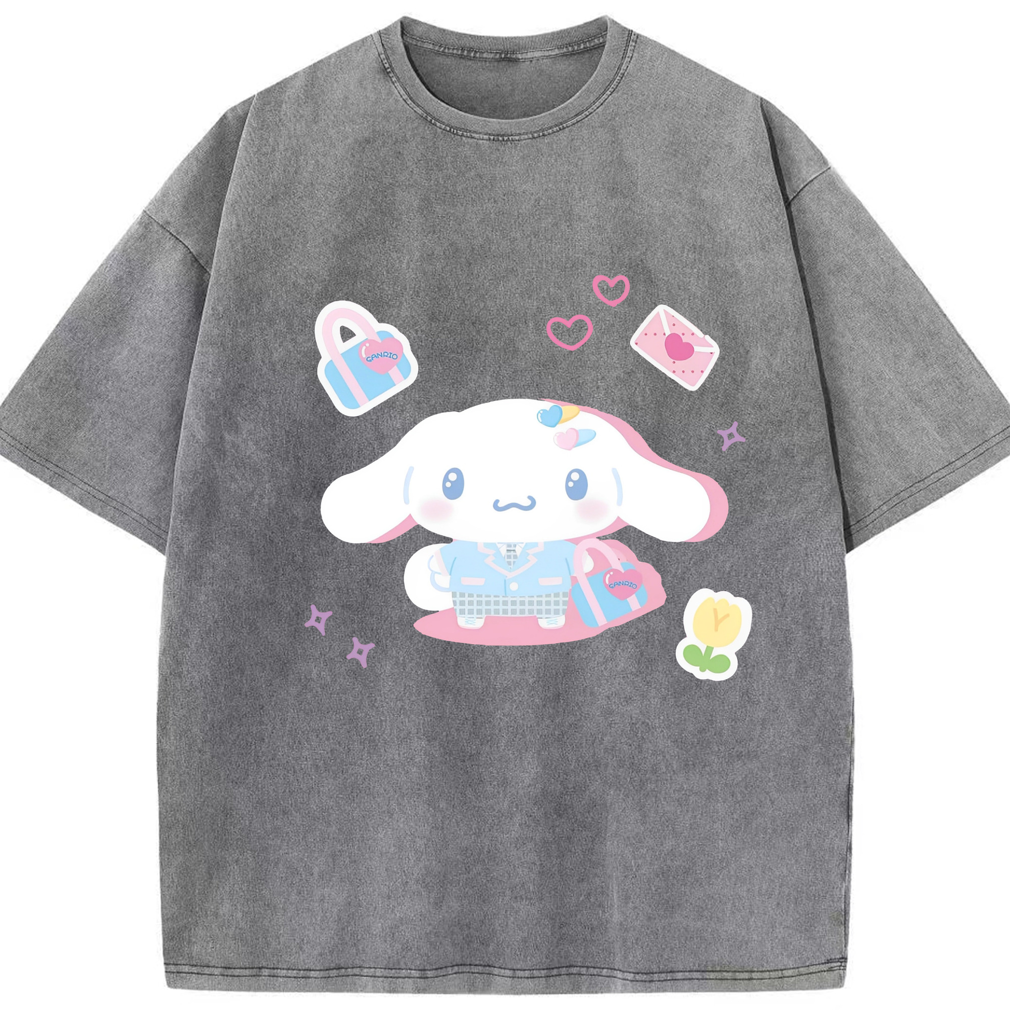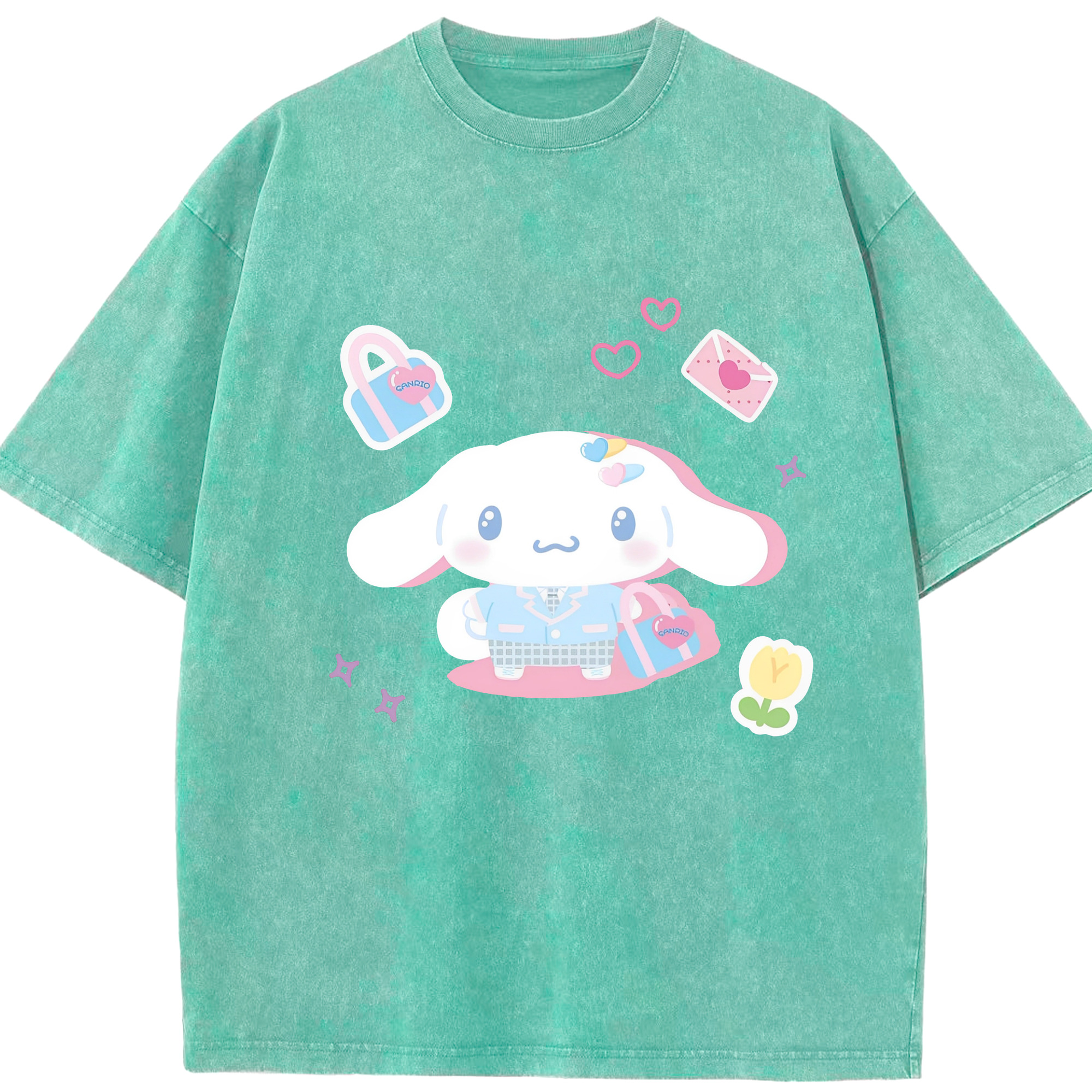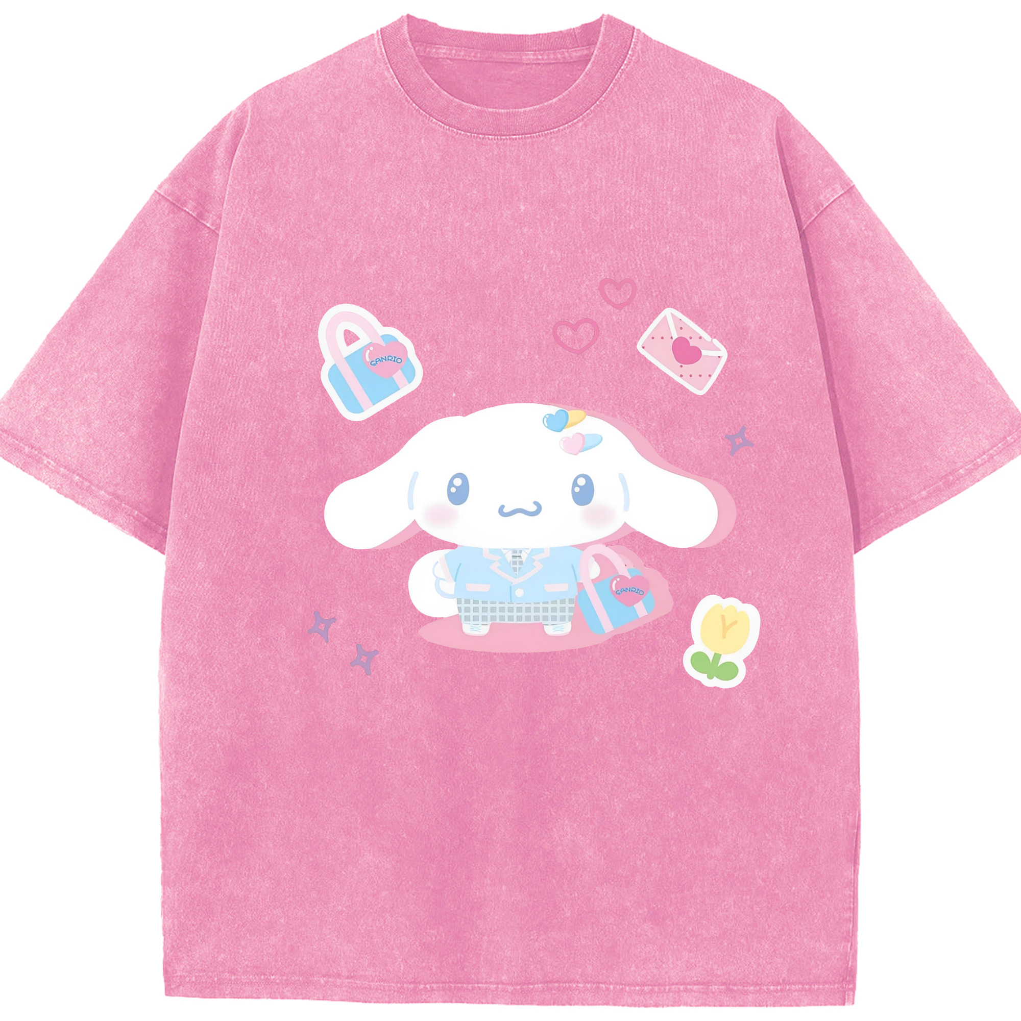 かわいいシナモロール - 綿100% 半袖Tシャツ ・ フロントプリント ・ 快適 通気性 ・ 日常使い 散歩 スポーツ用