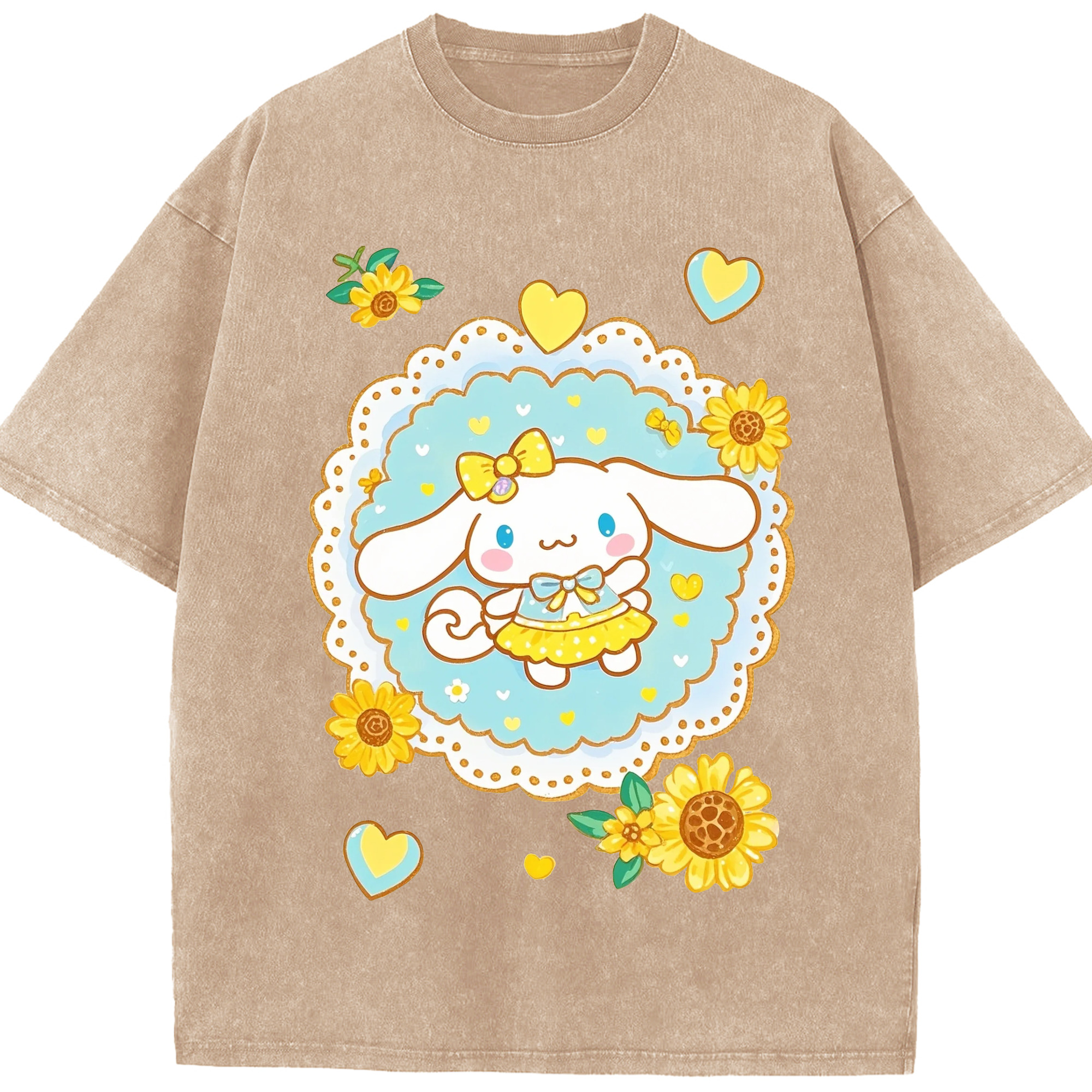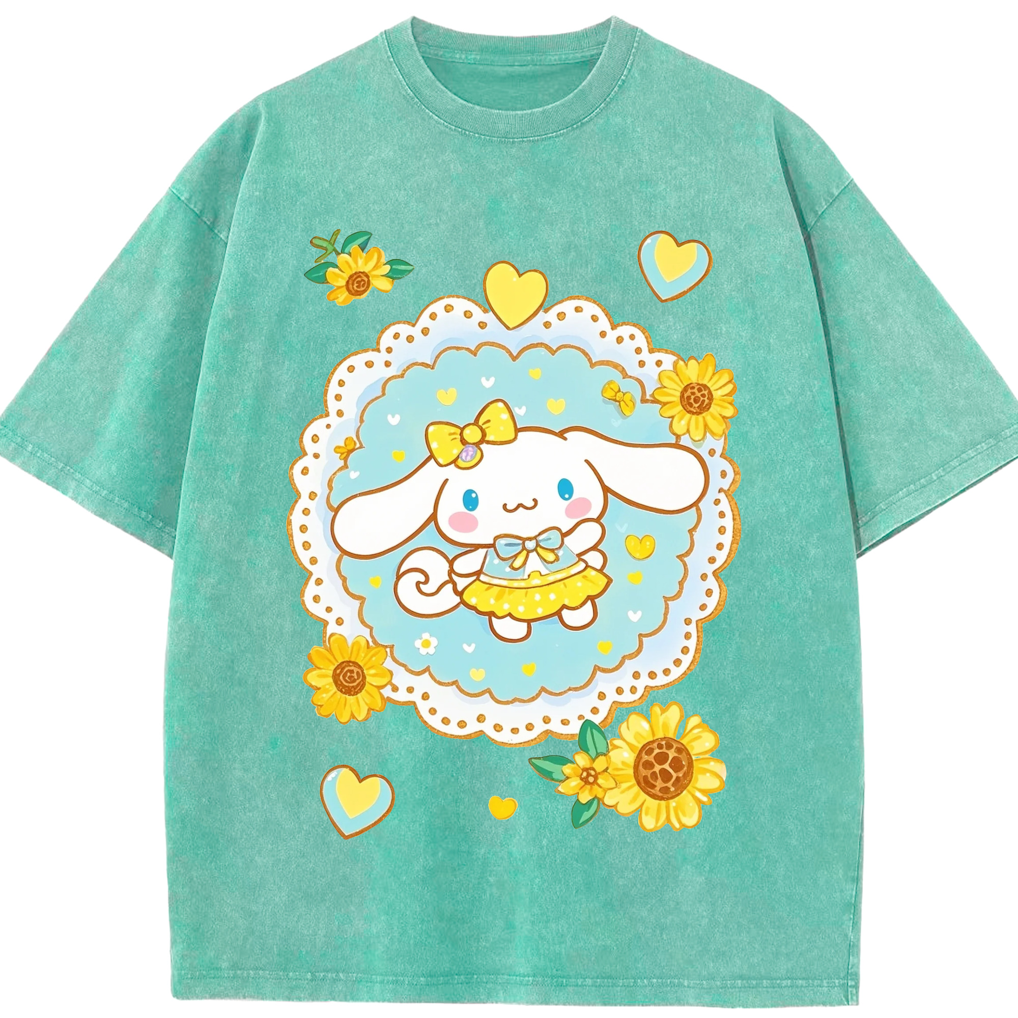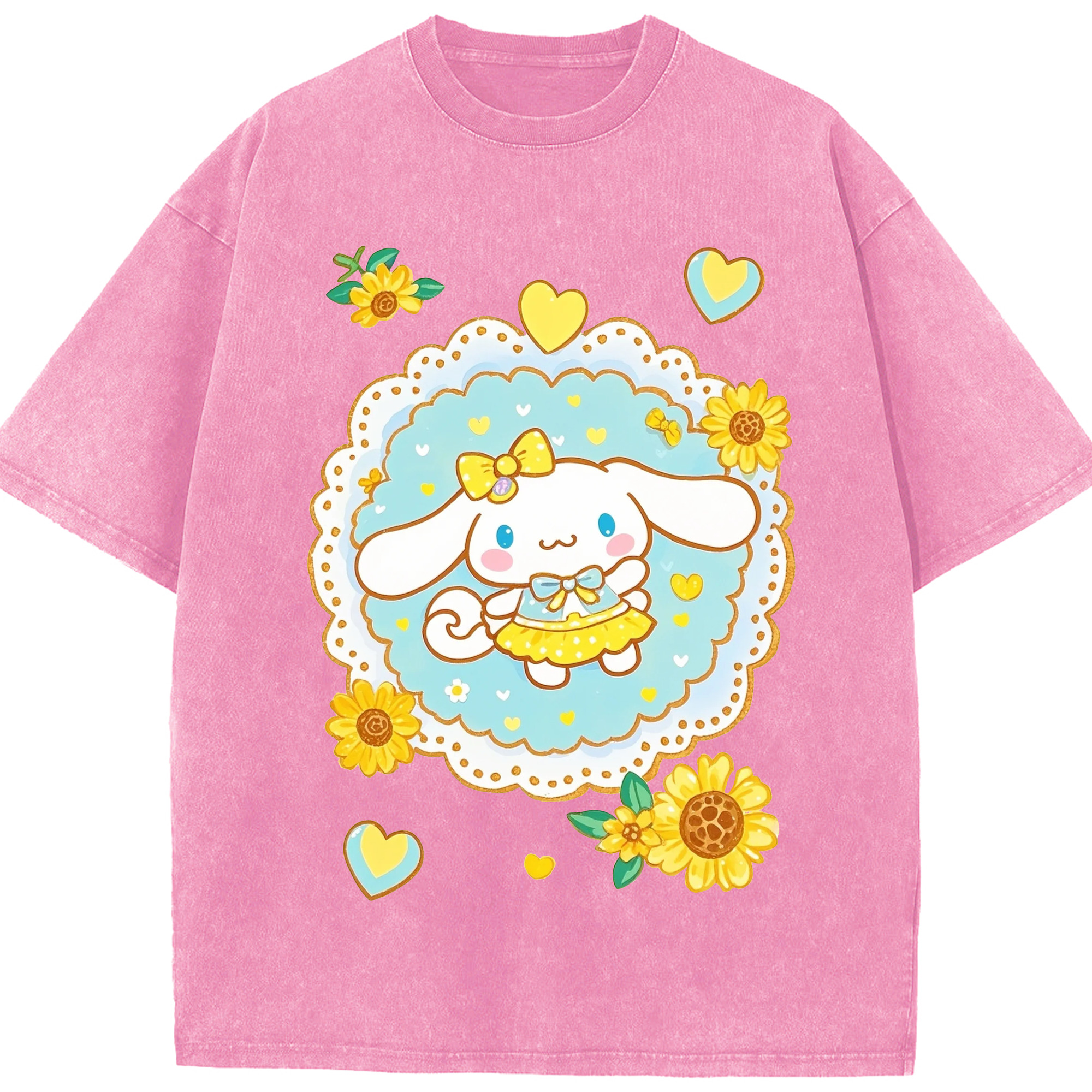 かわいいシナモロール - 綿100% 半袖Tシャツ ・ フロントプリント ・ 快適 通気性 ・ 日常使い 散歩 スポーツ用