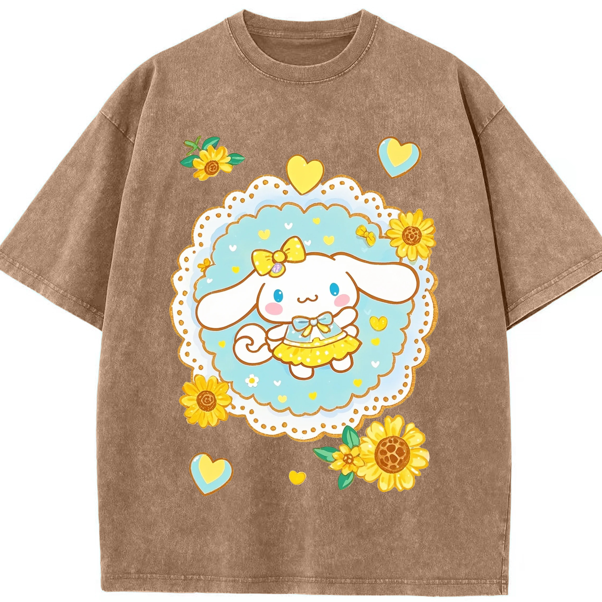 シナモロール&ちいかわ - 綿100% ヴィンテージ風 半袖Tシャツ ・ フロントプリント ・ 柔らか肌触り ・ 通気性 快適 ・ スポーツ カジュアル 外出用