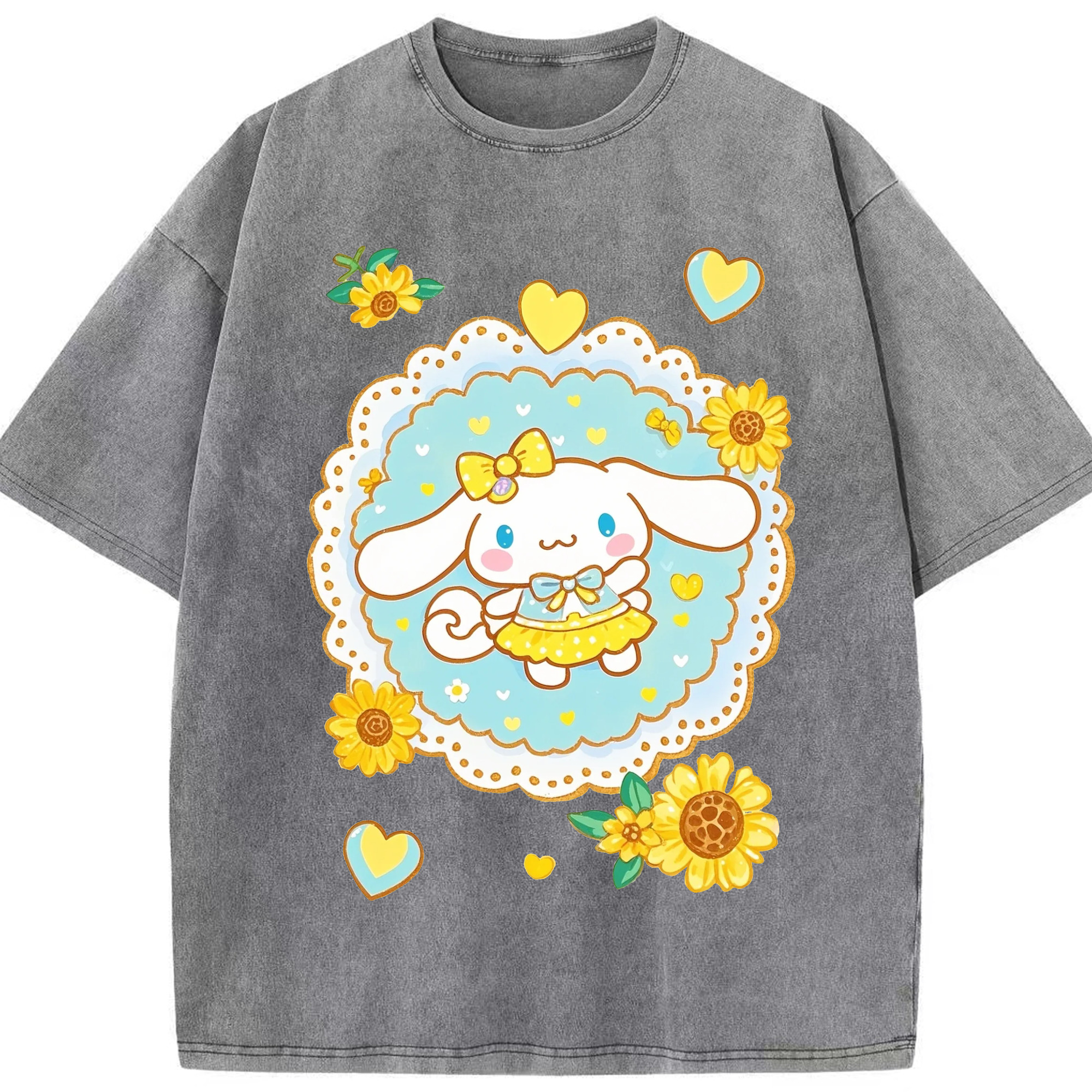 かわいい系サンリオ - 綿100% ヴィンテージ風 半袖Tシャツ ・ フロントプリント ・ 柔らか肌触り ・ 通気性 快適 ・ スポーツ カジュアル 外出用