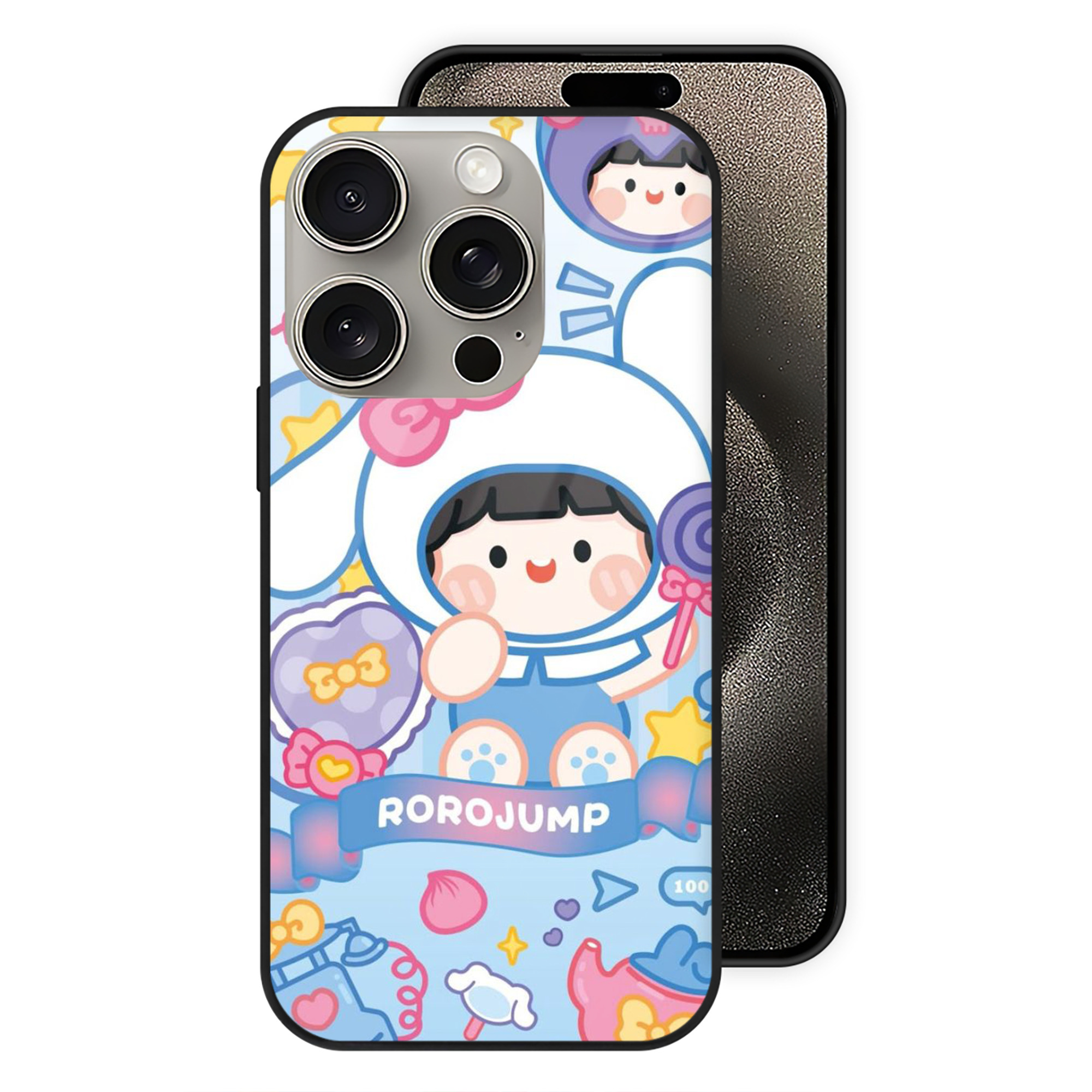 かわいいシナモロール - IPhone15Pro対応 ・ スマホケース ・ 背面ガラス ・ TPU+強化ガラス ・ 耐衝撃 ・ 黄変防止 ・ ワイヤレス充電対応 ・ 3D立体ボタン