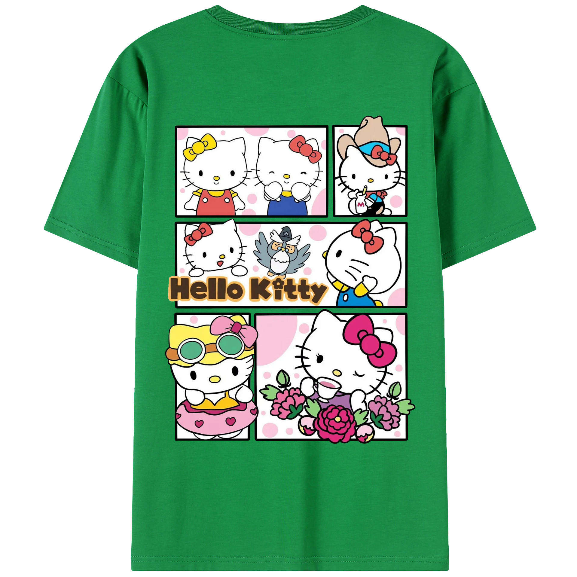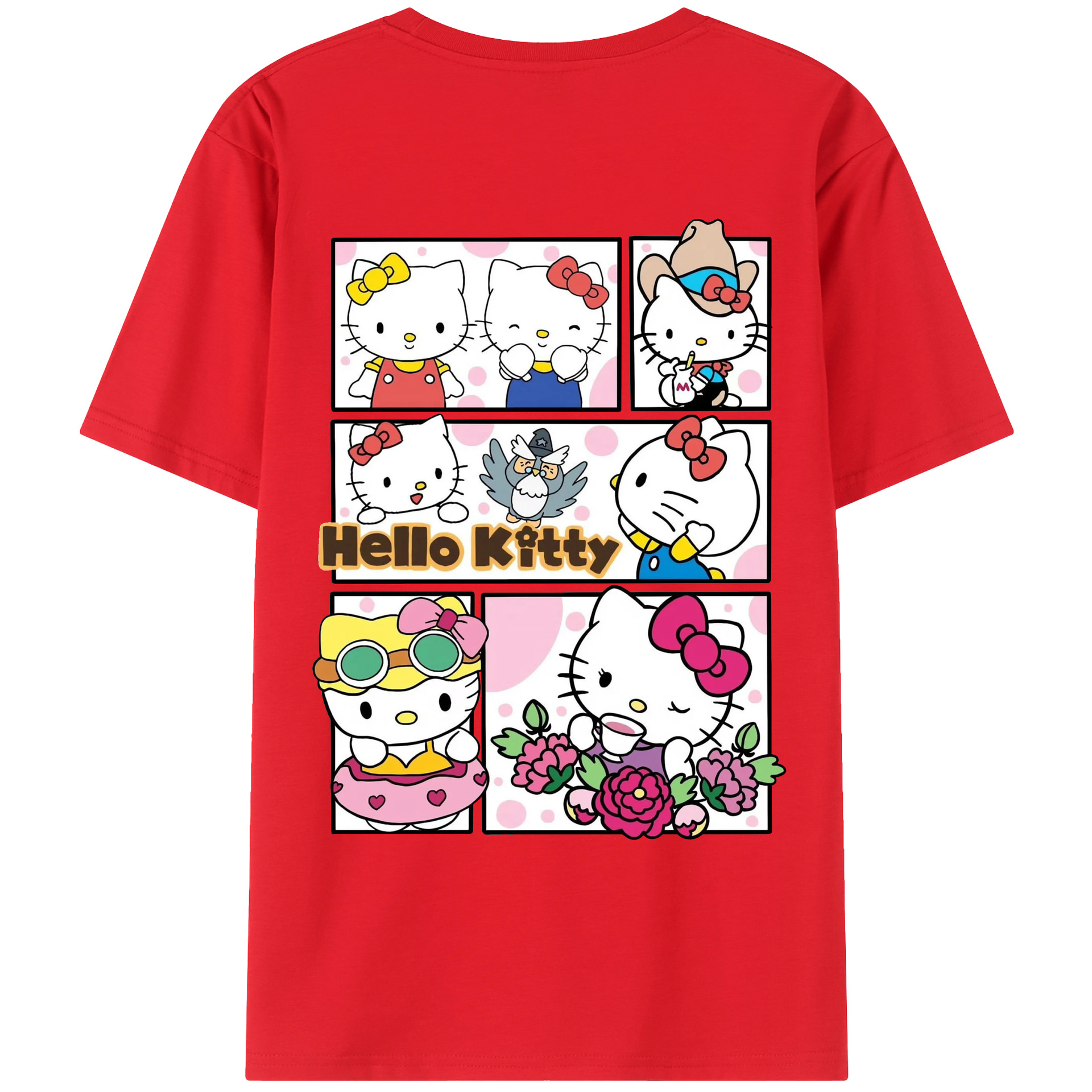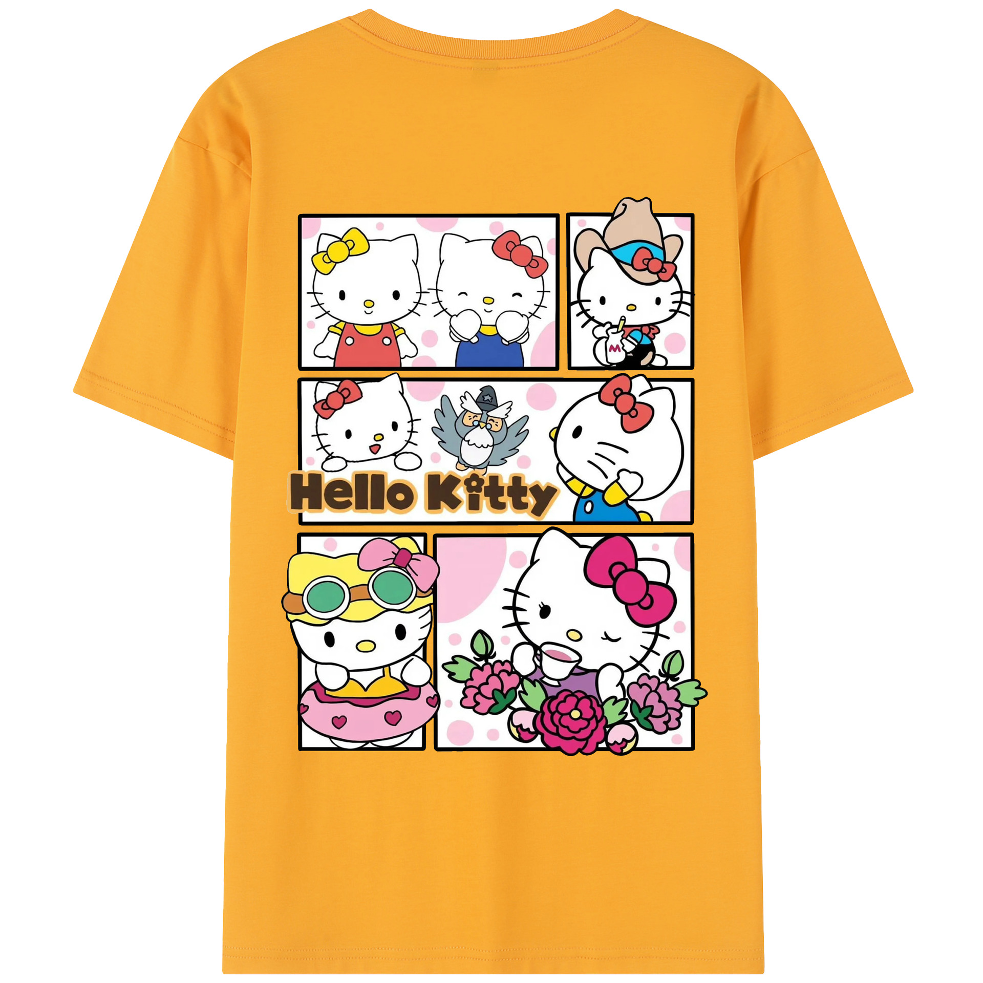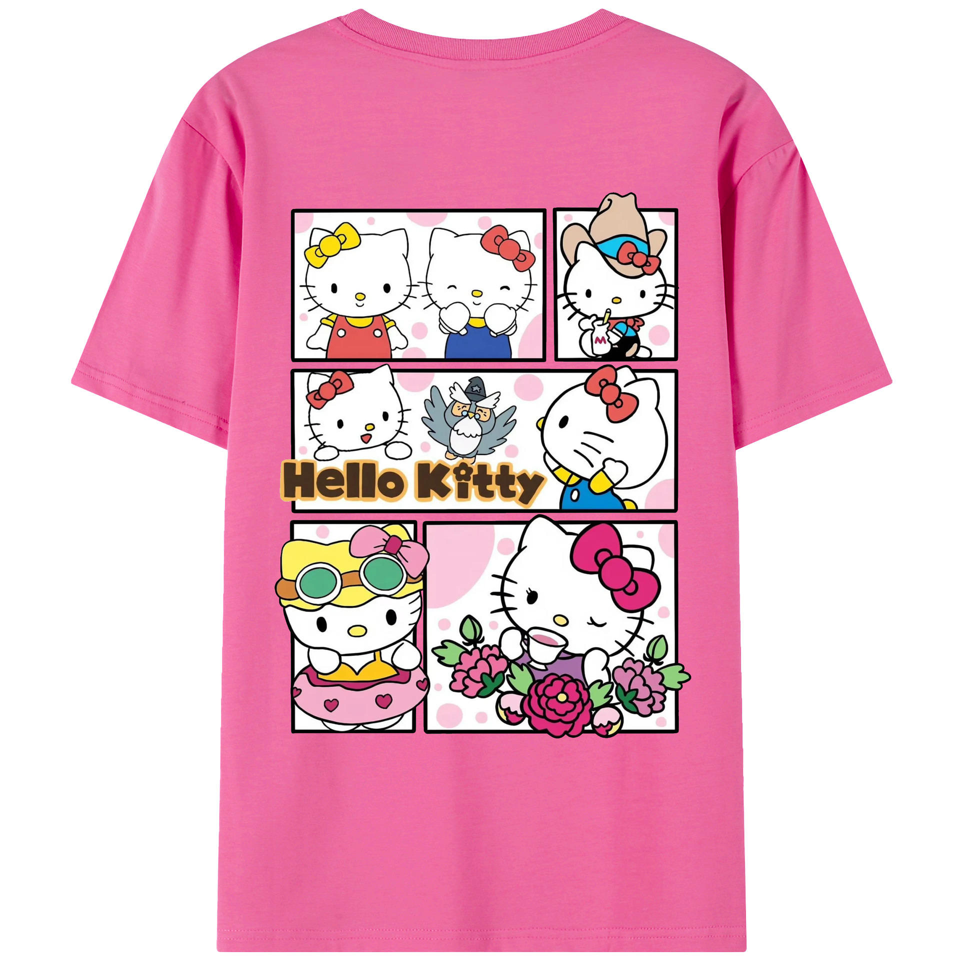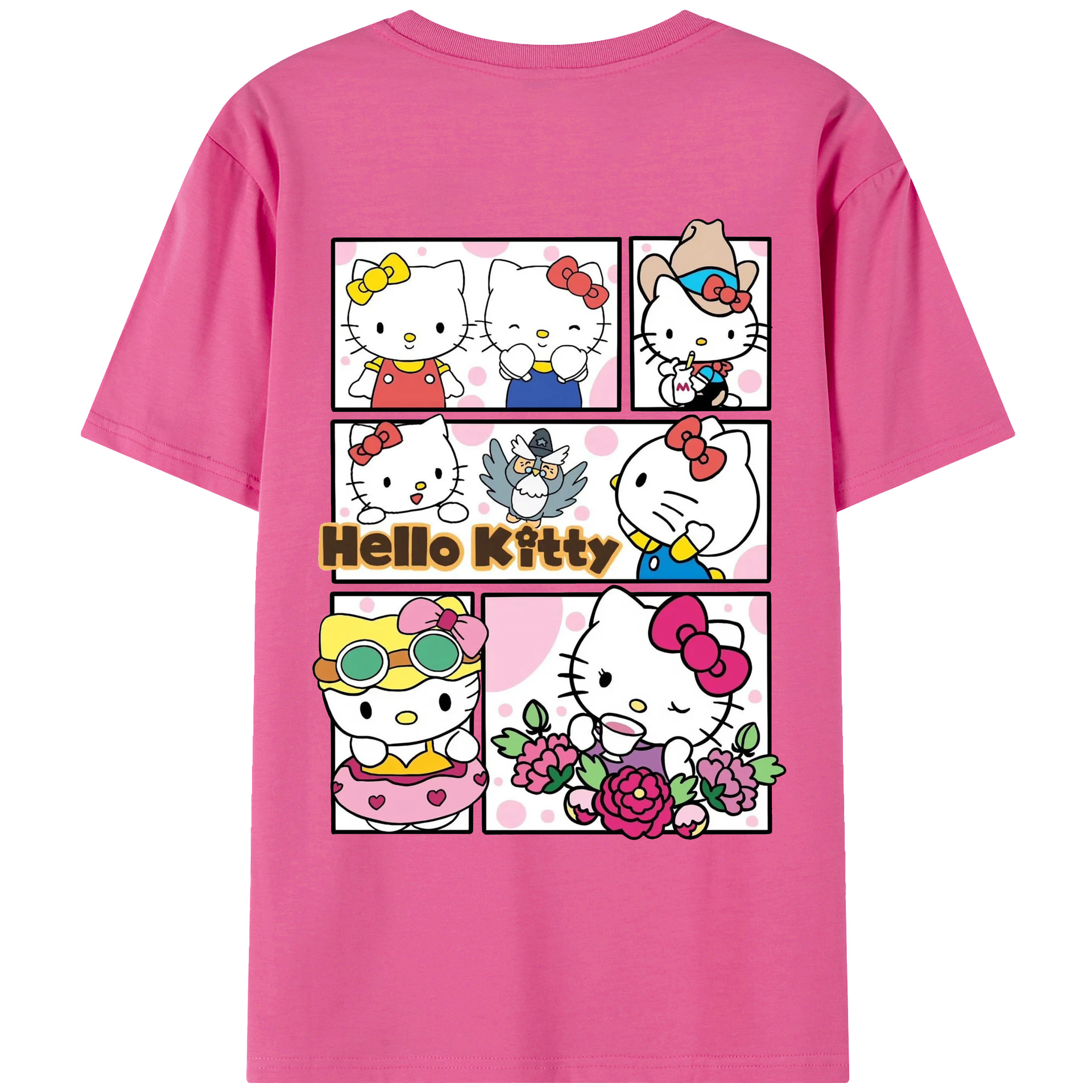 かわいいハローキティ - レディース半袖Tシャツ ・ 綿100% ・ バックプリント ・ 強化クルーネック ・ 二重折り袖口 ・ 快適 通気性 ・ フィットネス カジュアル 旅行用