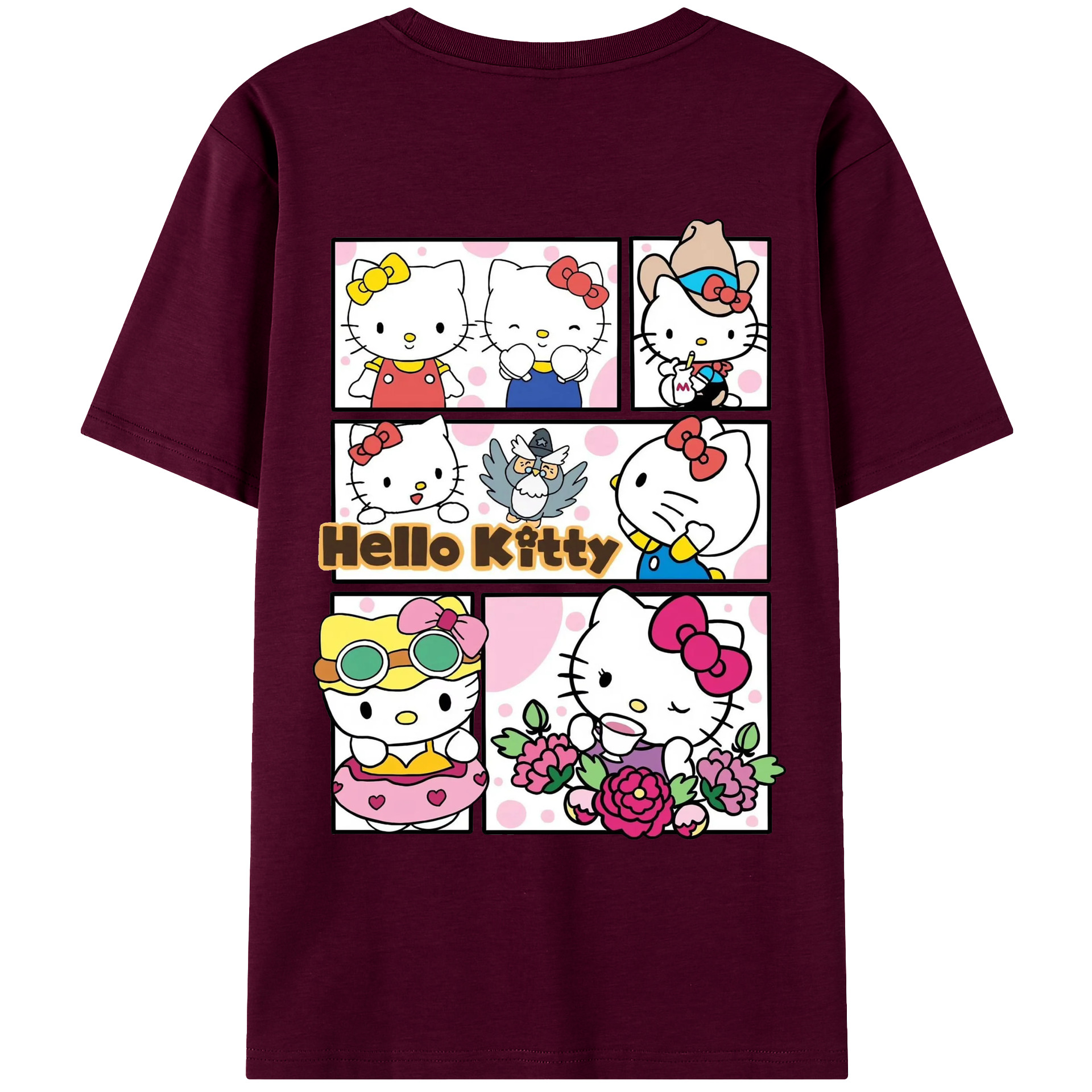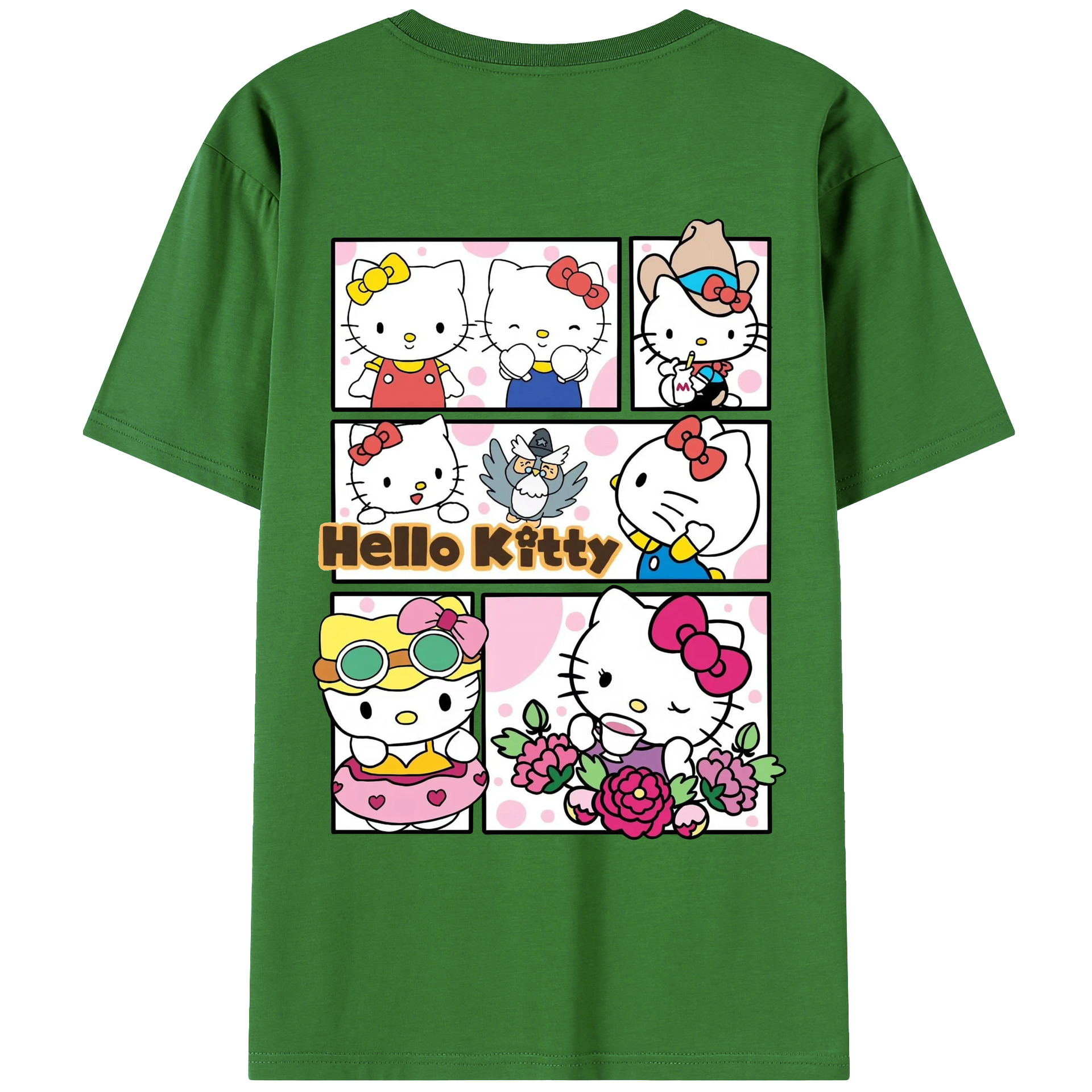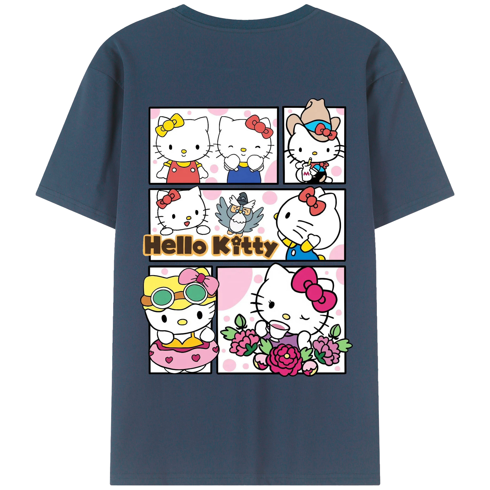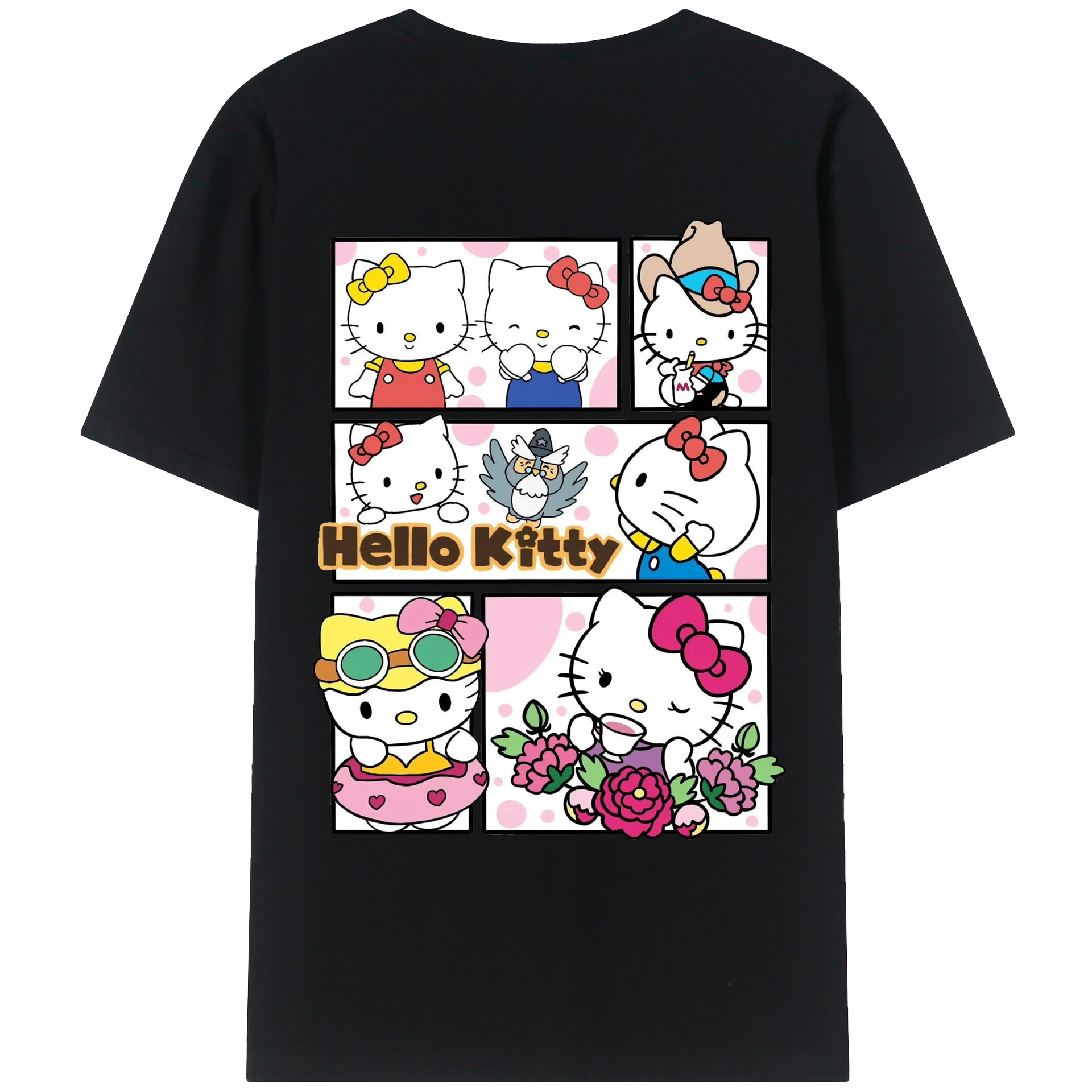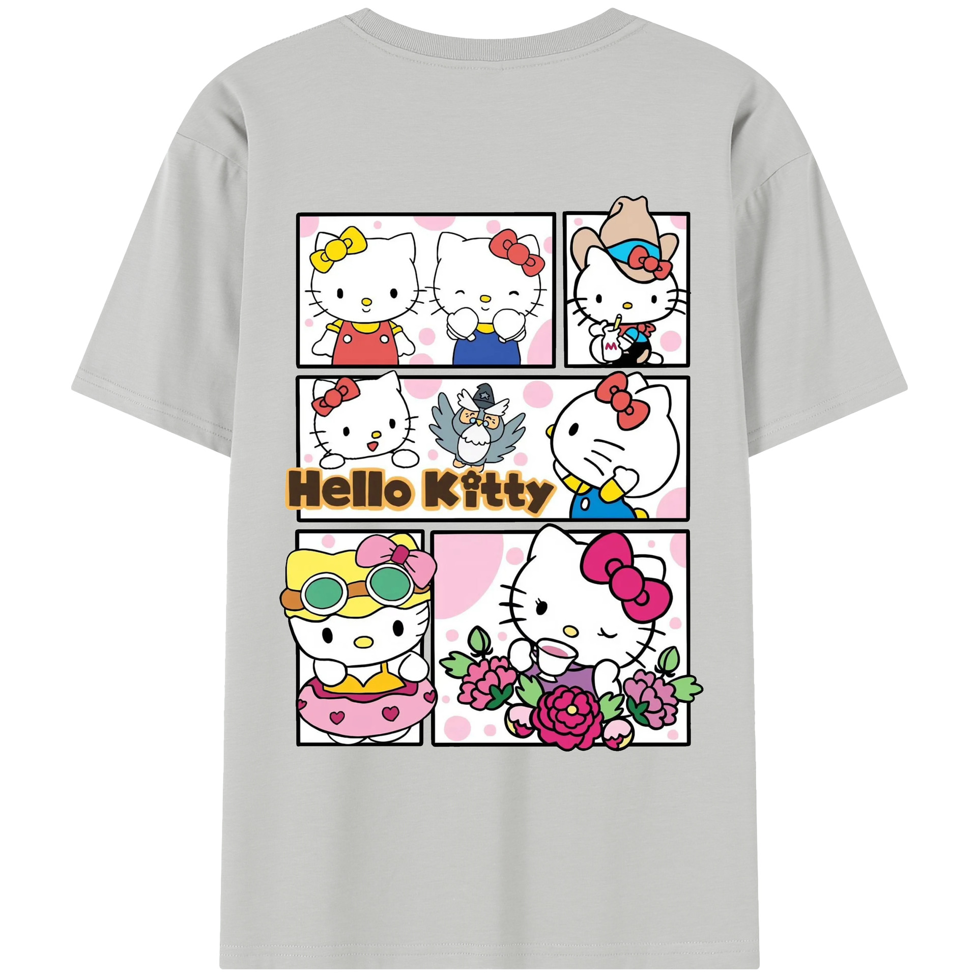 かわいいハローキティ - レディース半袖Tシャツ ・ 綿100% ・ バックプリント ・ 強化クルーネック ・ 二重折り袖口 ・ 快適 通気性 ・ フィットネス カジュアル 旅行用