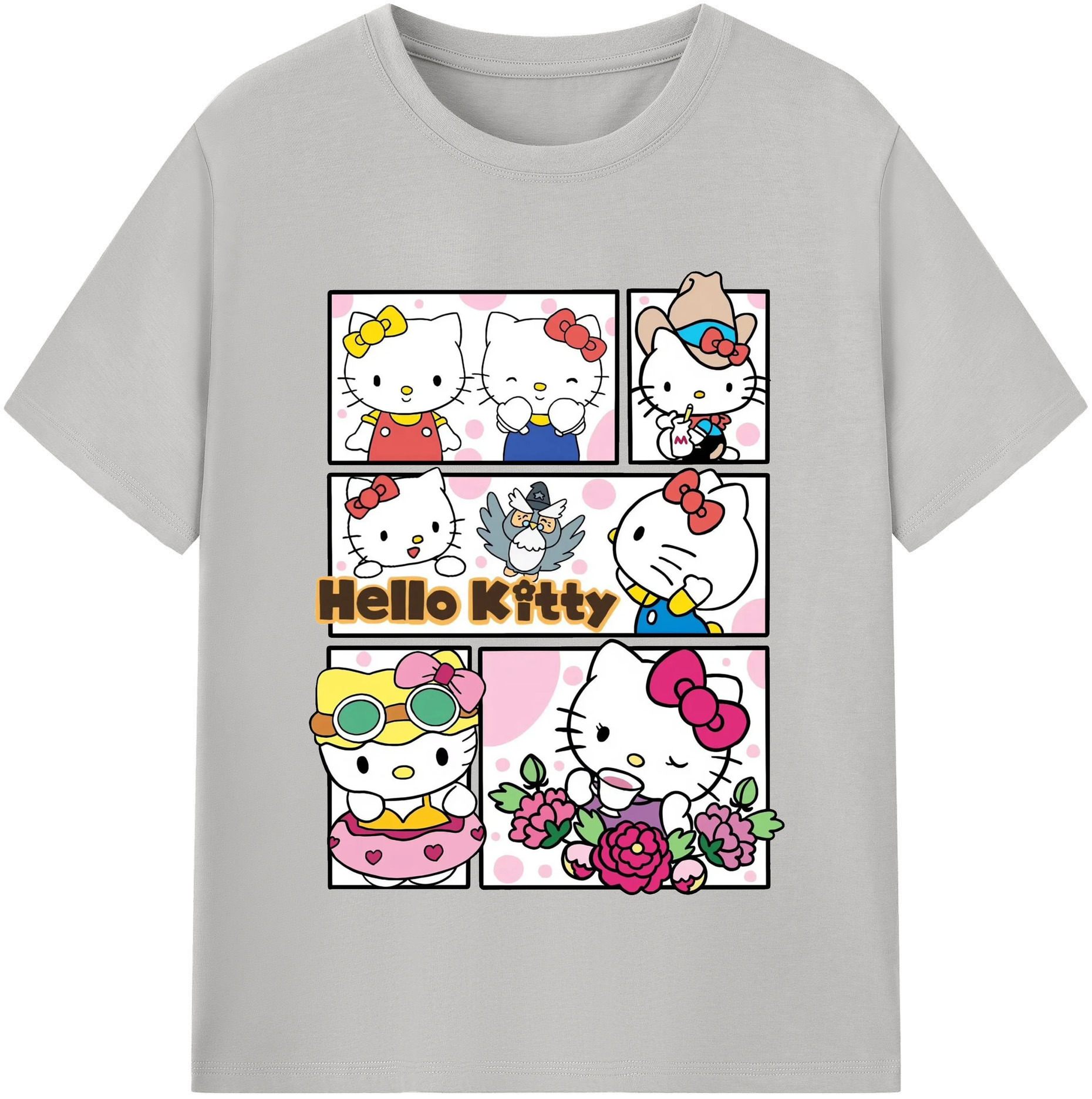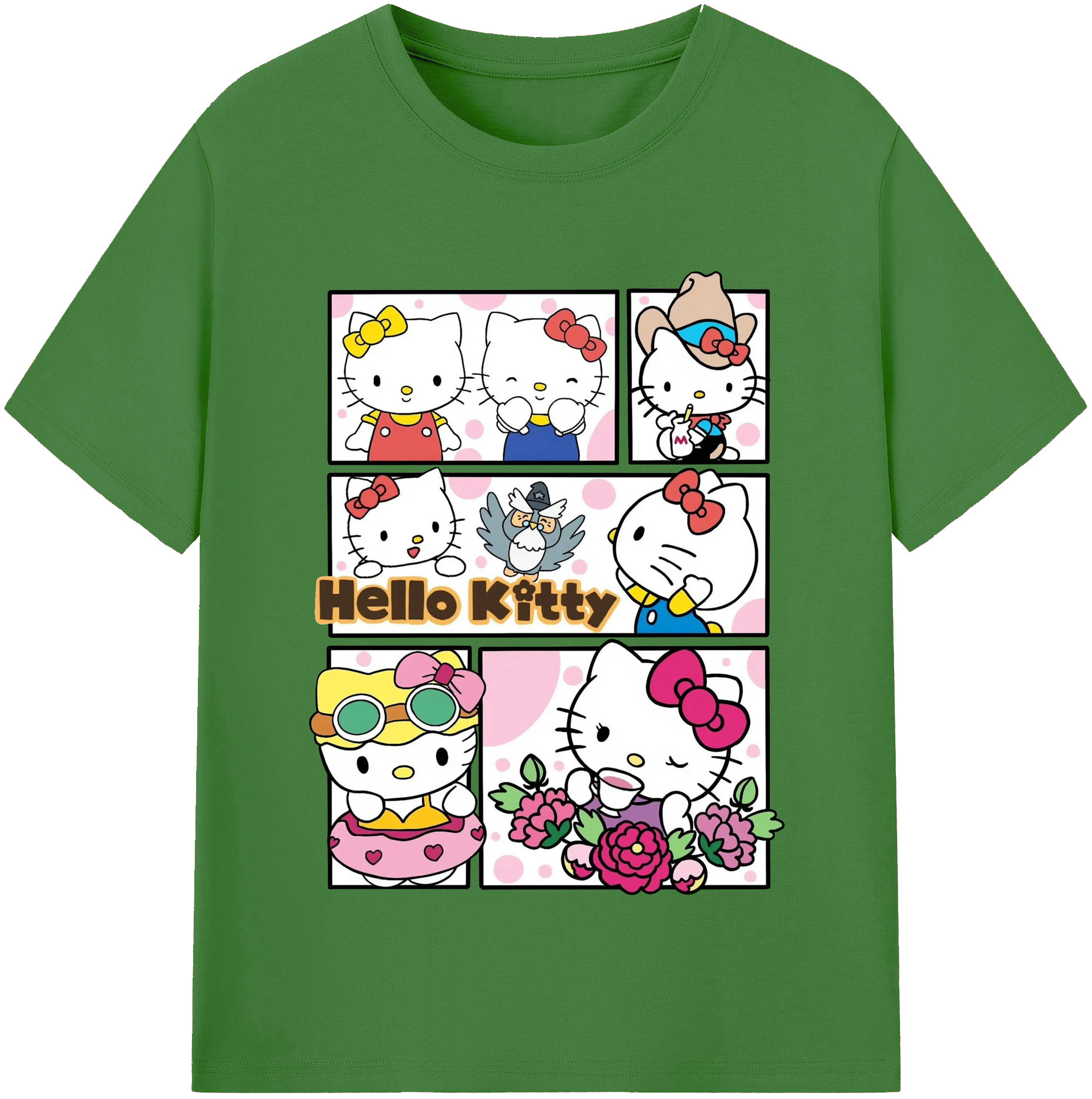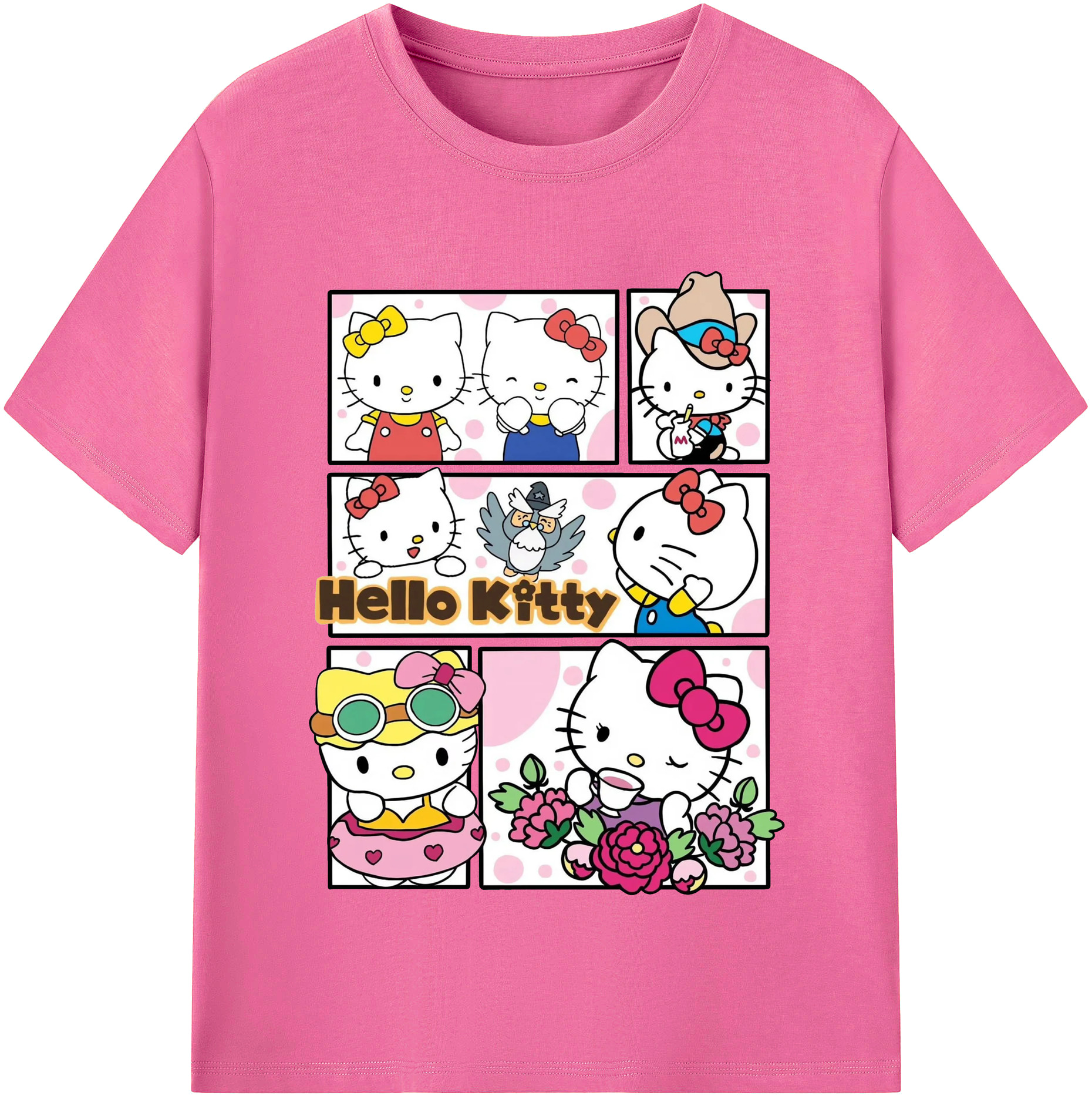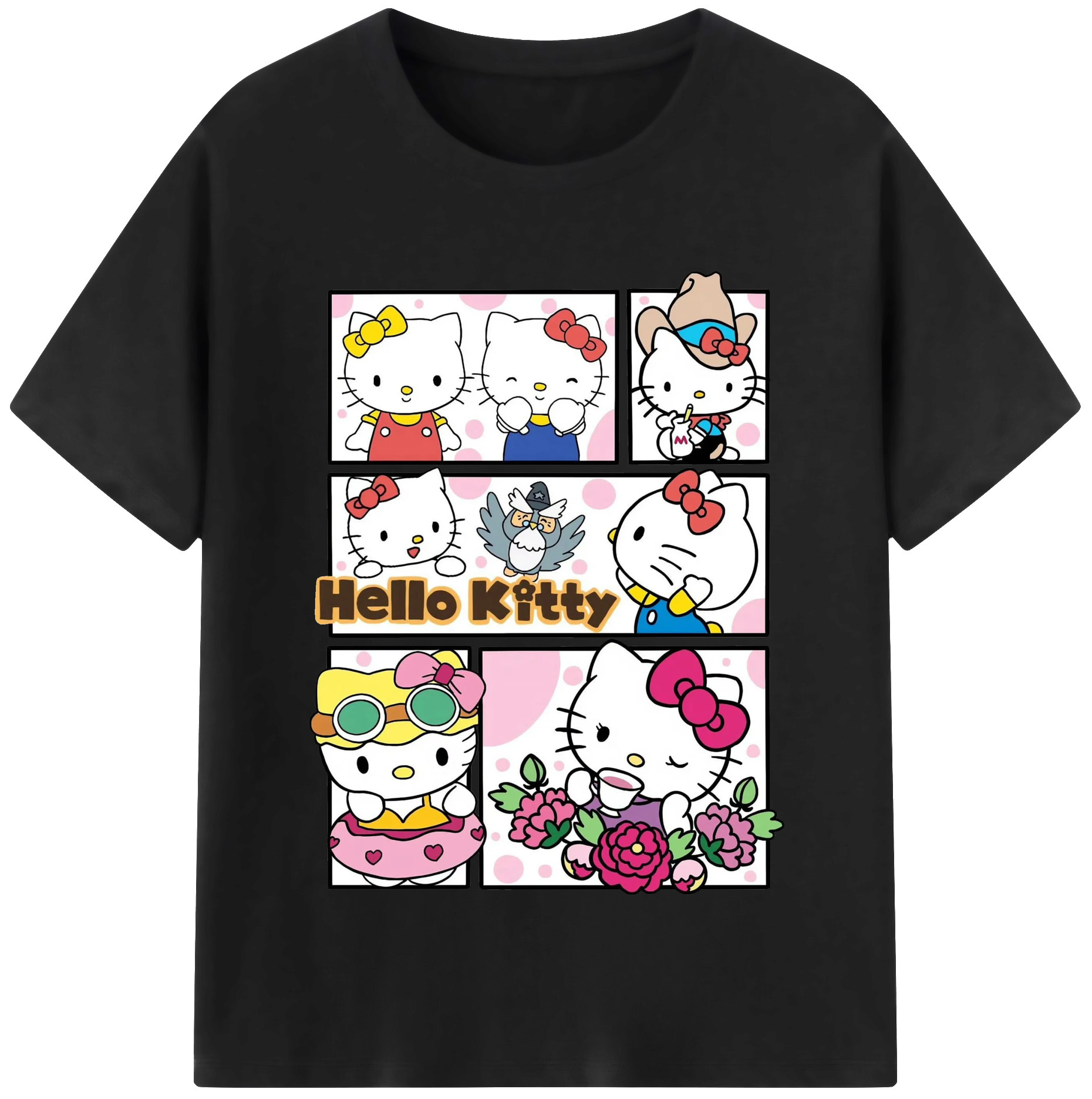 かわいいハローキティ - レディースカジュアルプリントTシャツ ・ 綿100% ・ クルーネック ・ フロントプリント ・ 柔らかく快適 ・ フィットネス カジュアル 旅行用