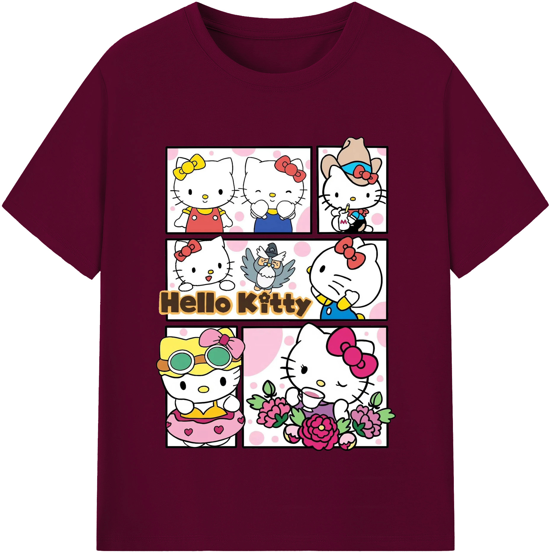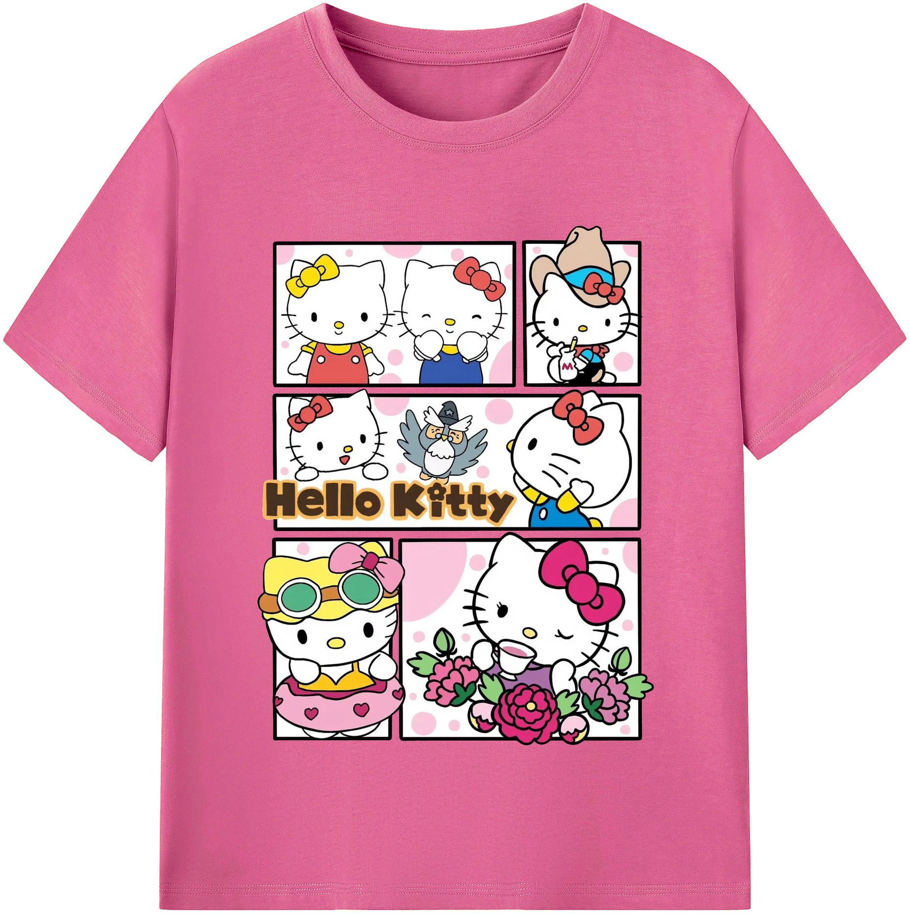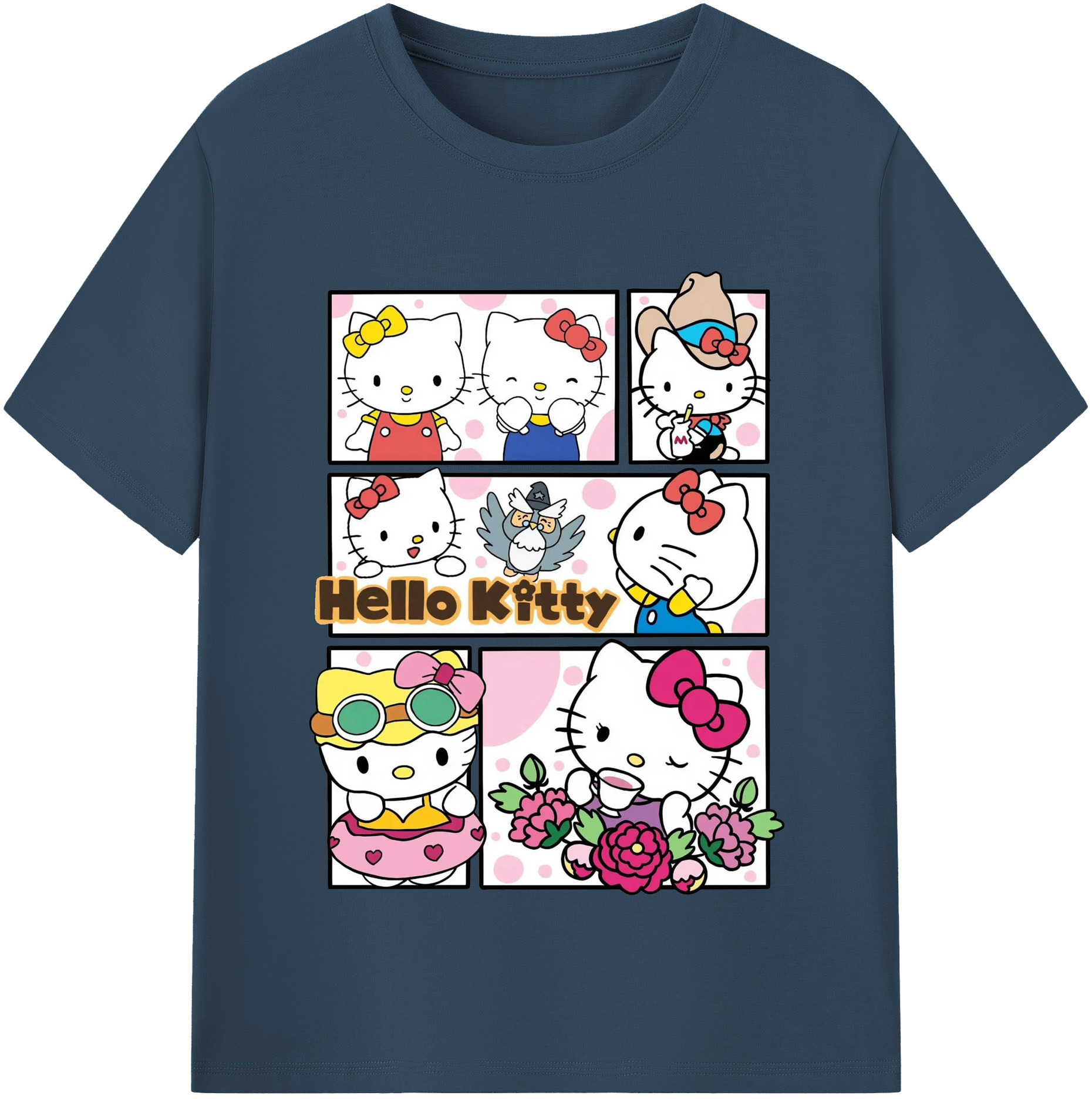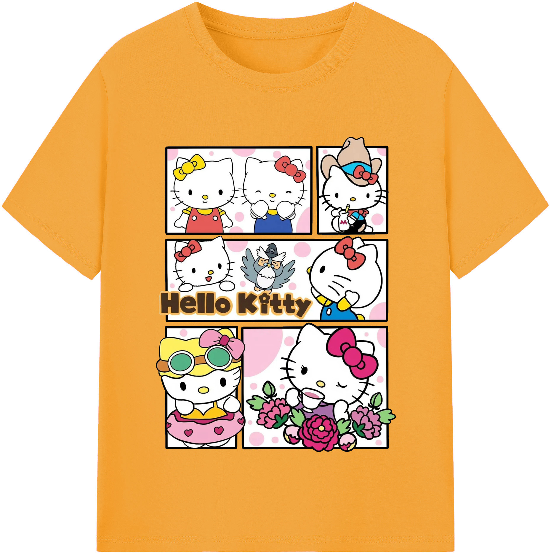 かわいいハローキティ - レディースカジュアルプリントTシャツ ・ 綿100% ・ クルーネック ・ フロントプリント ・ 柔らかく快適 ・ フィットネス カジュアル 旅行用