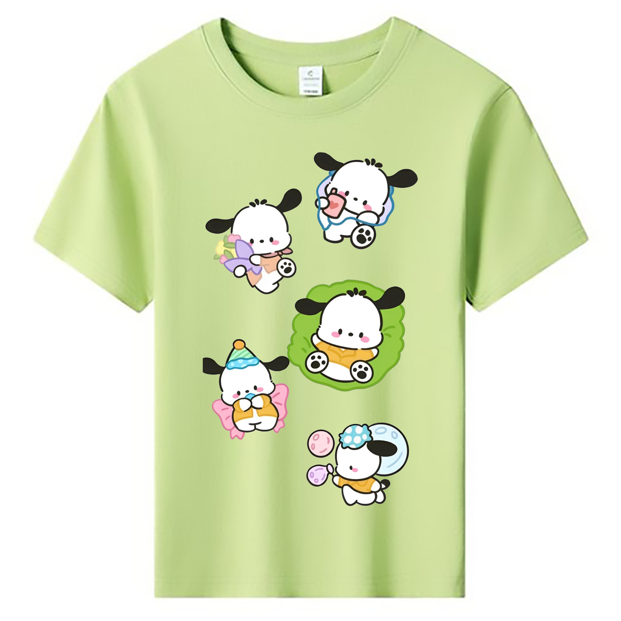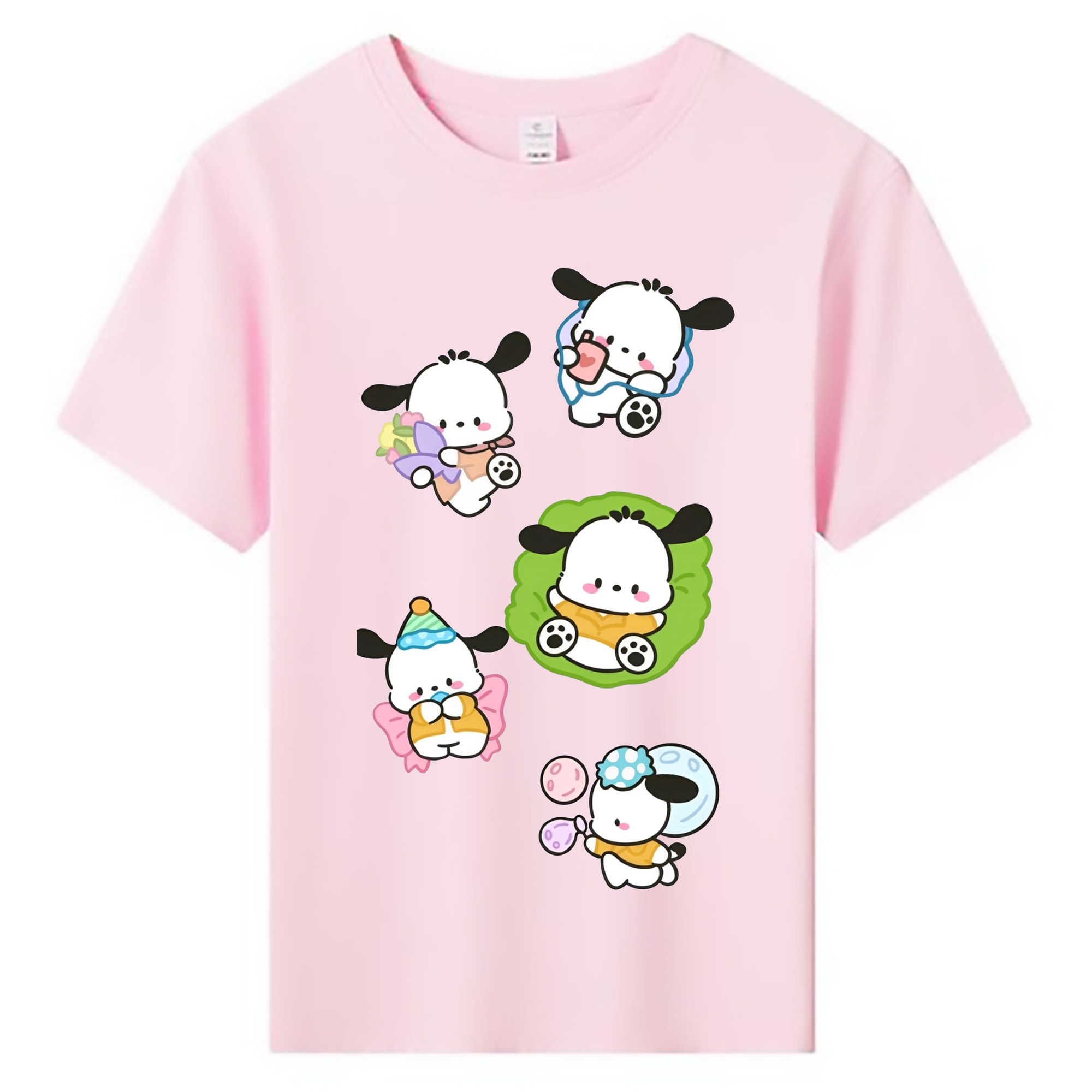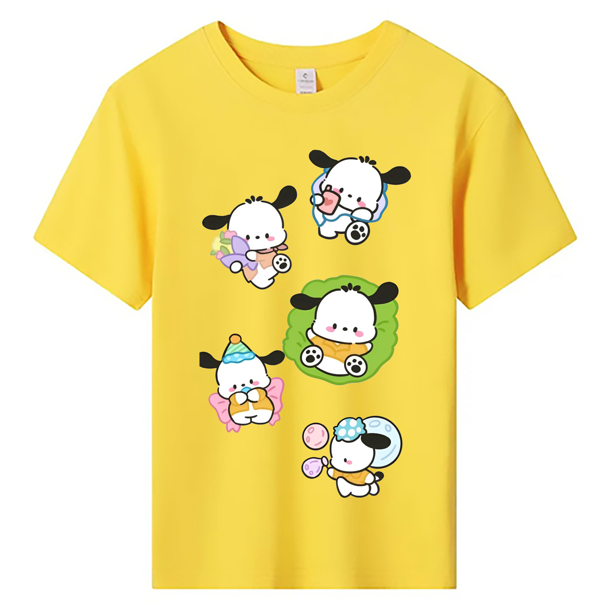 サンリオファミリー - 綿100% キッズTシャツ ・ フロントプリント ・ 快適 通気性 ・ スポーツ カジュアル 散歩用