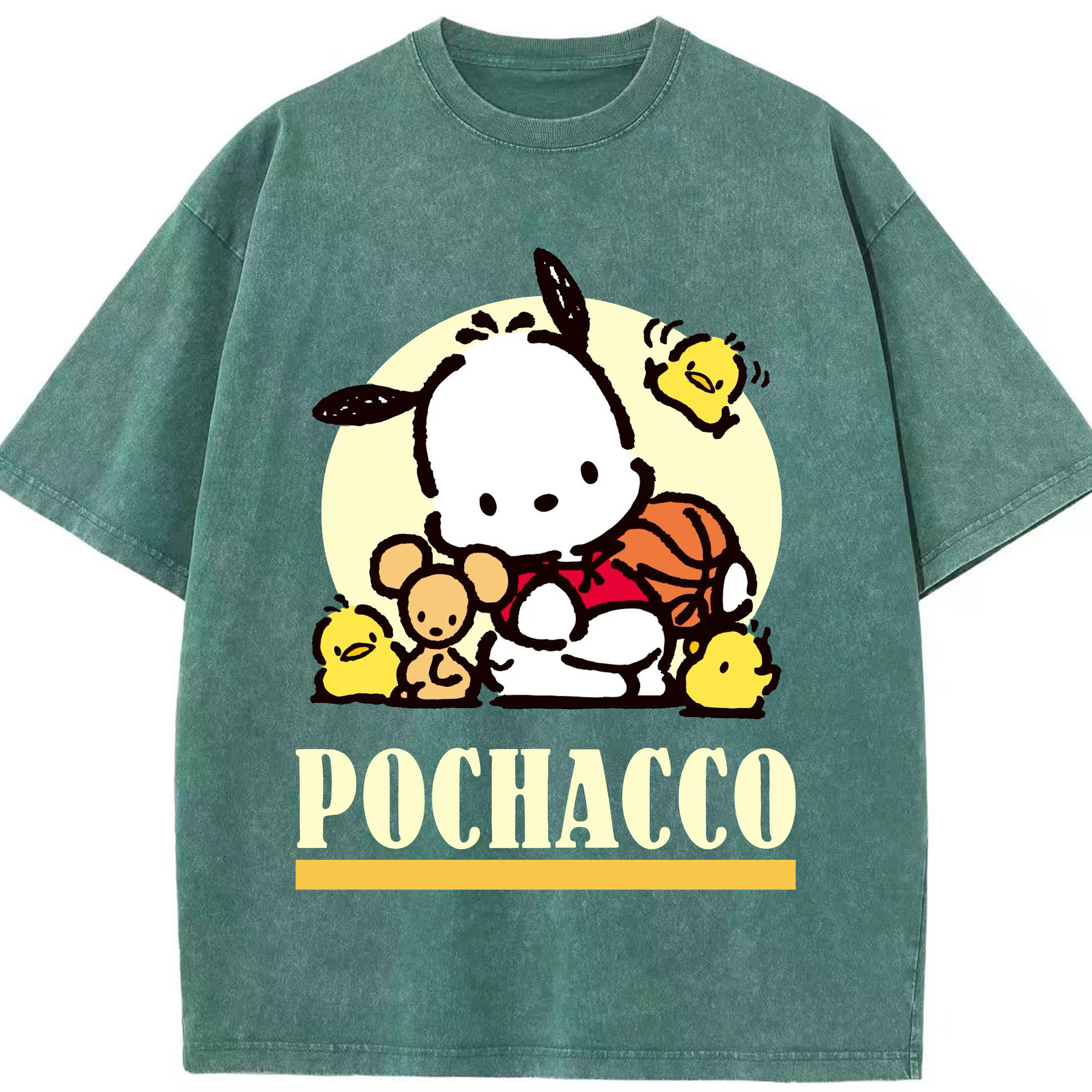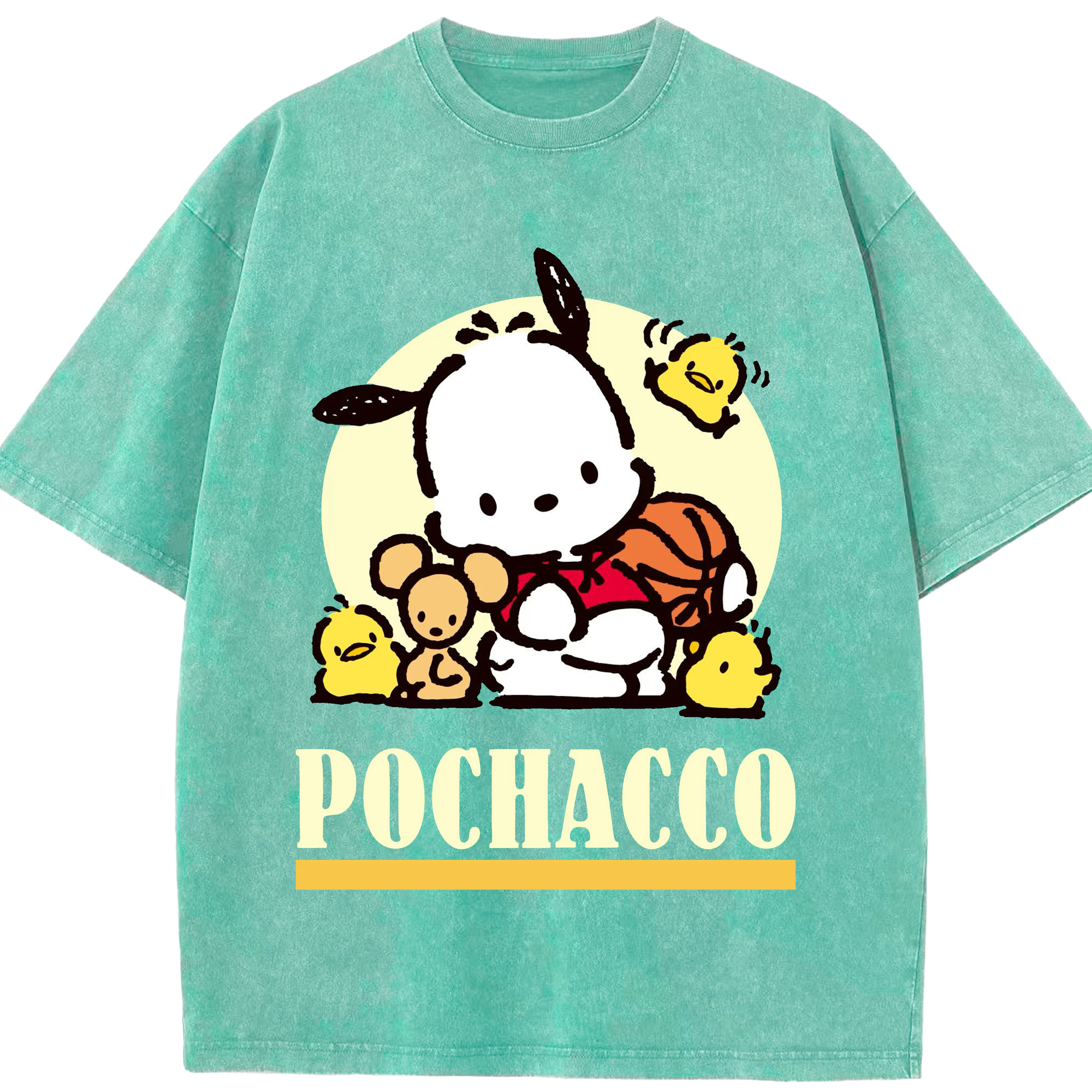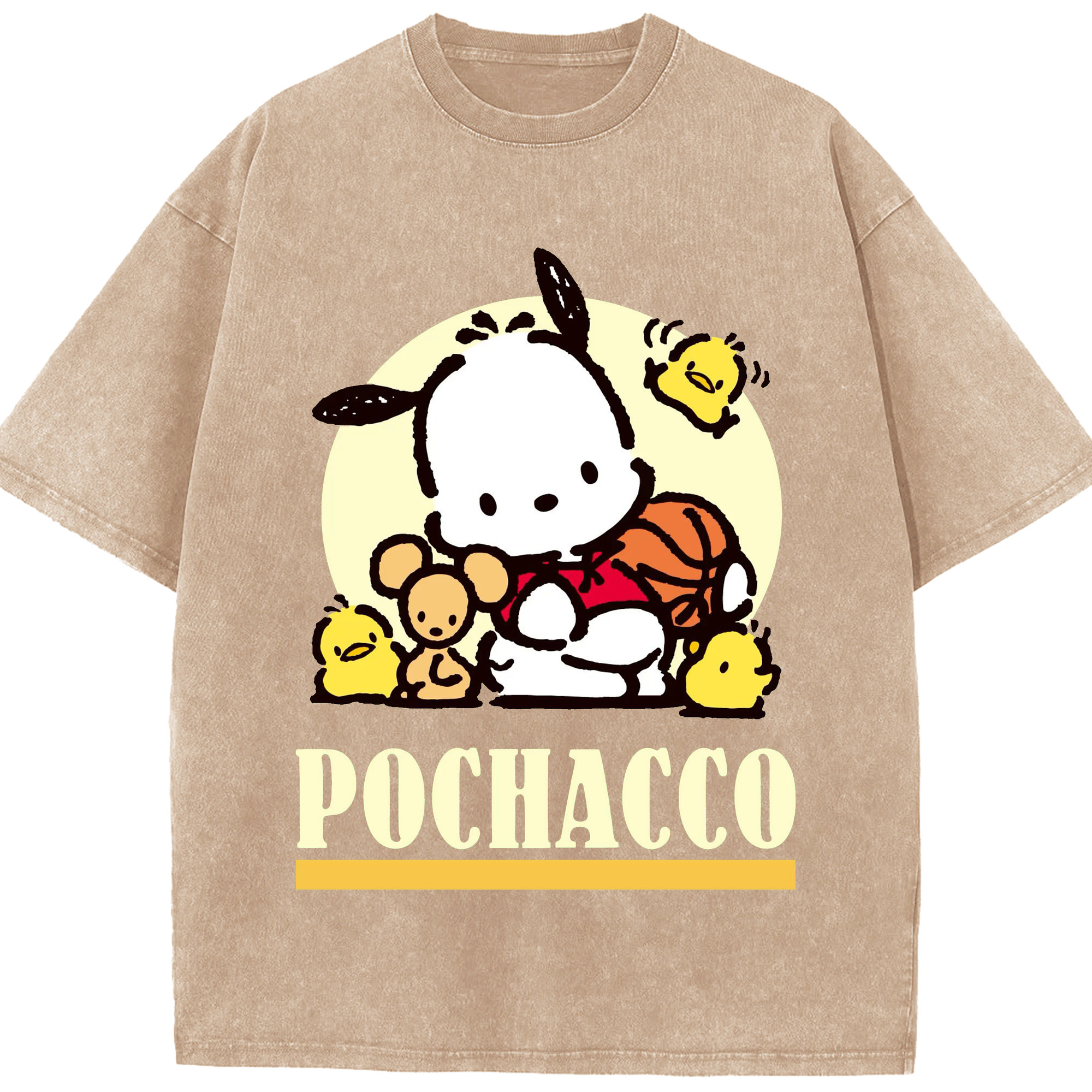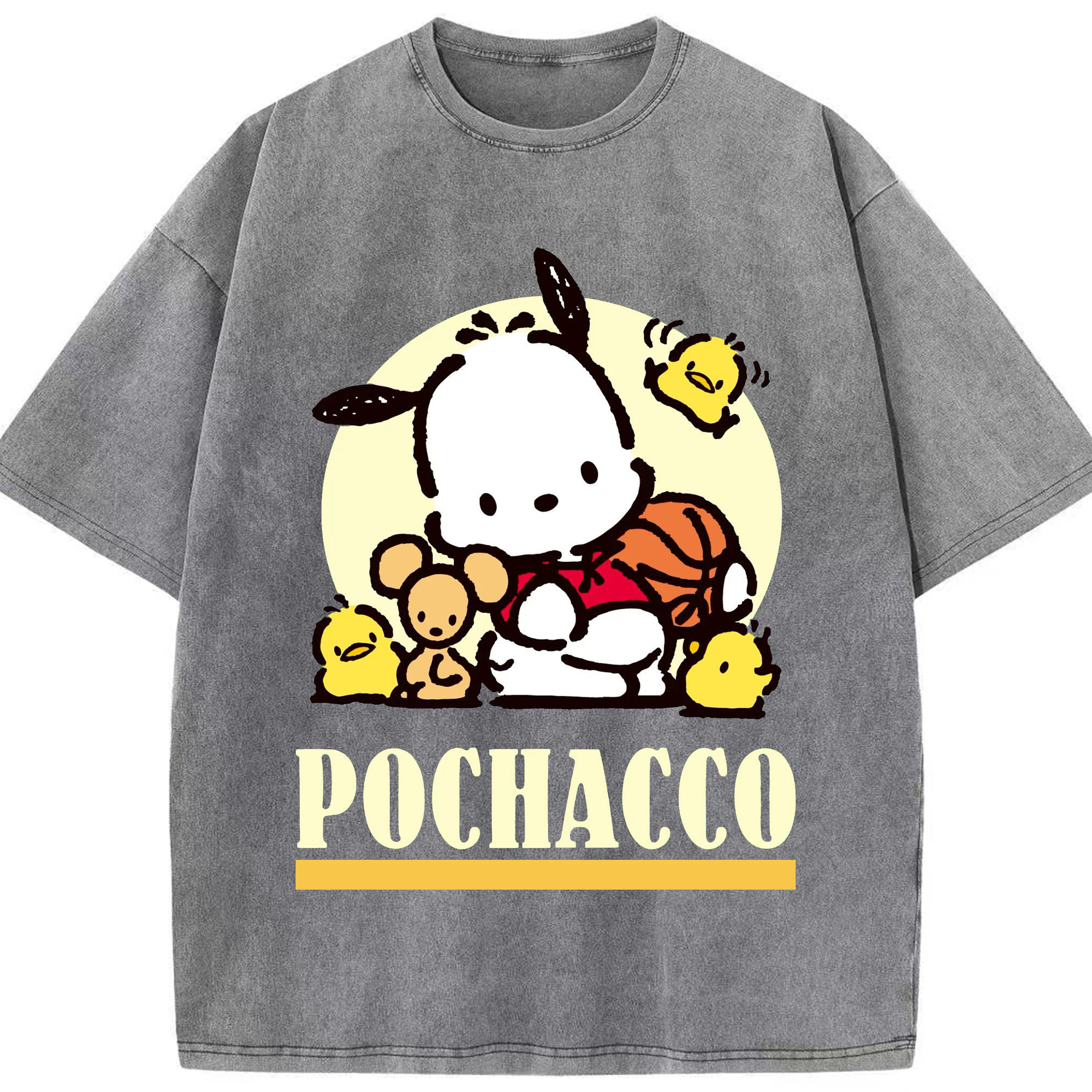 サンリオポチャッコ - 綿100% ヴィンテージ風 半袖Tシャツ ・ フロントプリント ・ 柔らか肌触り ・ 通気性 快適 ・ スポーツ カジュアル 外出用