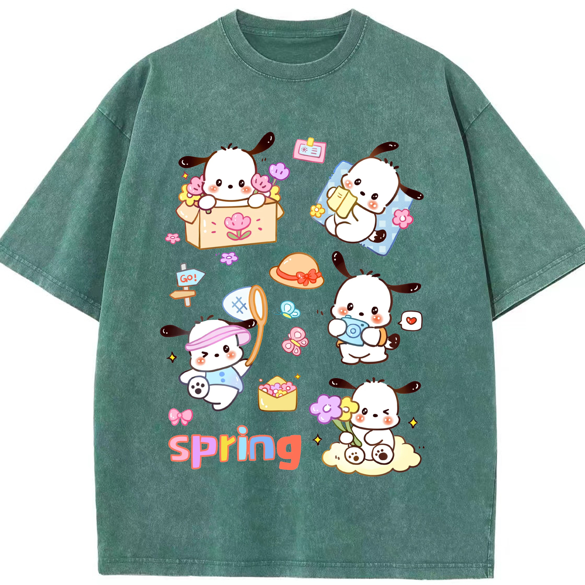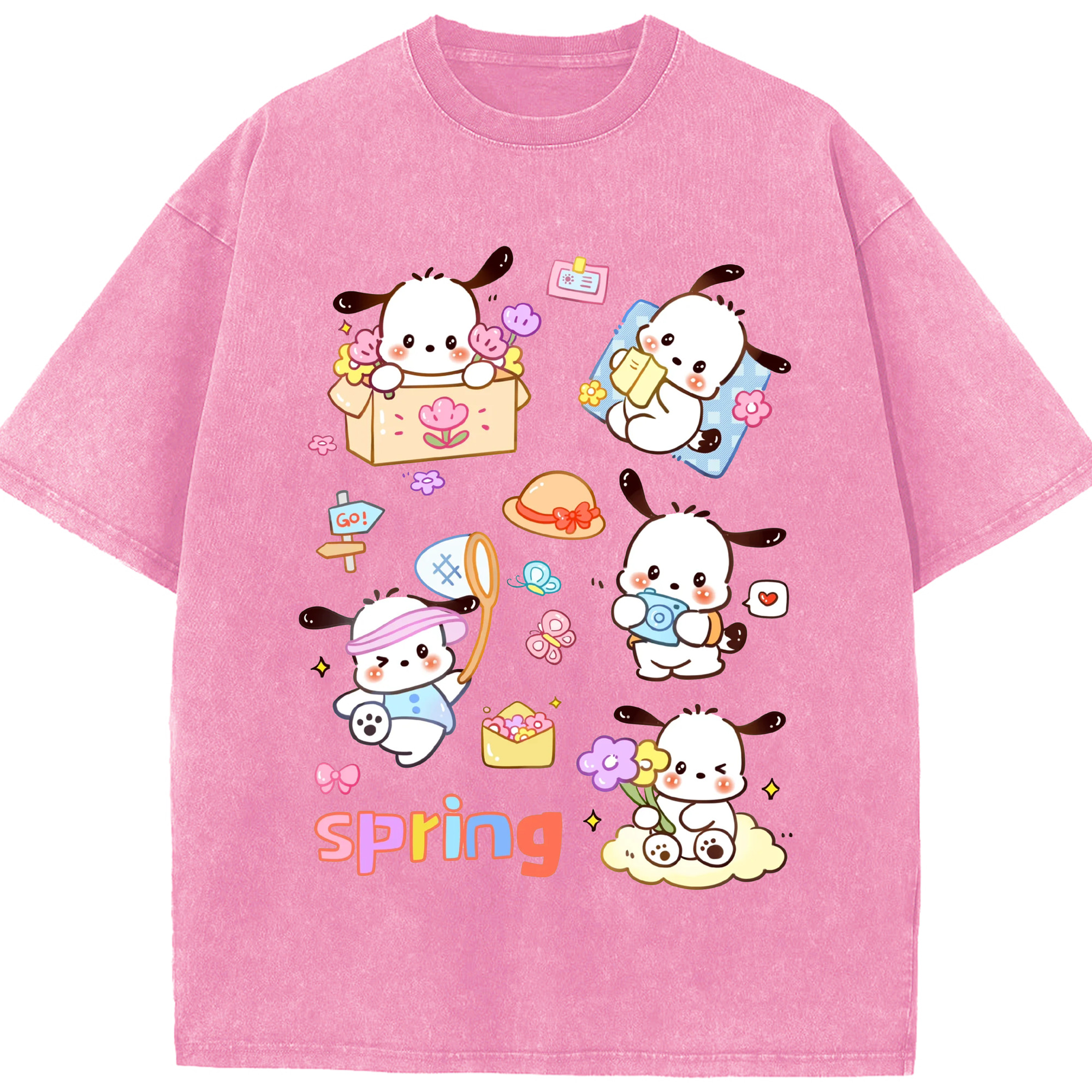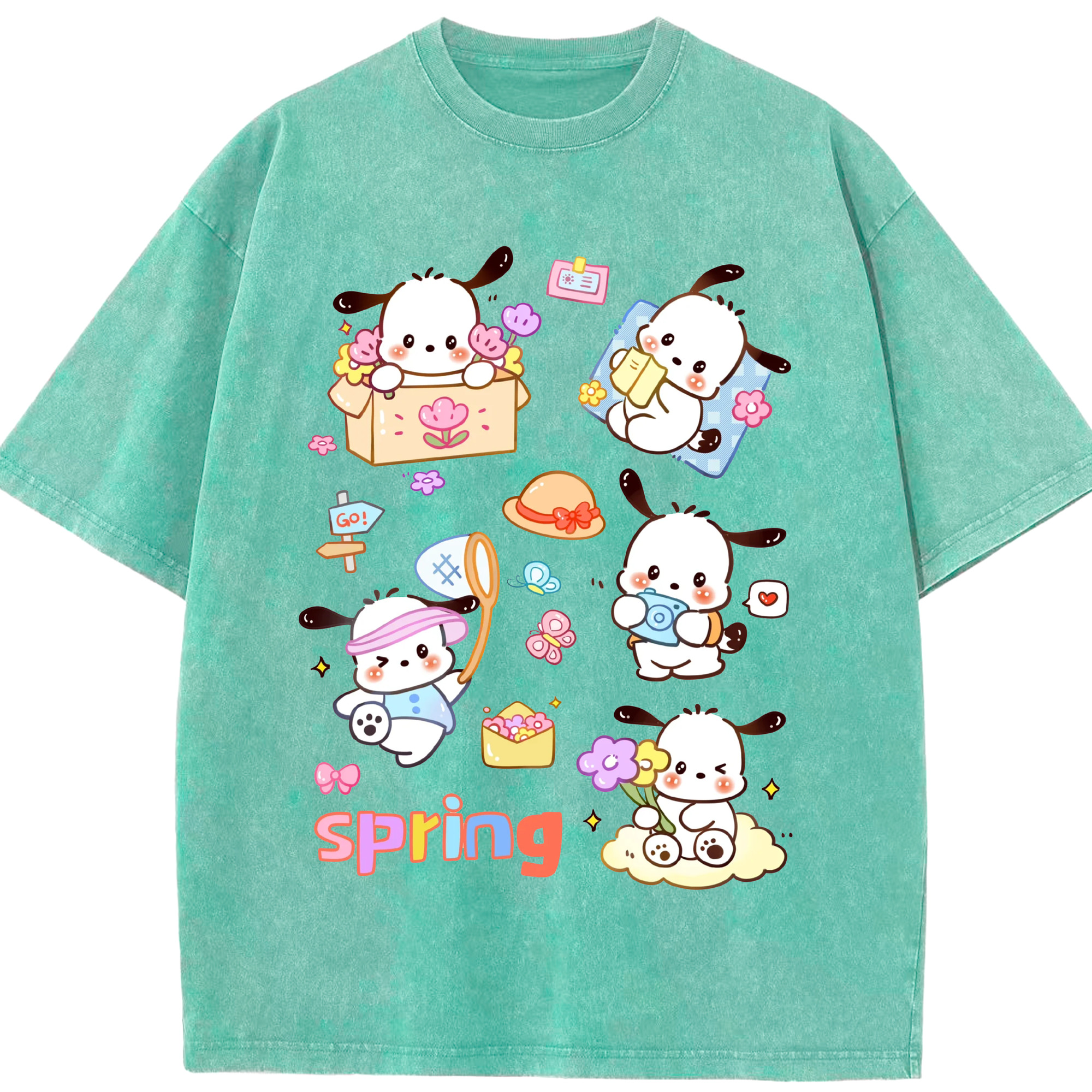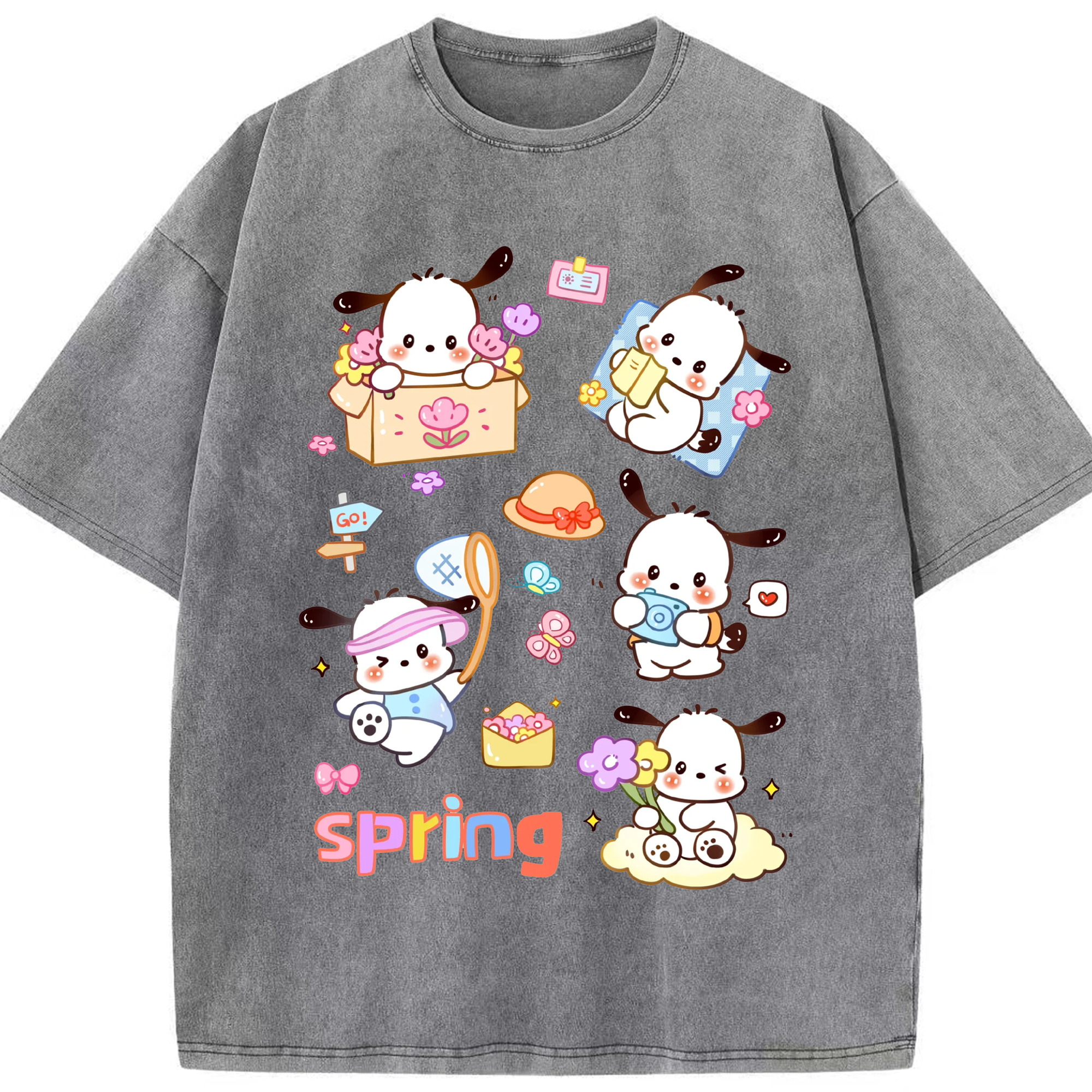 かわいい系サンリオ - 綿100% ヴィンテージ風 半袖Tシャツ ・ フロントプリント ・ 柔らか肌触り ・ 通気性 快適 ・ スポーツ カジュアル 外出用