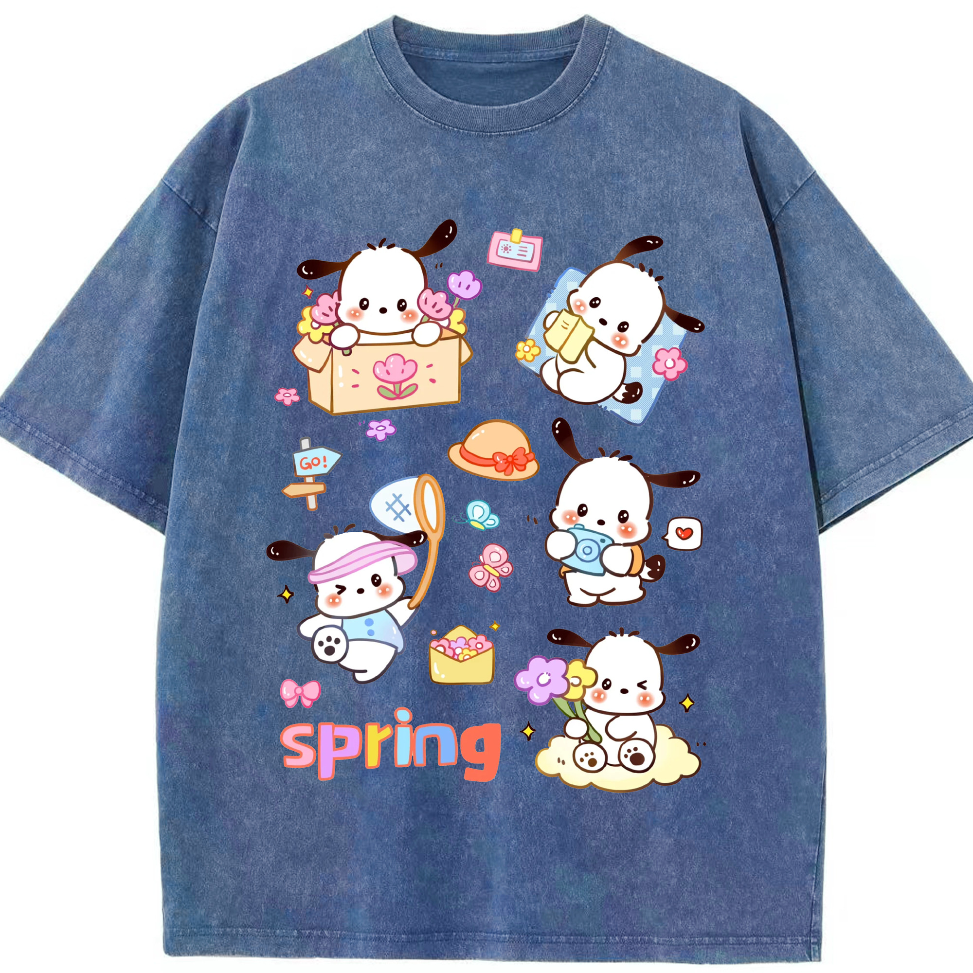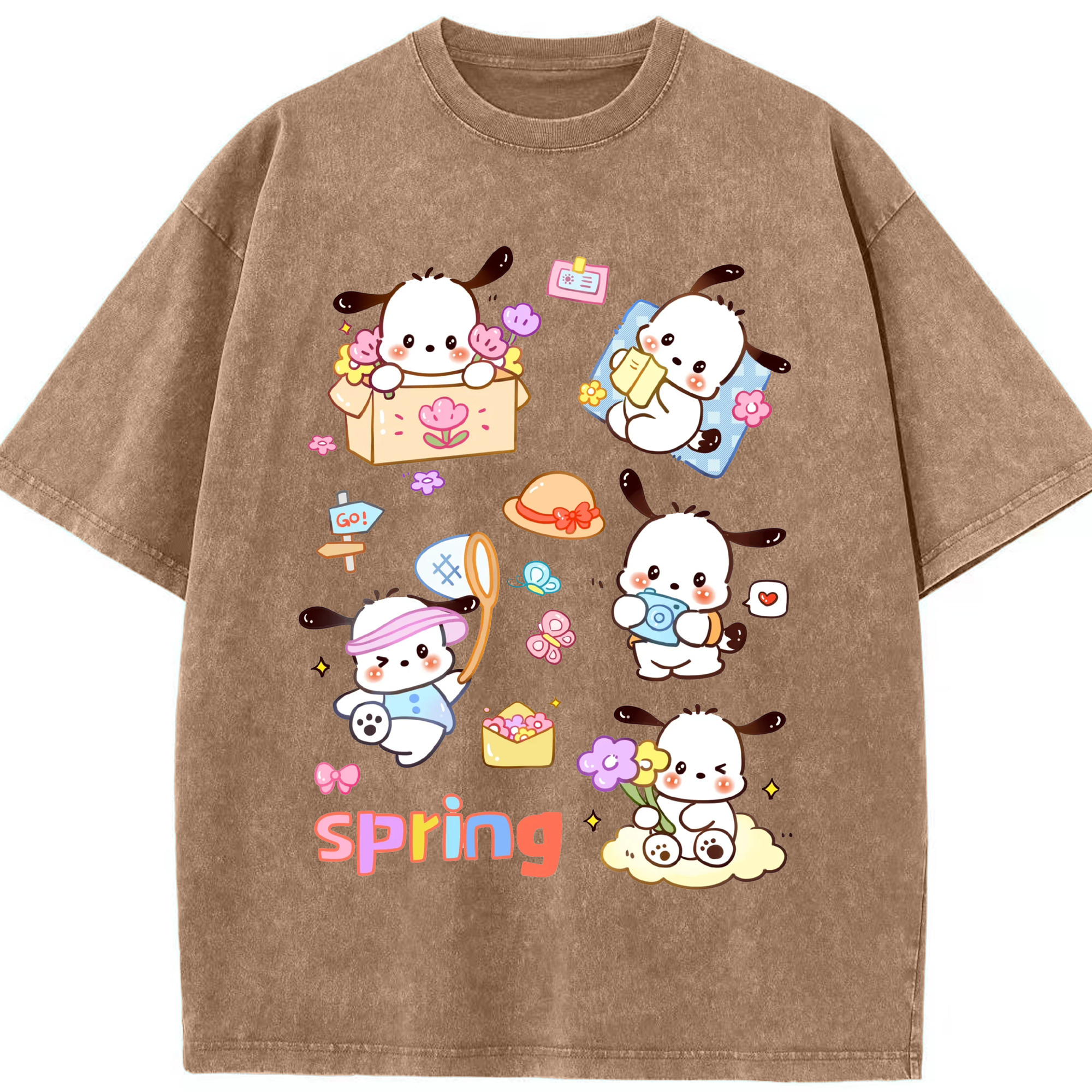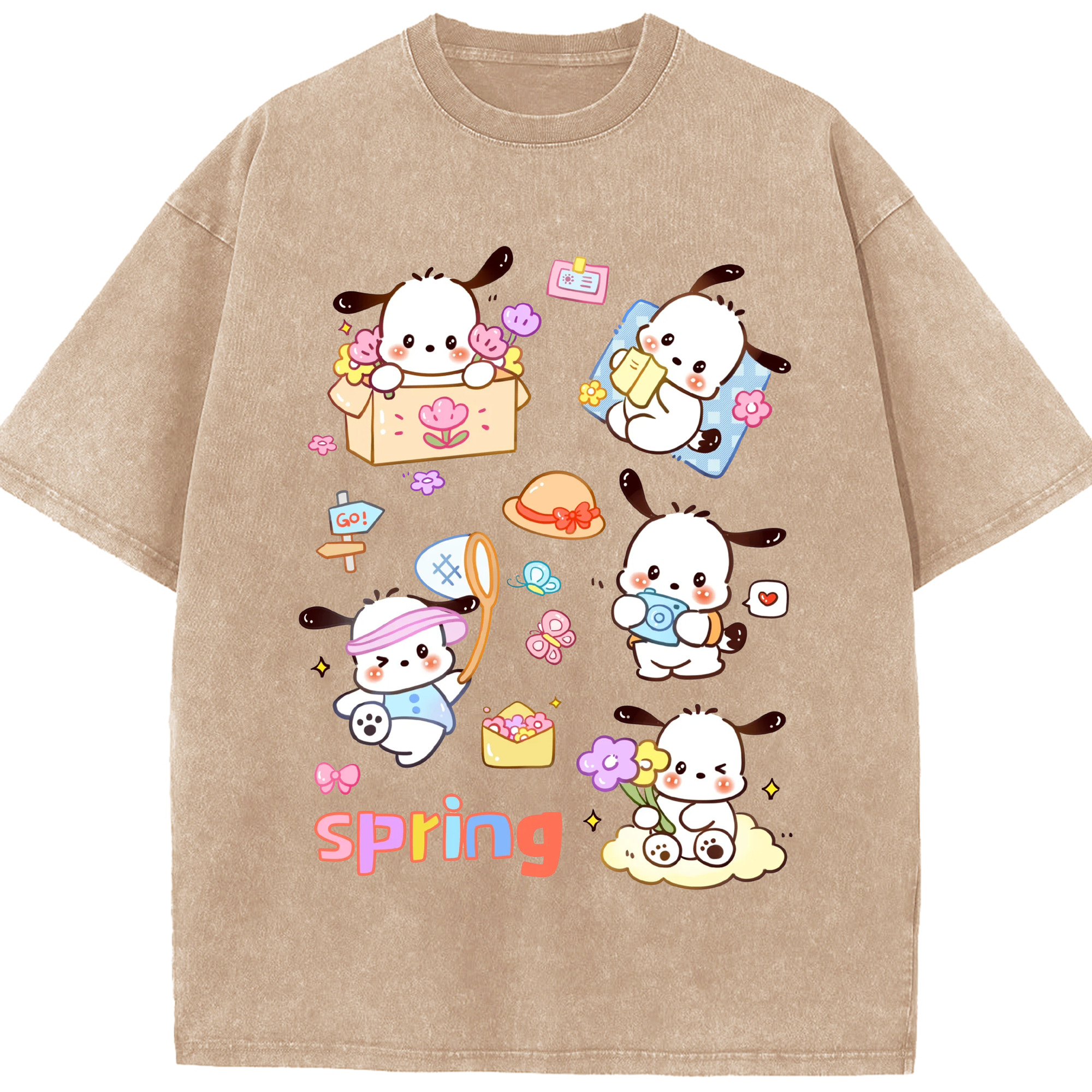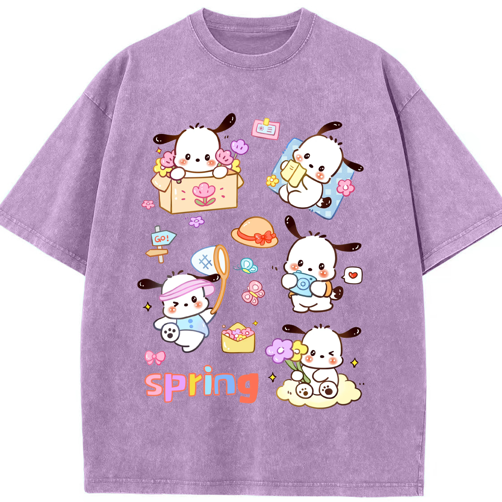 ユニークなデザインのポムポムプリン - 綿100% ヴィンテージ風 半袖Tシャツ ・ フロントプリント ・ 柔らか肌触り ・ 通気性 快適 ・ スポーツ カジュアル 外出用