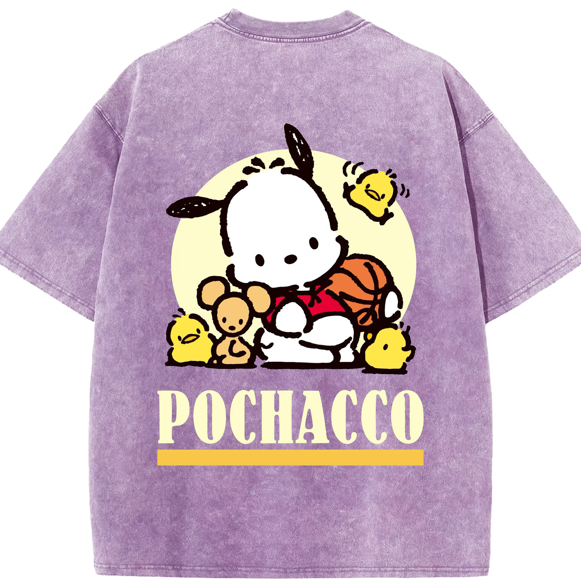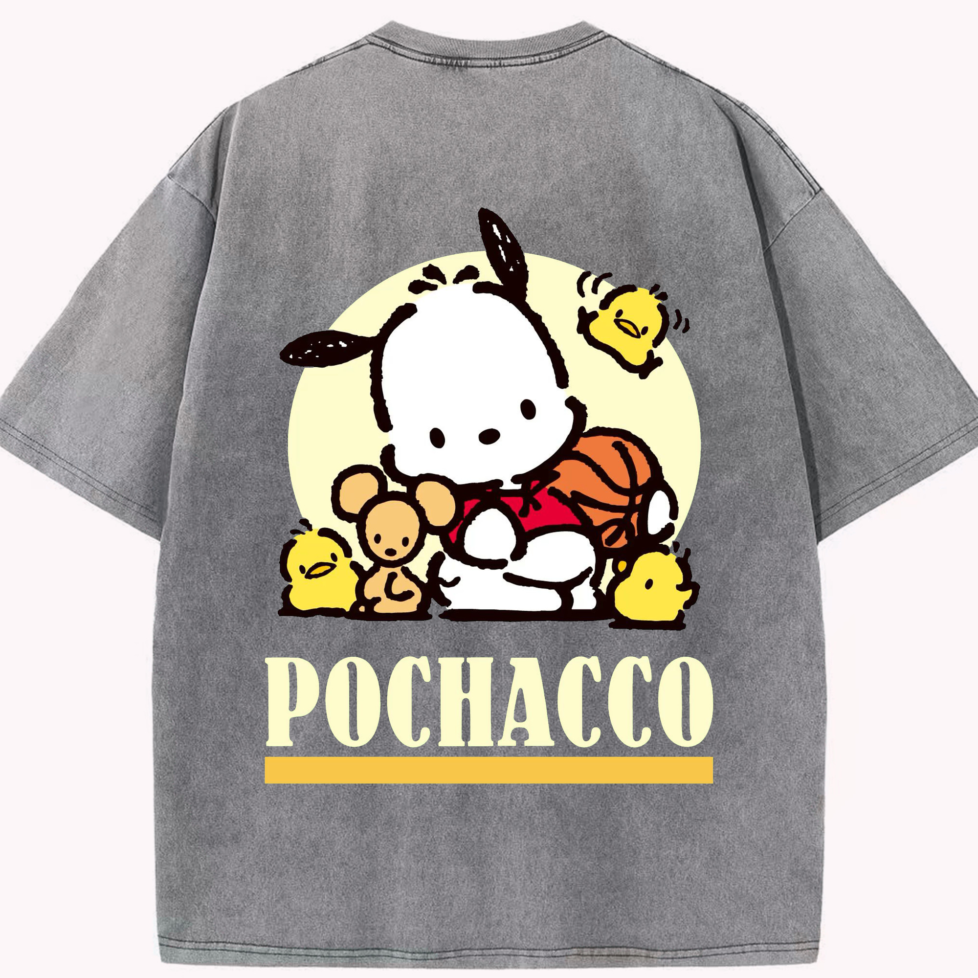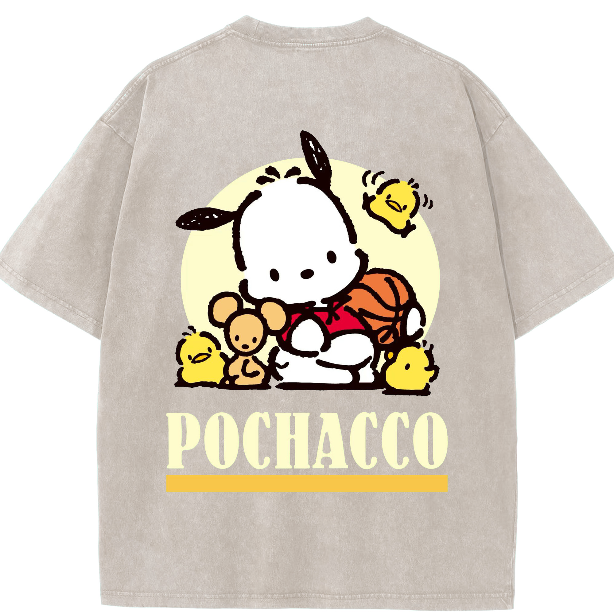 サンリオポチャッコ - 綿100% ヴィンテージ風 半袖Tシャツ ・ 背面プリント ・ 柔らか肌触り ・ 通気性 快適 ・ スポーツ カジュアル 外出用