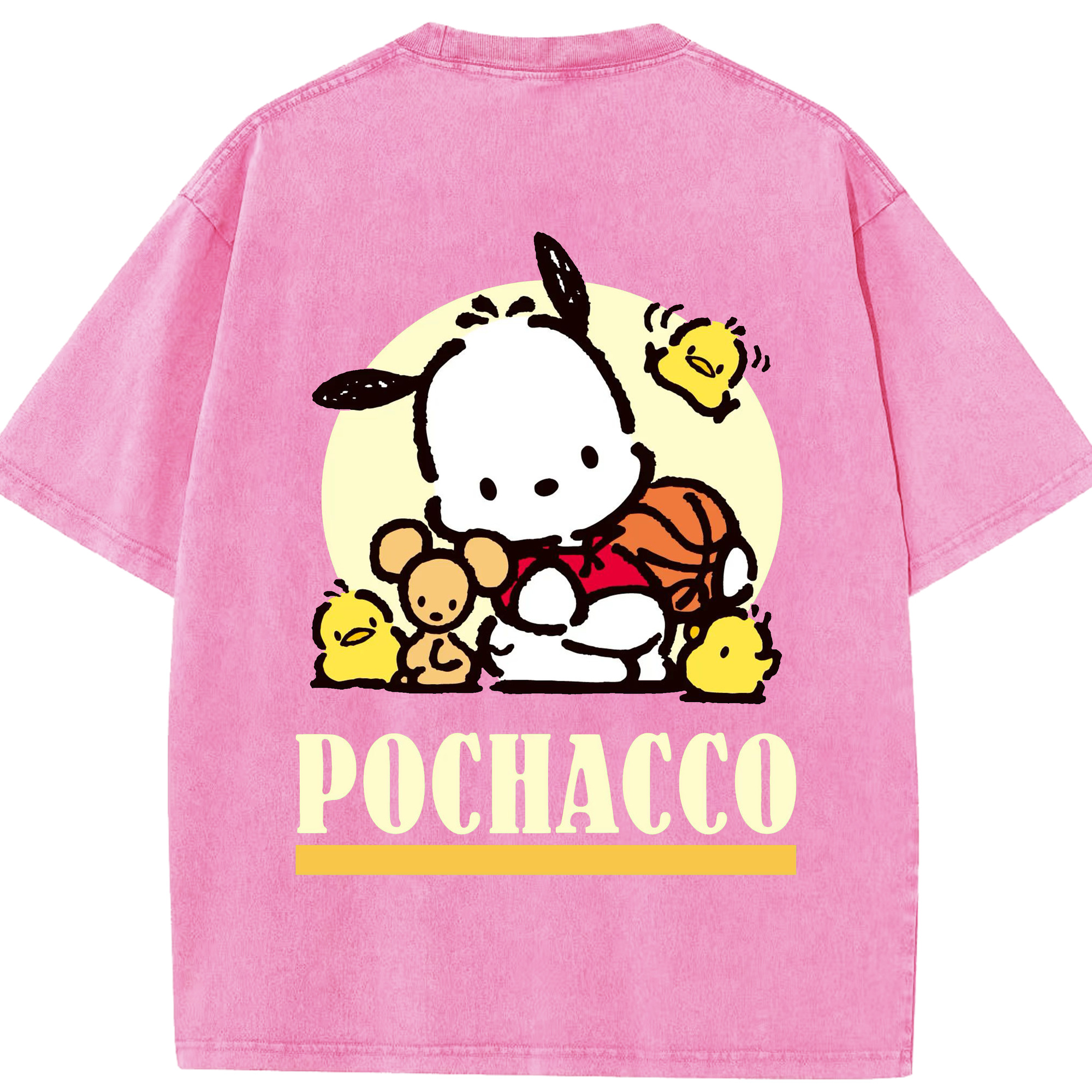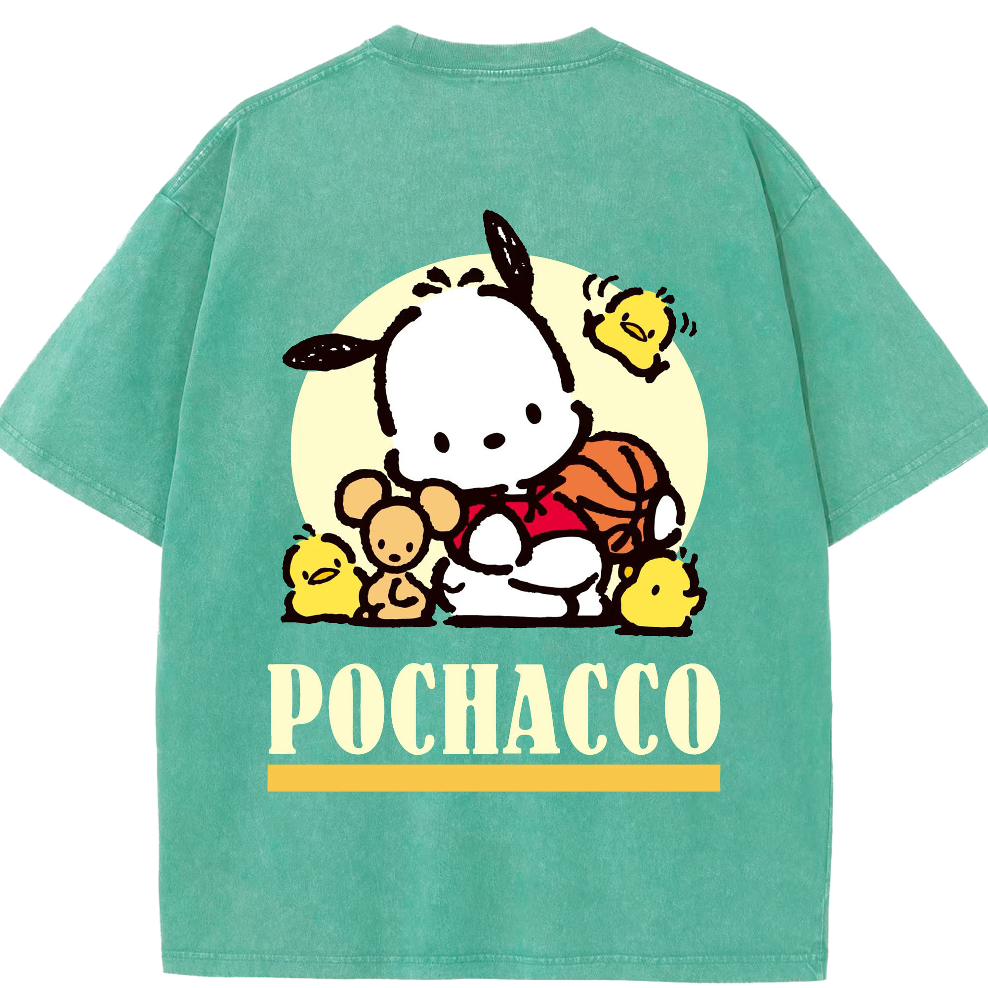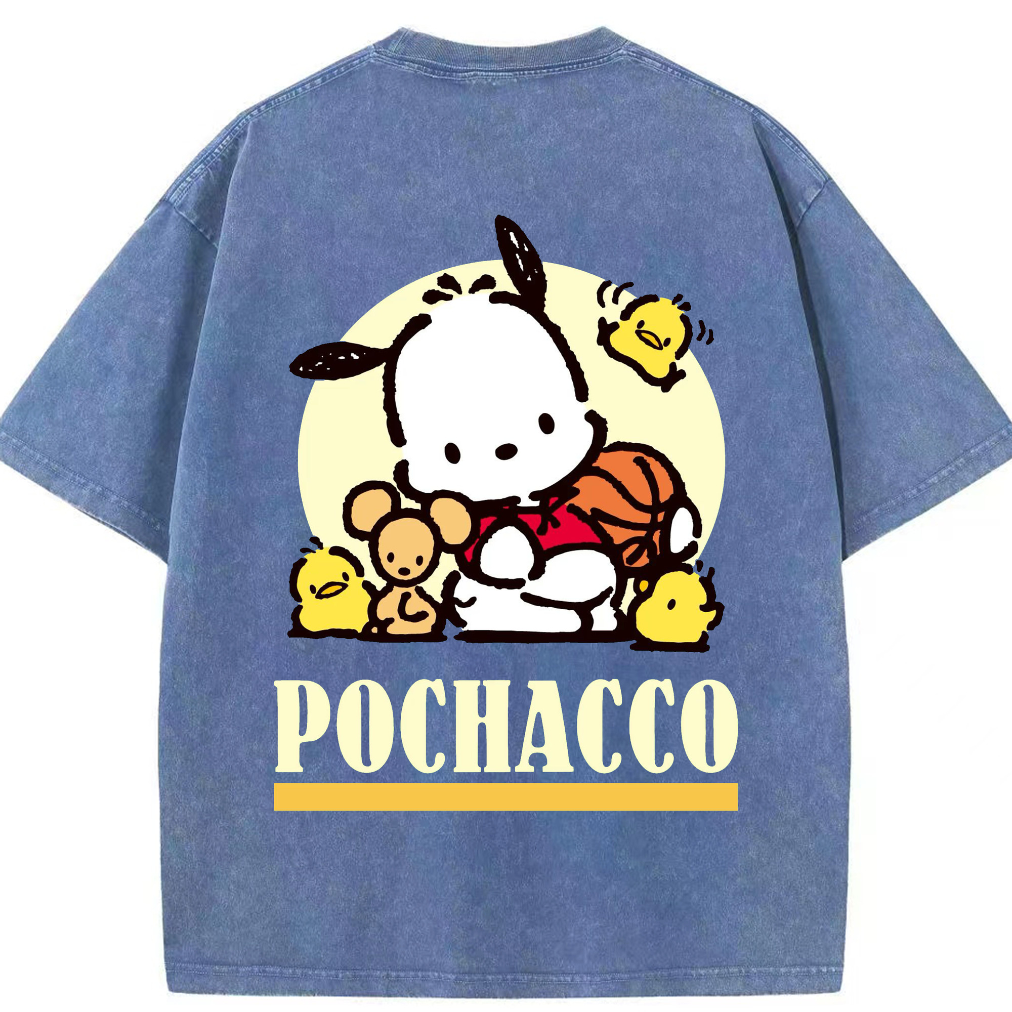 サンリオポチャッコ - 綿100% ヴィンテージ風 半袖Tシャツ ・ 背面プリント ・ 柔らか肌触り ・ 通気性 快適 ・ スポーツ カジュアル 外出用