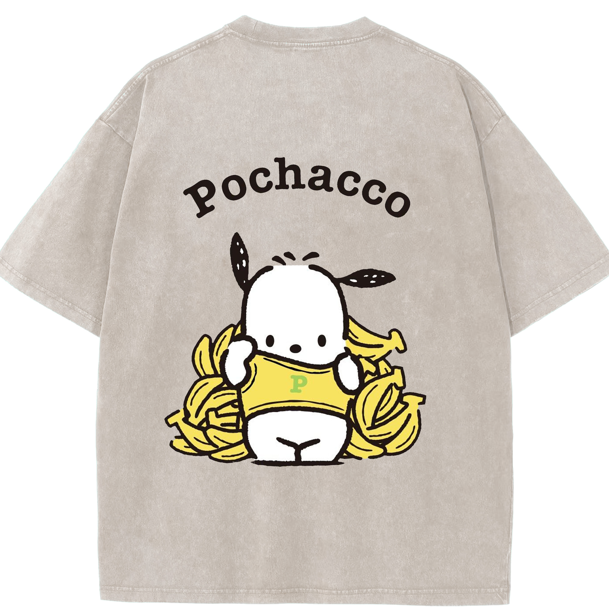 ポムポムプリン&ちいかわ - 綿100% ヴィンテージ風 半袖Tシャツ ・ 背面プリント ・ 柔らか肌触り ・ 通気性 快適 ・ スポーツ カジュアル 外出用