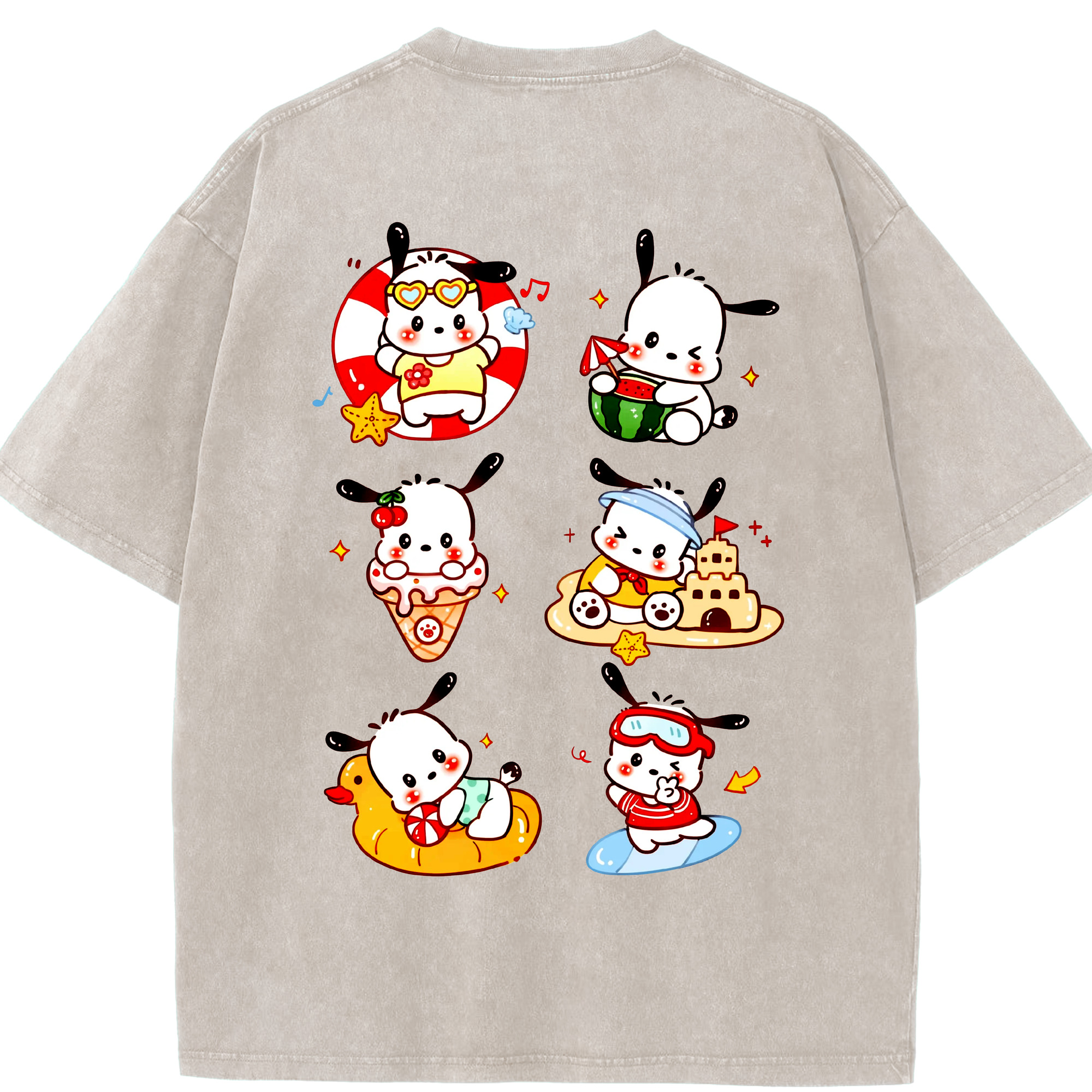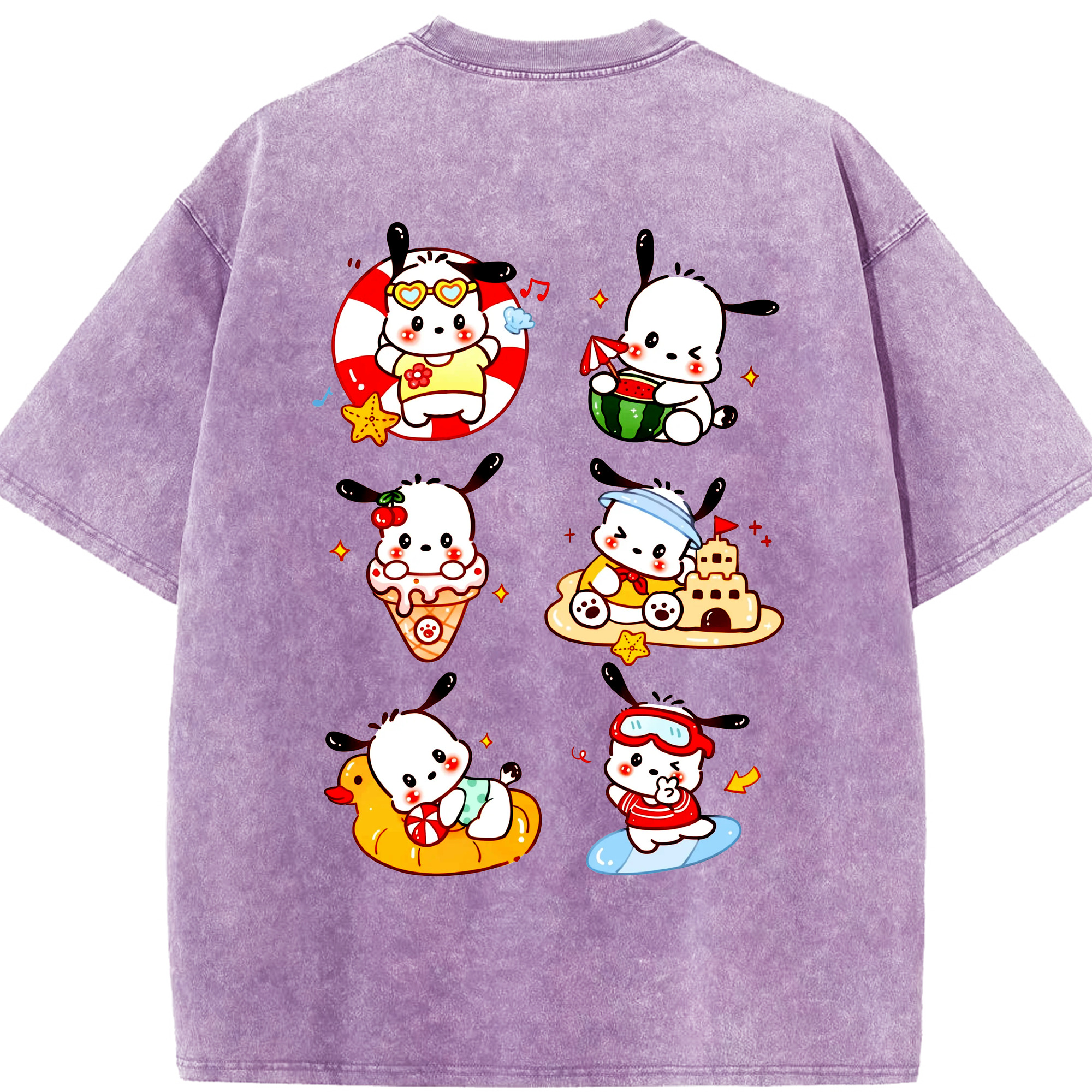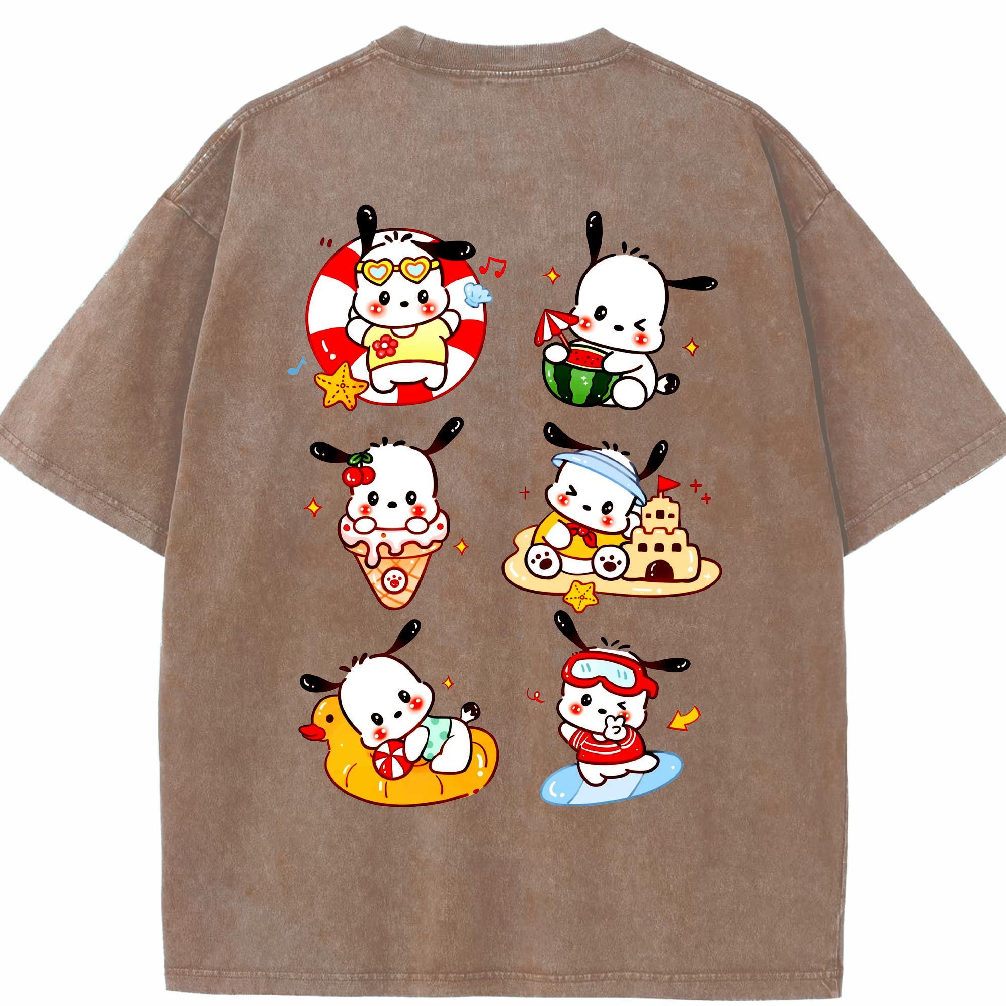 サンリオポチャッコ - 綿100% ヴィンテージ風 半袖Tシャツ ・ 背面プリント ・ 柔らか肌触り ・ 通気性 快適 ・ スポーツ カジュアル 外出用