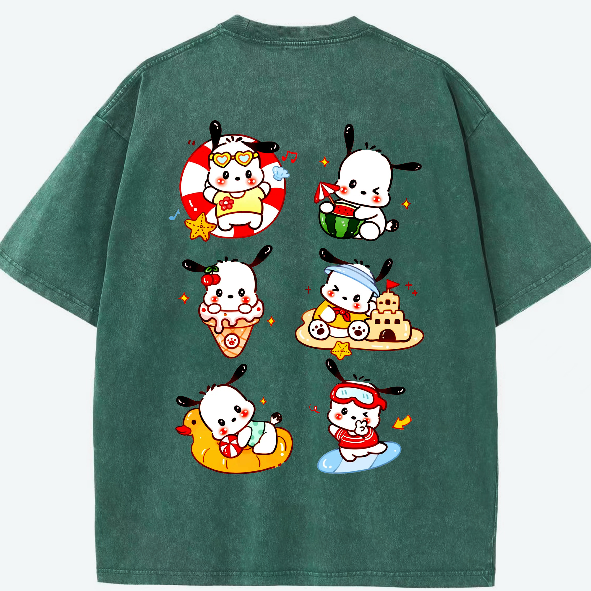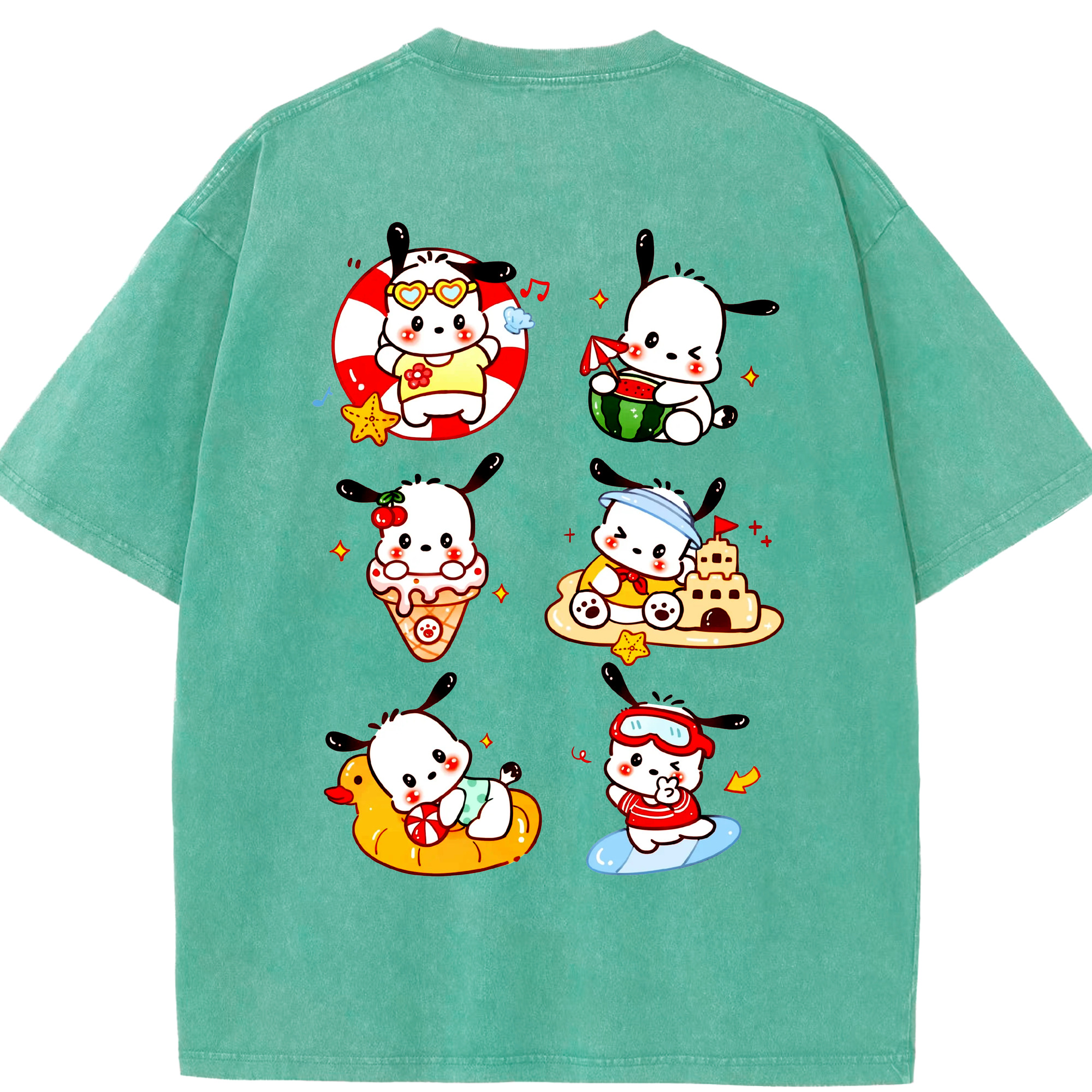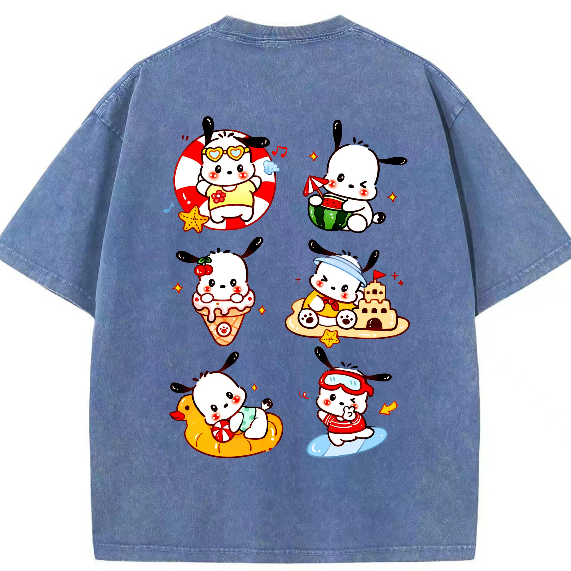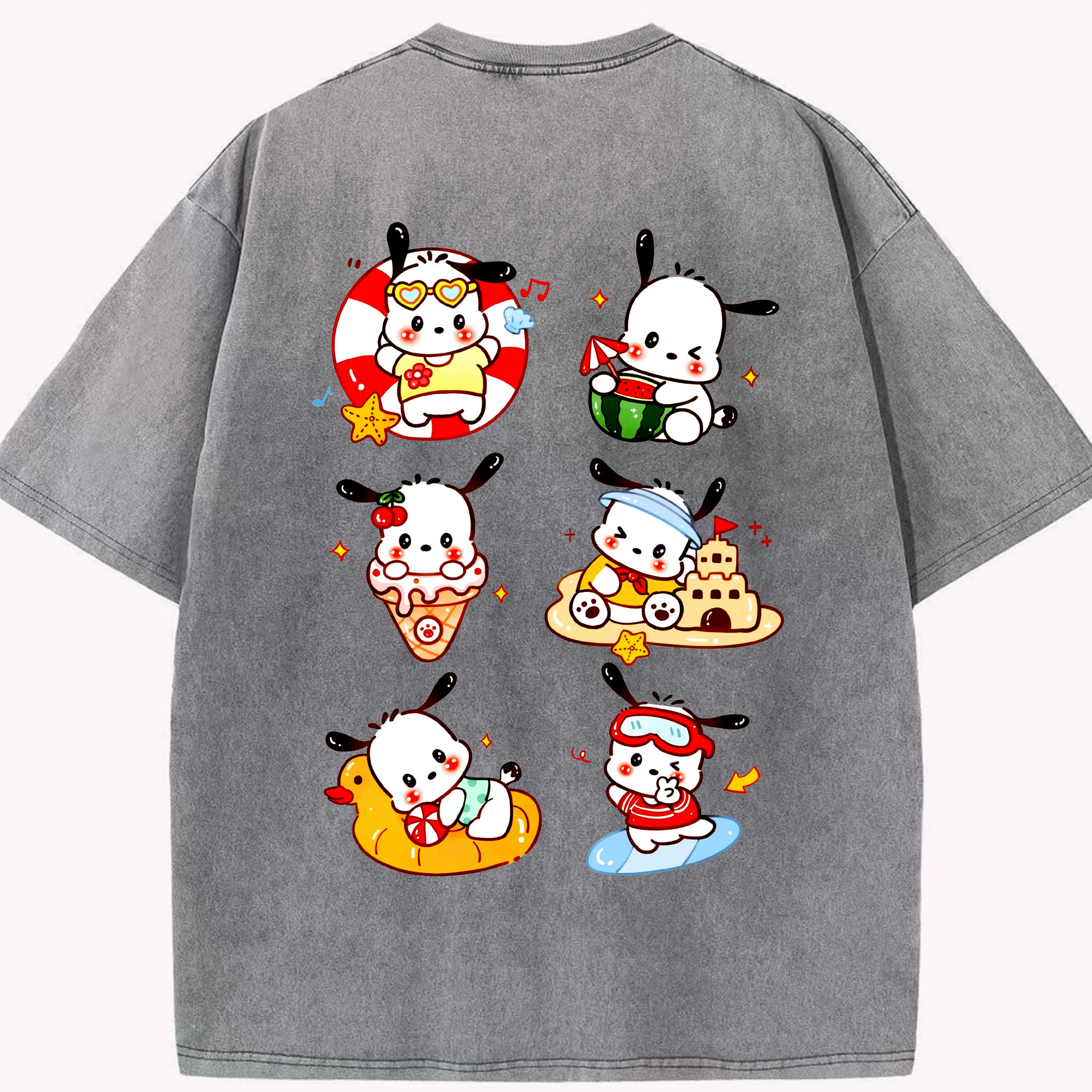サンリオポチャッコ - 綿100% ヴィンテージ風 半袖Tシャツ ・ 背面プリント ・ 柔らか肌触り ・ 通気性 快適 ・ スポーツ カジュアル 外出用