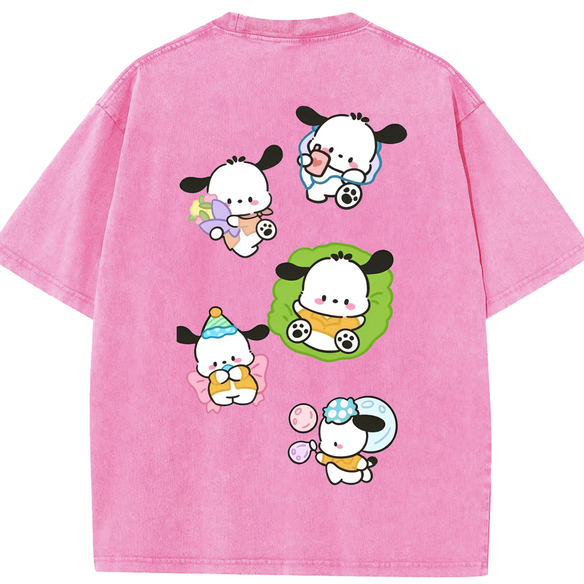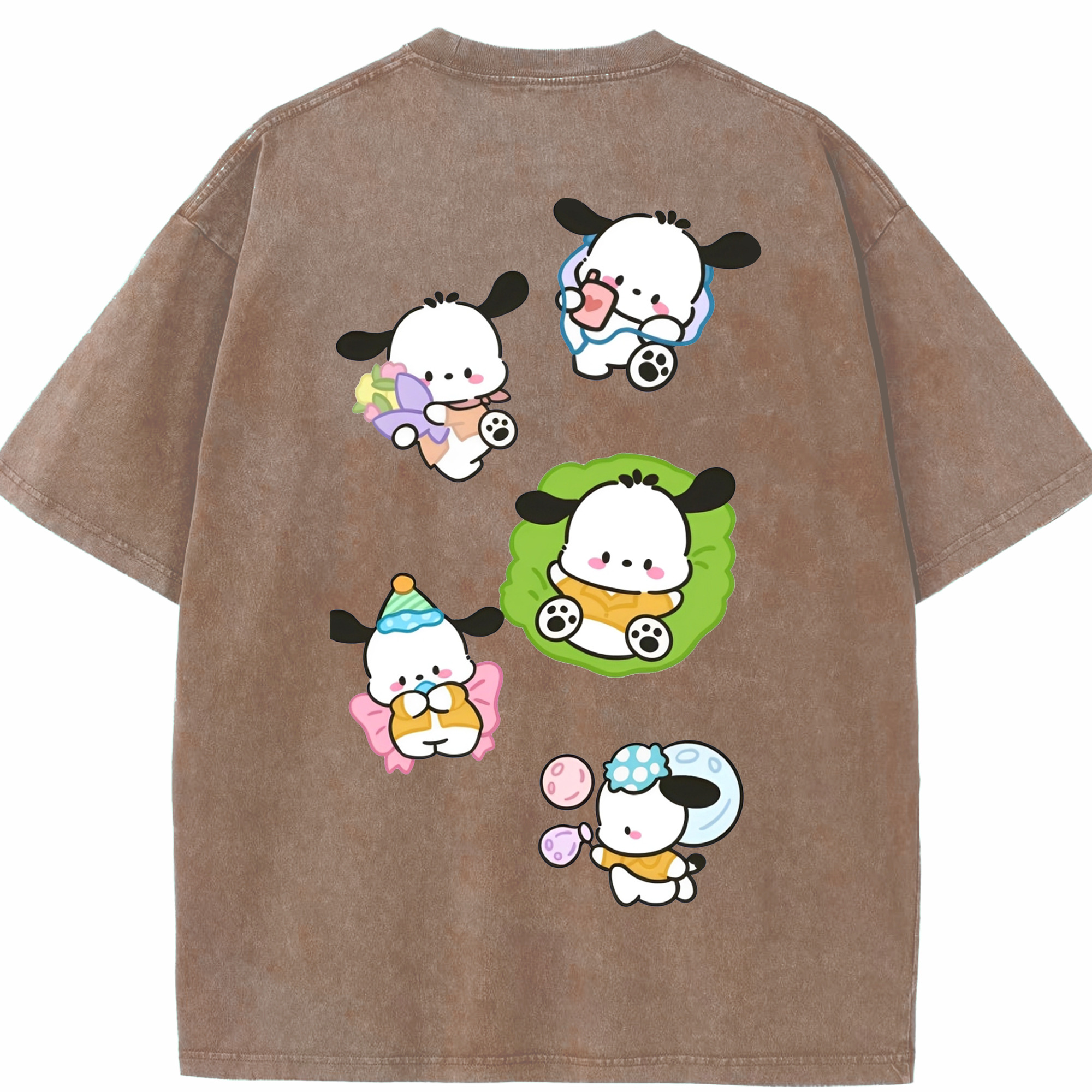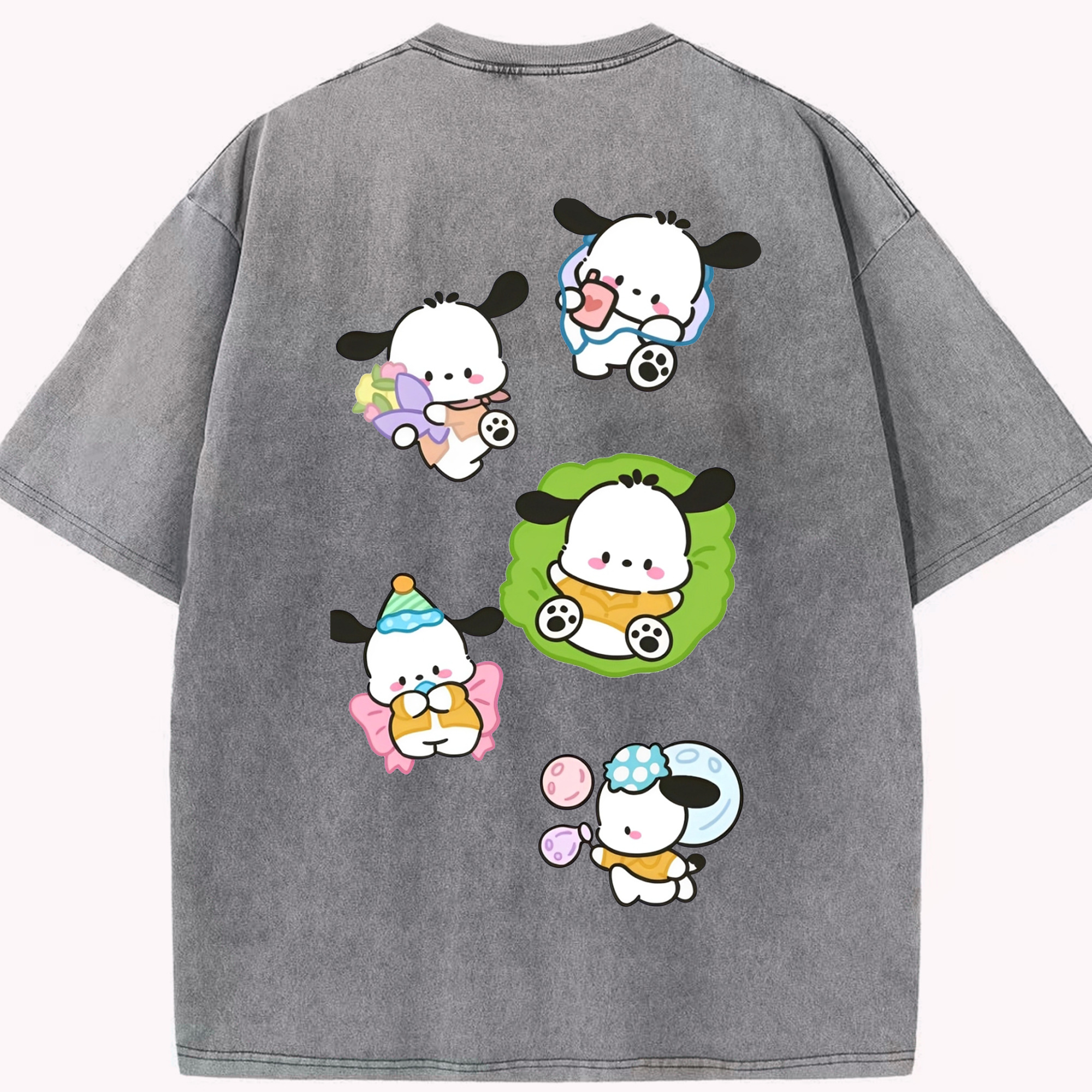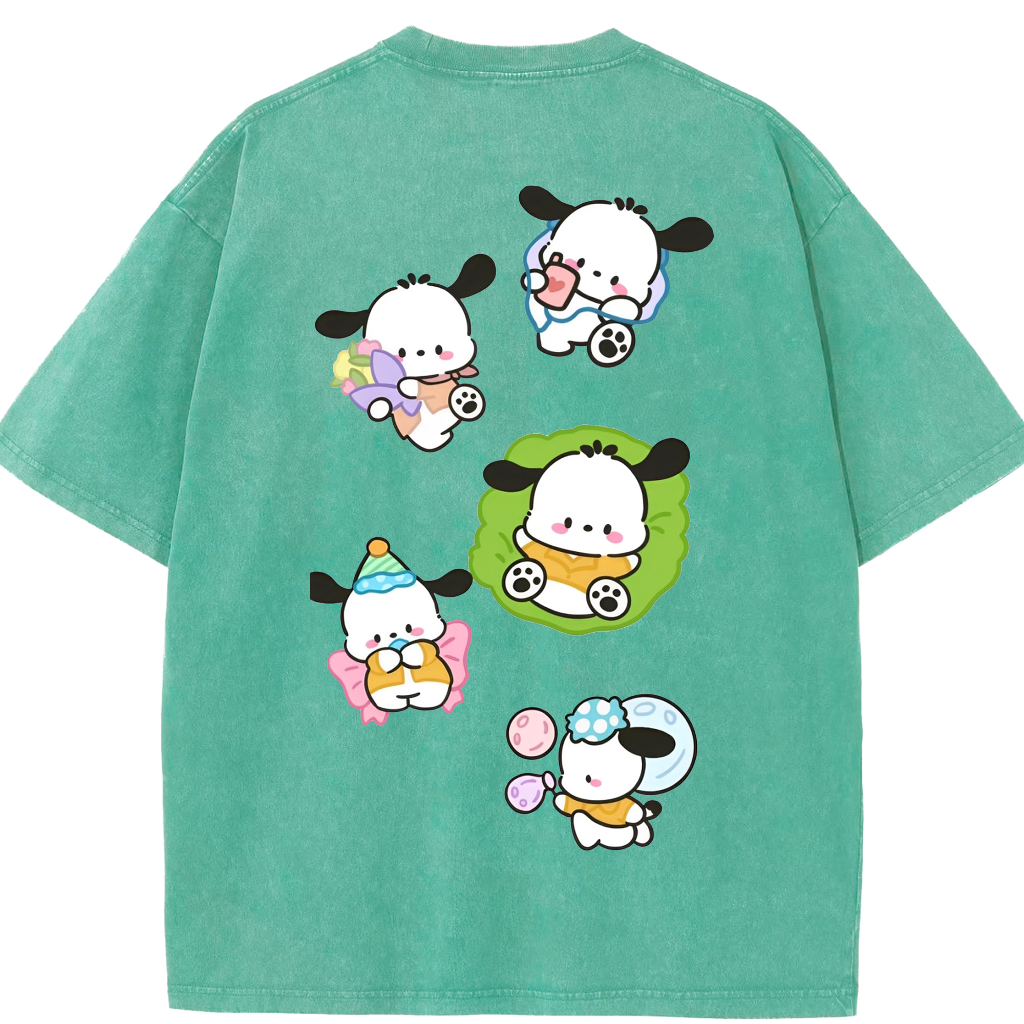 スイート系サンリオ - 綿100% ヴィンテージ風 半袖Tシャツ ・ 背面プリント ・ 柔らか肌触り ・ 通気性 快適 ・ スポーツ カジュアル 外出用