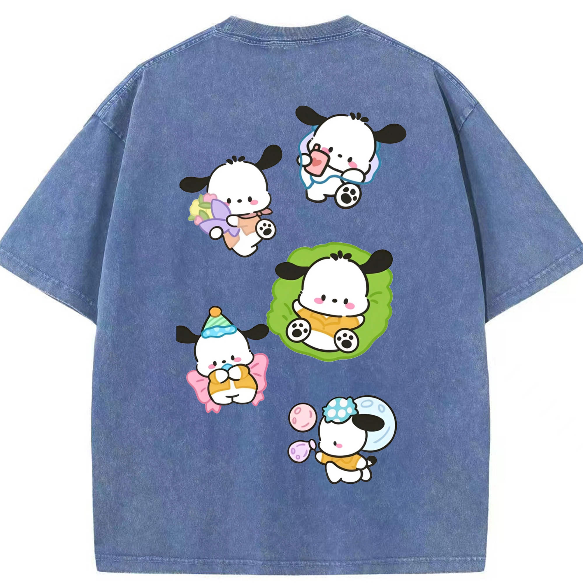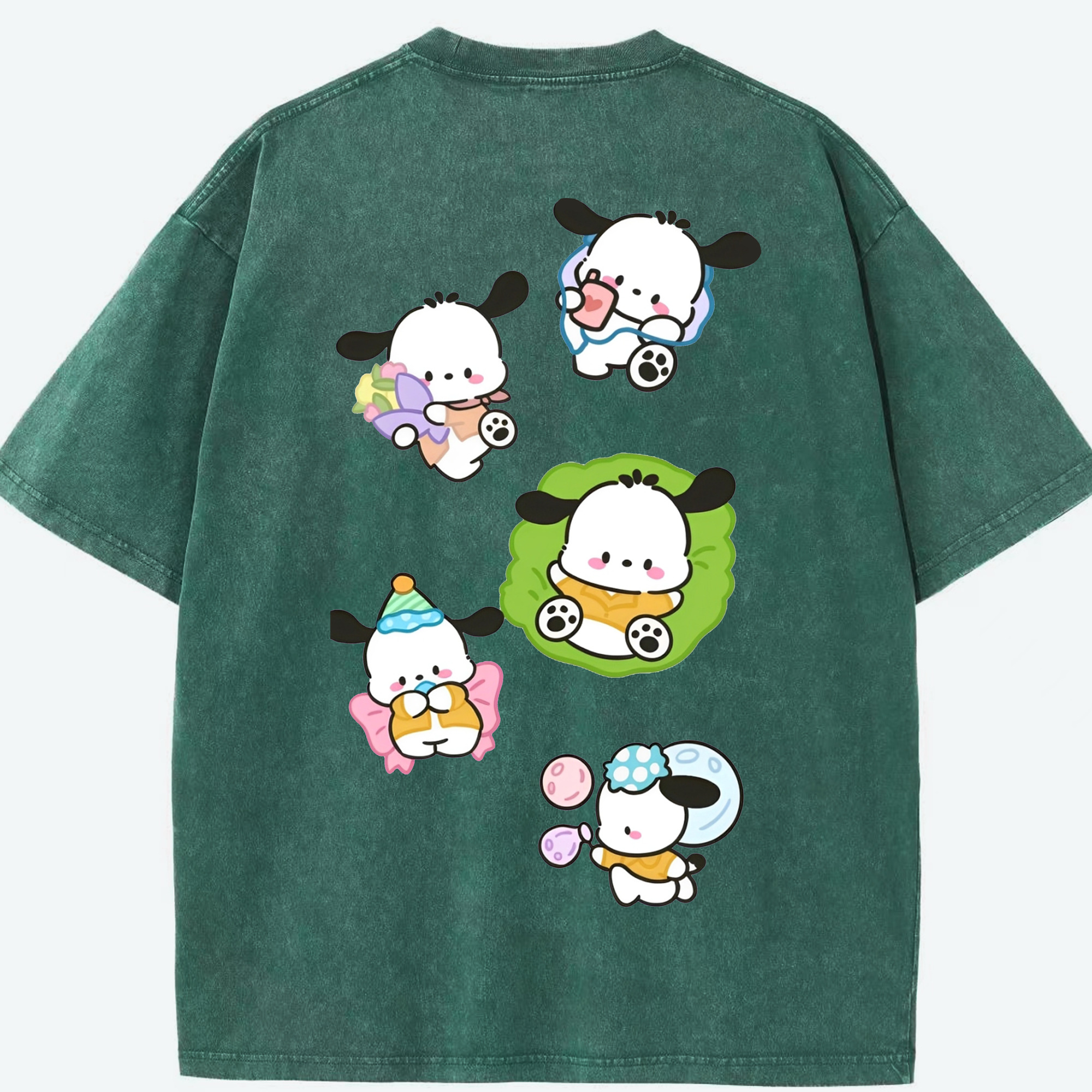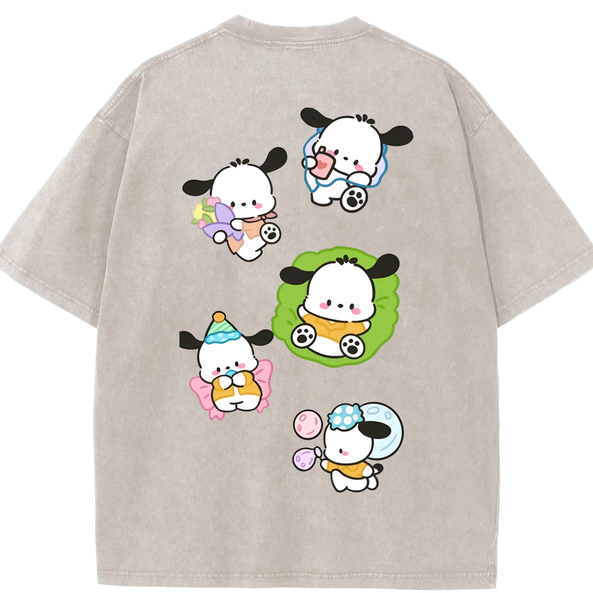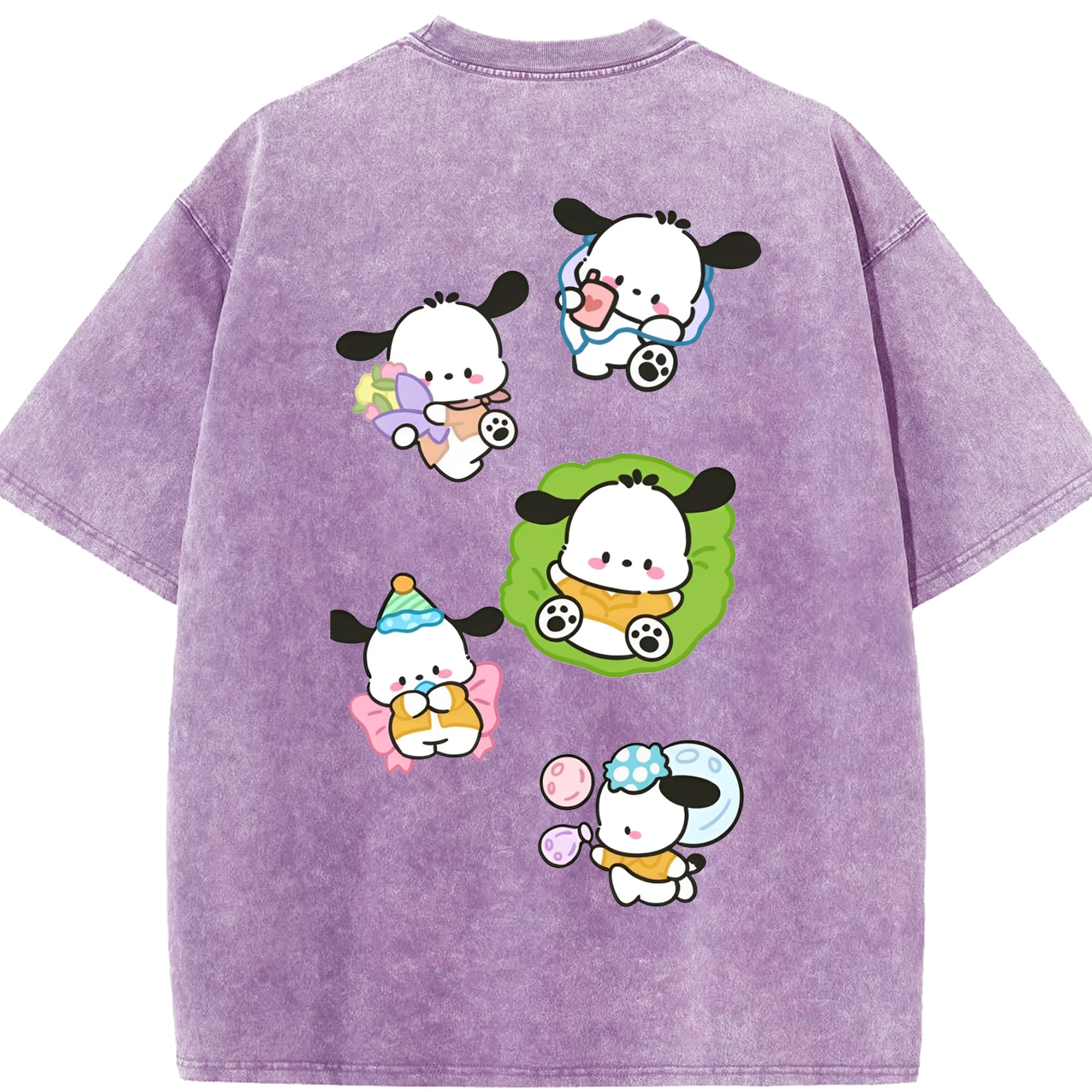スイート系サンリオ - 綿100% ヴィンテージ風 半袖Tシャツ ・ 背面プリント ・ 柔らか肌触り ・ 通気性 快適 ・ スポーツ カジュアル 外出用