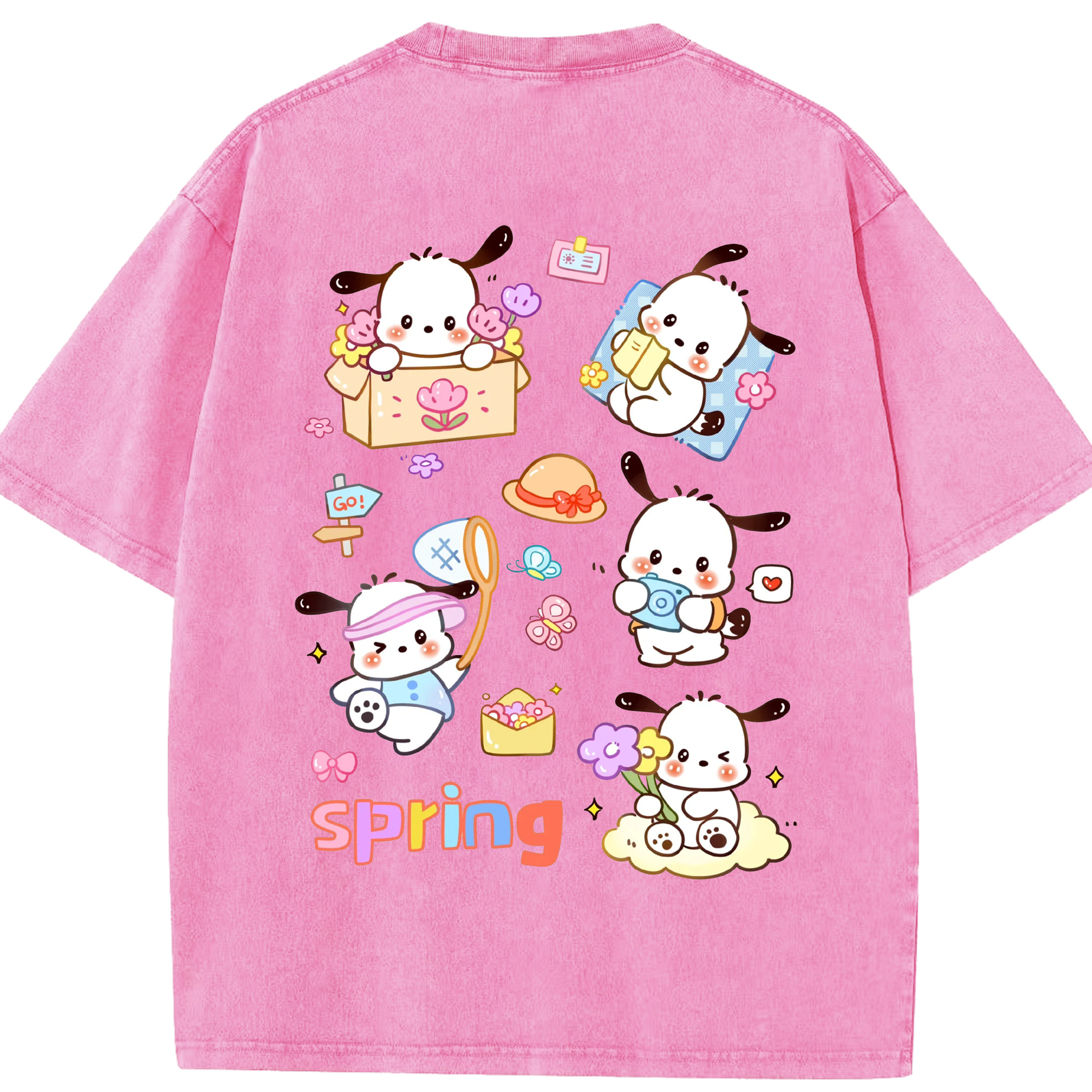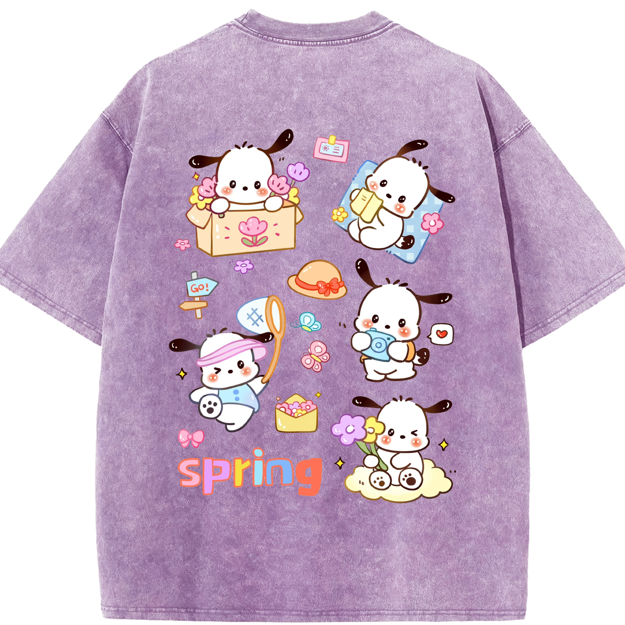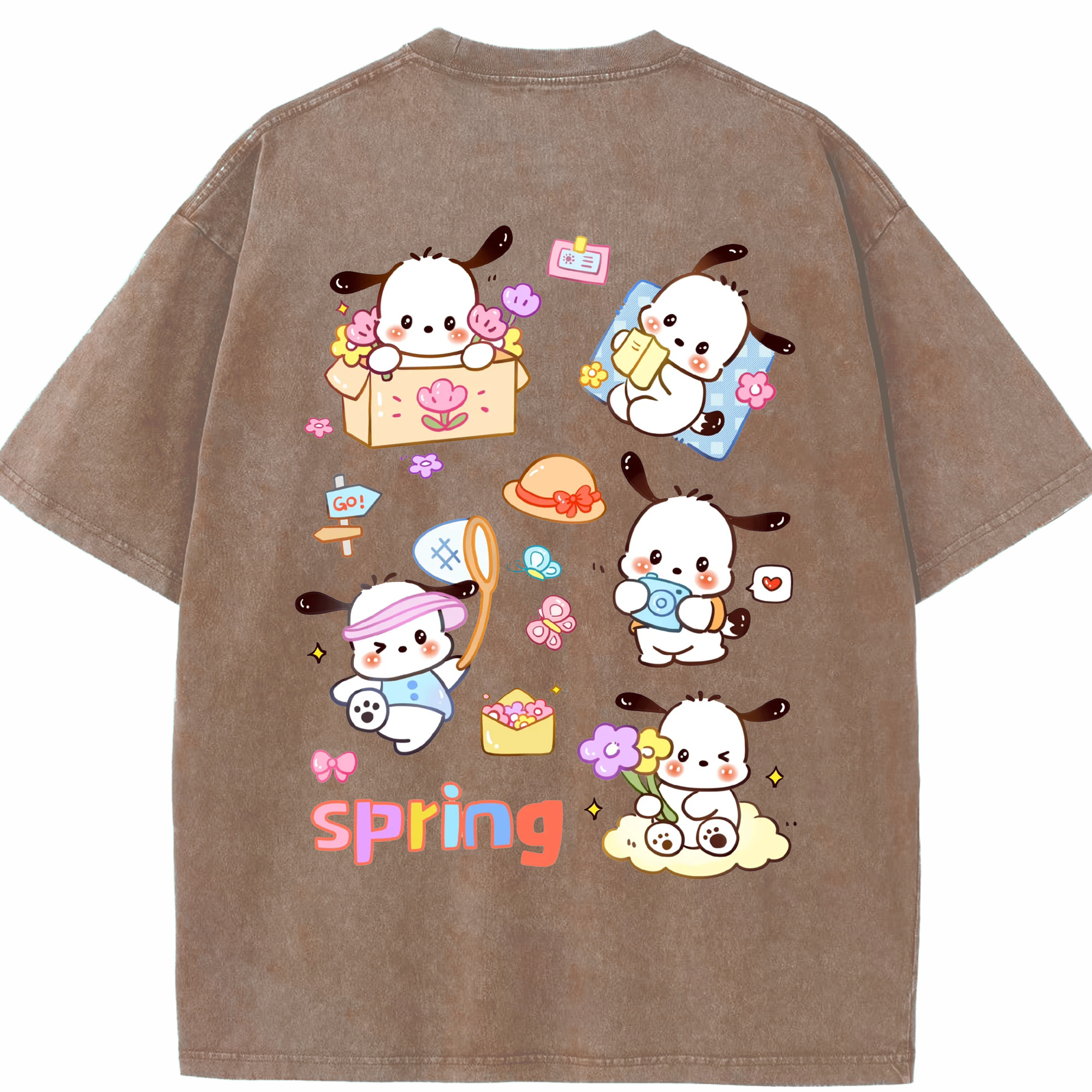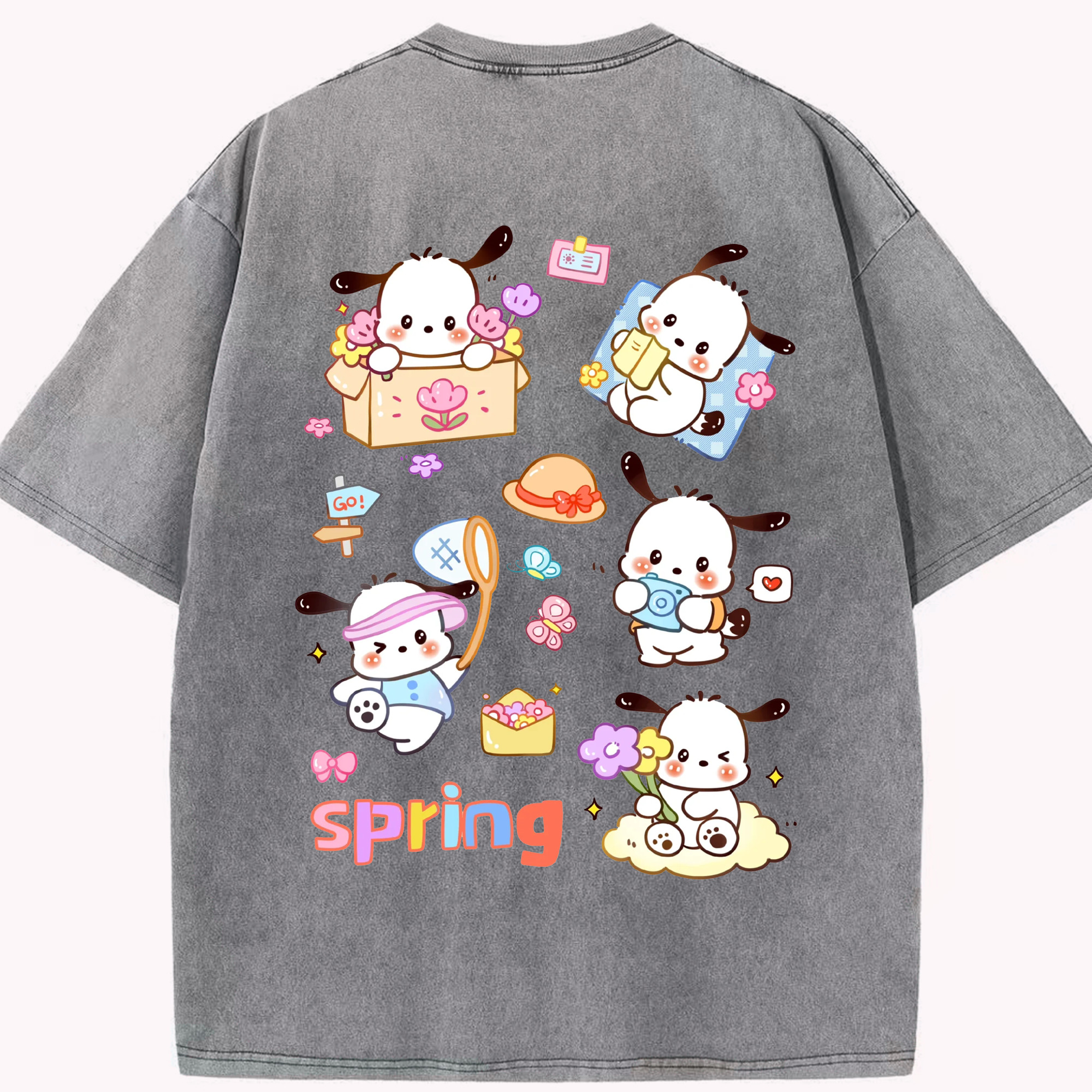 スイート系サンリオ - 綿100% ヴィンテージ風 半袖Tシャツ ・ 背面プリント ・ 柔らか肌触り ・ 通気性 快適 ・ スポーツ カジュアル 外出用