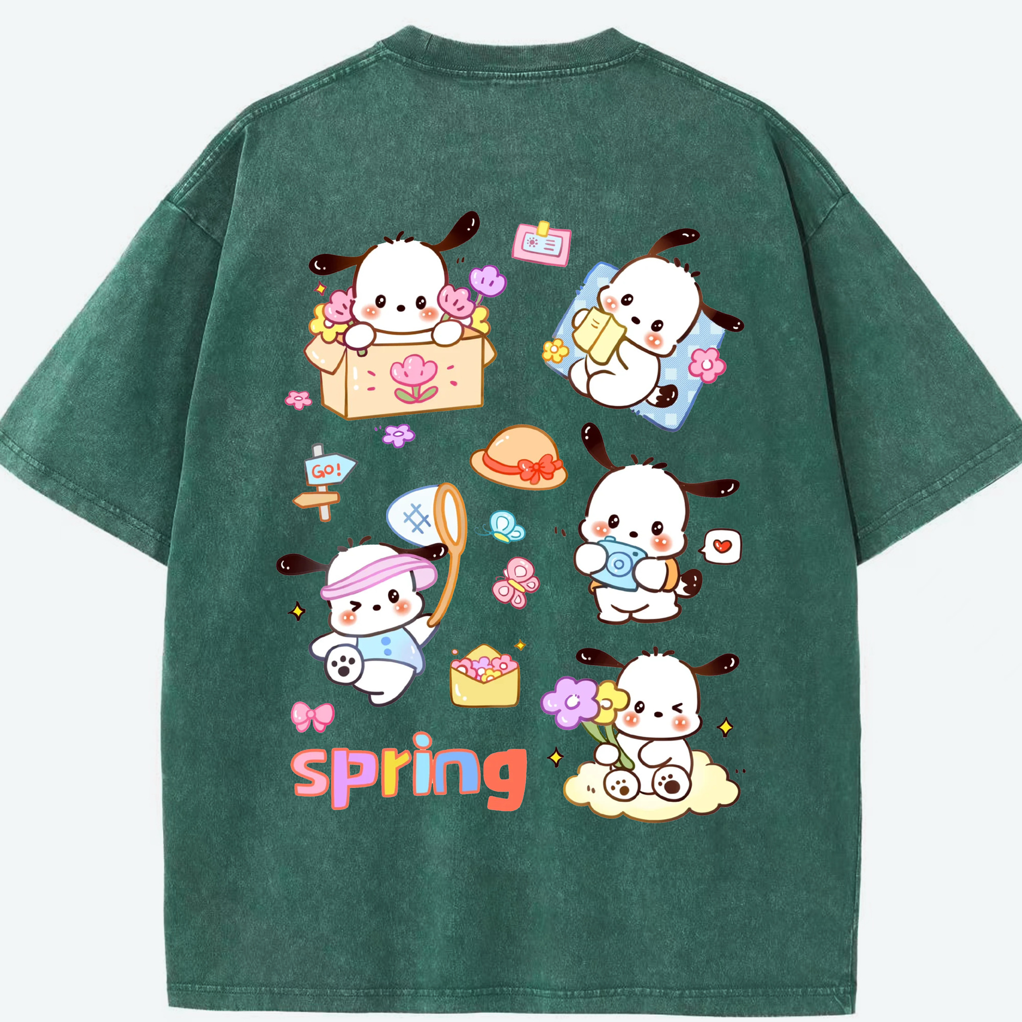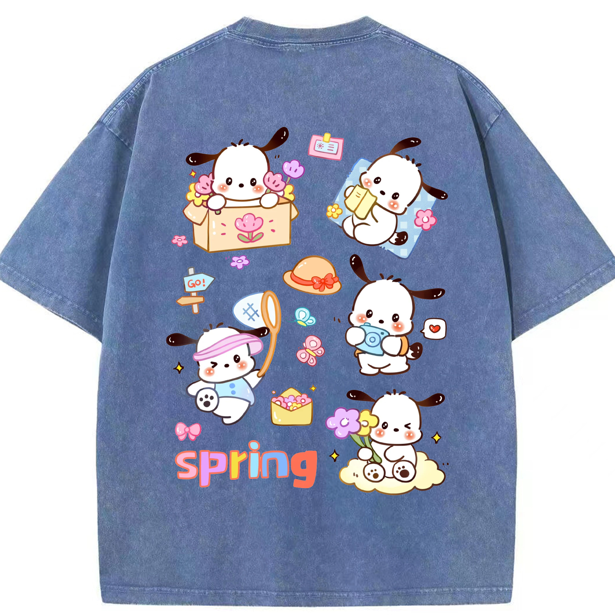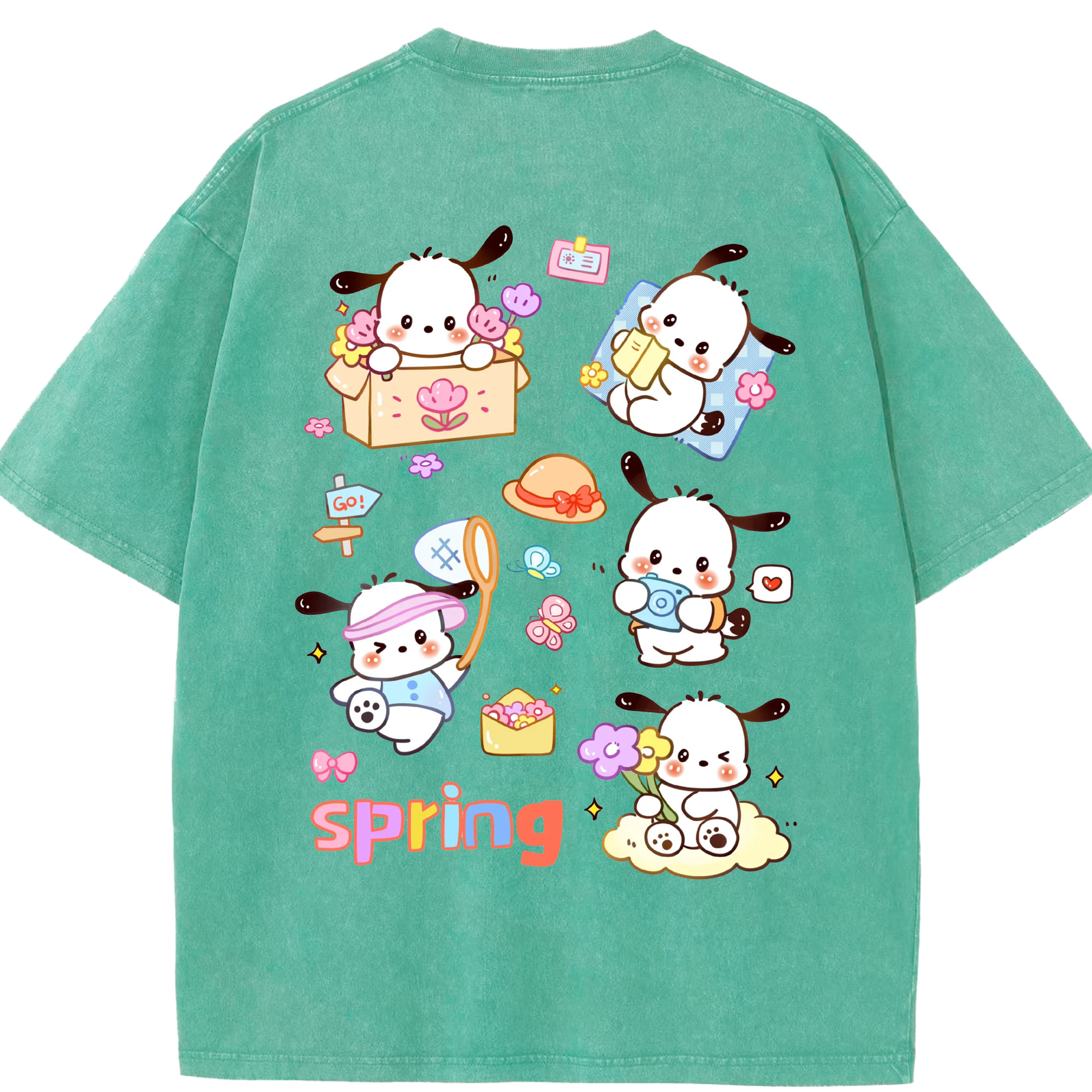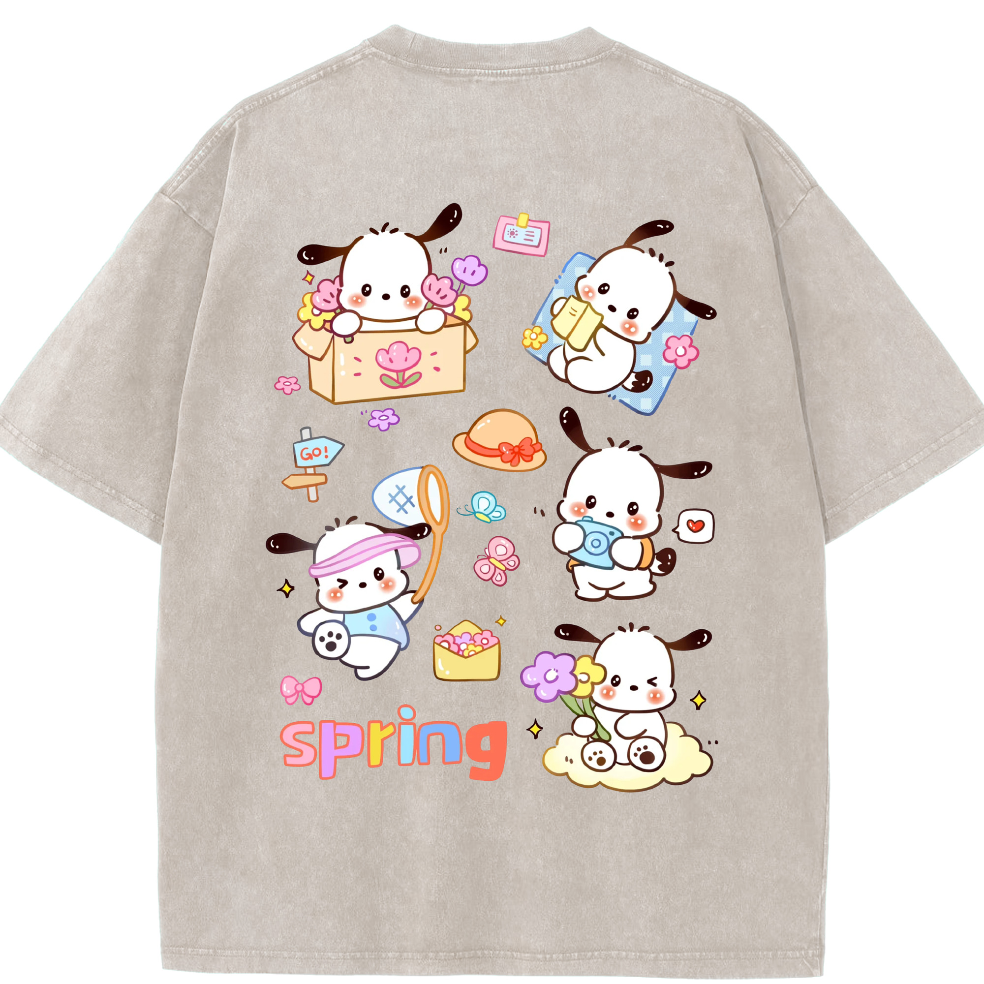 スイート系サンリオ - 綿100% ヴィンテージ風 半袖Tシャツ ・ 背面プリント ・ 柔らか肌触り ・ 通気性 快適 ・ スポーツ カジュアル 外出用