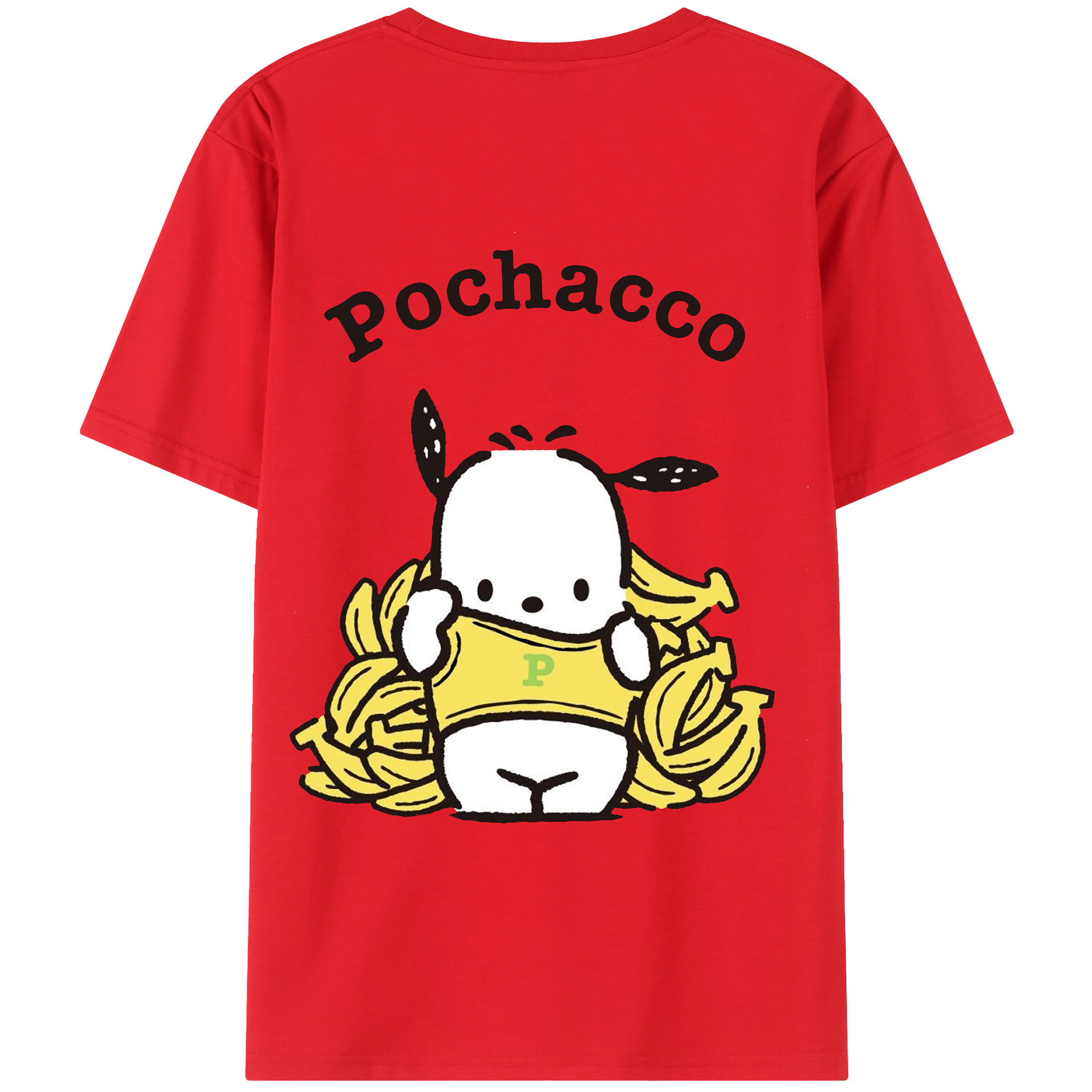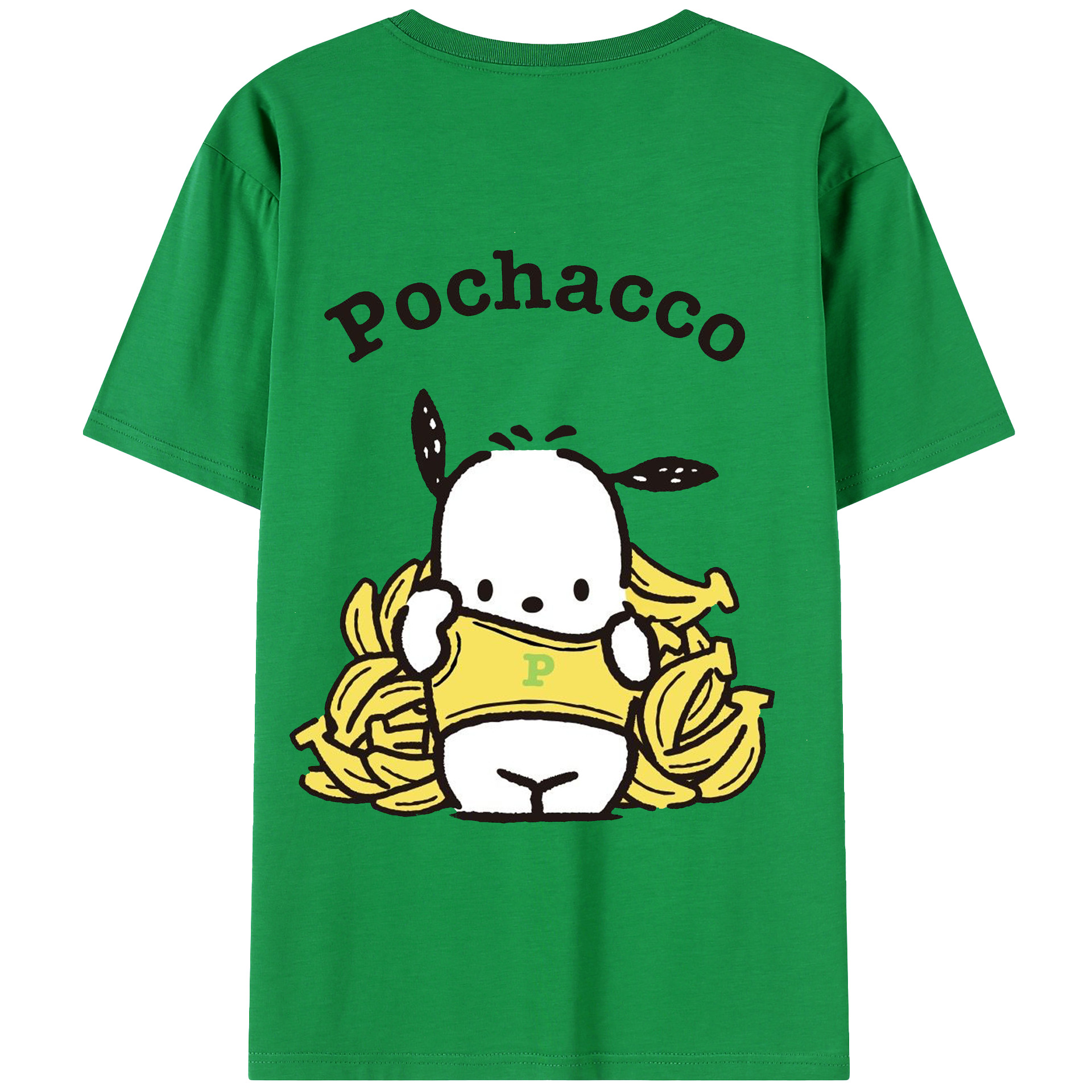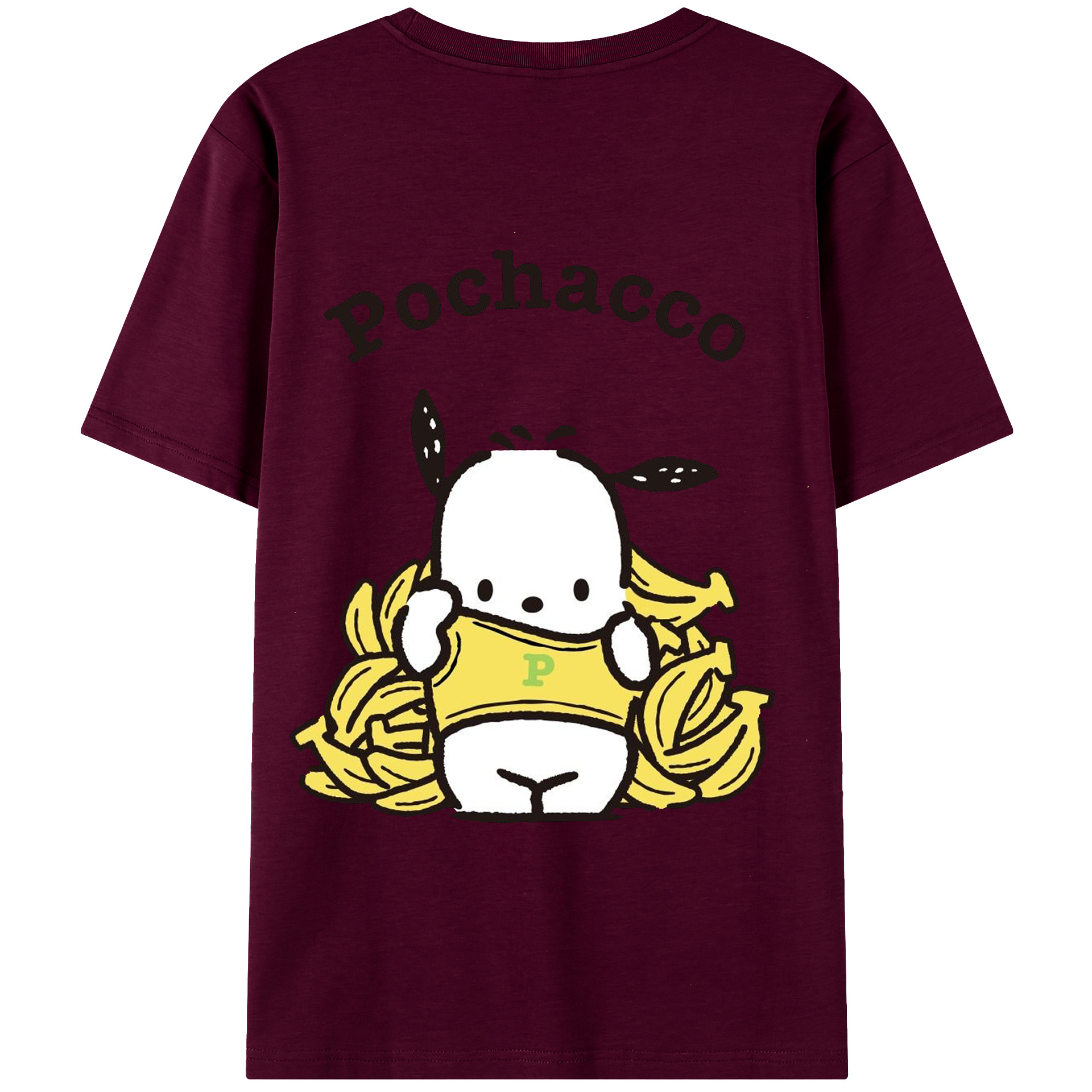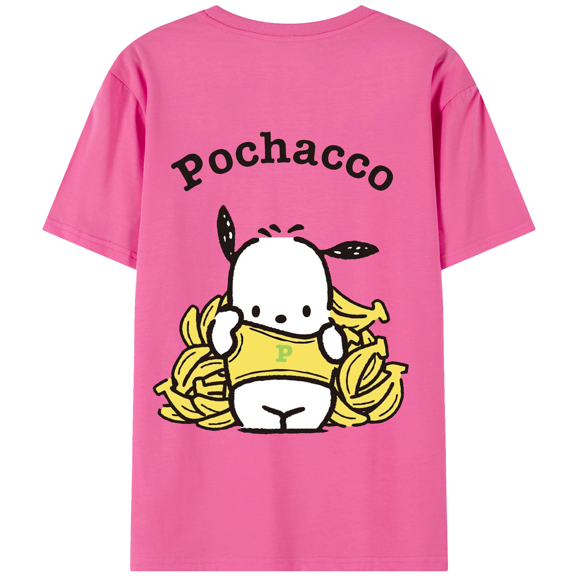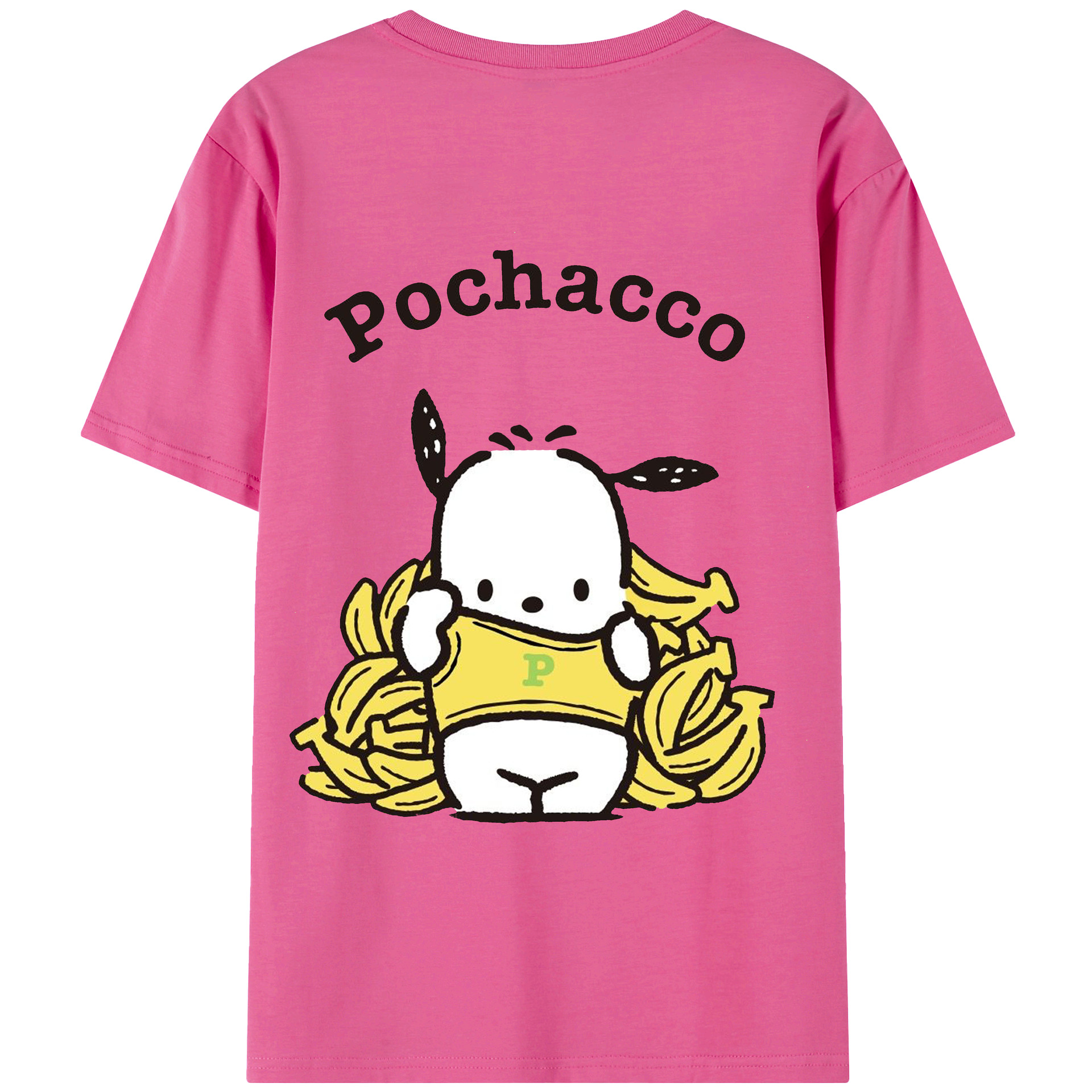 かわいいパッチャコ - レディース半袖Tシャツ ・ 綿100% ・ バックプリント ・ 強化クルーネック ・ 二重折り袖口 ・ 快適 通気性 ・ フィットネス カジュアル 旅行用