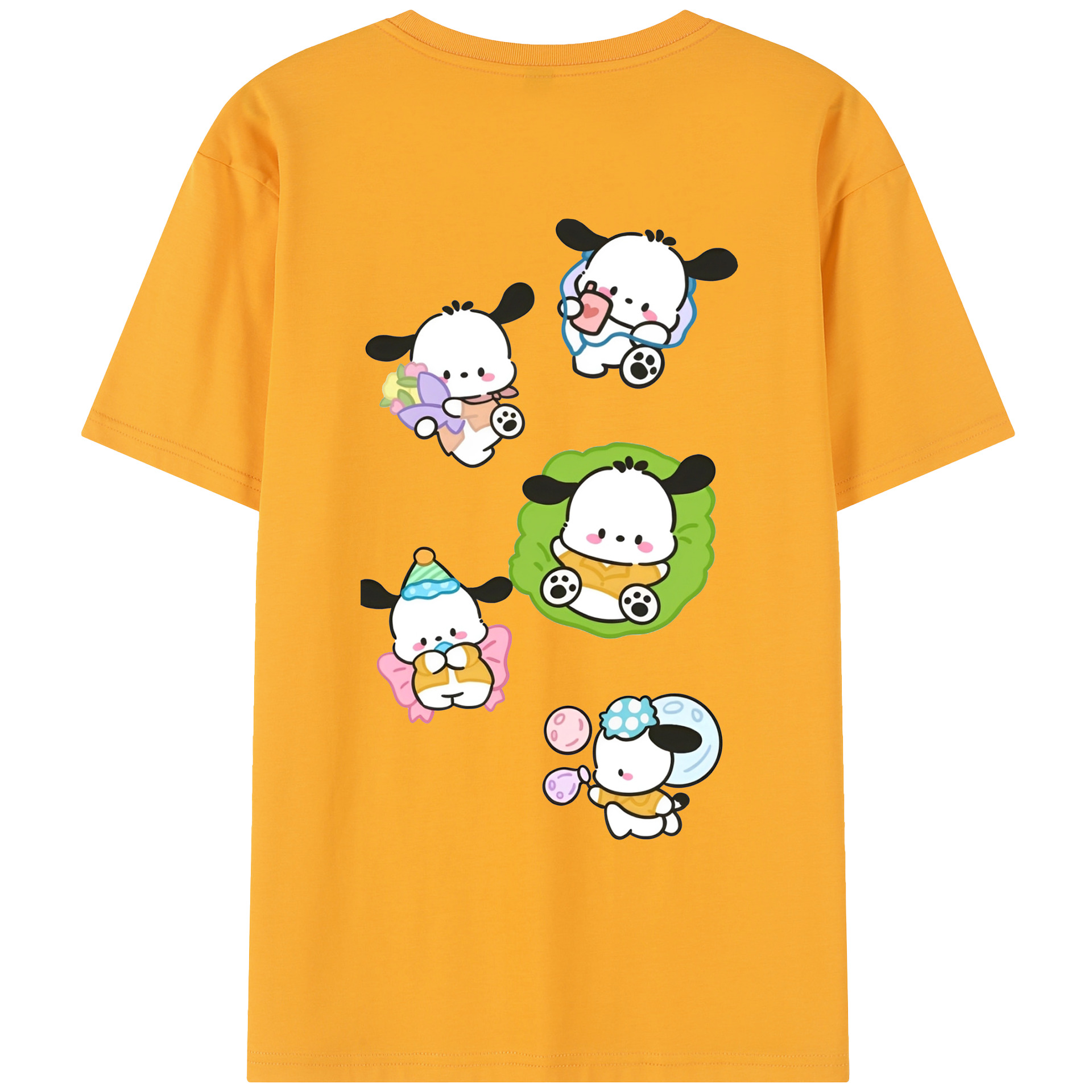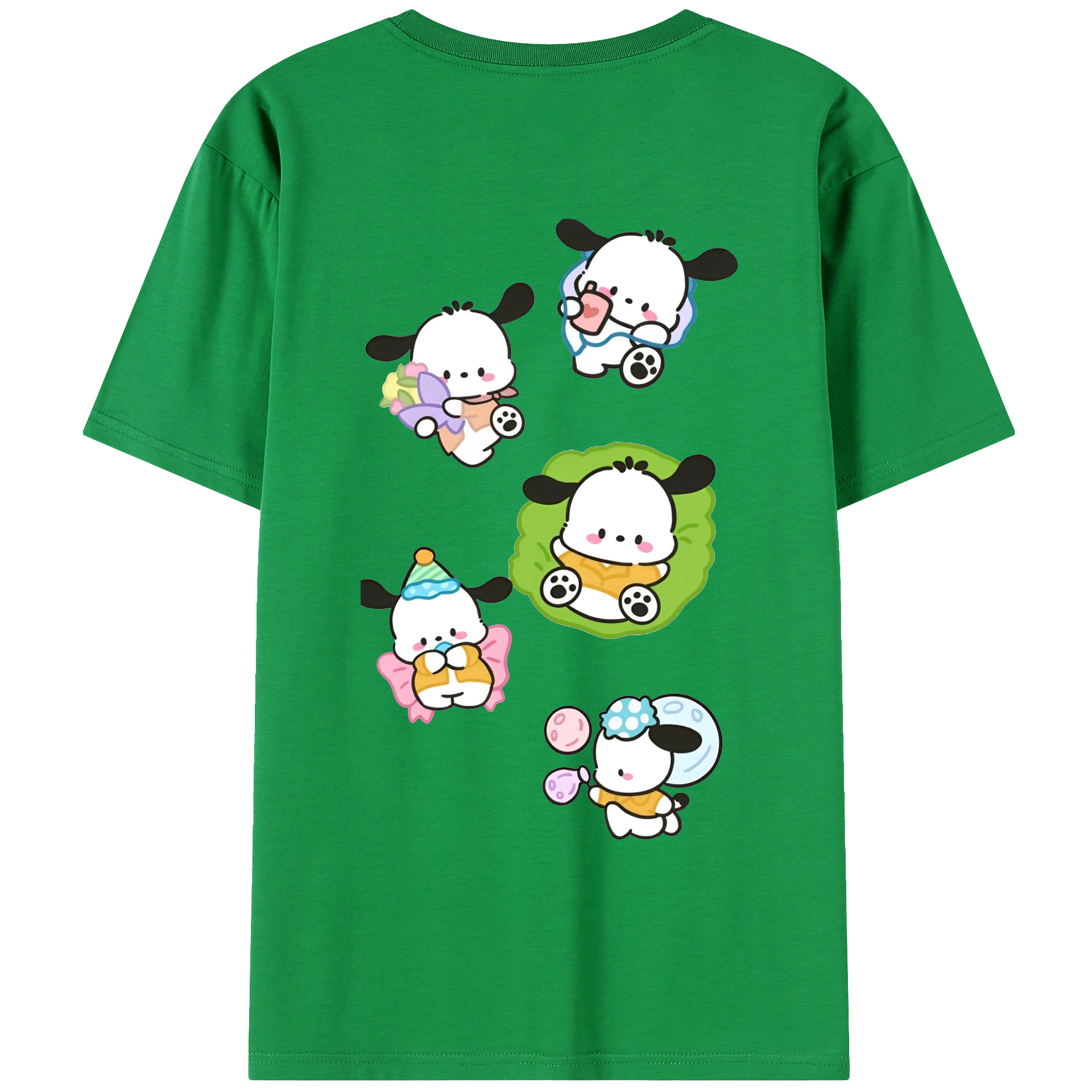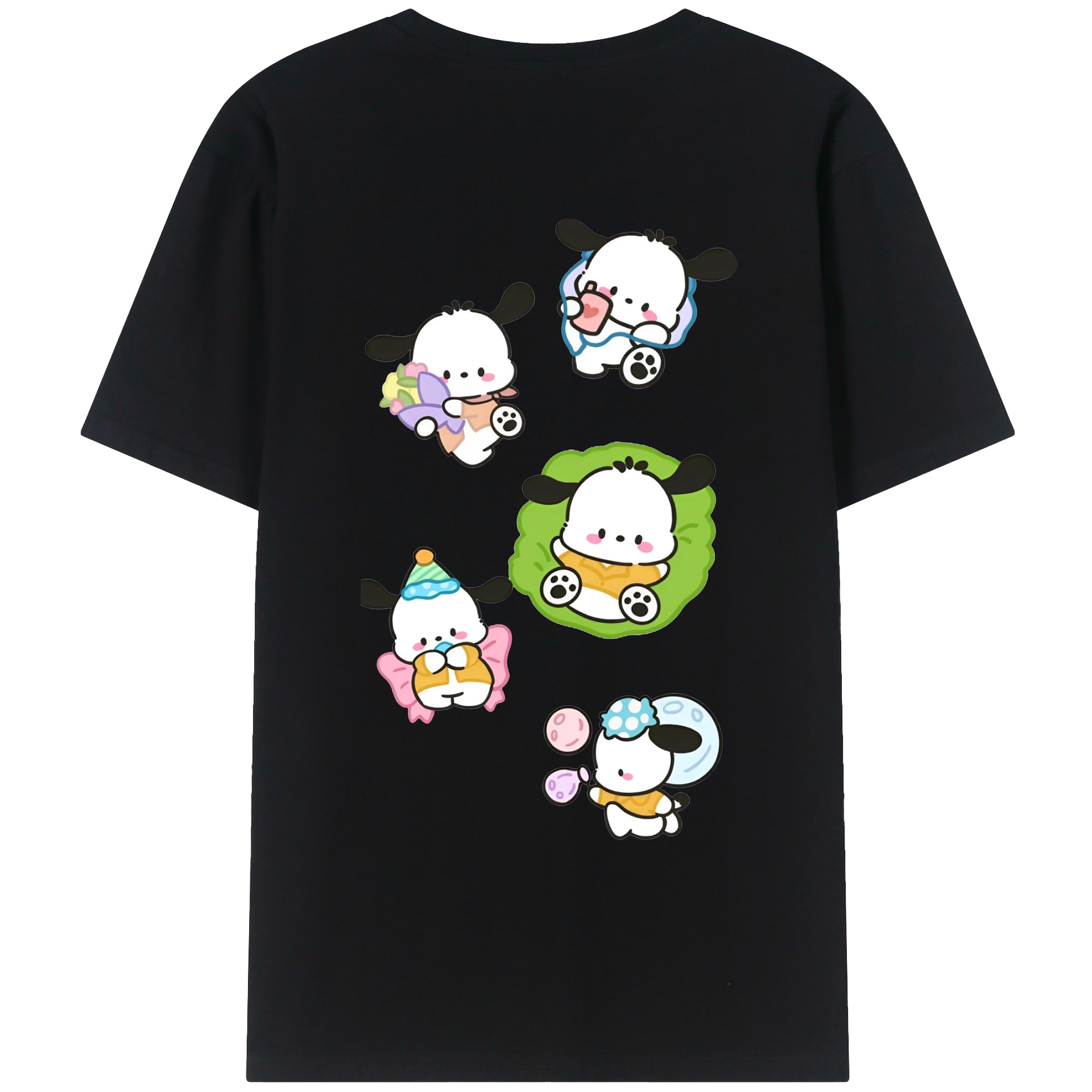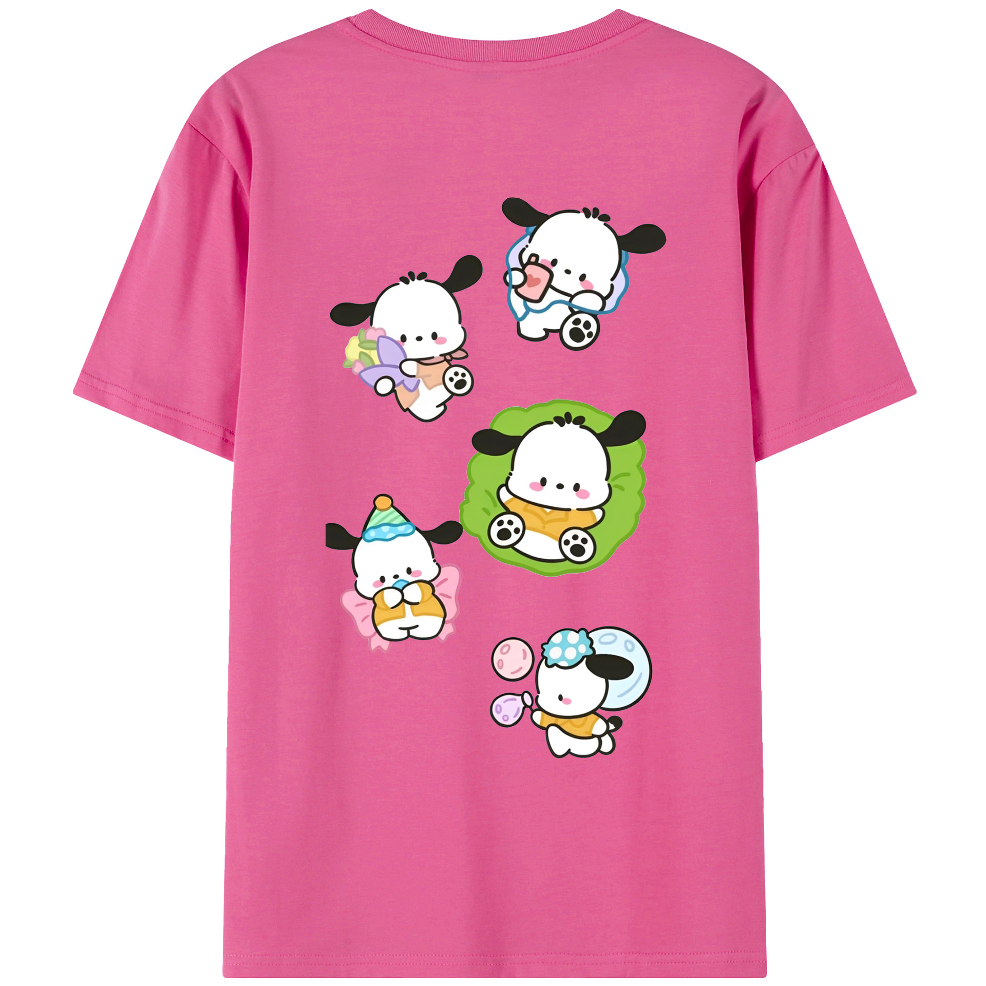 かわいいパッチャコ - レディース半袖Tシャツ ・ 綿100% ・ バックプリント ・ 強化クルーネック ・ 二重折り袖口 ・ 快適 通気性 ・ フィットネス カジュアル 旅行用