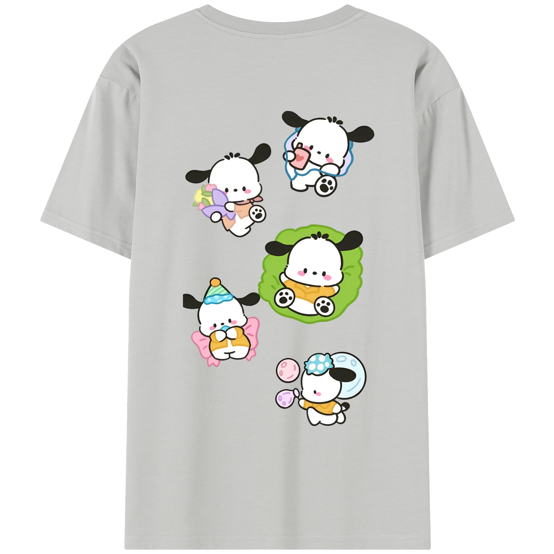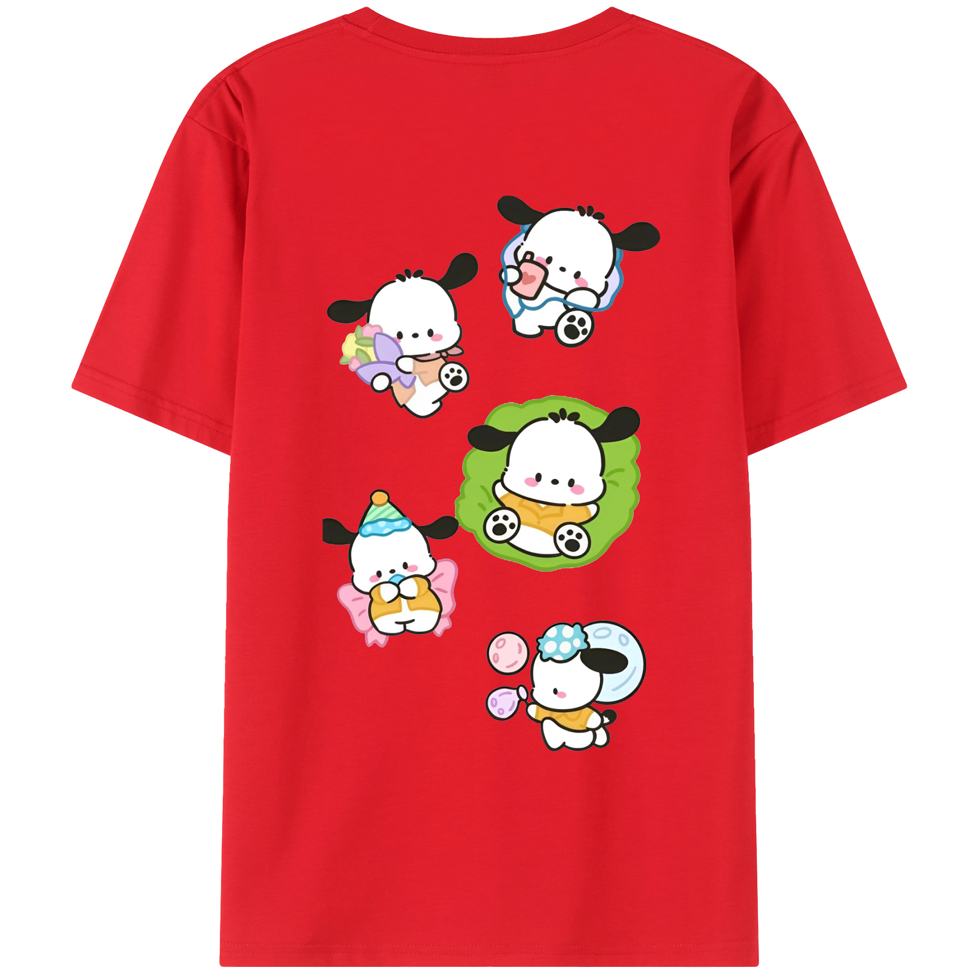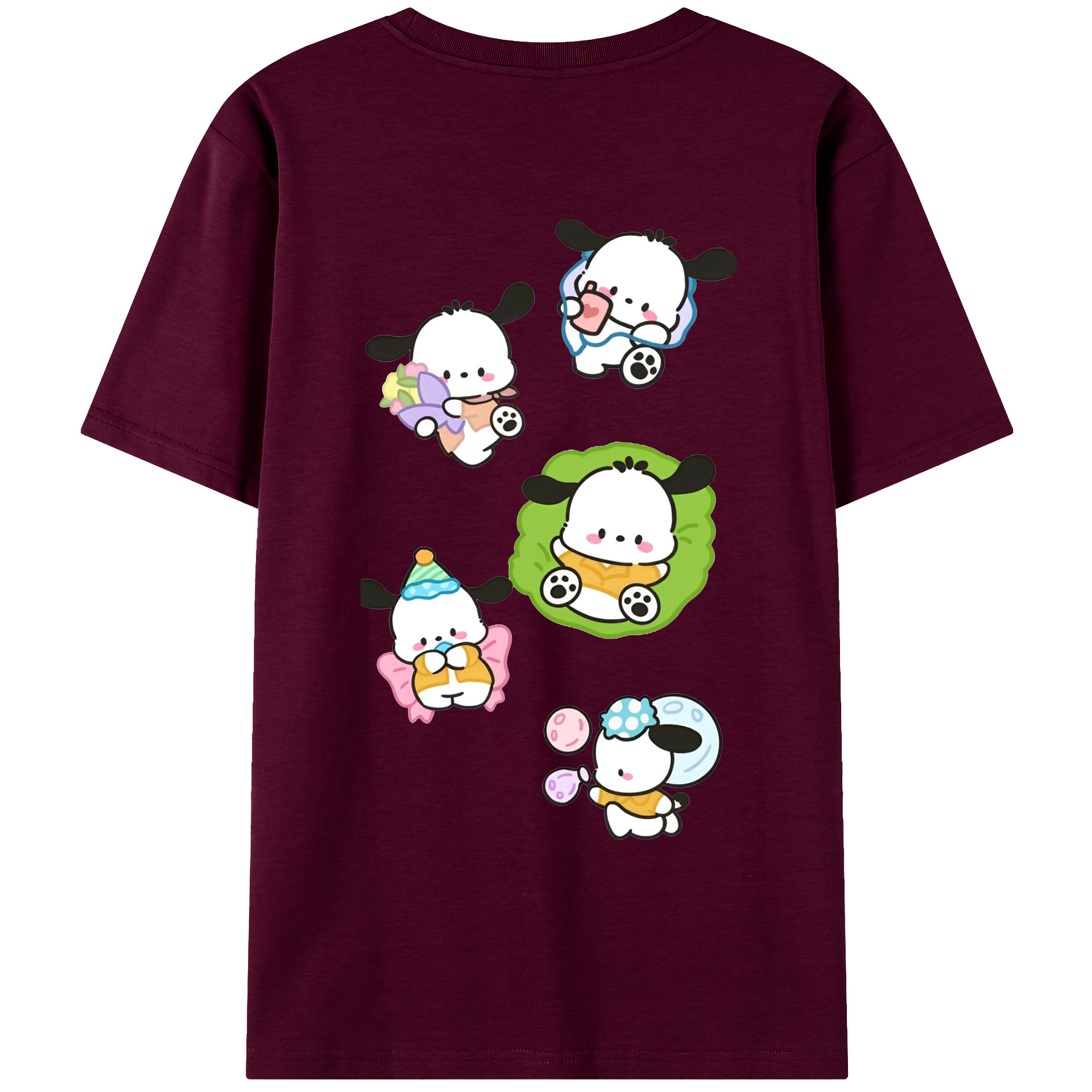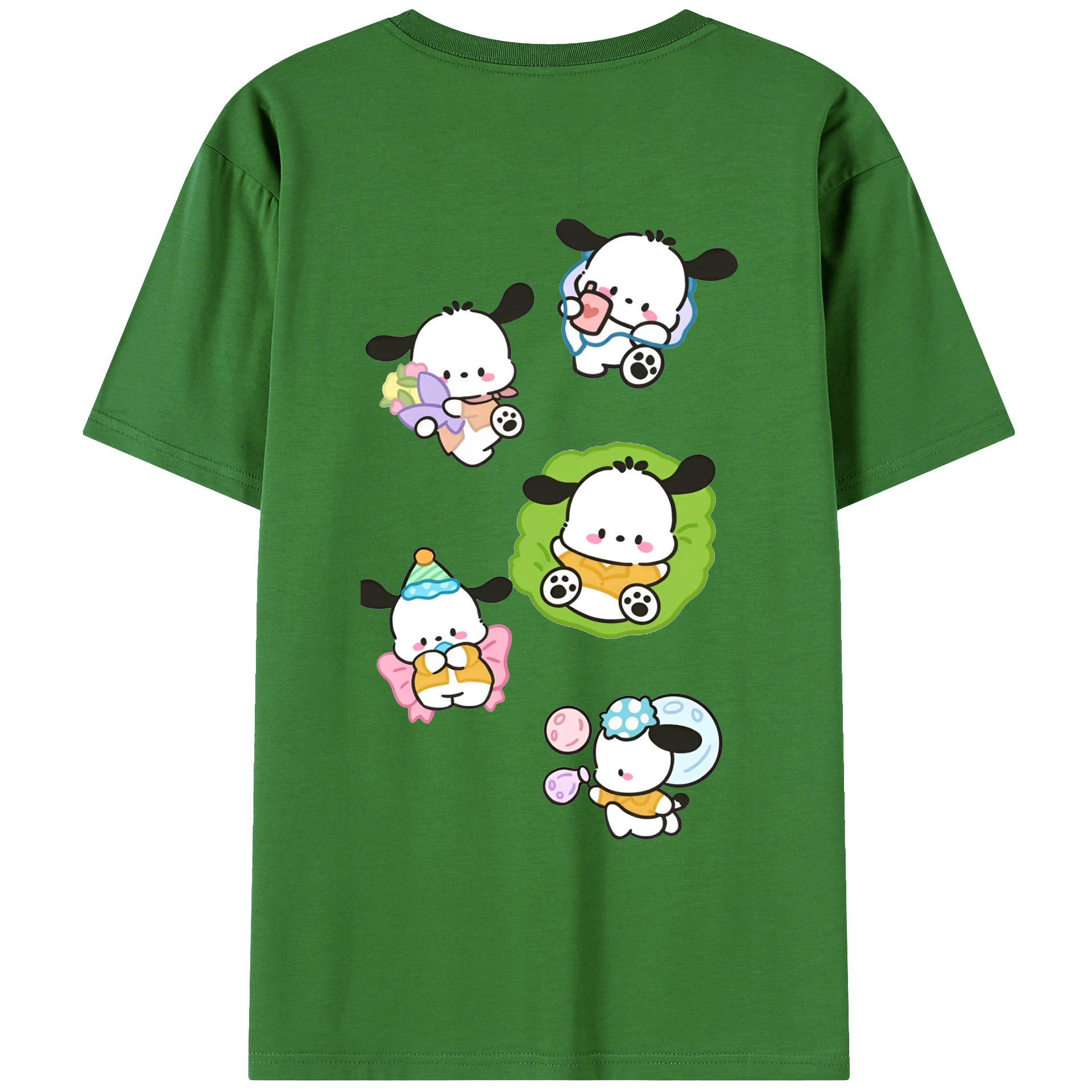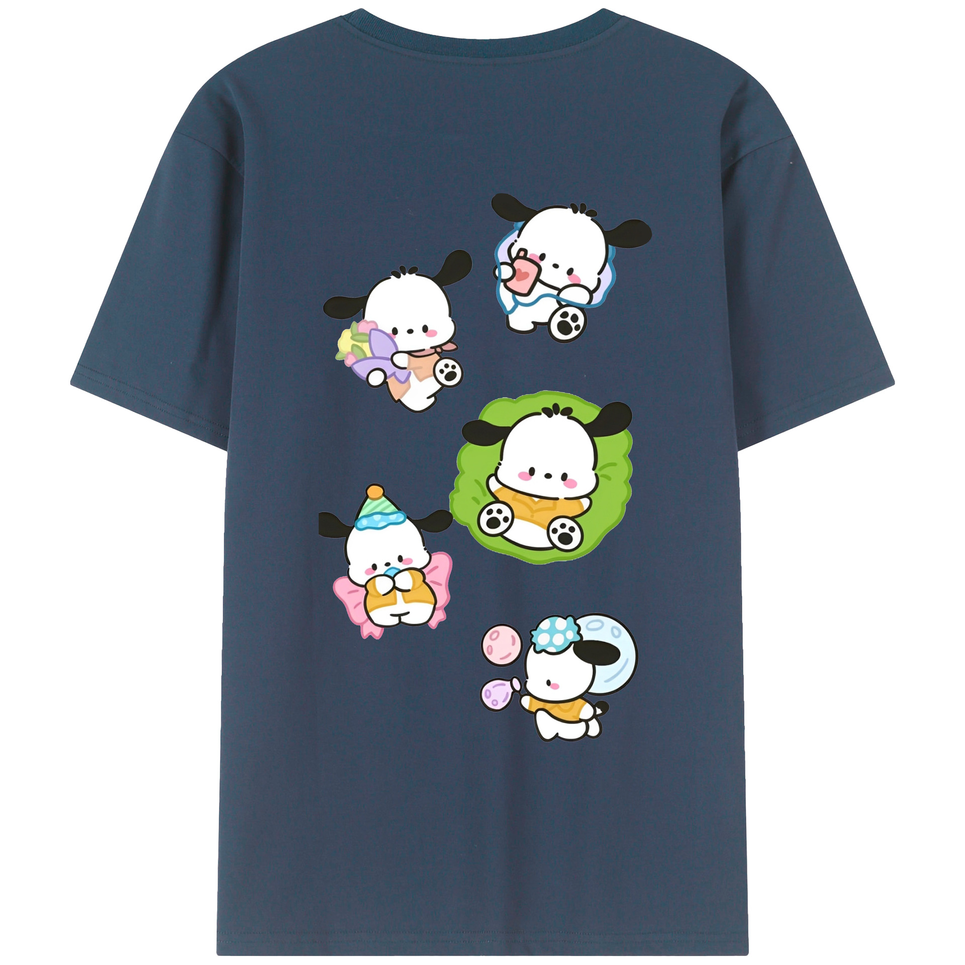 かわいいパッチャコ - レディース半袖Tシャツ ・ 綿100% ・ バックプリント ・ 強化クルーネック ・ 二重折り袖口 ・ 快適 通気性 ・ フィットネス カジュアル 旅行用