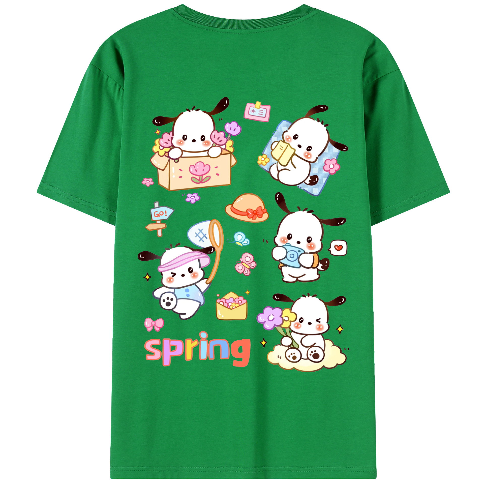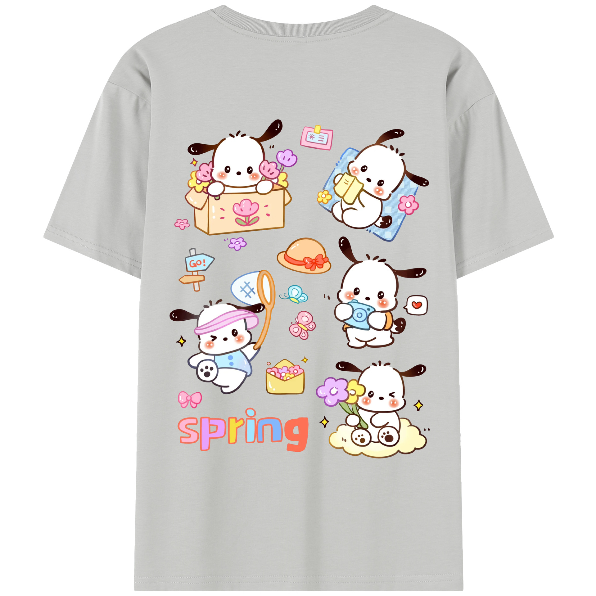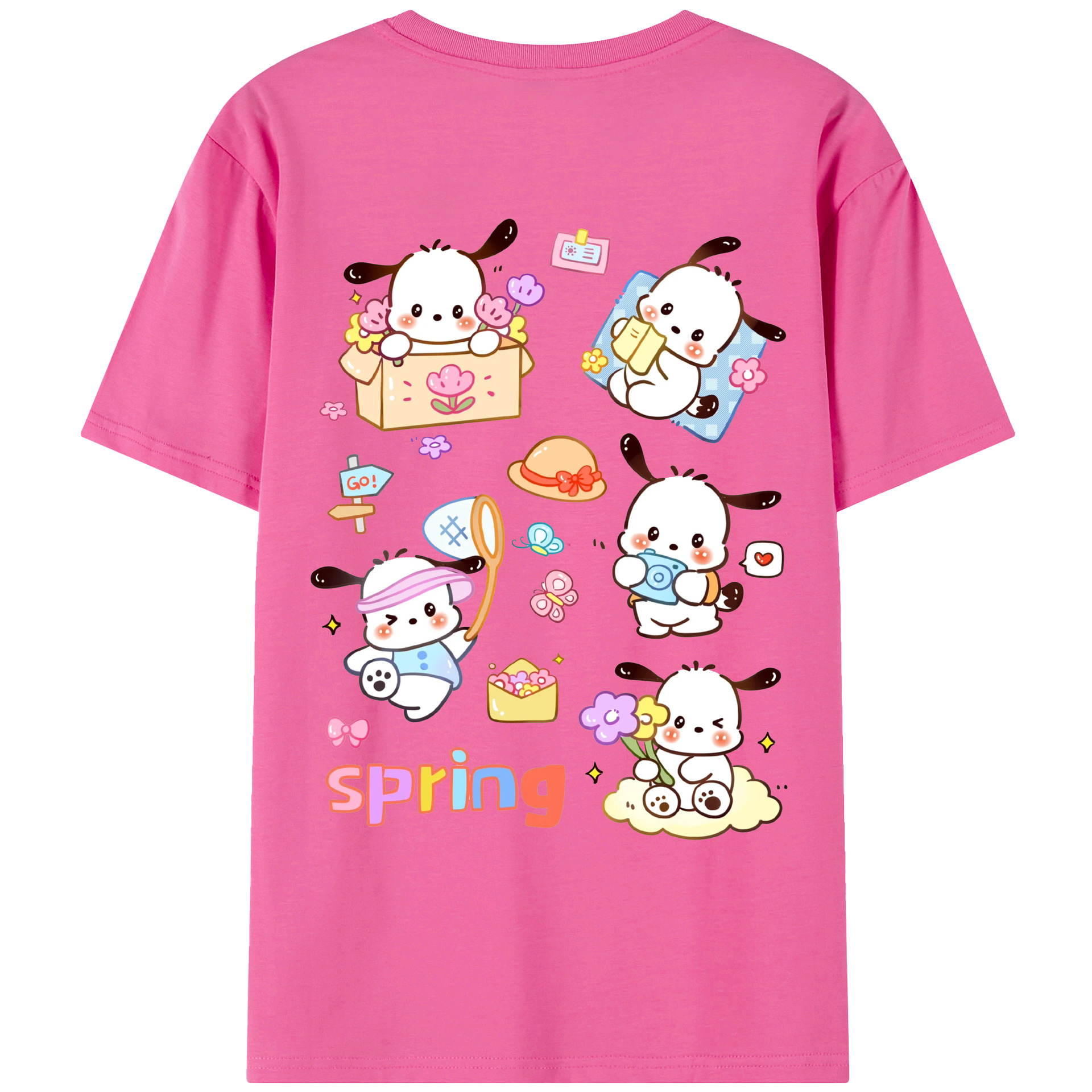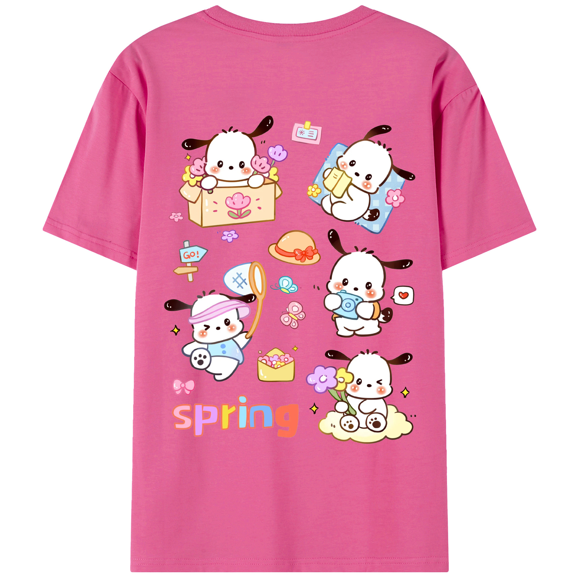 かわいいパッチャコ - レディース半袖Tシャツ ・ 綿100% ・ バックプリント ・ 強化クルーネック ・ 二重折り袖口 ・ 快適 通気性 ・ フィットネス カジュアル 旅行用