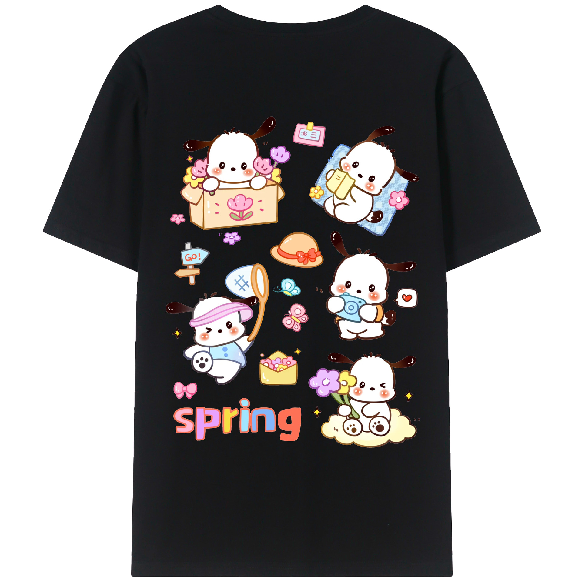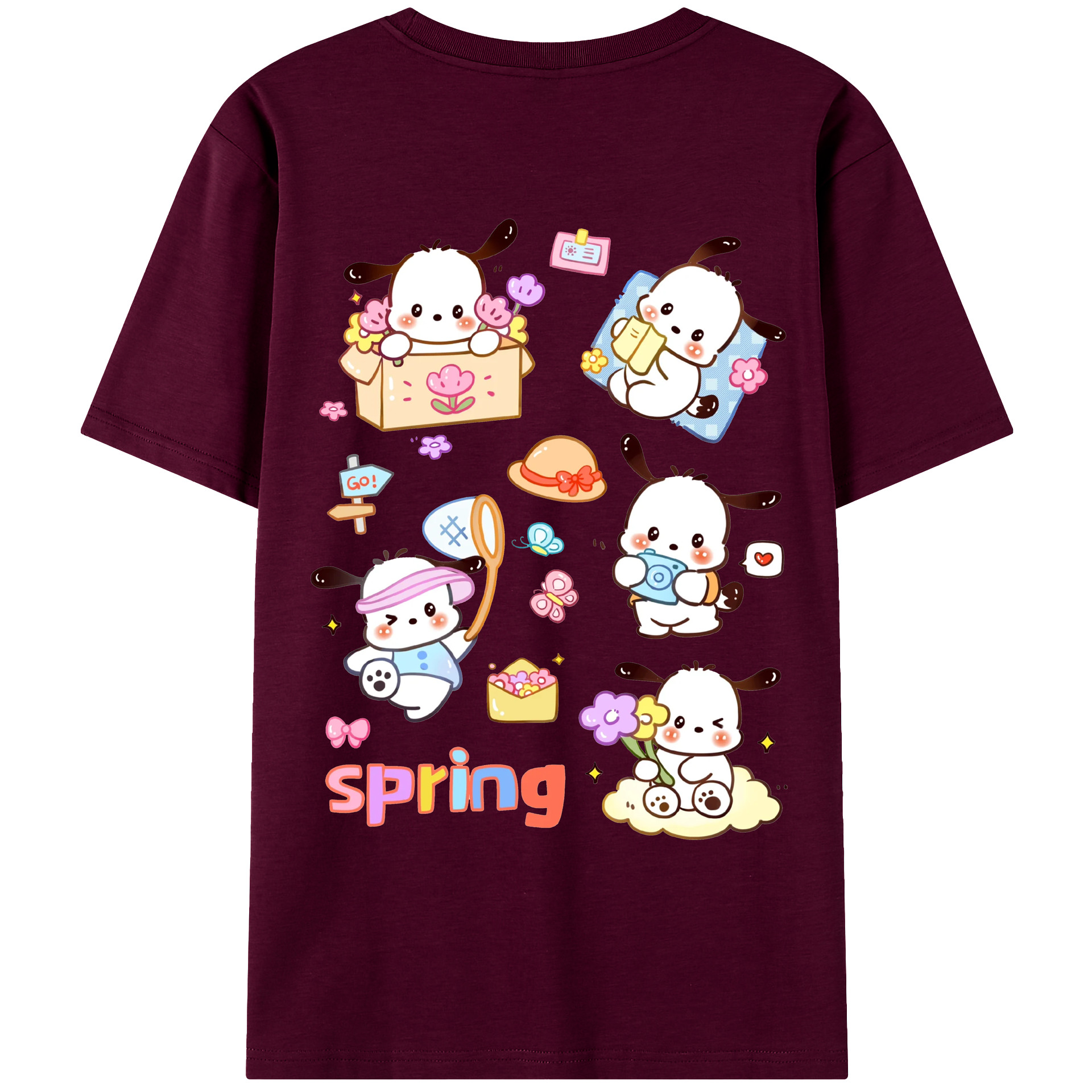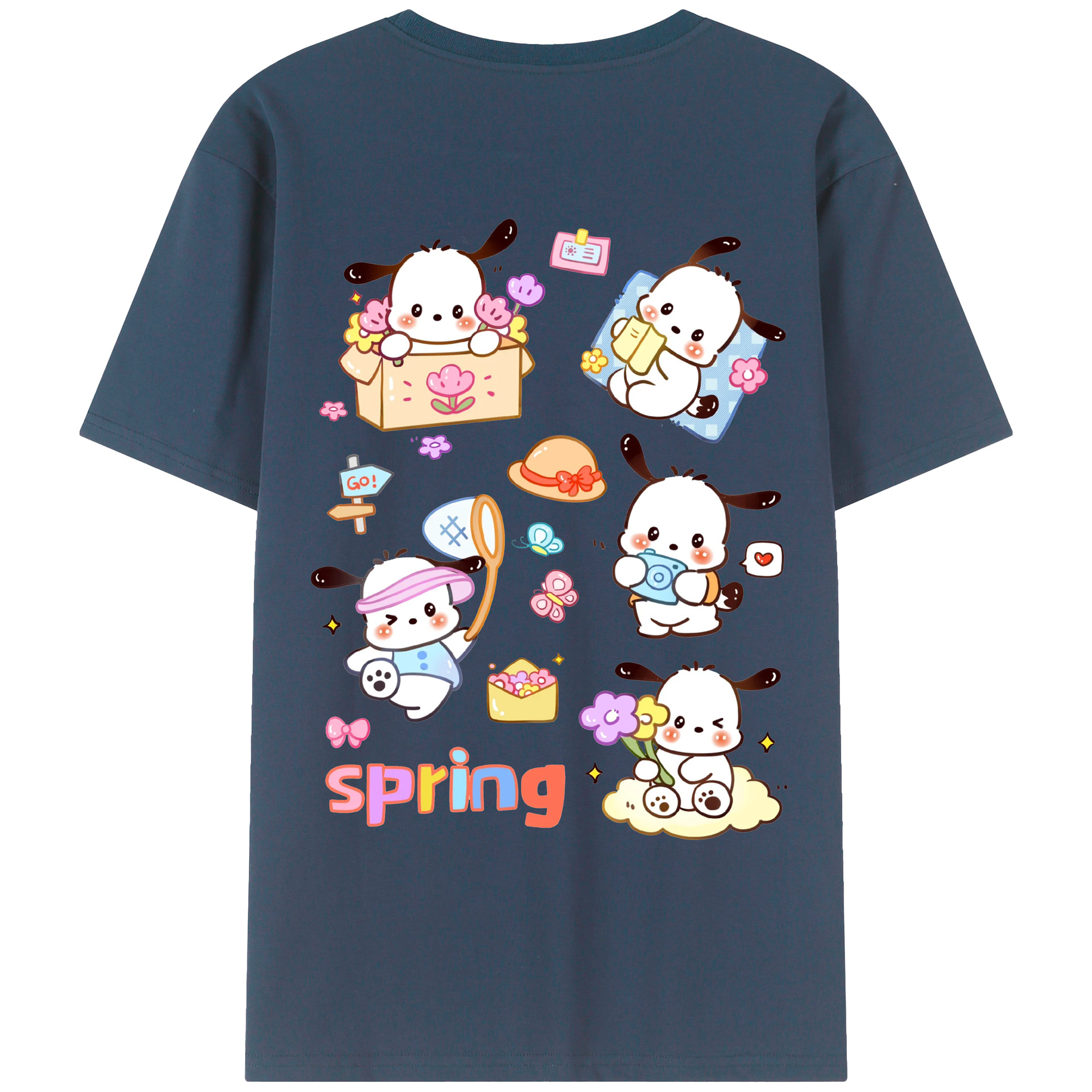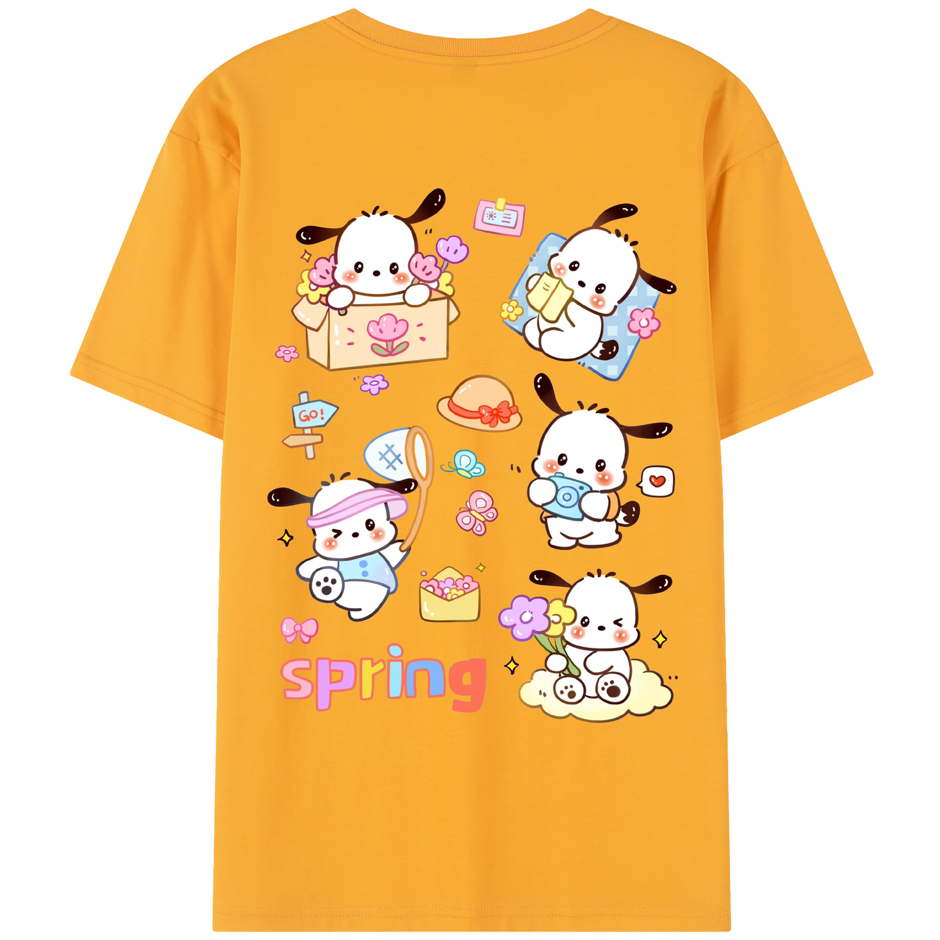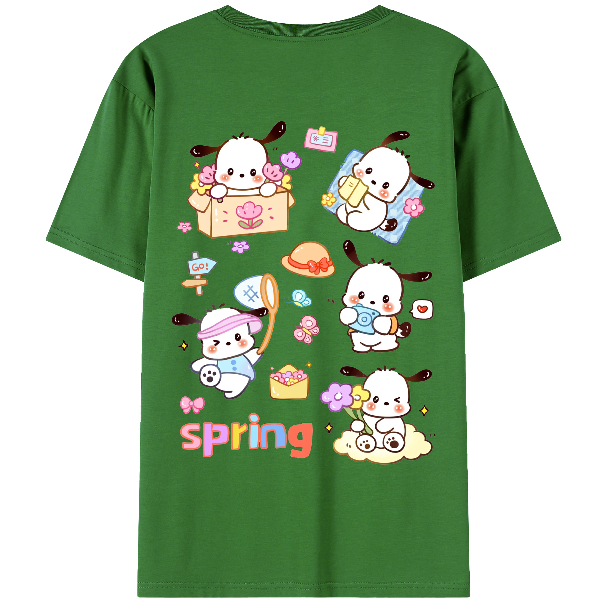 かわいいパッチャコ - レディース半袖Tシャツ ・ 綿100% ・ バックプリント ・ 強化クルーネック ・ 二重折り袖口 ・ 快適 通気性 ・ フィットネス カジュアル 旅行用