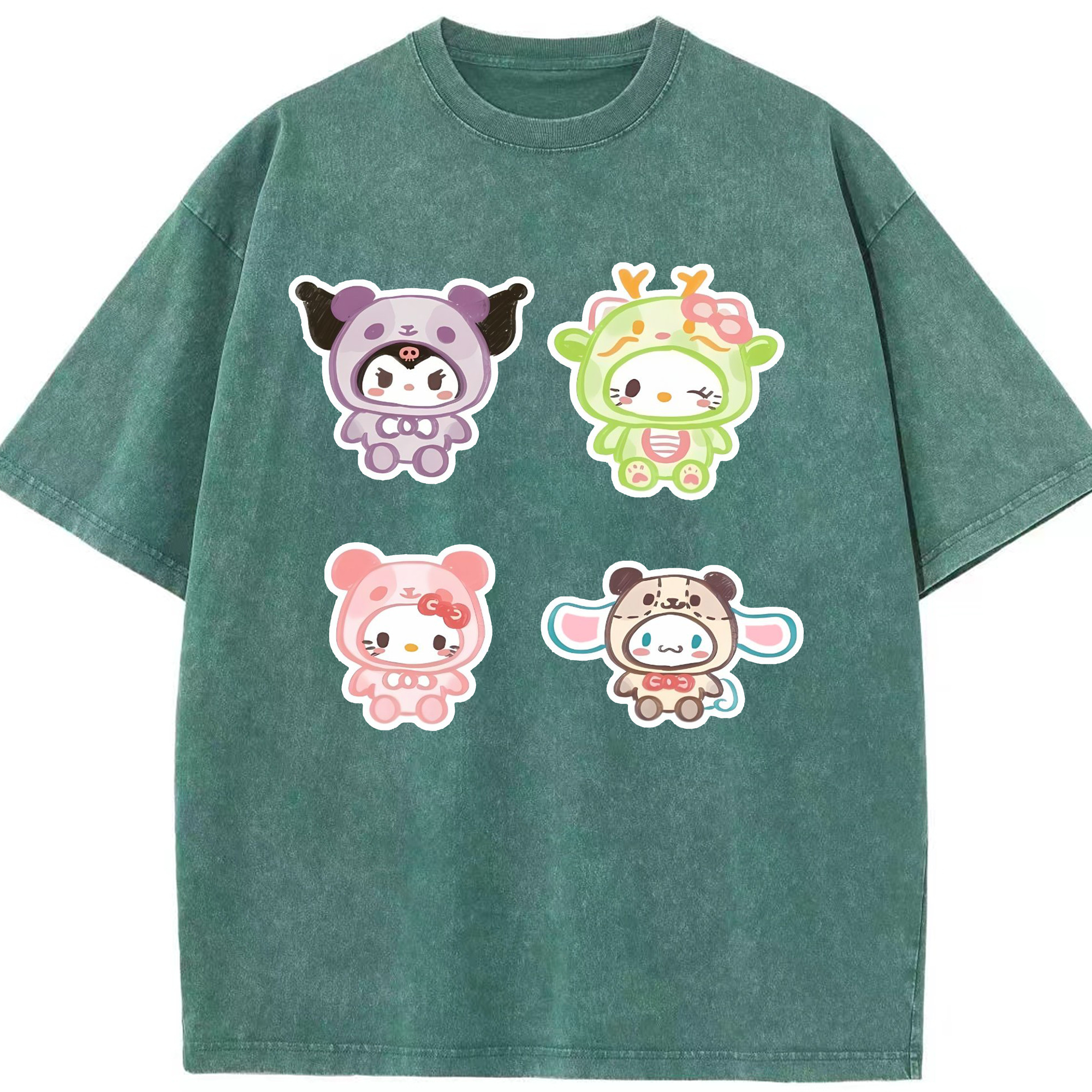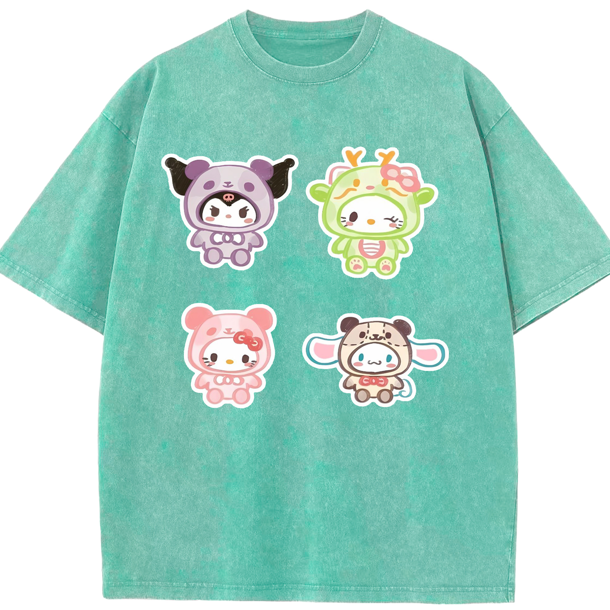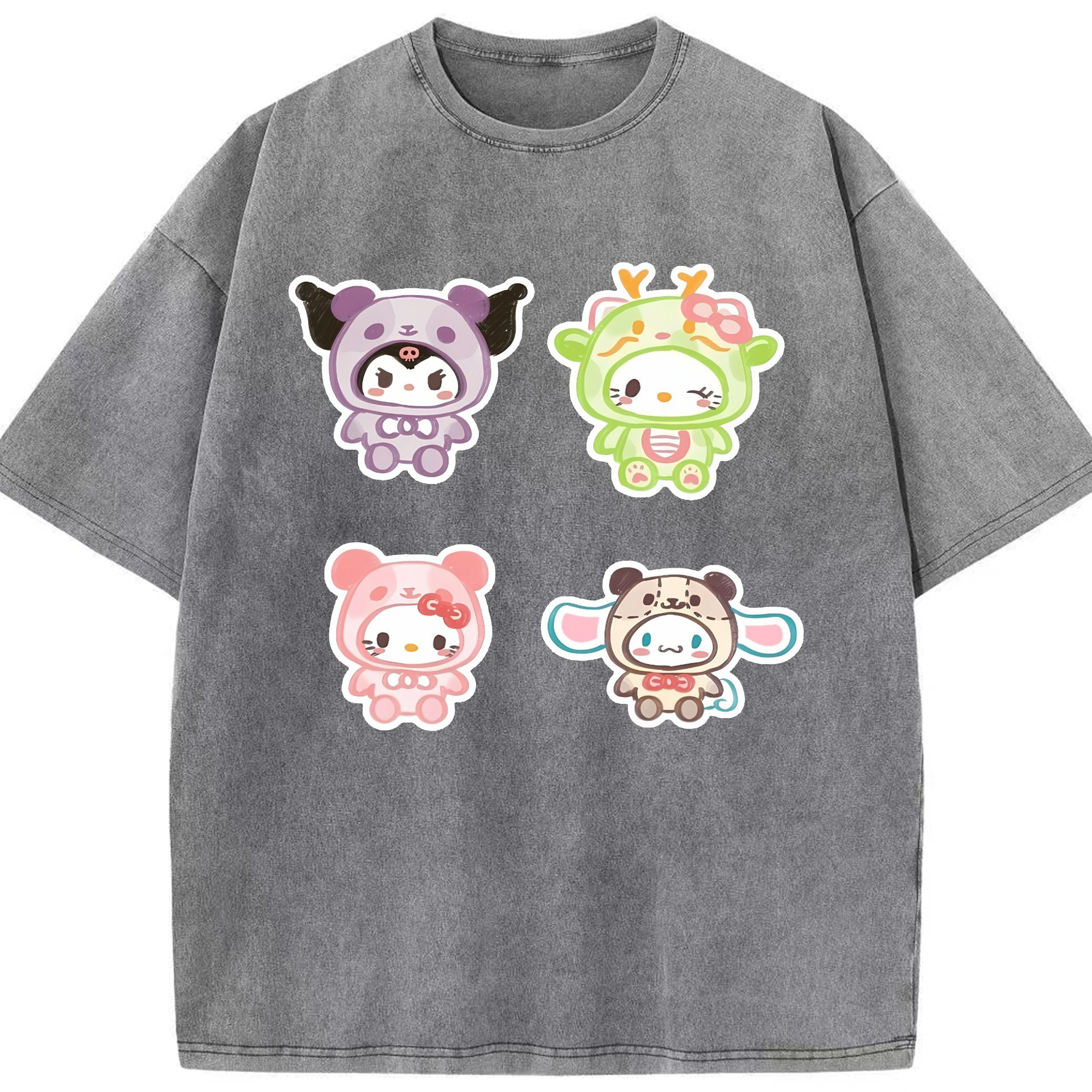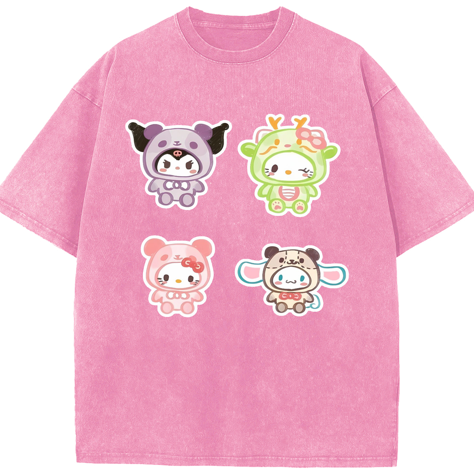 かわいい系サンリオ - 綿100% ヴィンテージ風 半袖Tシャツ ・ フロントプリント ・ 柔らか肌触り ・ 通気性 快適 ・ スポーツ カジュアル 外出用