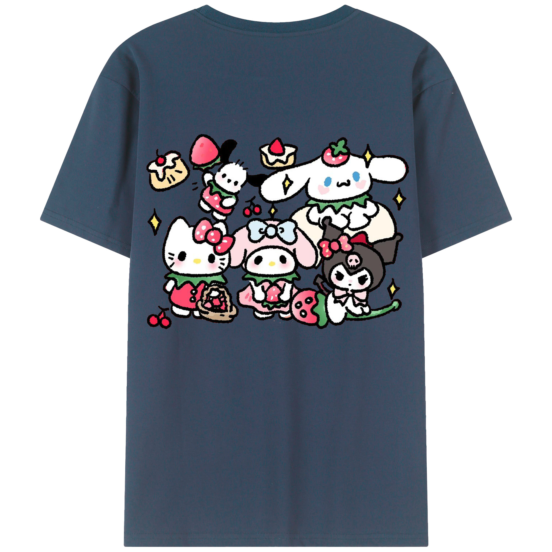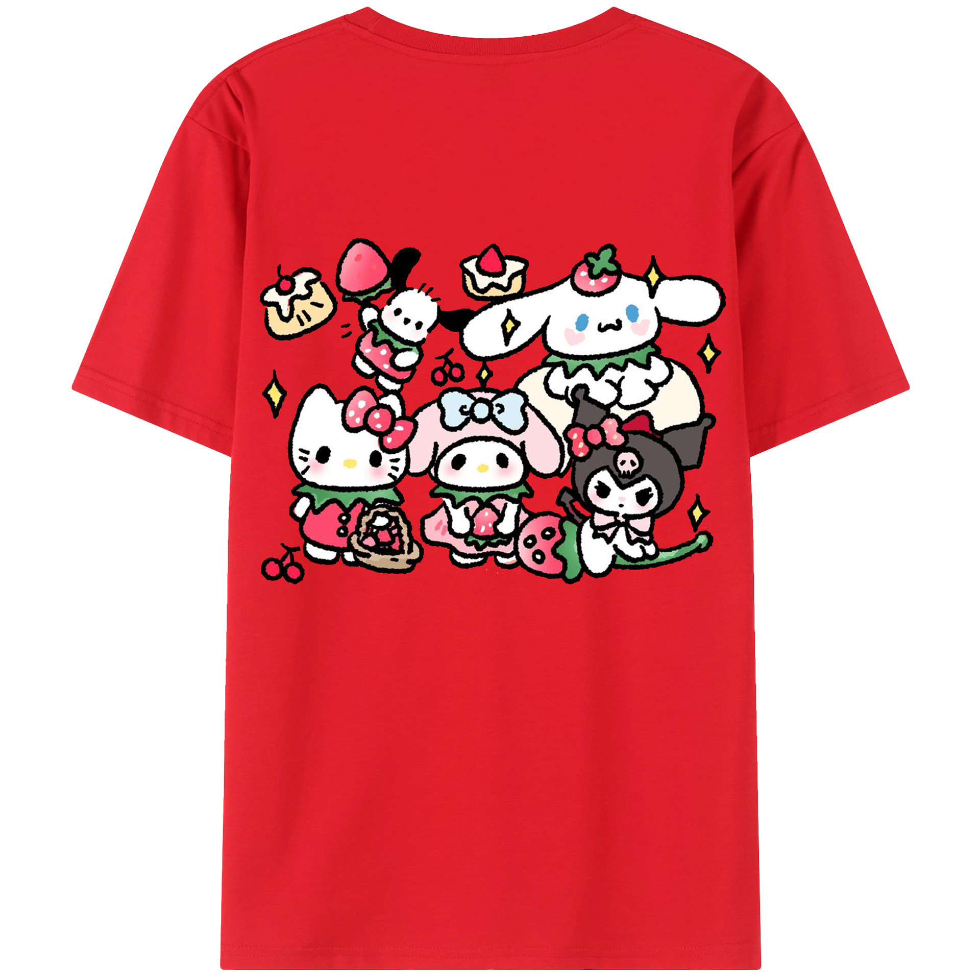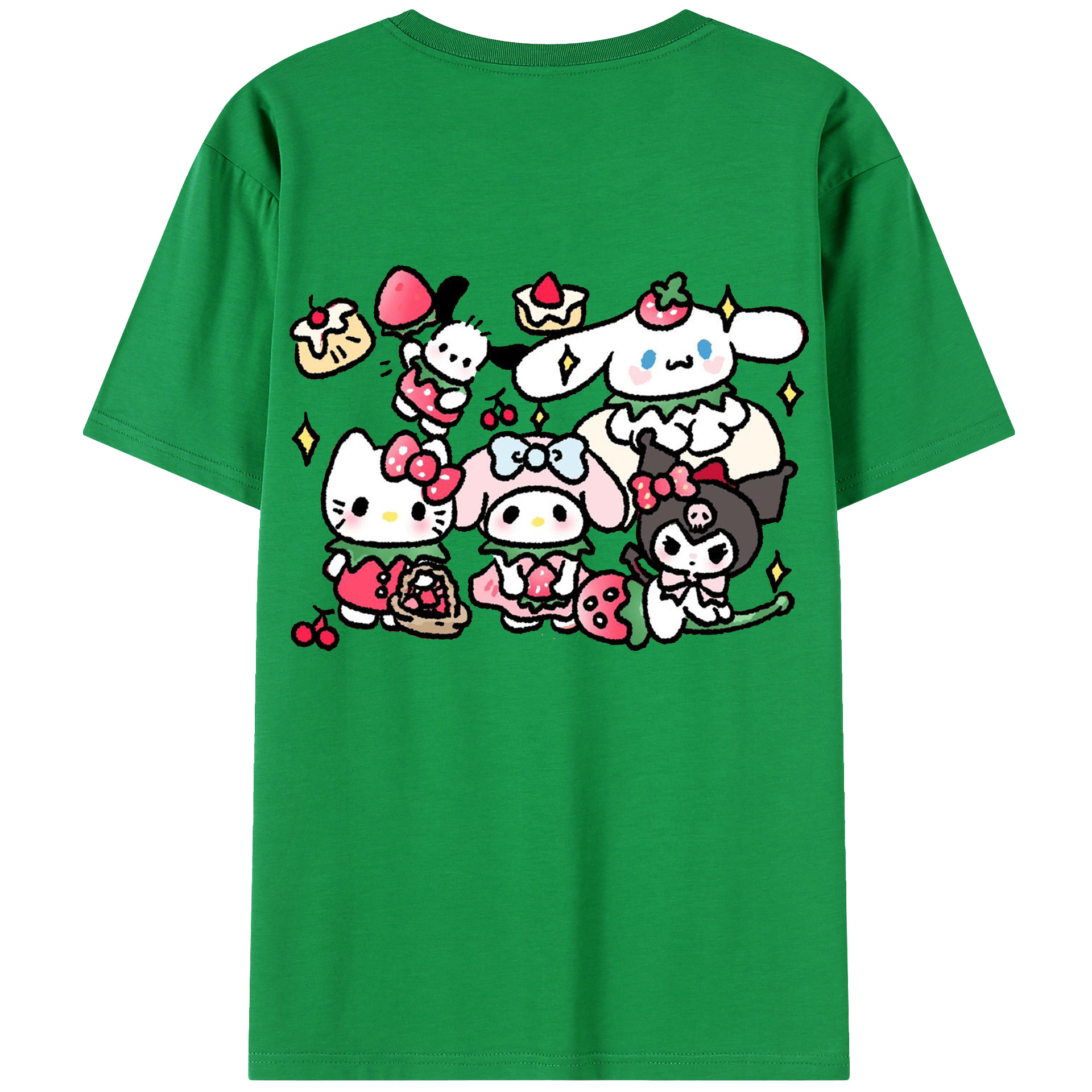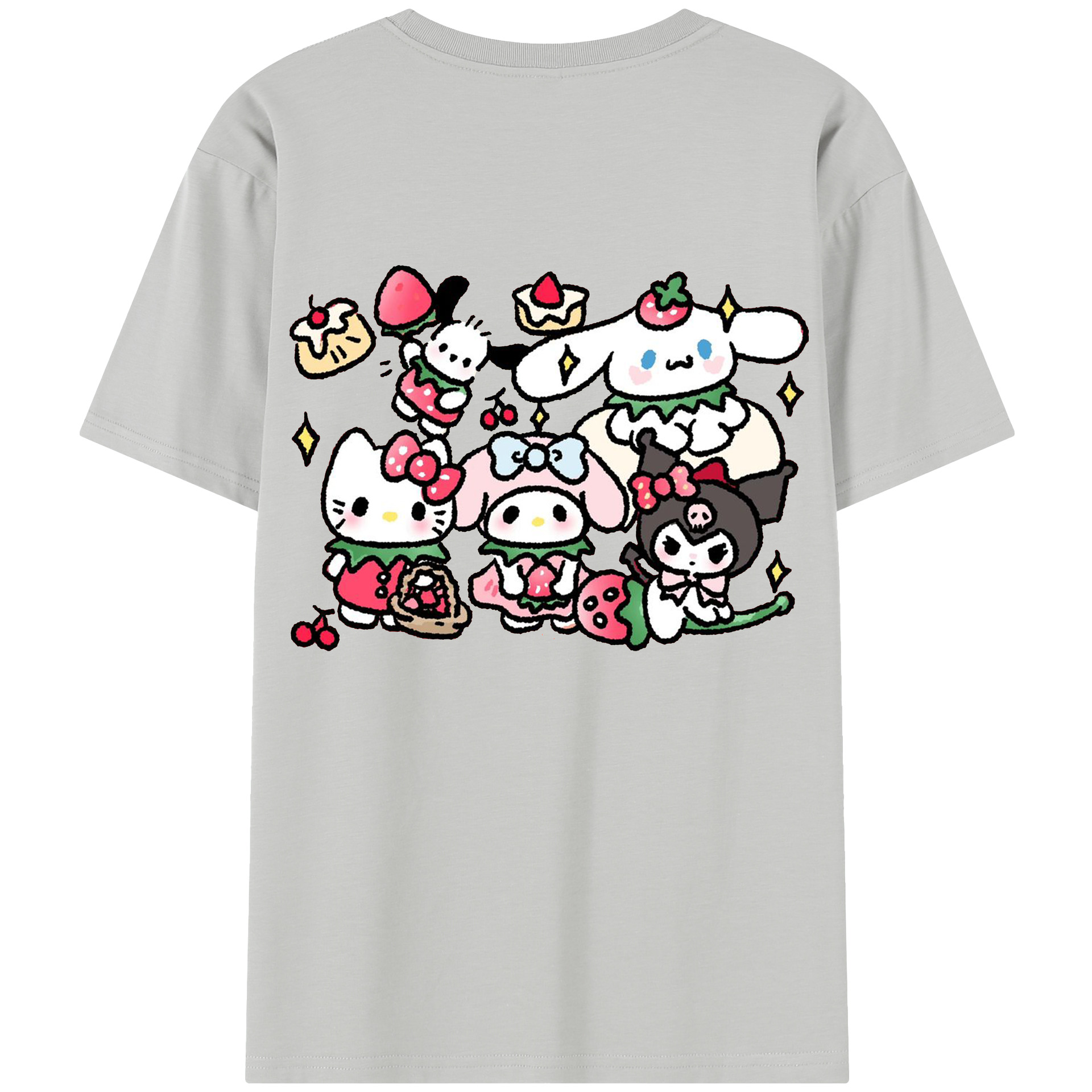かわいい系サンリオ - 綿100% ヴィンテージ風 半袖Tシャツ ・ 背面プリント ・ 柔らか肌触り ・ 通気性 快適 ・ スポーツ カジュアル 外出用
