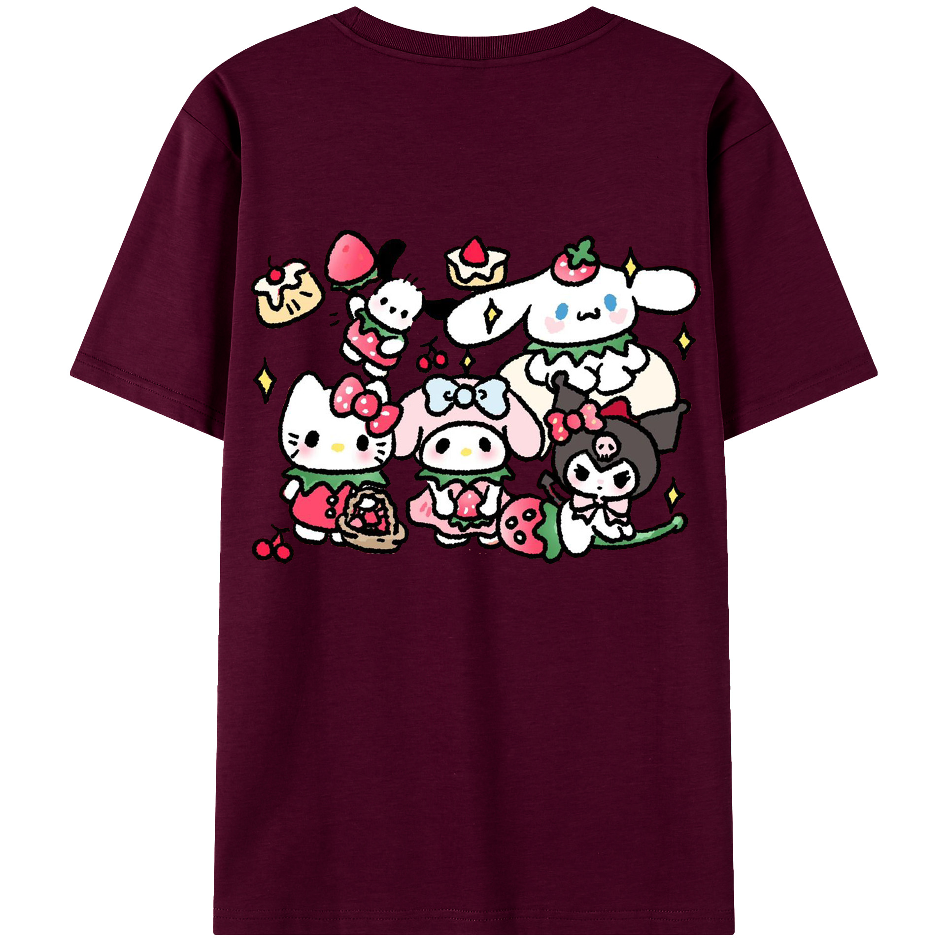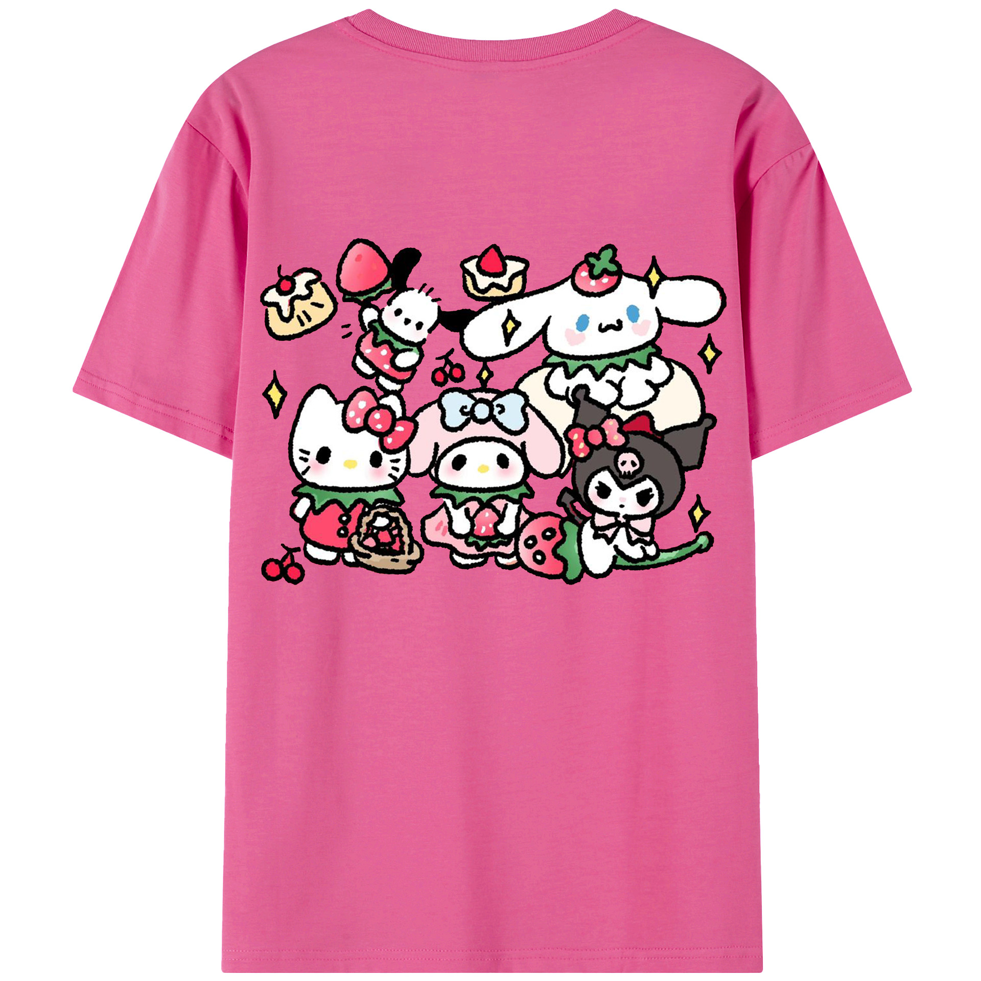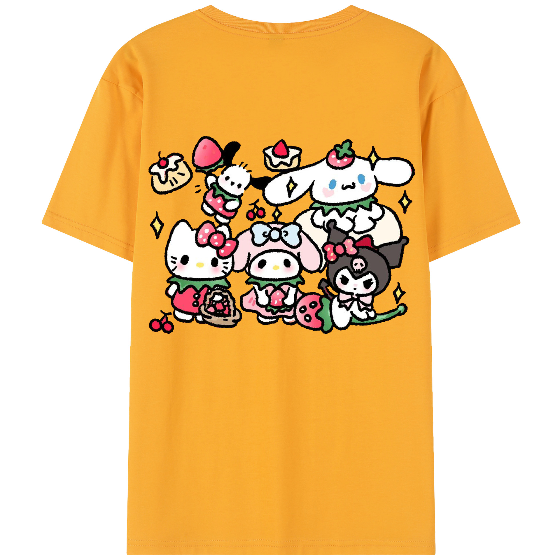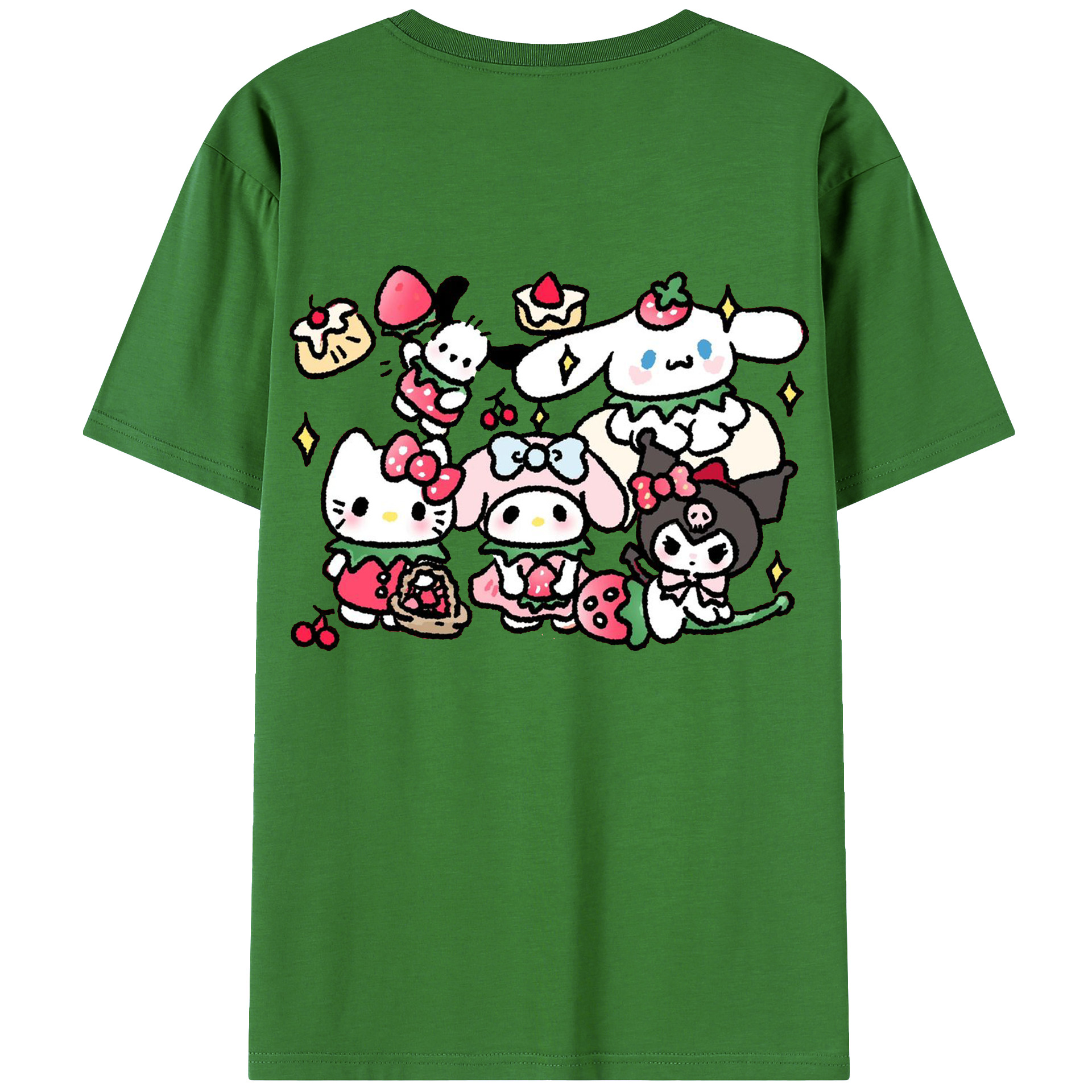 かわいい系サンリオ - 綿100% ヴィンテージ風 半袖Tシャツ ・ 背面プリント ・ 柔らか肌触り ・ 通気性 快適 ・ スポーツ カジュアル 外出用