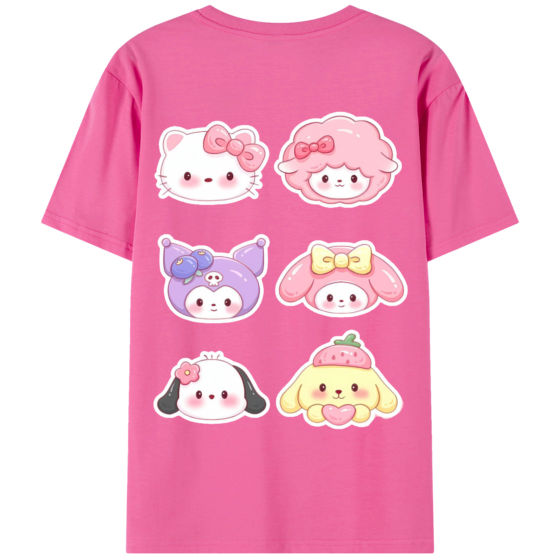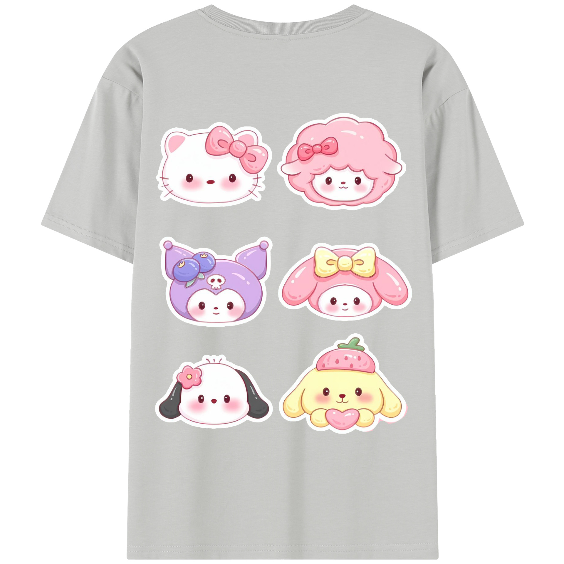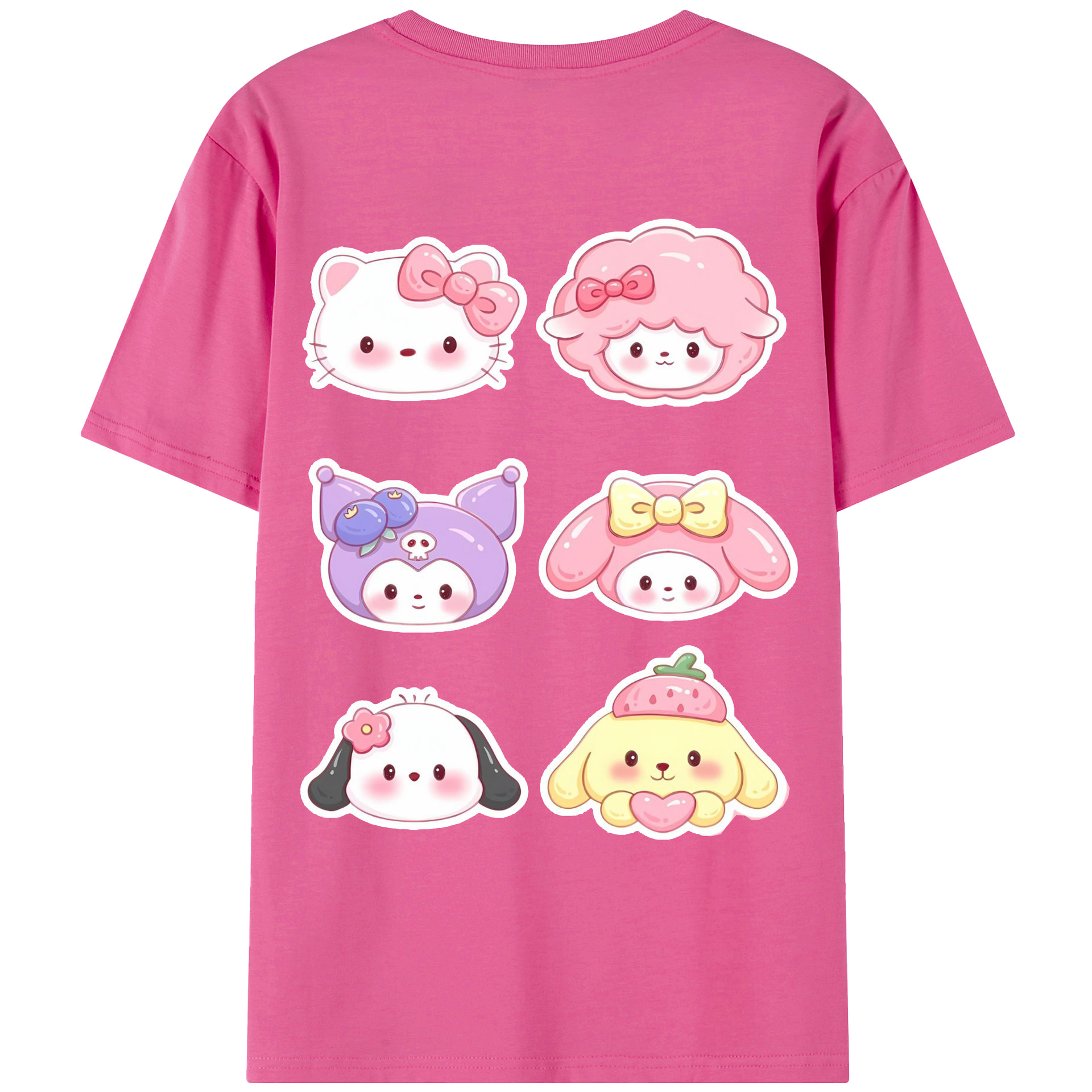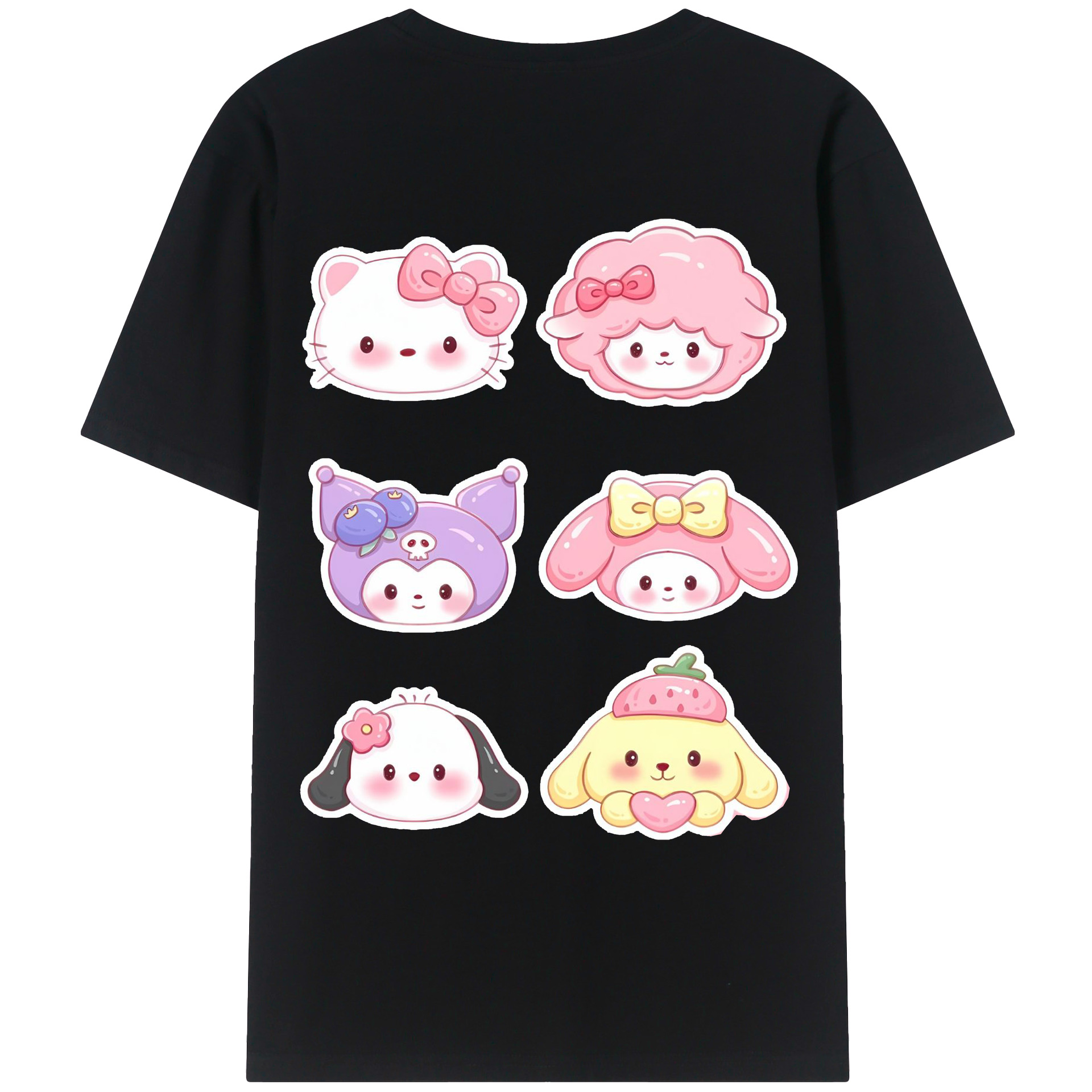 かわいい系サンリオ - レディース半袖Tシャツ ・ 綿100% ・ バックプリント ・ 強化クルーネック ・ 二重折り袖口 ・ 快適 通気性 ・ フィットネス カジュアル 旅行用