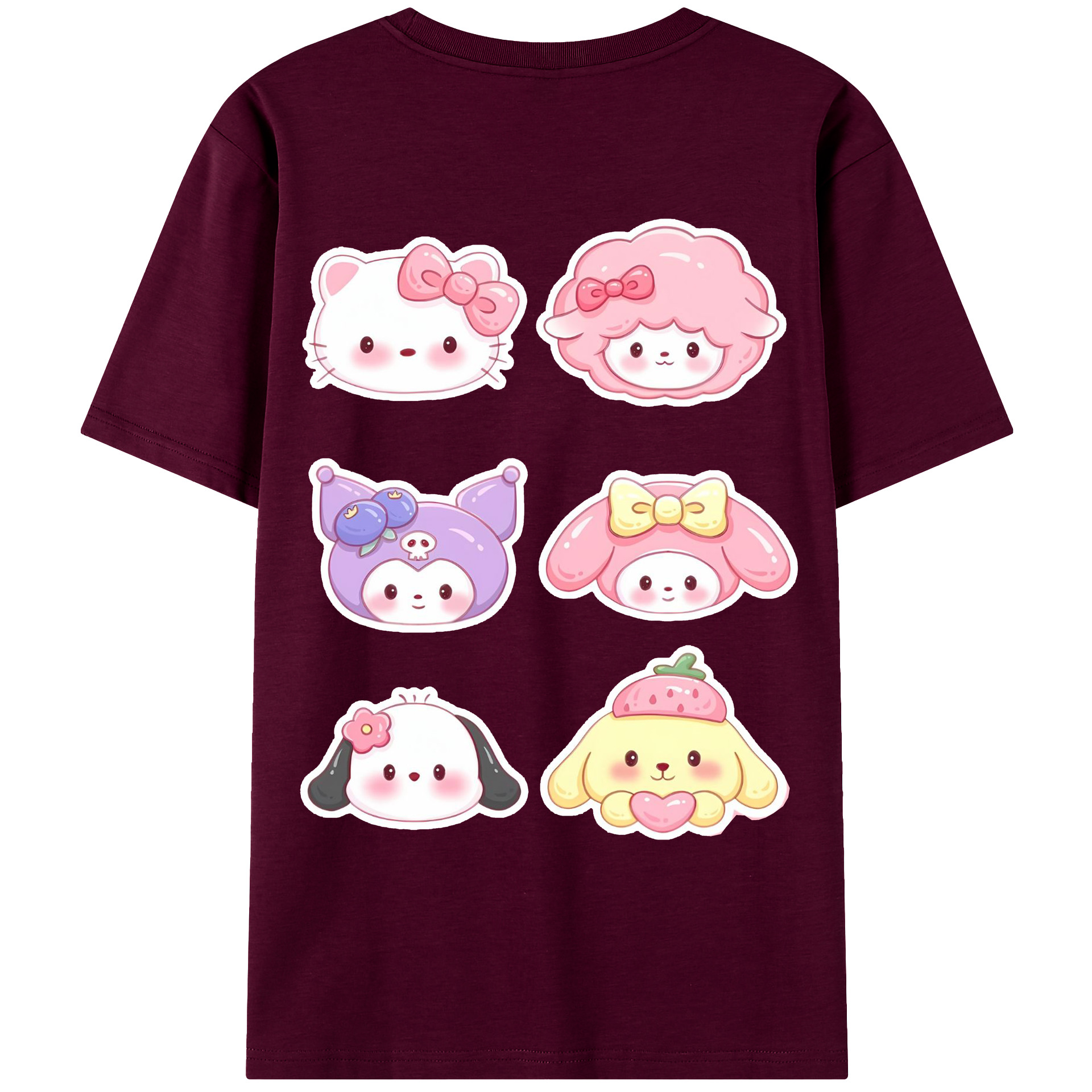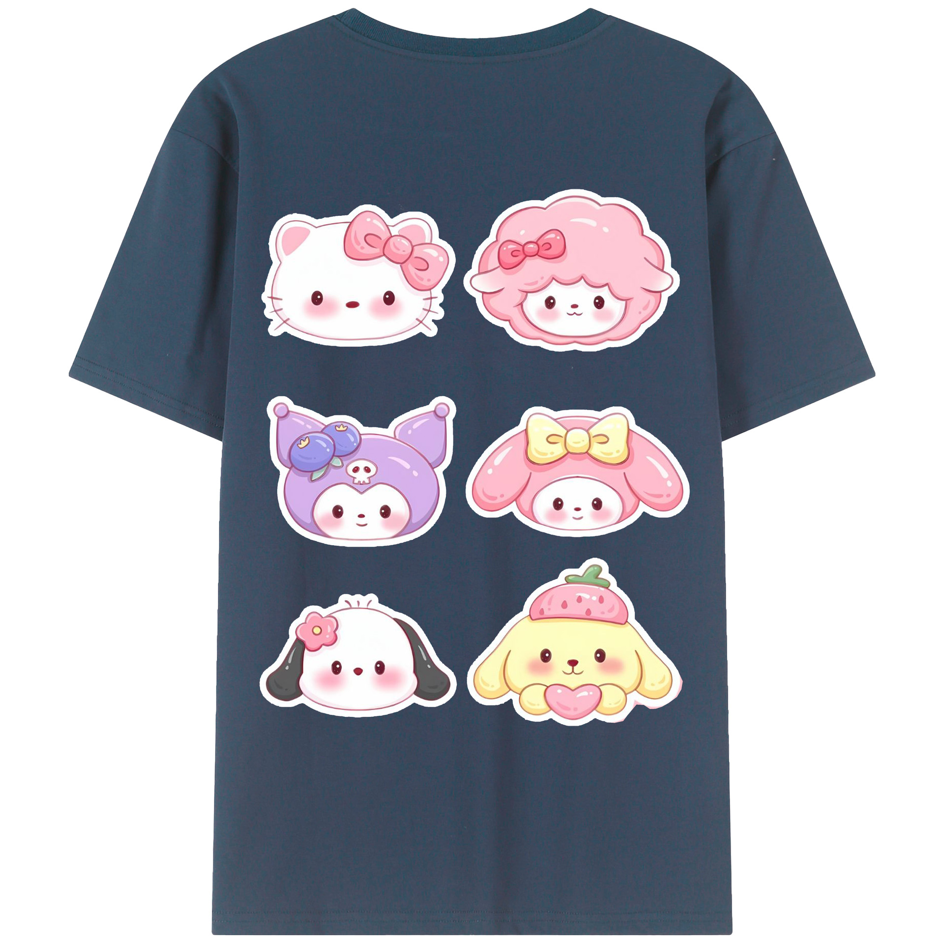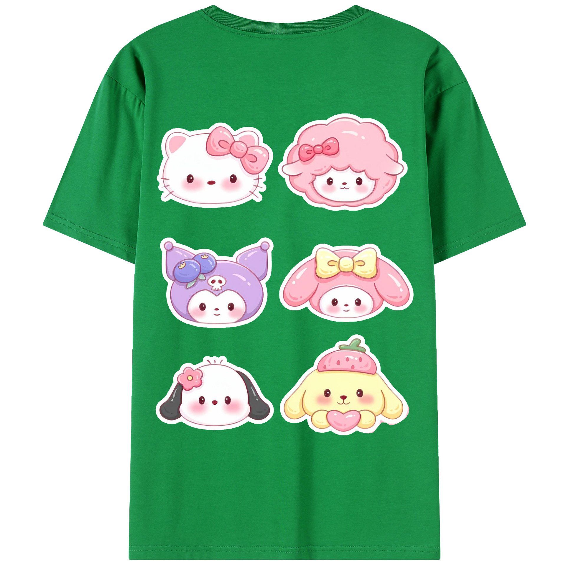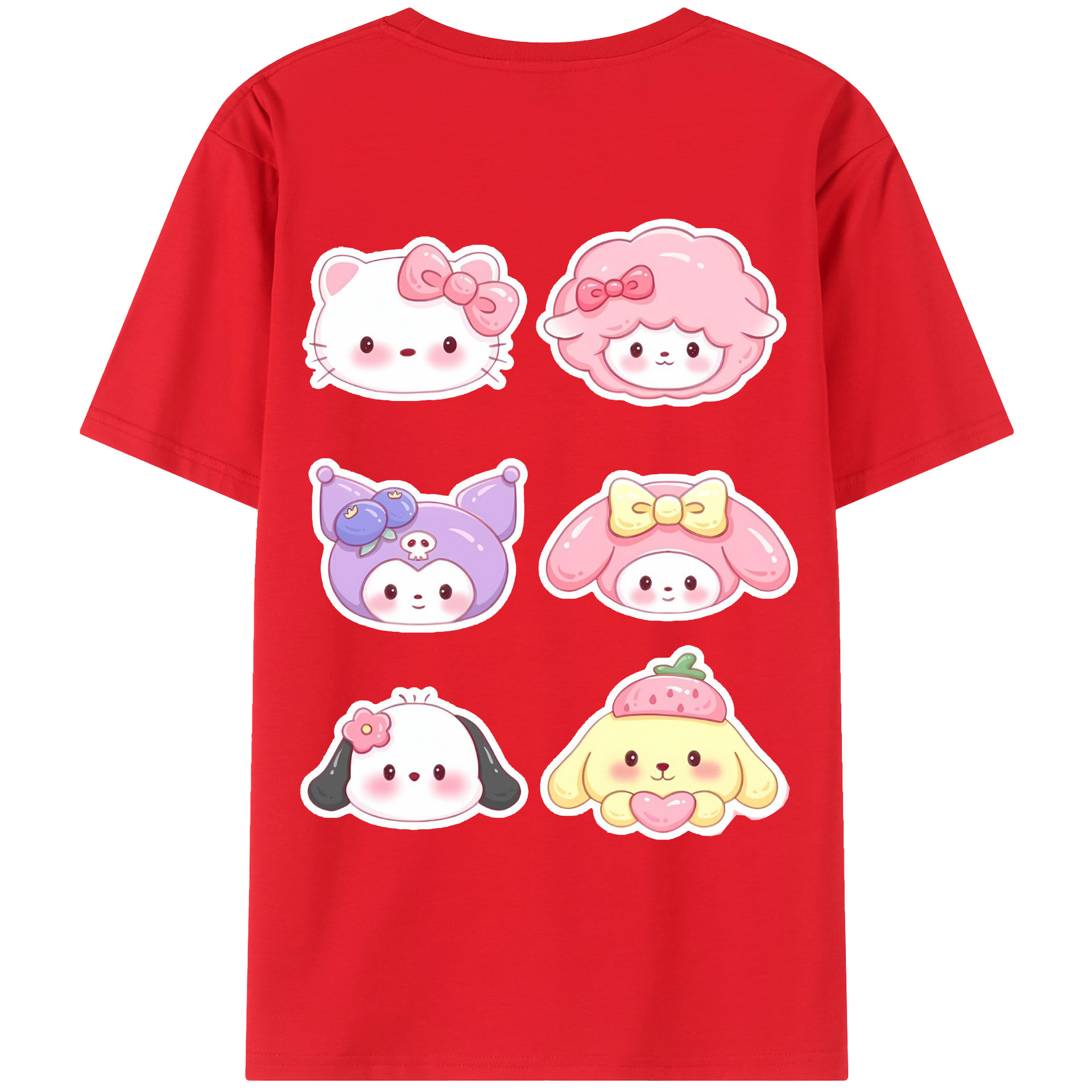 かわいい系サンリオ - レディース半袖Tシャツ ・ 綿100% ・ バックプリント ・ 強化クルーネック ・ 二重折り袖口 ・ 快適 通気性 ・ フィットネス カジュアル 旅行用