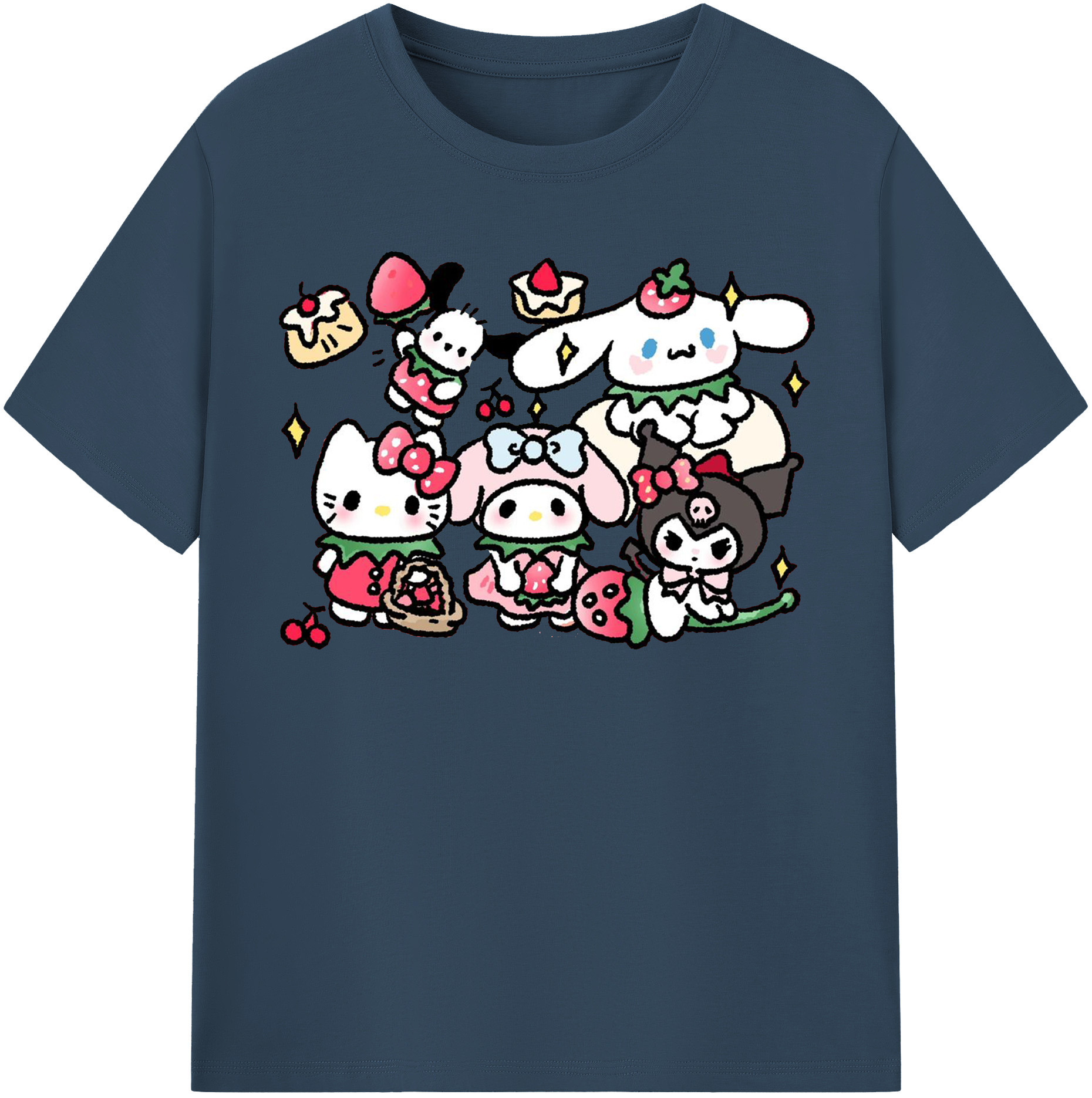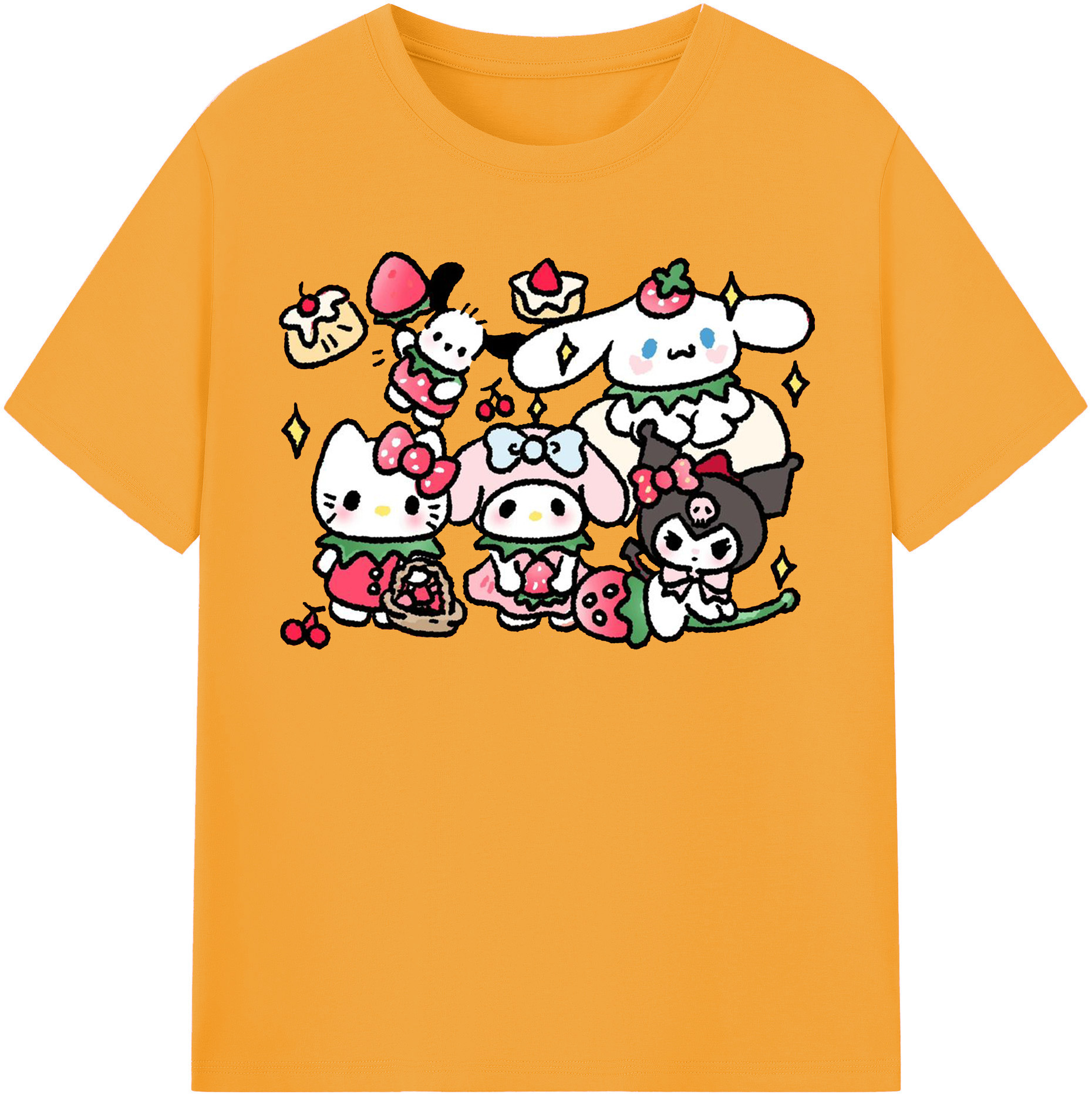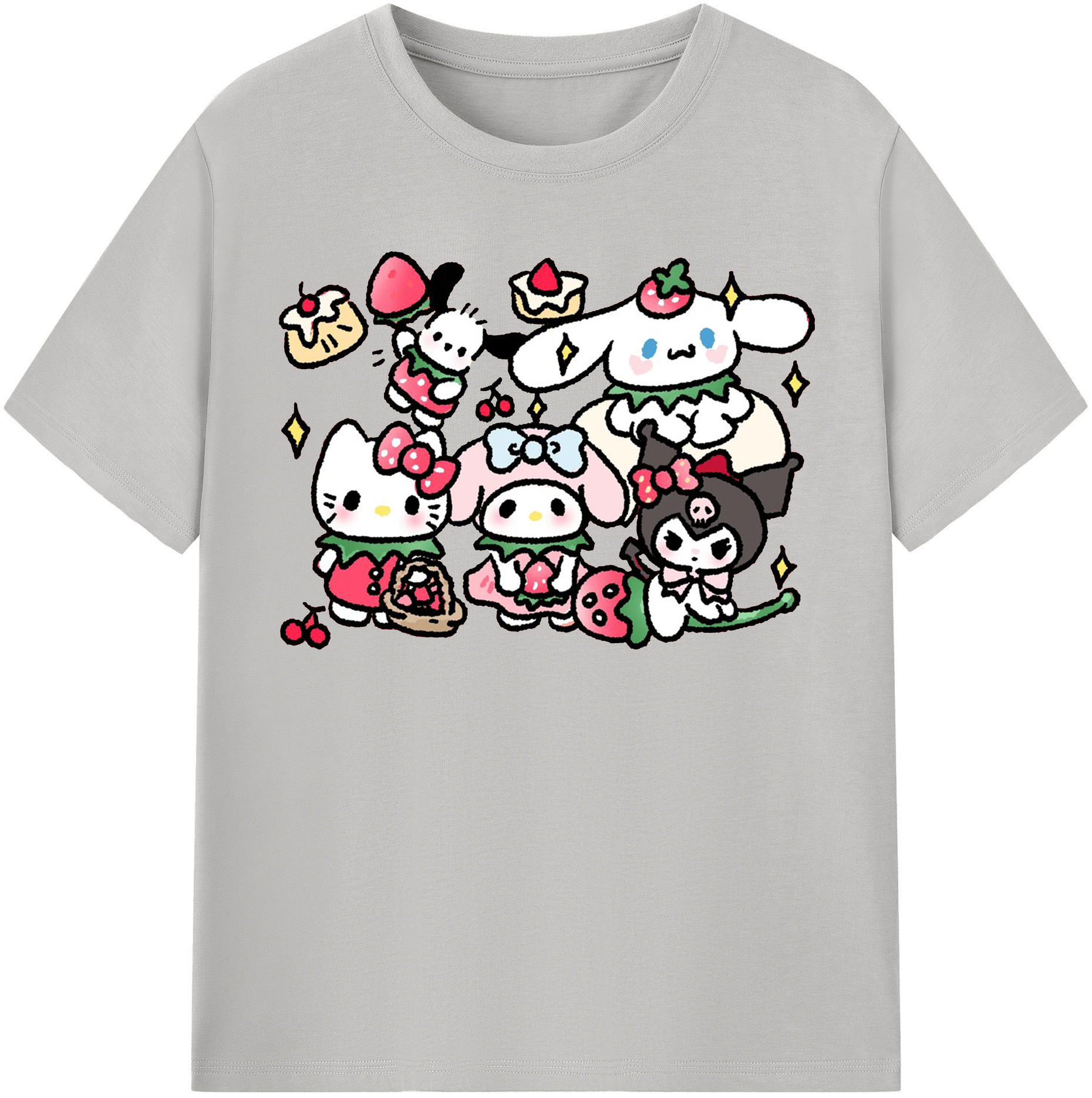 かわいい系サンリオ - 綿100% ヴィンテージ風 半袖Tシャツ ・ フロントプリント ・ 柔らか肌触り ・ 通気性 快適 ・ スポーツ カジュアル 外出用