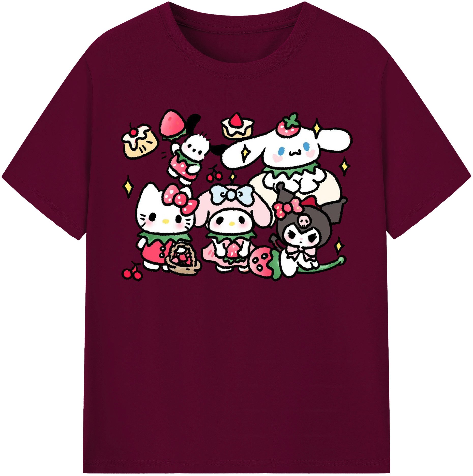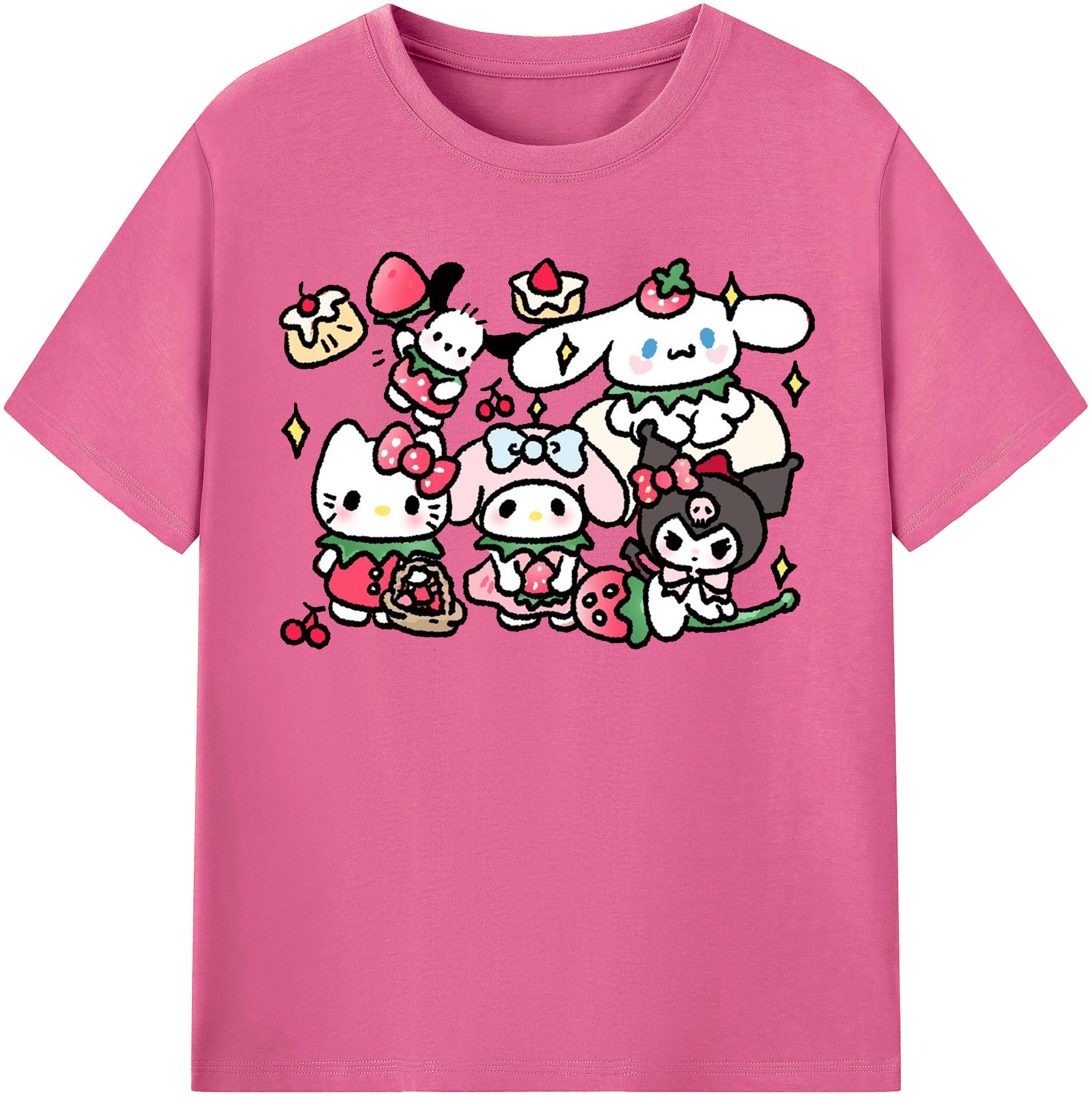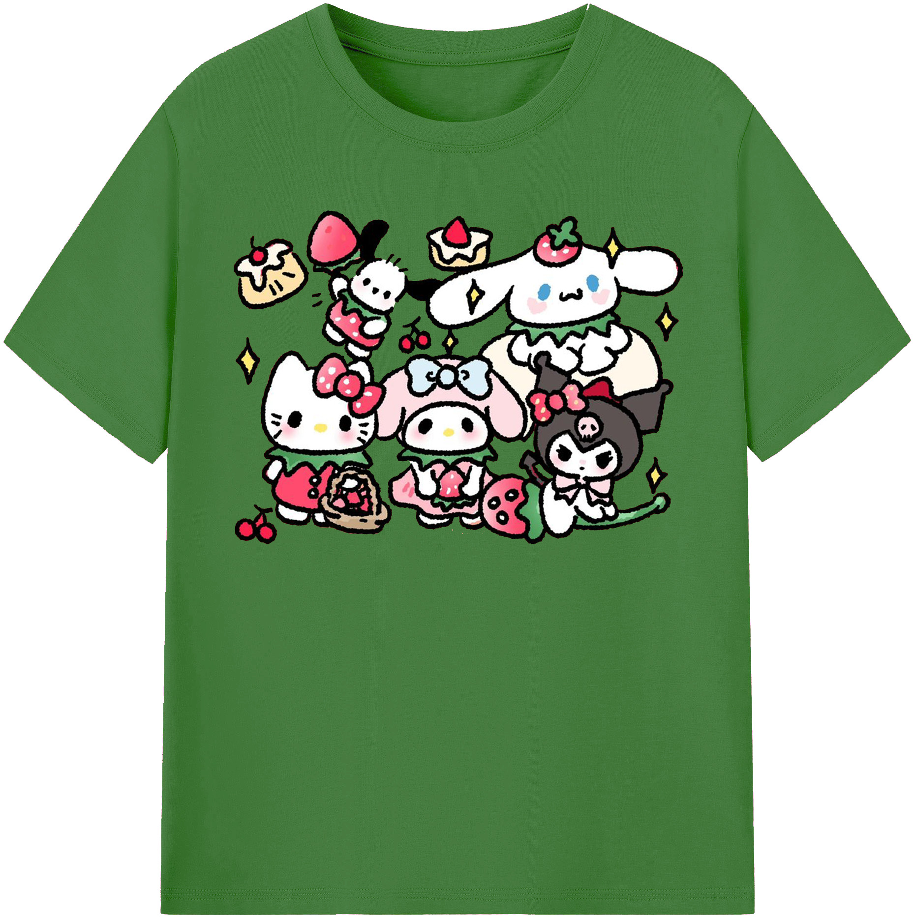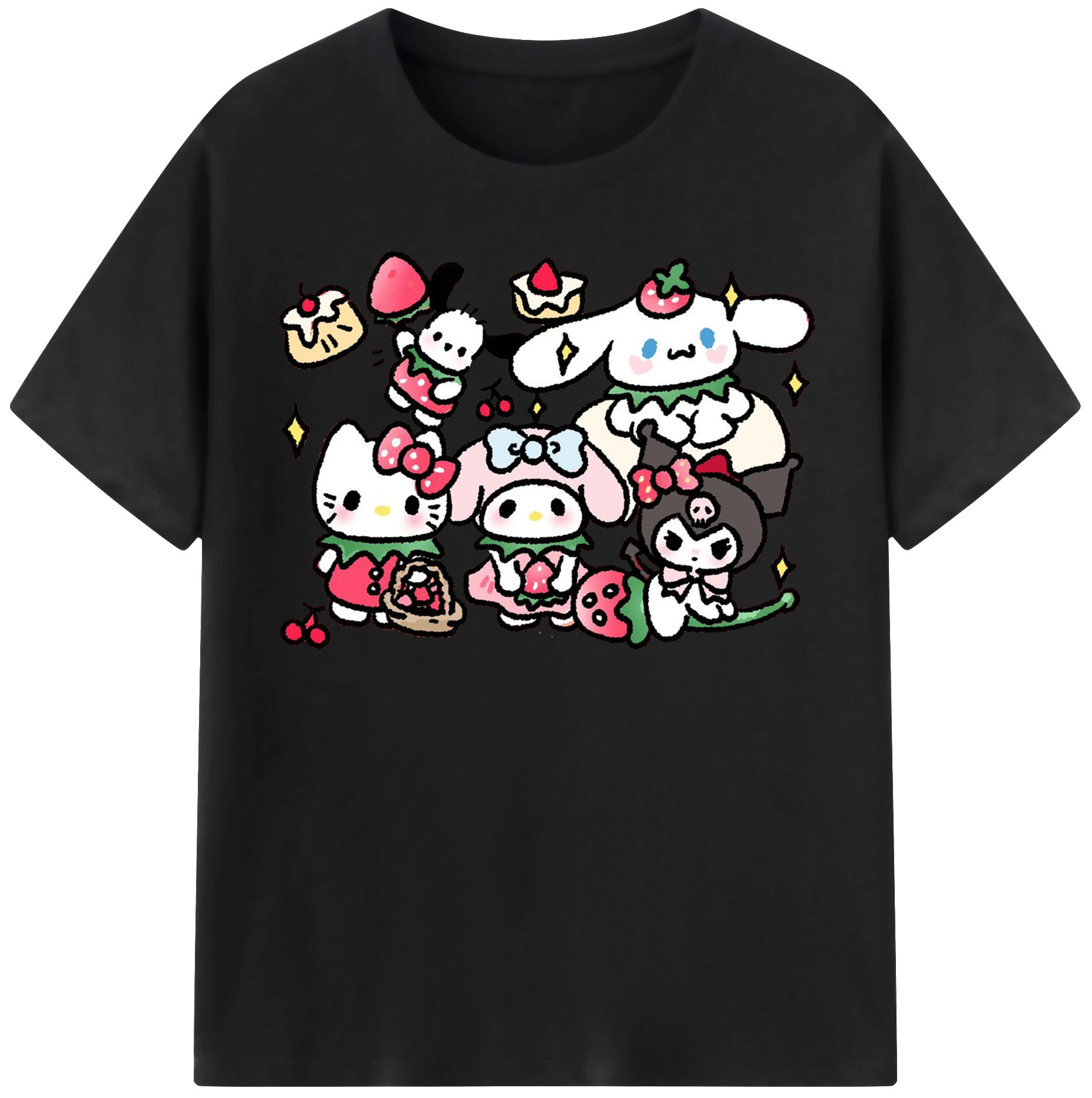 かわいい系サンリオ - 綿100% ヴィンテージ風 半袖Tシャツ ・ フロントプリント ・ 柔らか肌触り ・ 通気性 快適 ・ スポーツ カジュアル 外出用