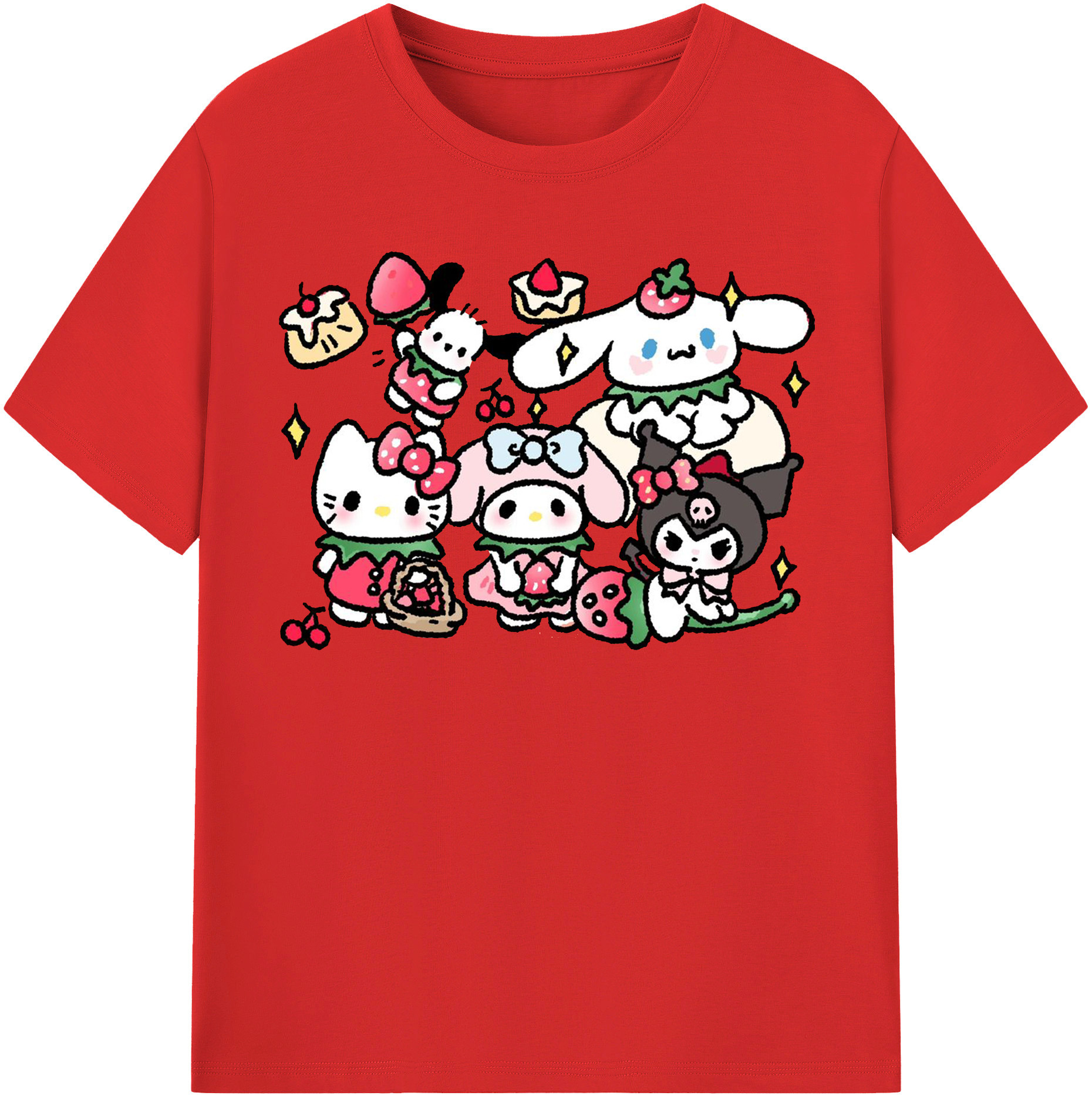 かわいい系サンリオ - 綿100% キッズTシャツ ・ フロントプリント ・ 快適 通気性 ・ スポーツ カジュアル 散歩用