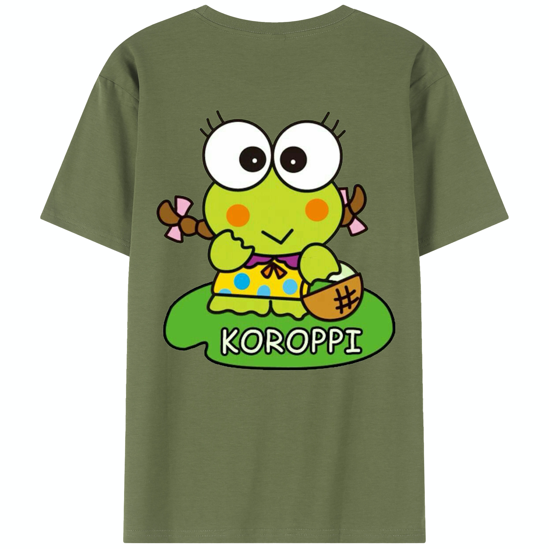 かわいいけろけろけろっぴ - 綿100% 半袖Tシャツ ・ バックプリント ・ 快適 通気性 ・ 日常使い 散歩 スポーツ用