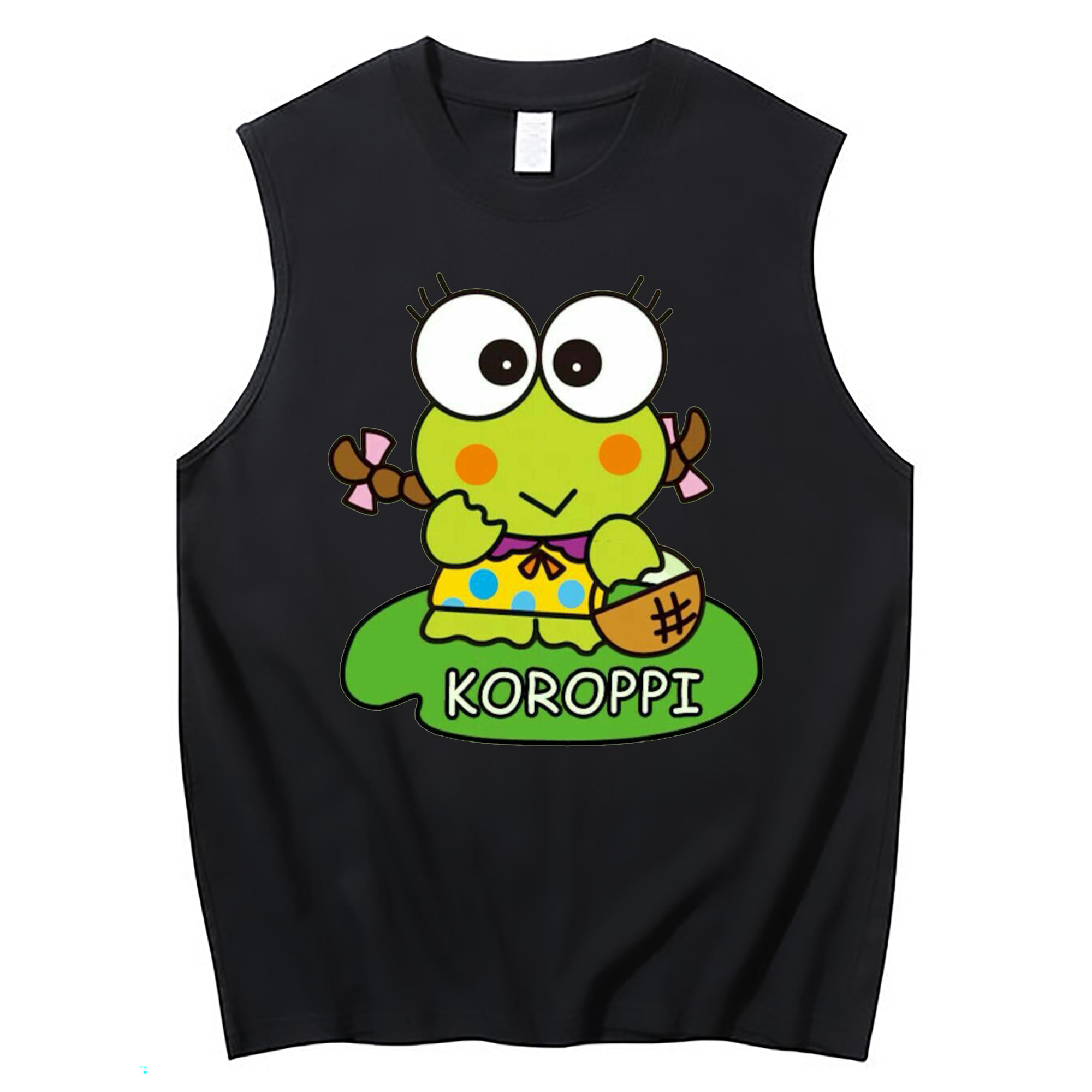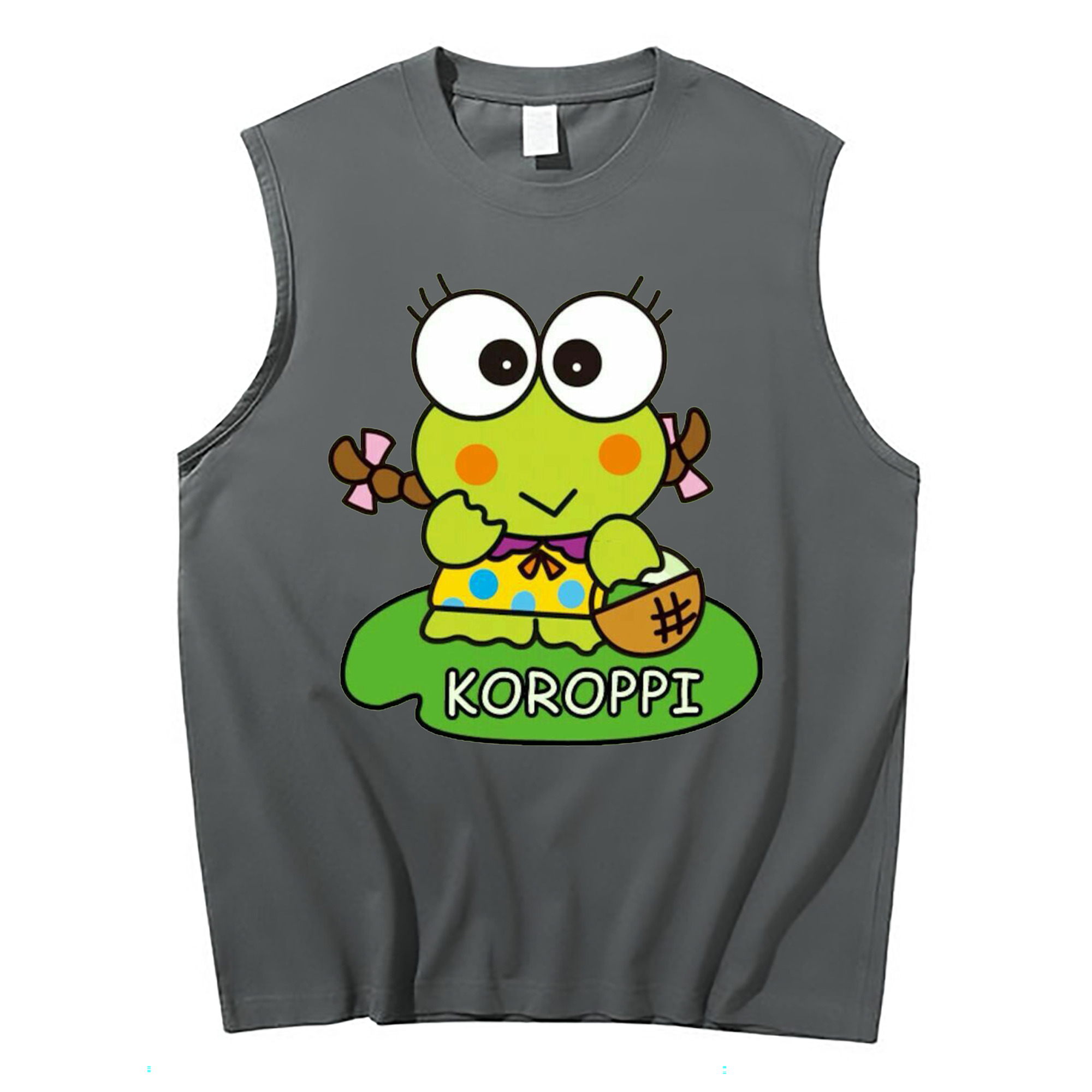 けろけろけろっぴ - コットン100% タンクトップ ・ フロントプリント ・ タイトフィット ・ 快適 通気性 ・ スポーツ カジュアル 散歩用