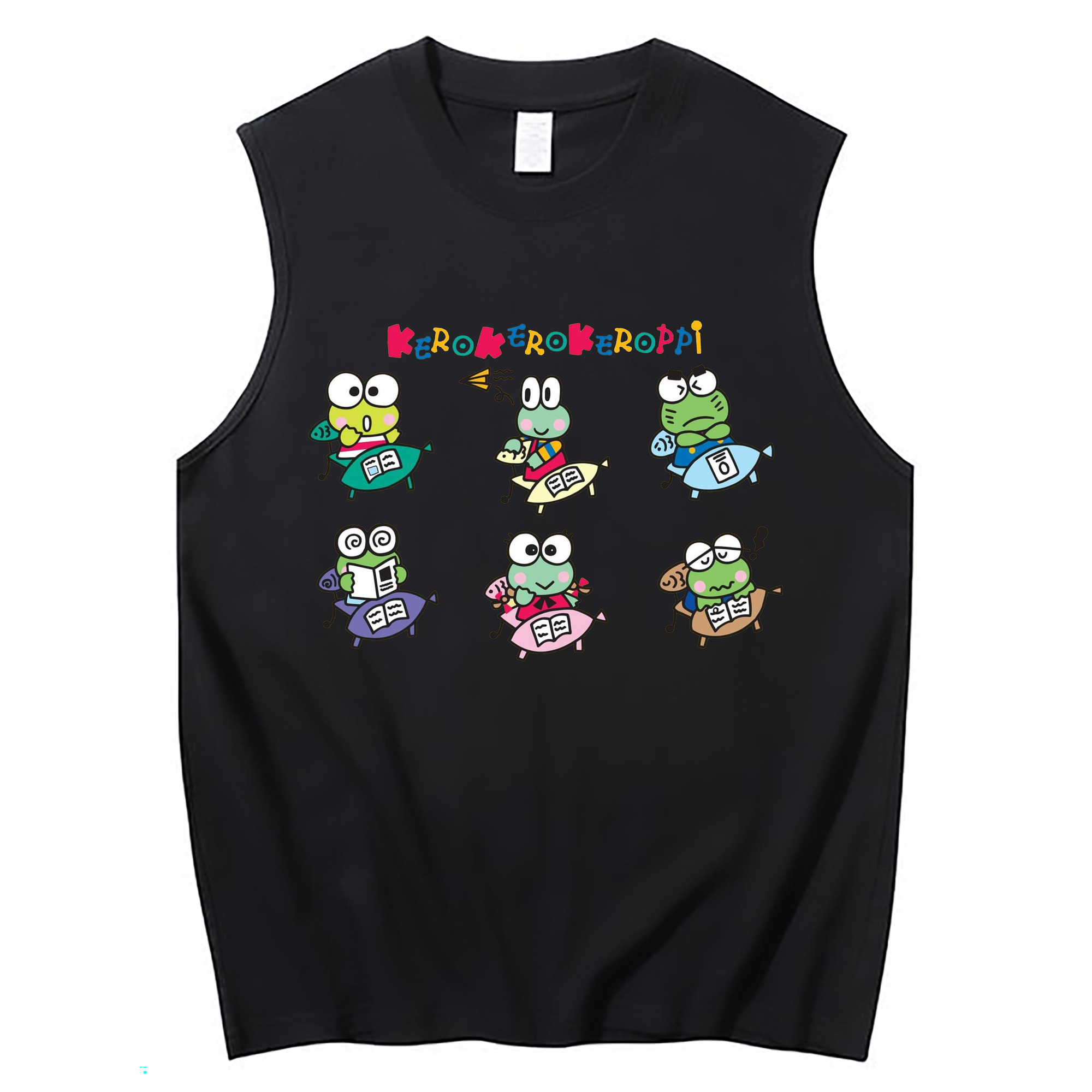 けろけろけろっぴがいっぱい♪ - コットン100% タンクトップ ・ フロントプリント ・ タイトフィット ・ 快適 通気性 ・ スポーツ カジュアル 散歩用
