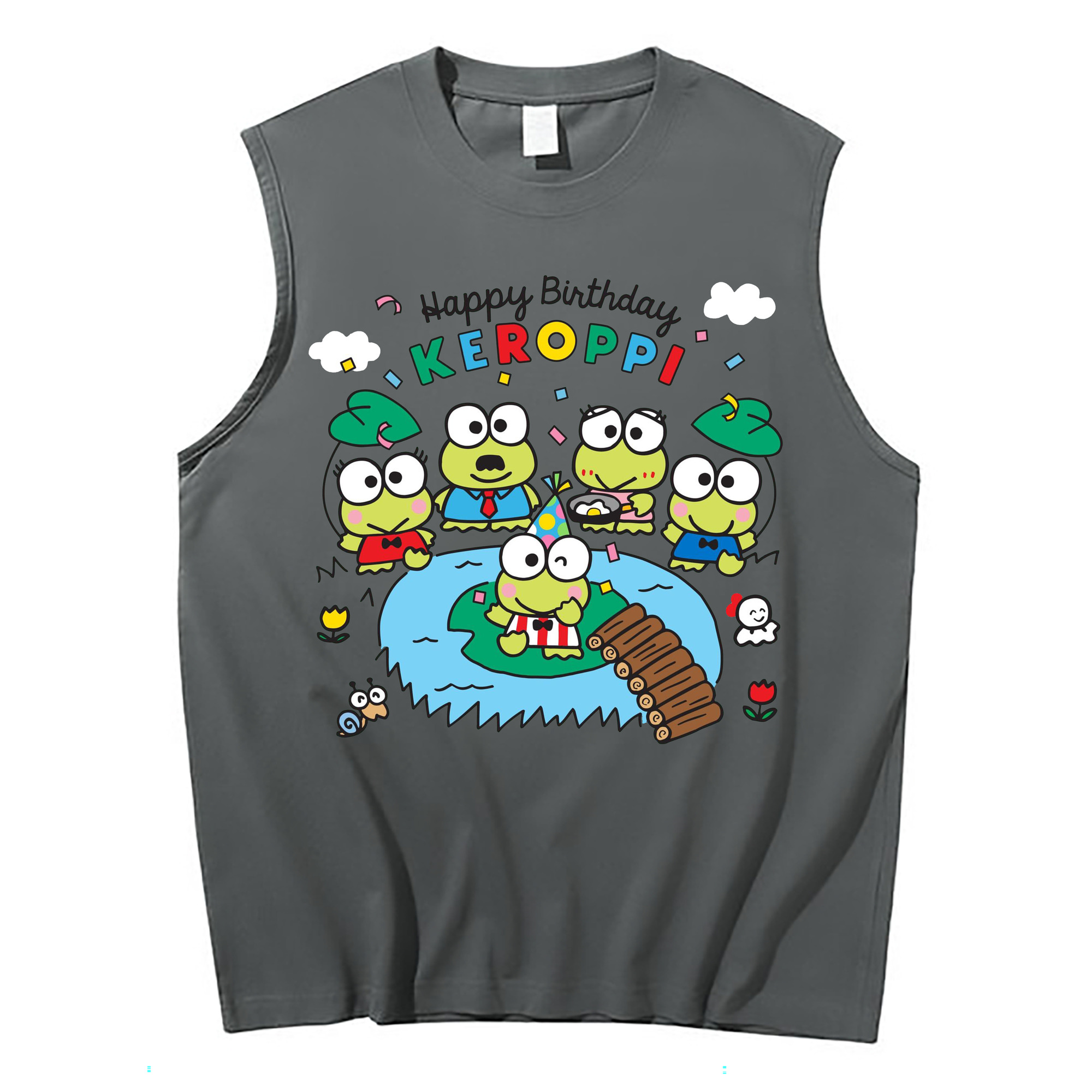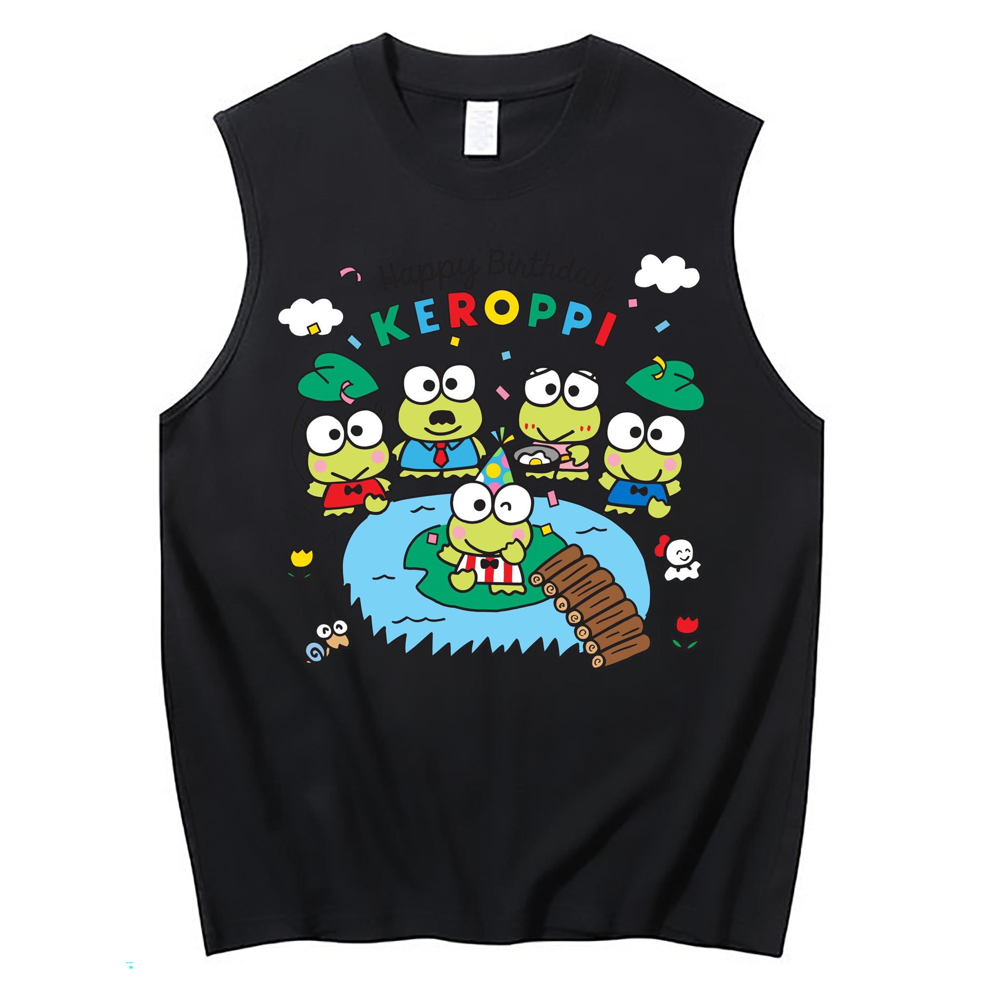 けろけろけろっぴがいっぱい♪ - コットン100% タンクトップ ・ フロントプリント ・ タイトフィット ・ 快適 通気性 ・ スポーツ カジュアル 散歩用